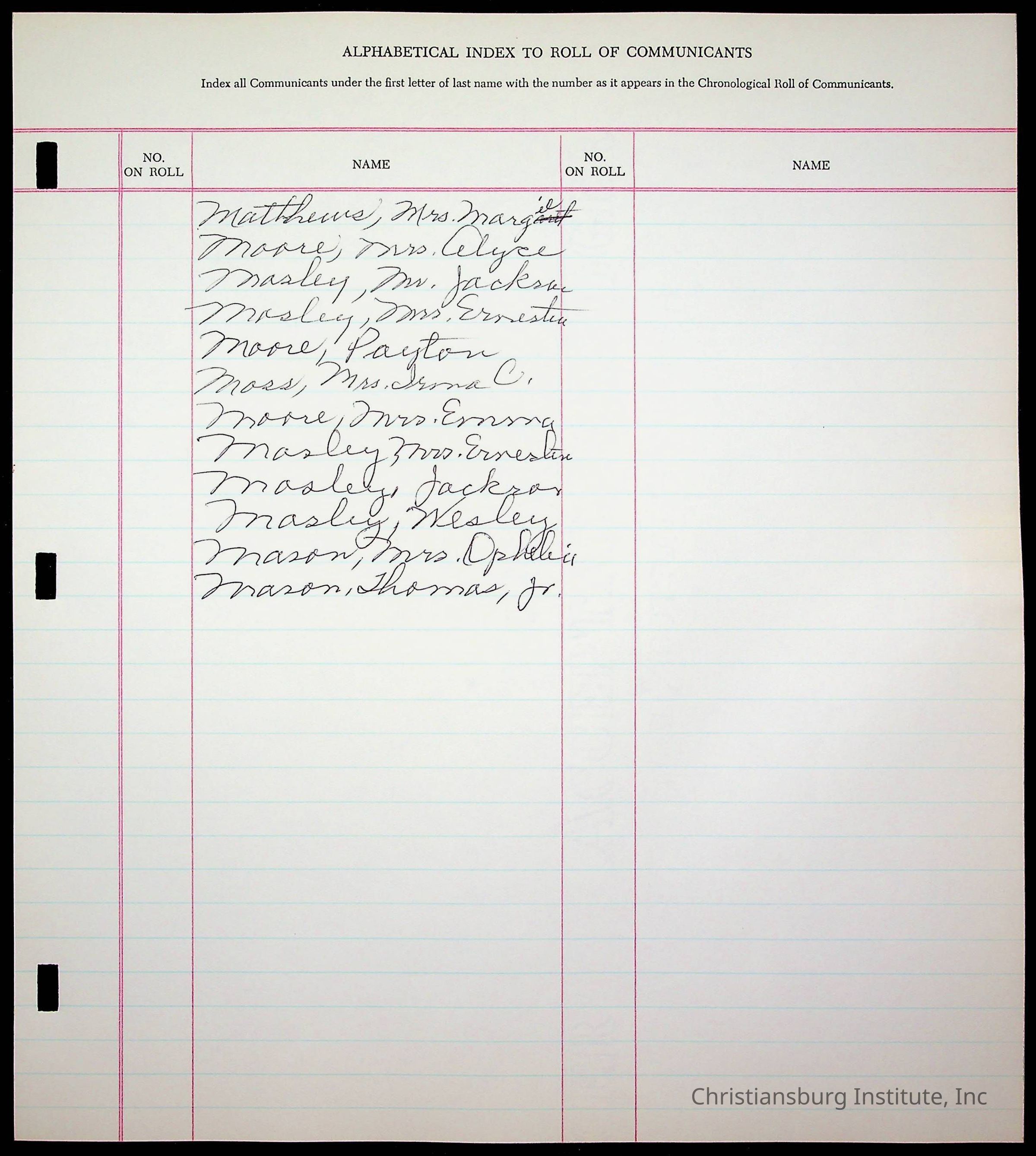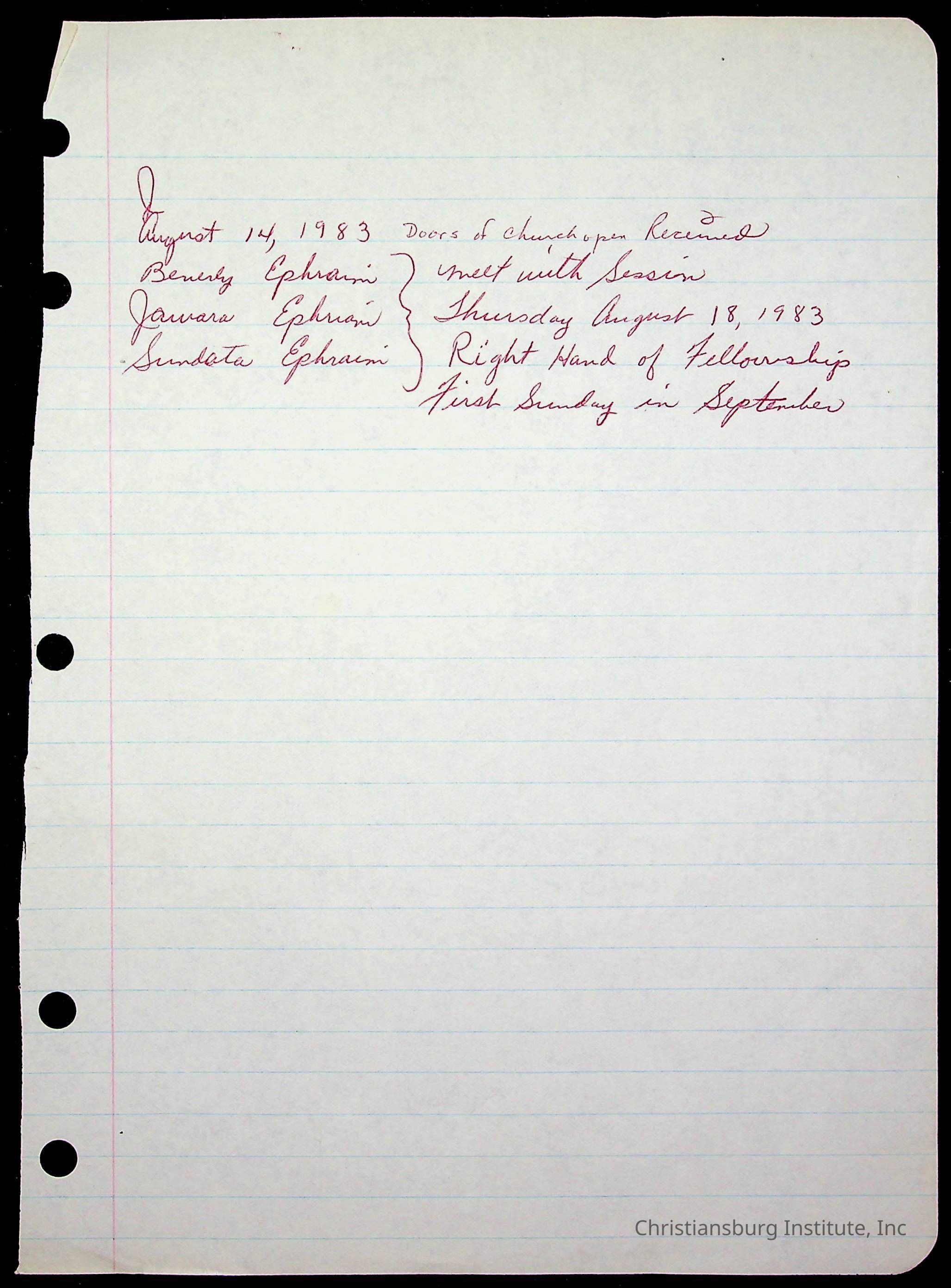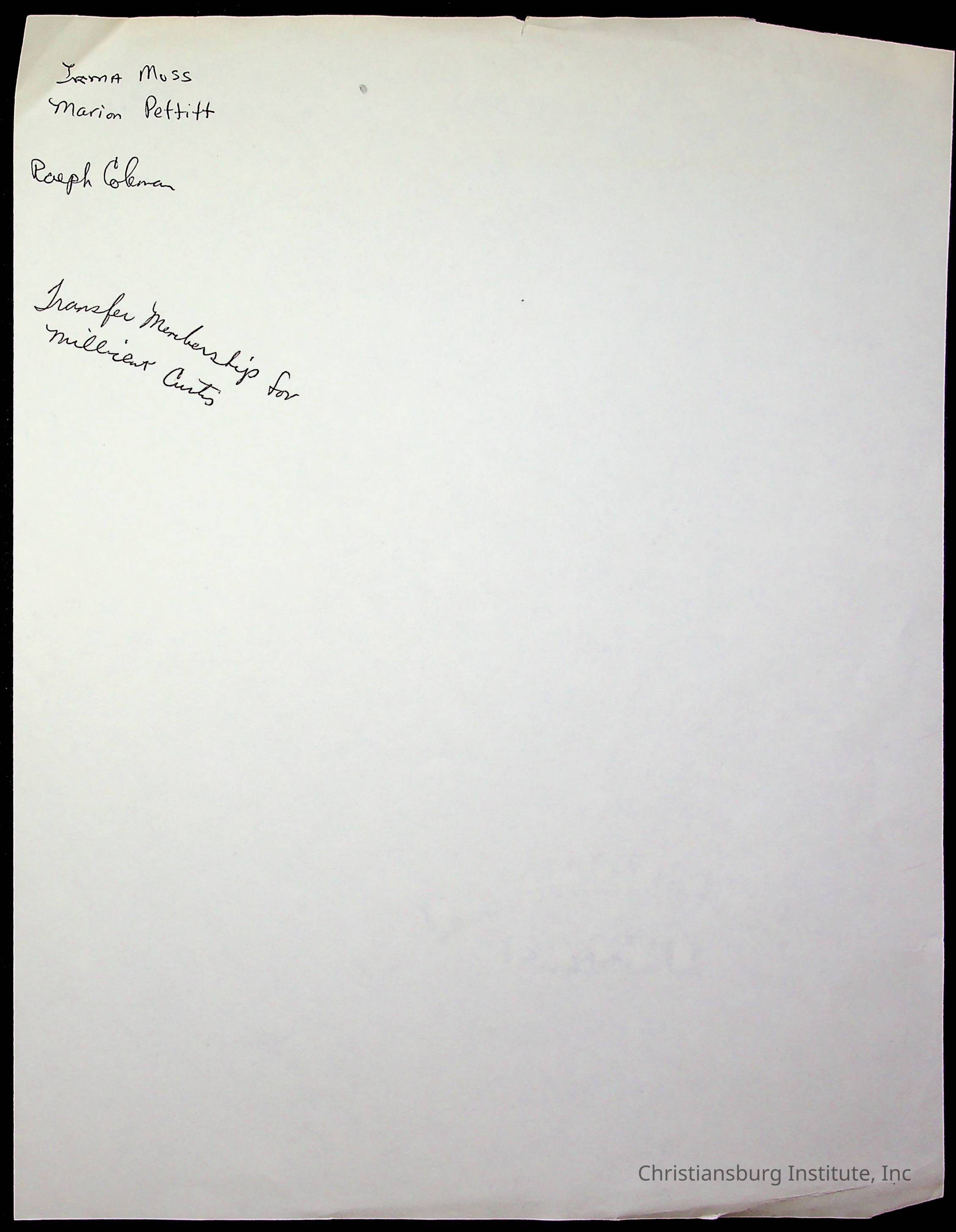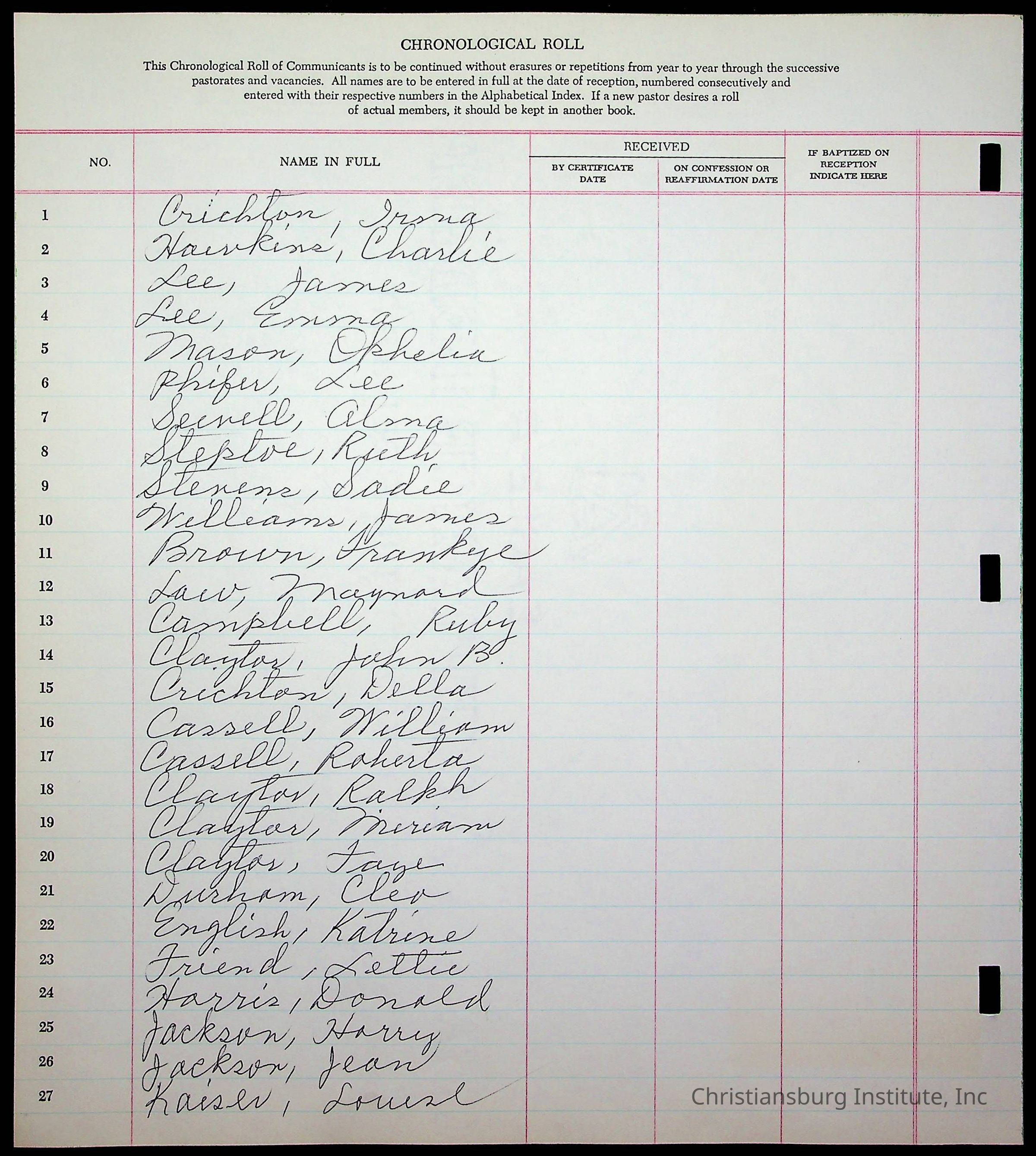 Copyright has been assigned to Christiansburg Institute Museum & Archives by Fifth Avenue Presbyterian Church. For permission to publish materials created by the donor, contact CIMA@christiansburginstitute.com. Materials not created by Fifth Avenue Presbyterian Church may still be under copyright.