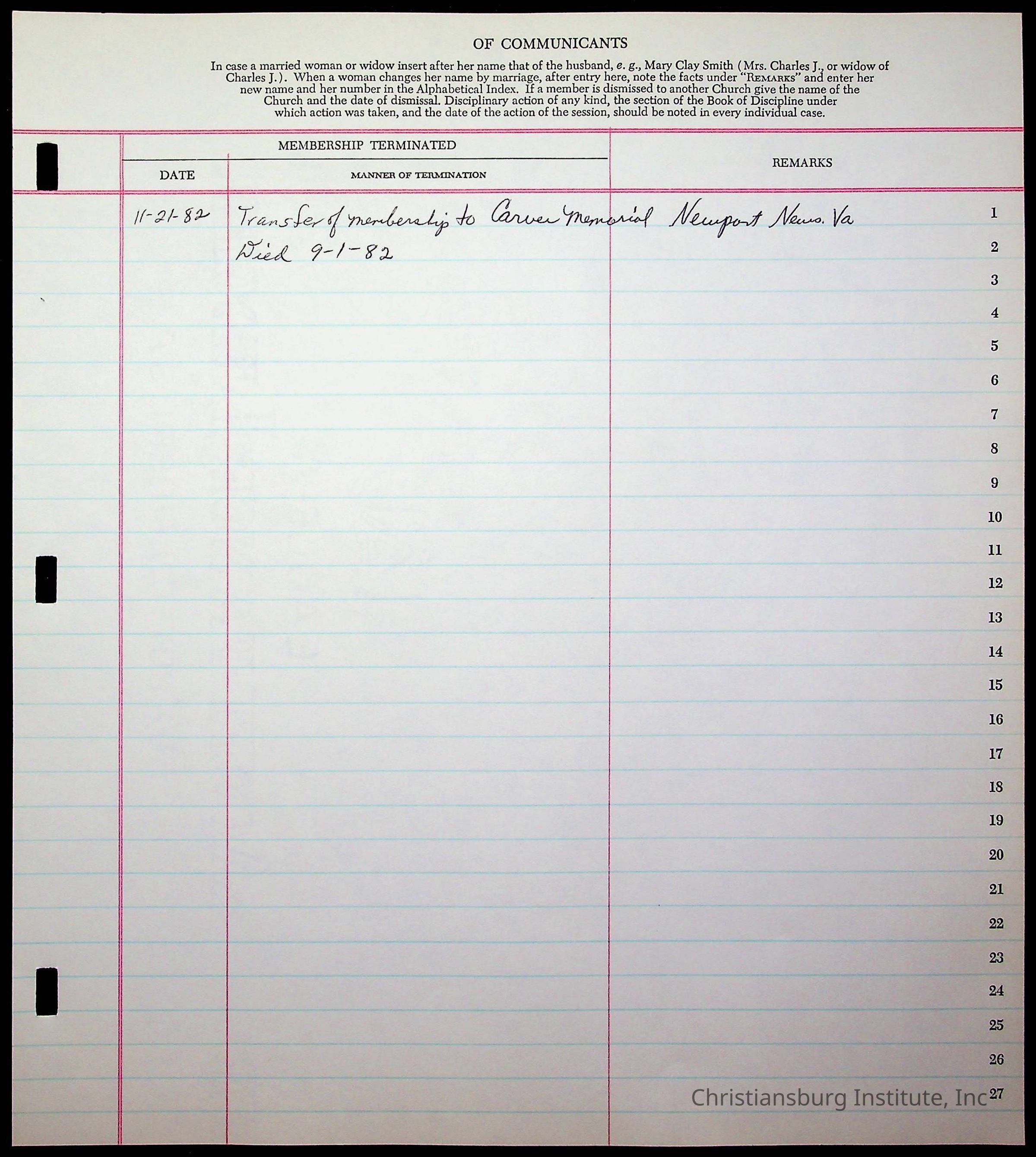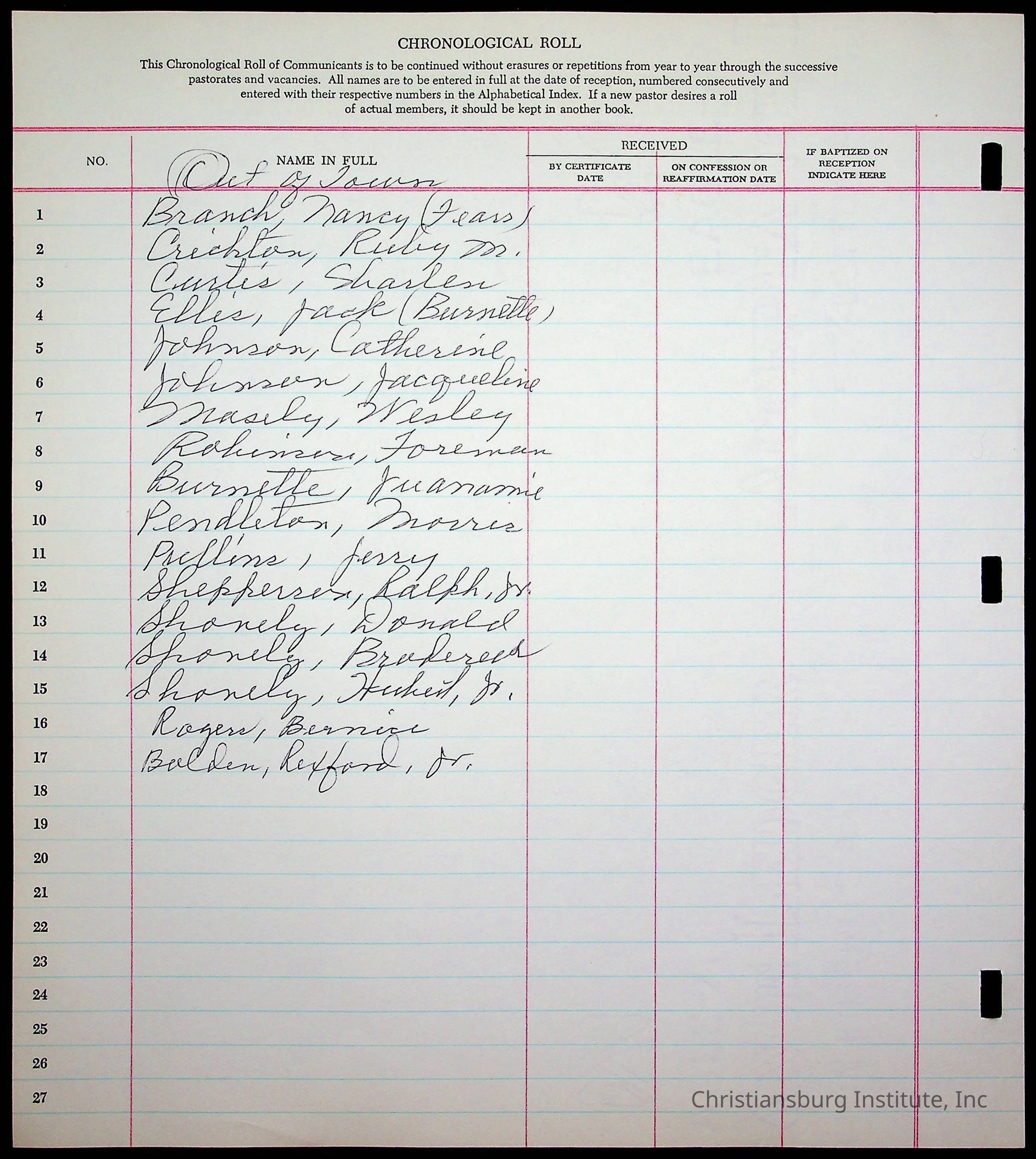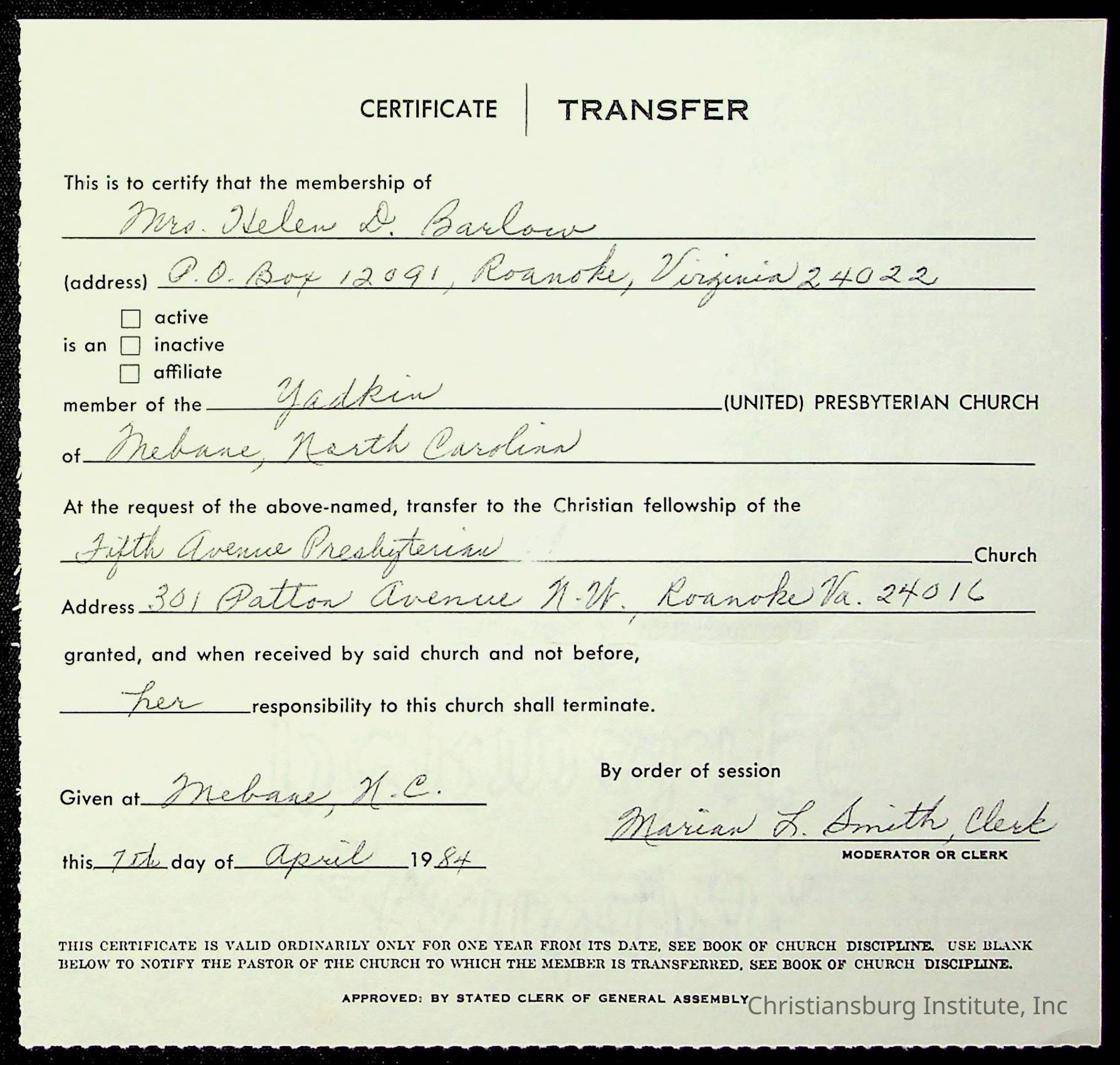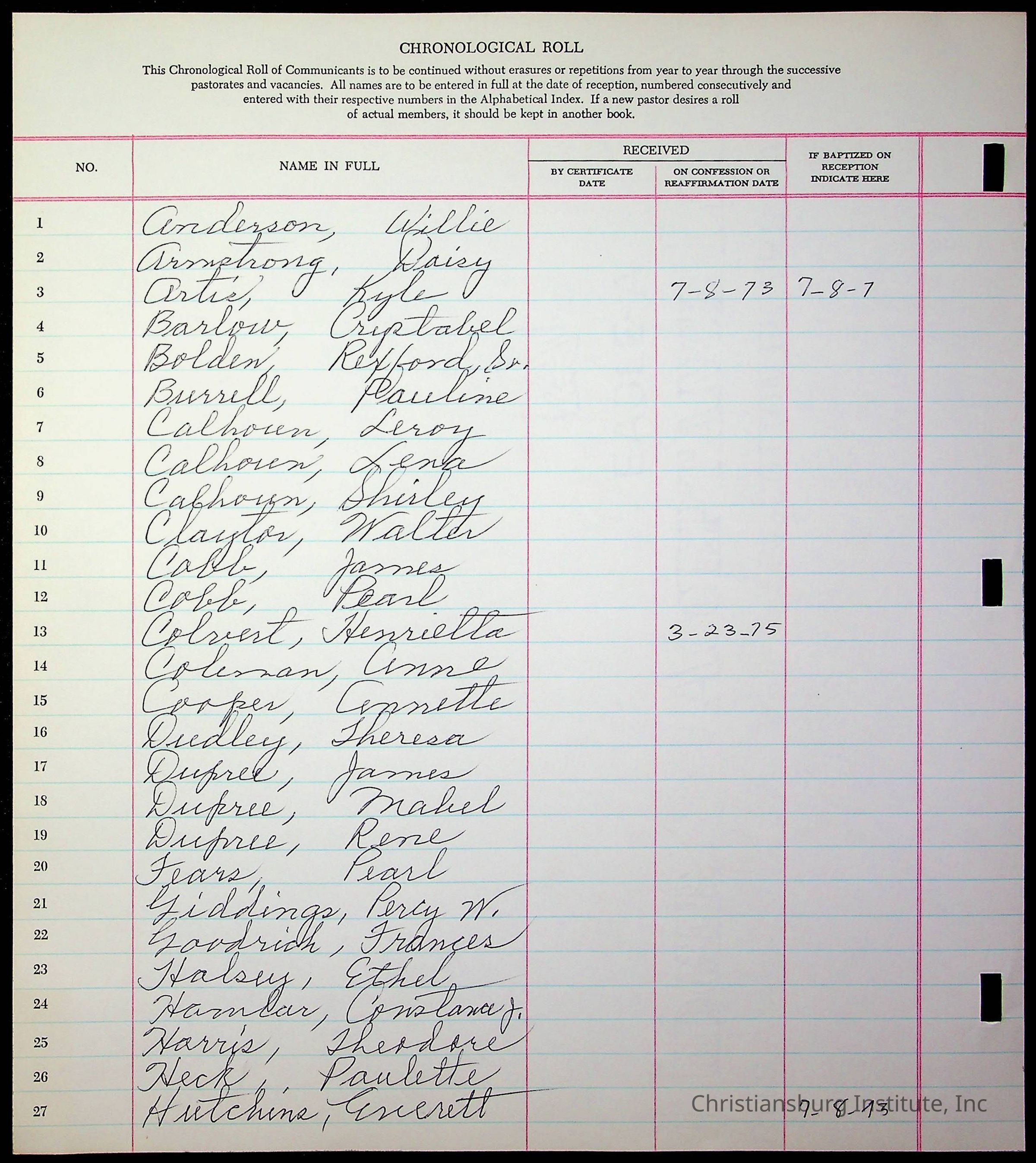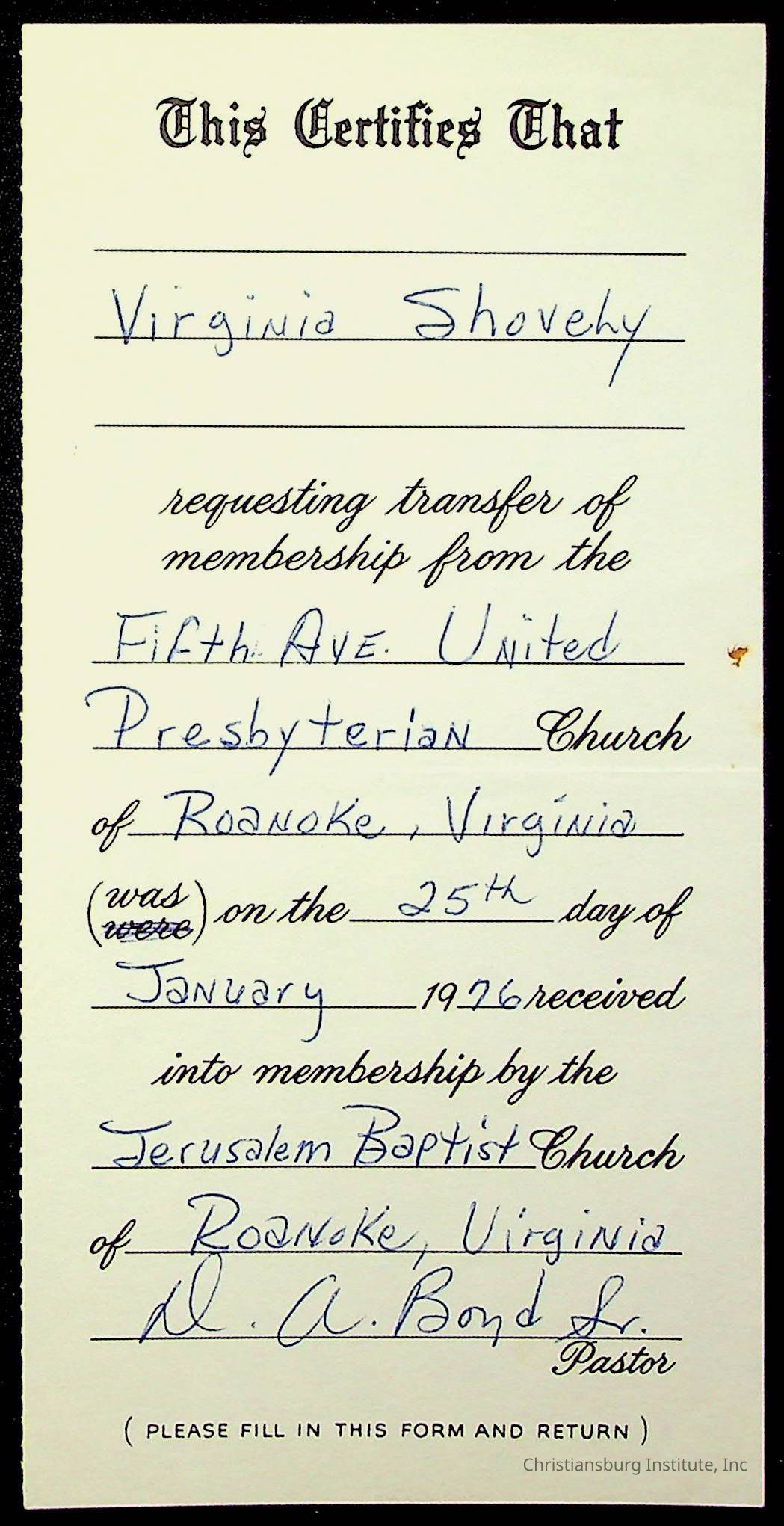 Copyright has been assigned to Christiansburg Institute Museum & Archives by Fifth Avenue Presbyterian Church. For permission to publish materials created by the donor, contact CIMA@christiansburginstitute.com. Materials not created by Fifth Avenue Presbyterian Church may still be under copyright.