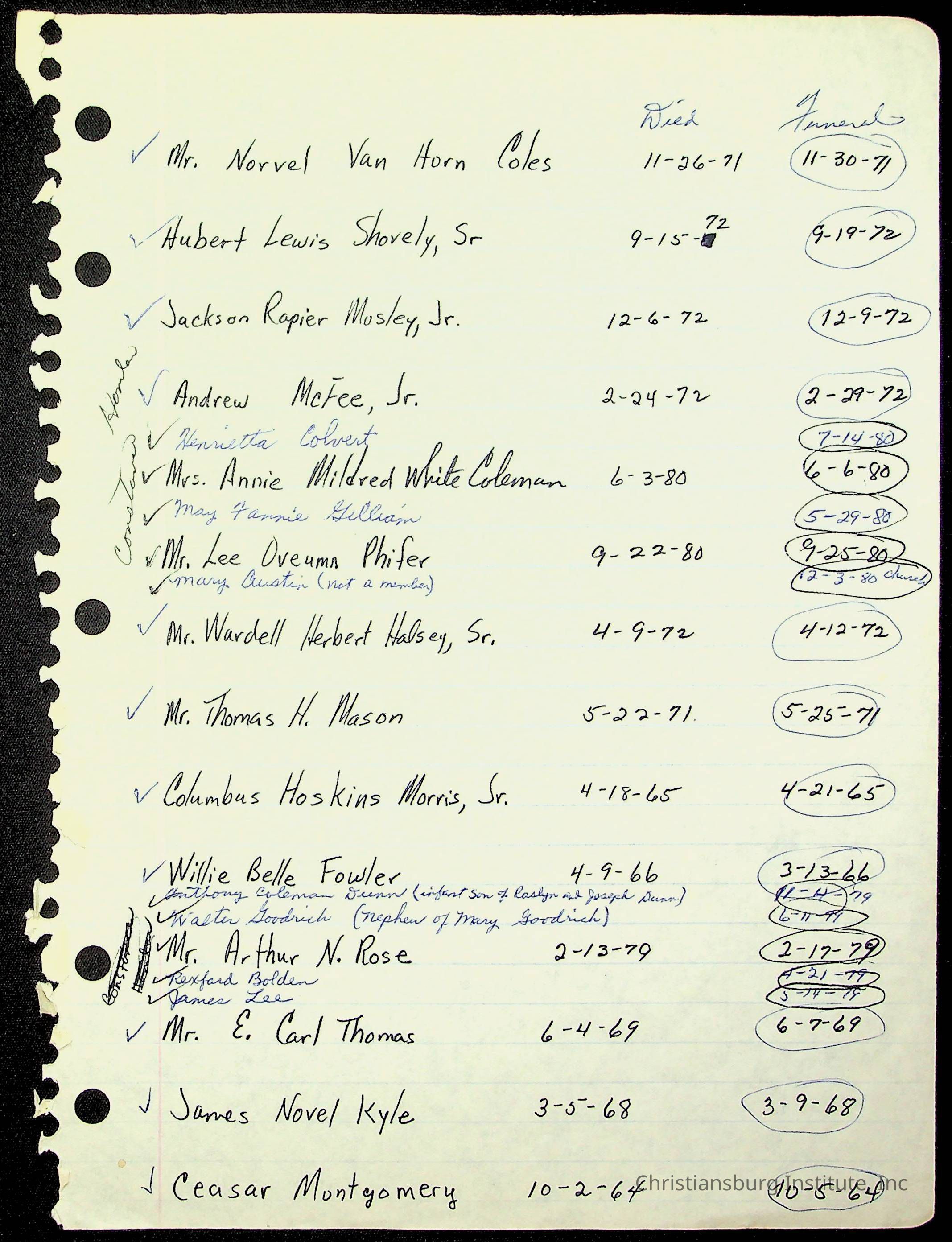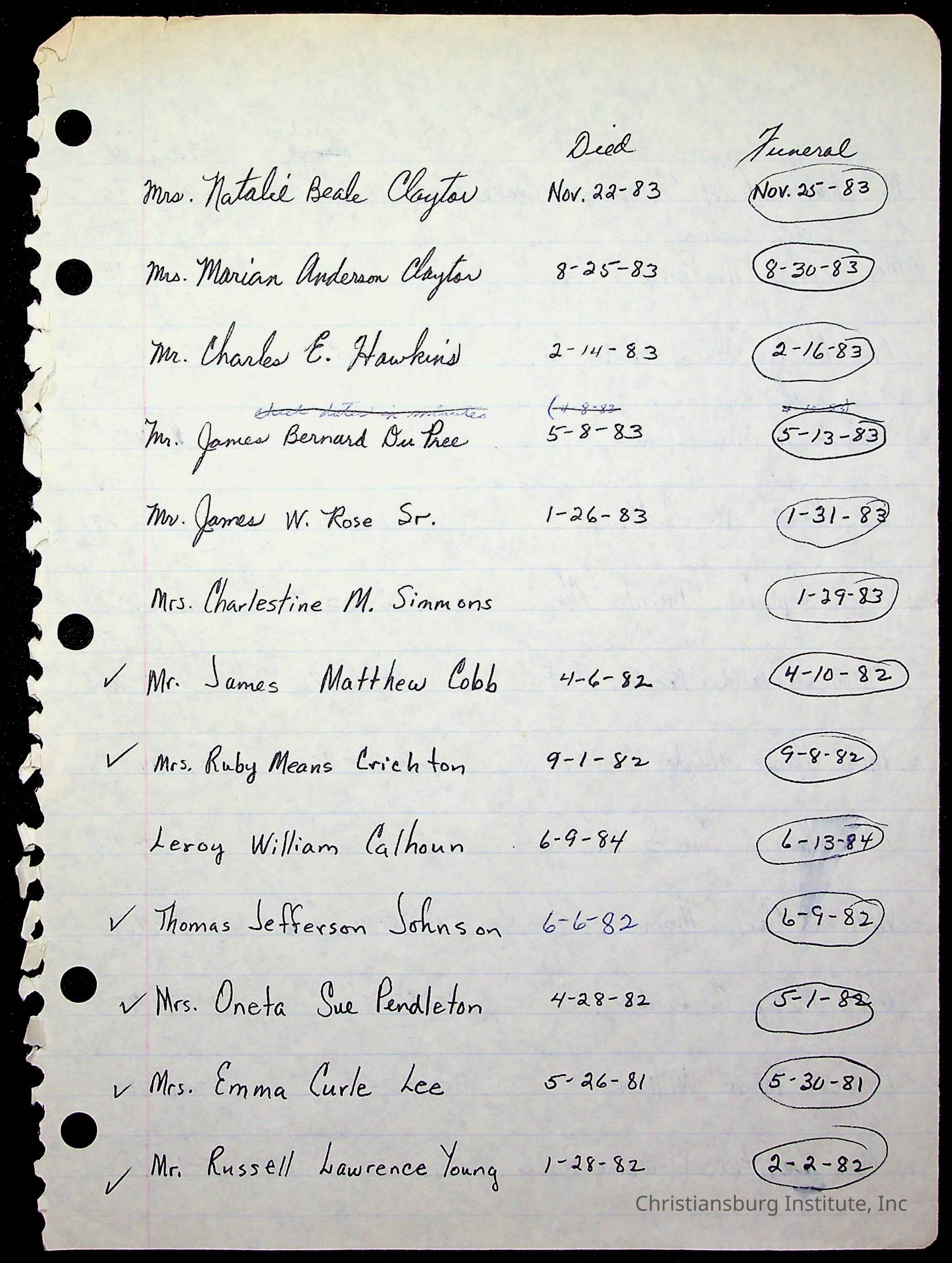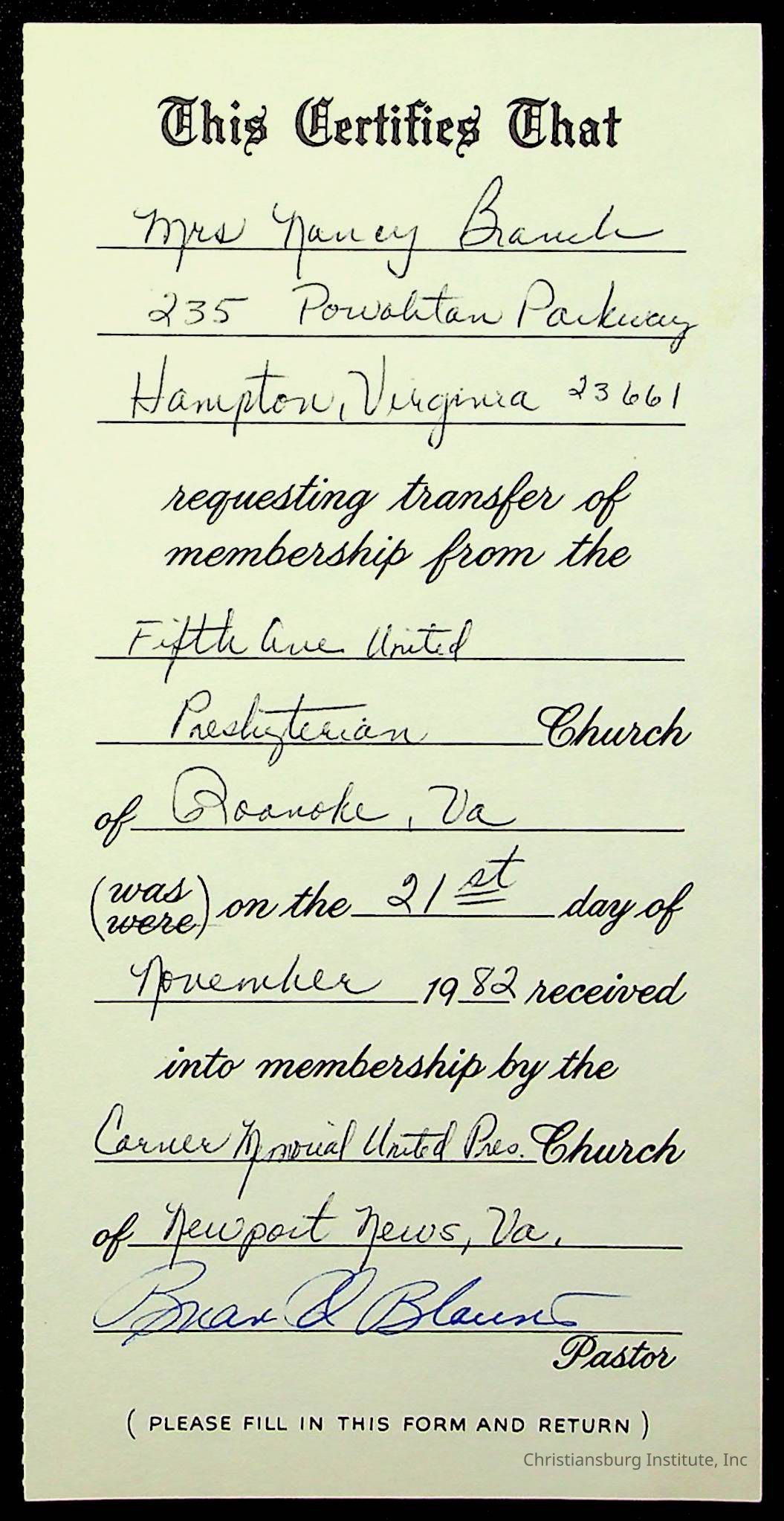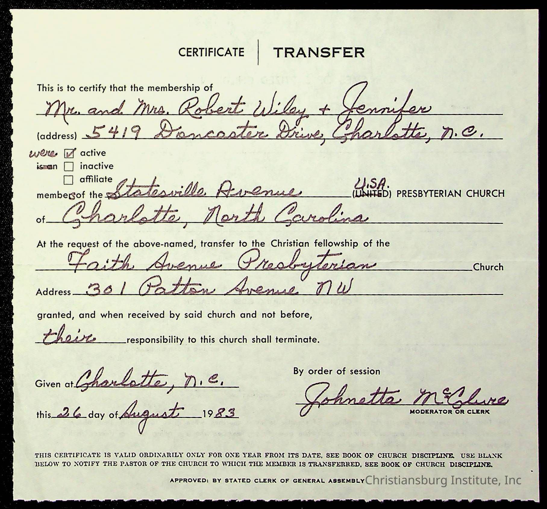 Copyright has been assigned to Christiansburg Institute Museum & Archives by Fifth Avenue Presbyterian Church. For permission to publish materials created by the donor, contact CIMA@christiansburginstitute.com. Materials not created by Fifth Avenue Presbyterian Church may still be under copyright.