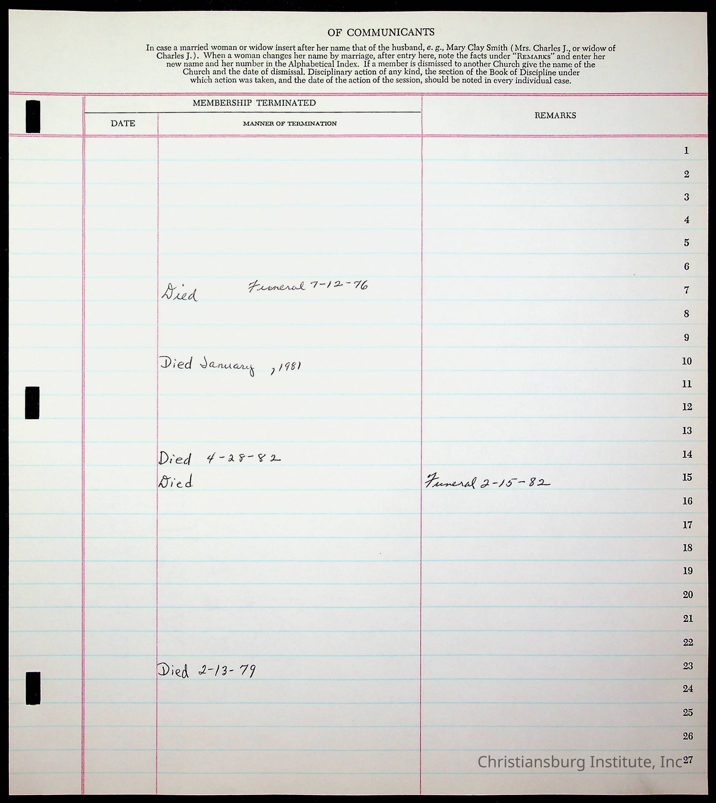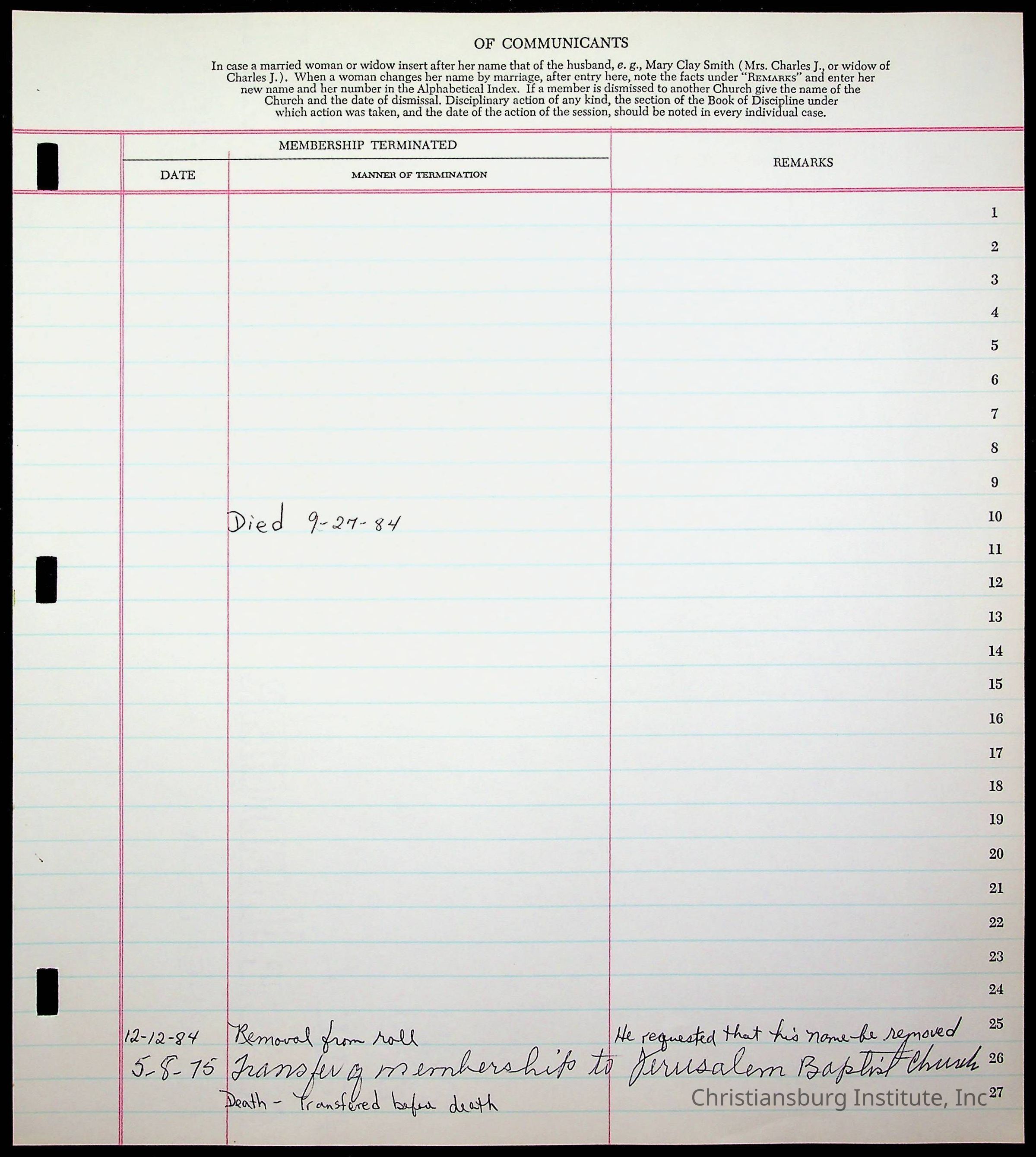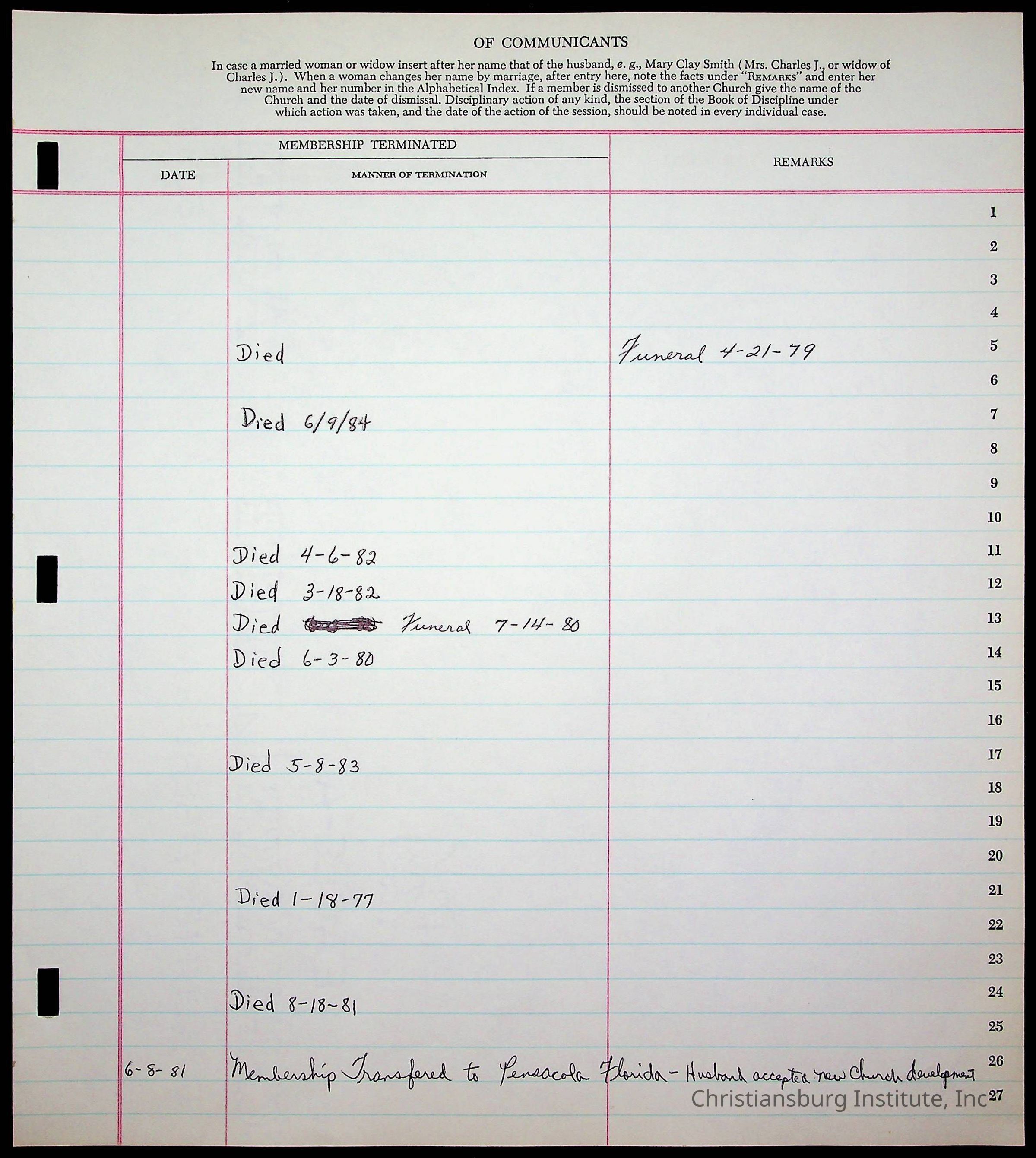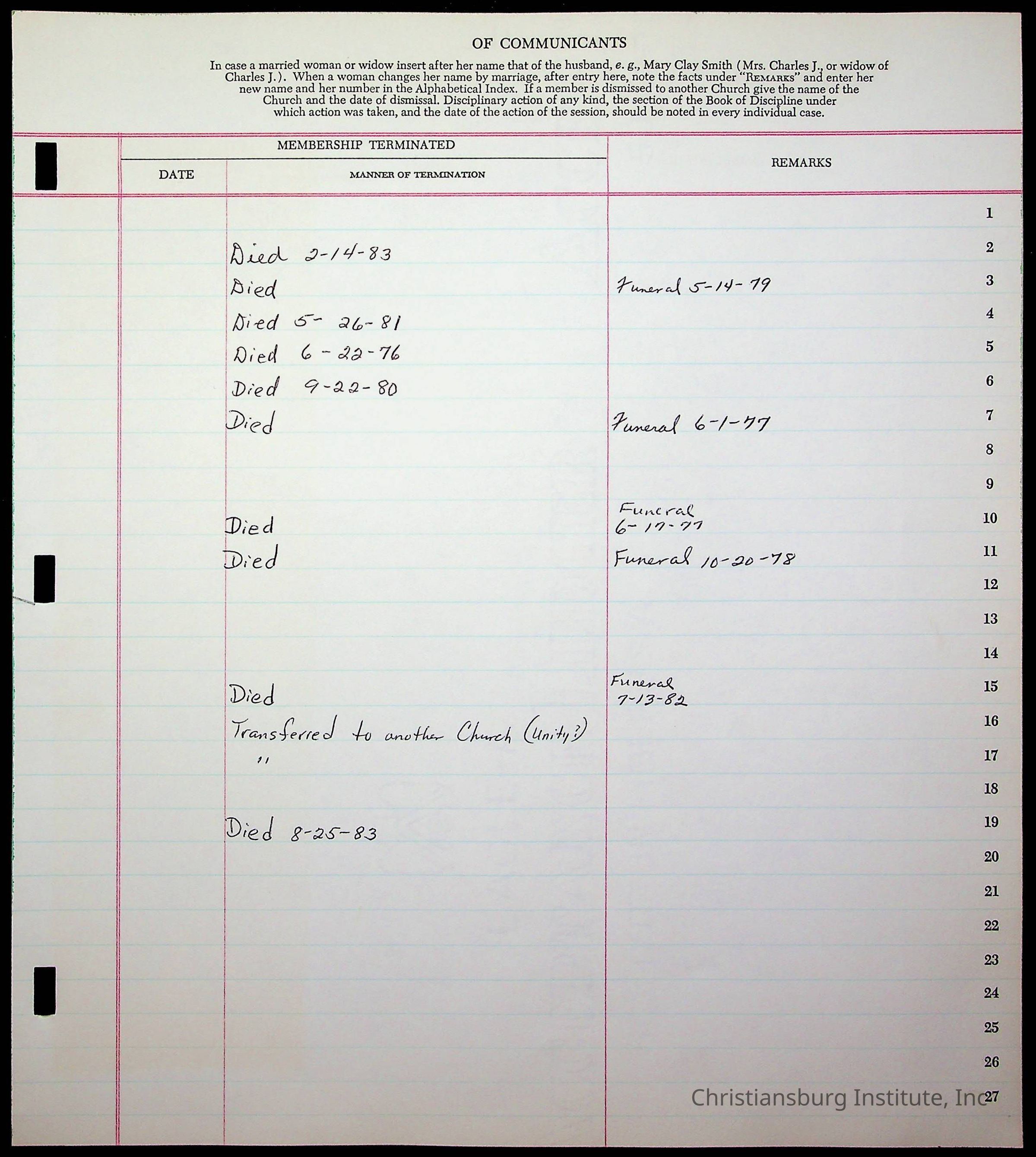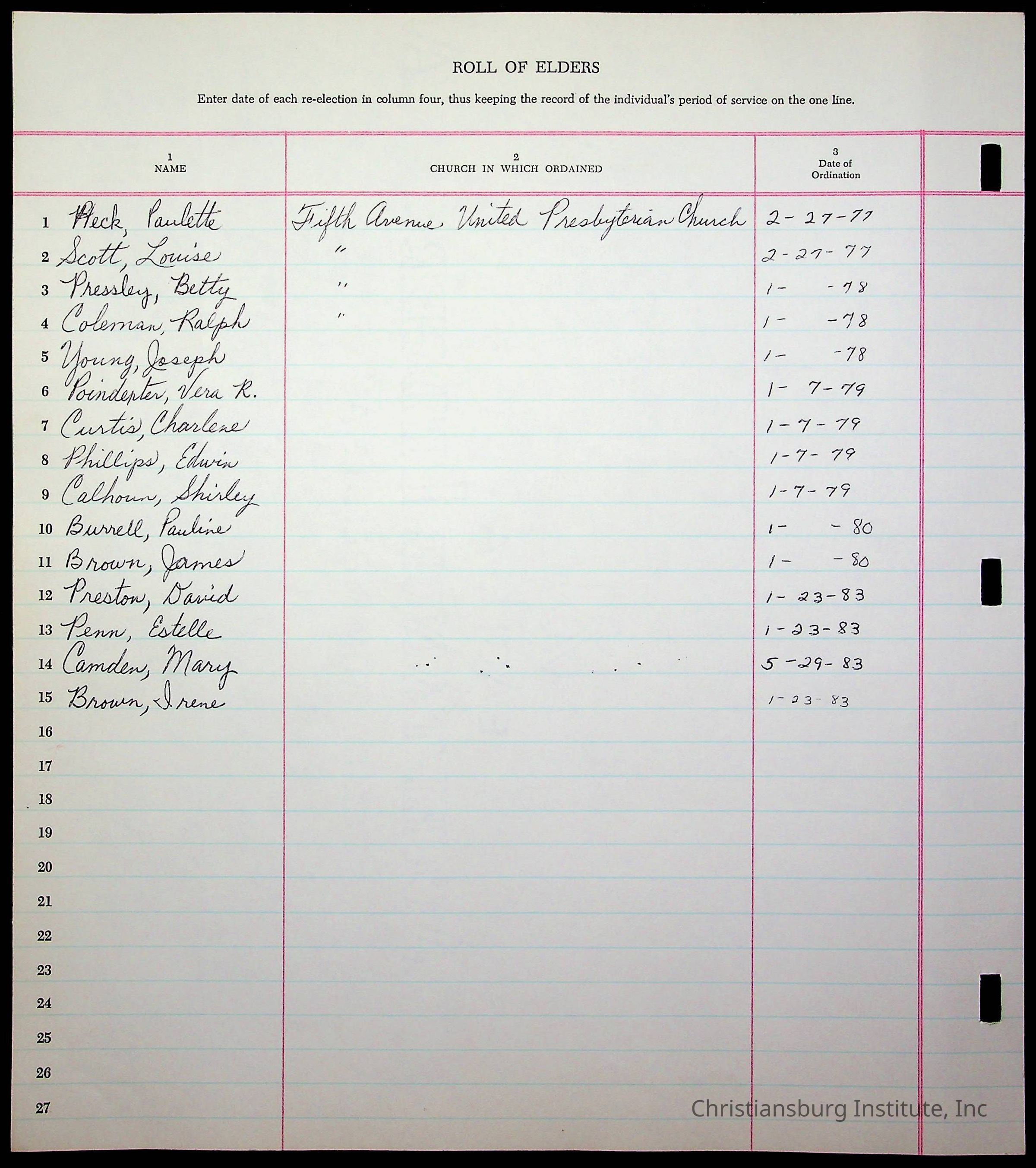 The church membership register for the Fifth Avenue Presbyterian Church from the years 1977-1989.Collection
