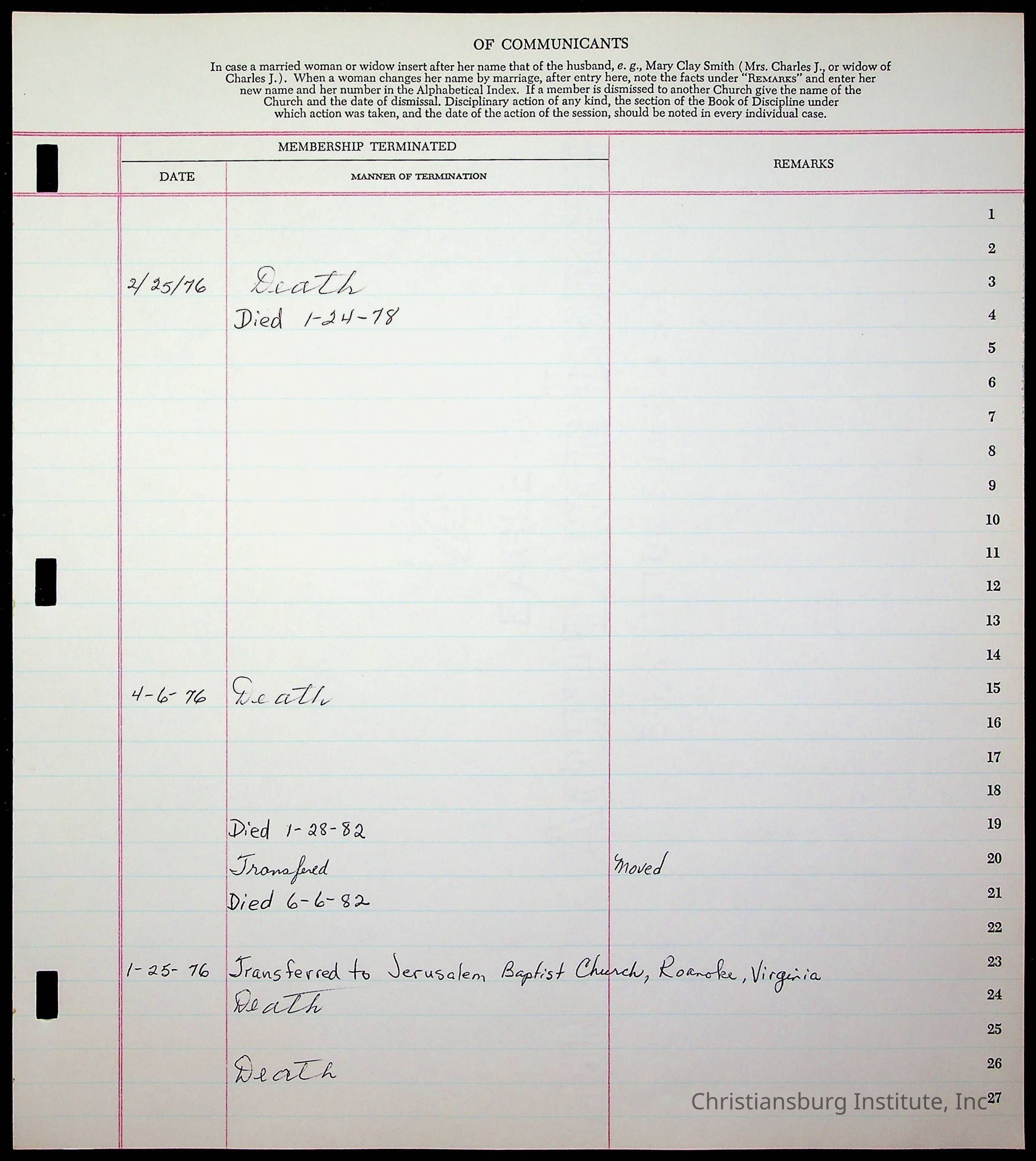 1977-1989 Fifth Ave Presbyterian Church MembershipScope and Content