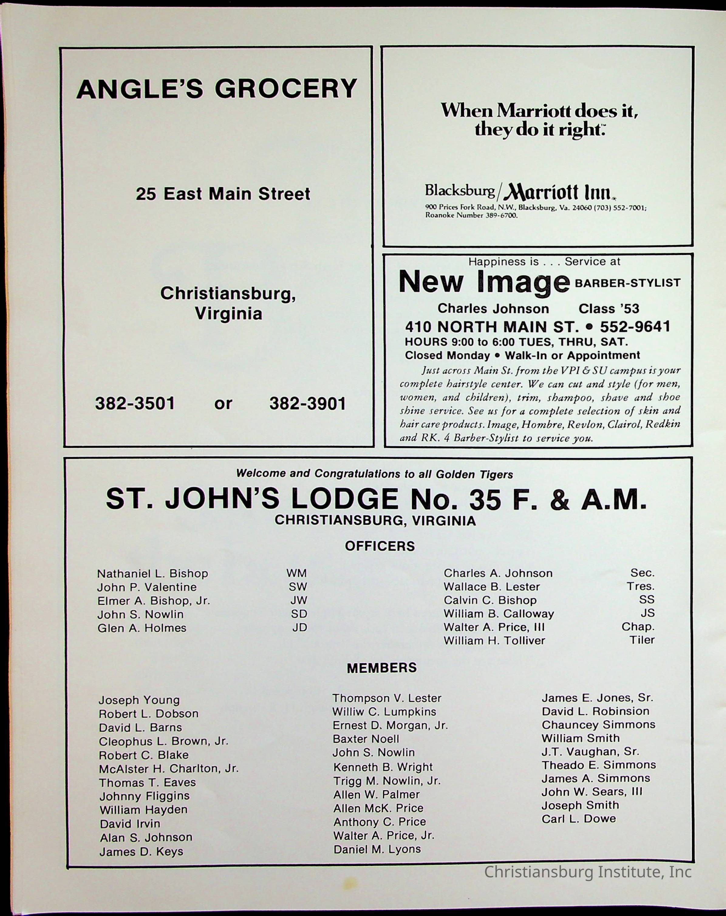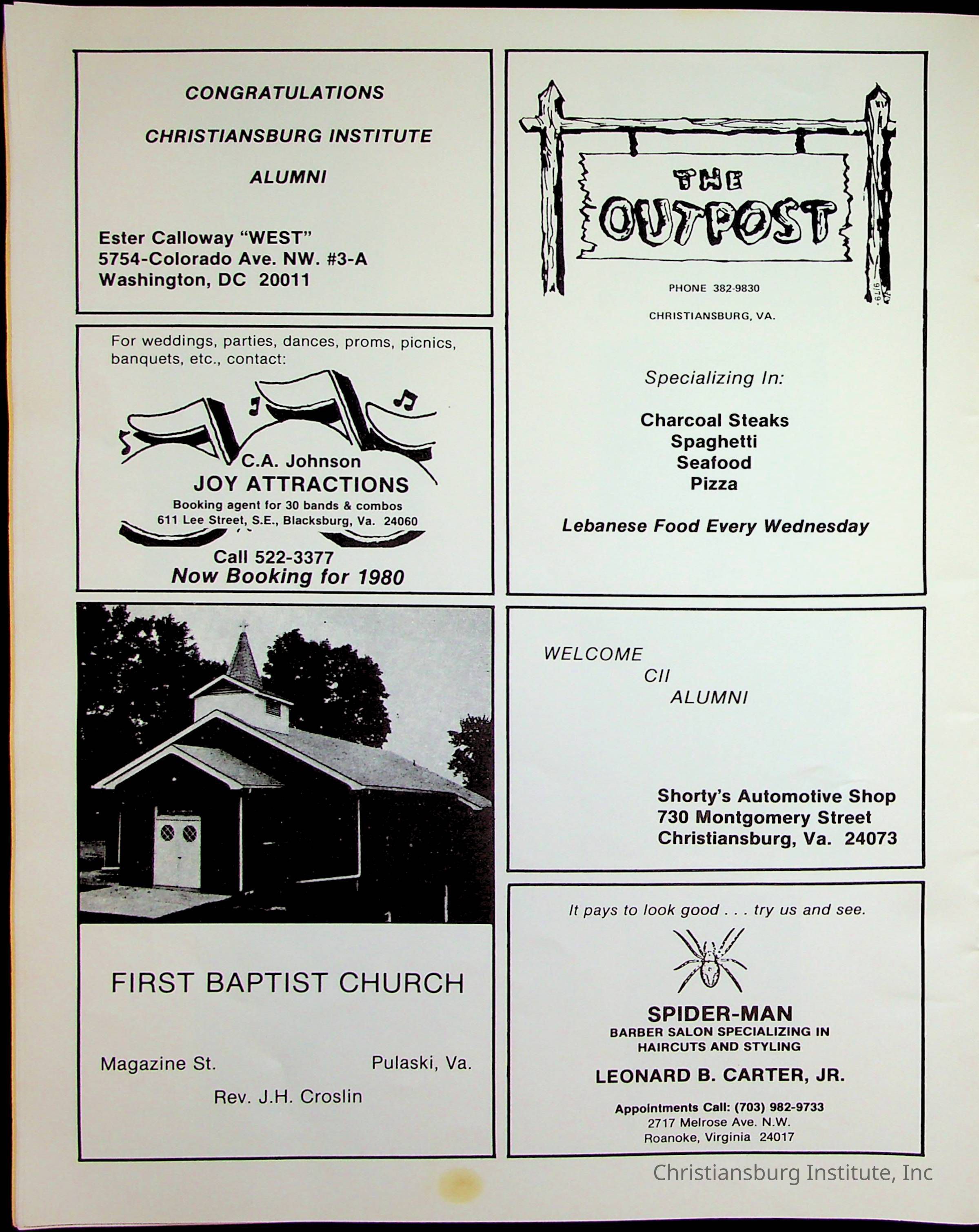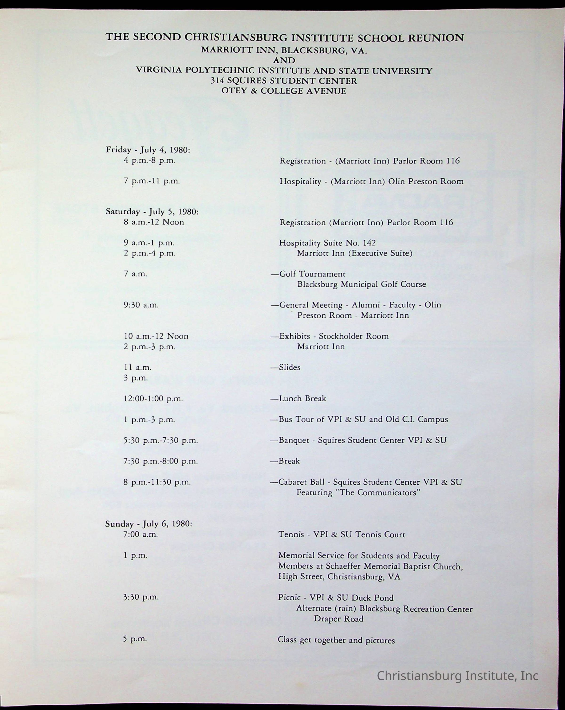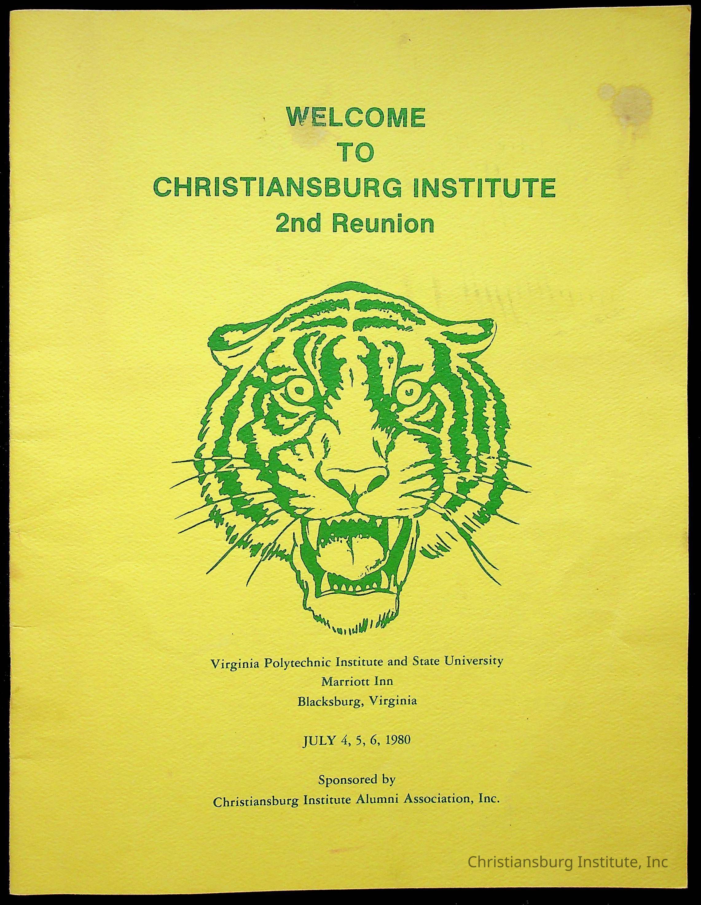 The official program and souvenir book for the Christiansburg Institute Alumni Association reunion that took place on July 4th-6th 1980 at the Marriott Inn in Blacksburg, Virginia.