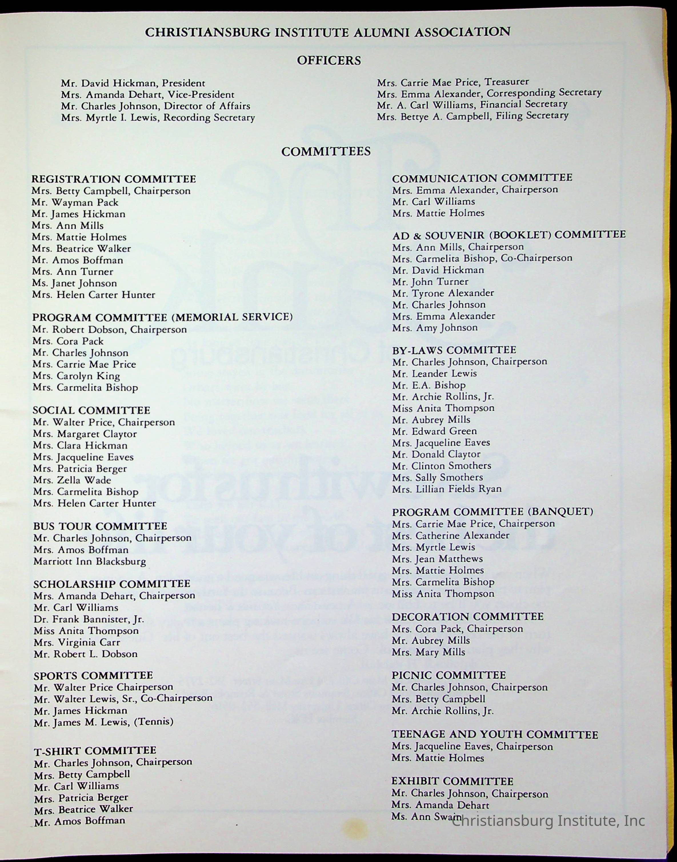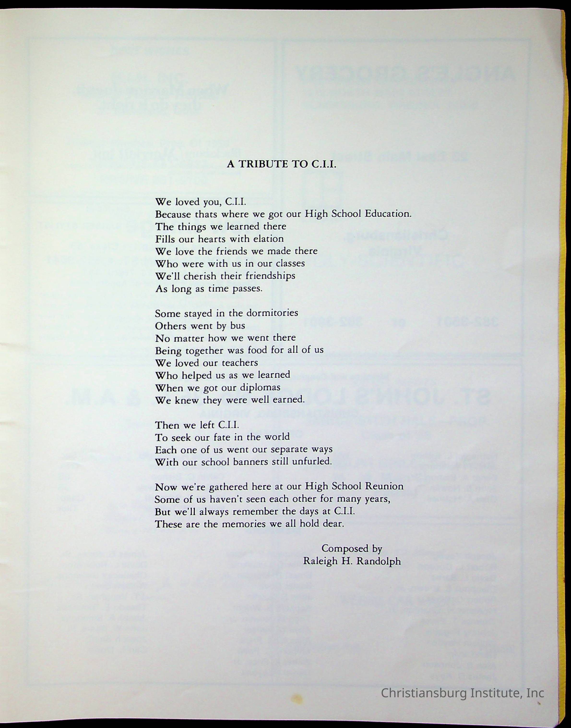 Christiansburg Institute Alumni Association Reunion Booklet