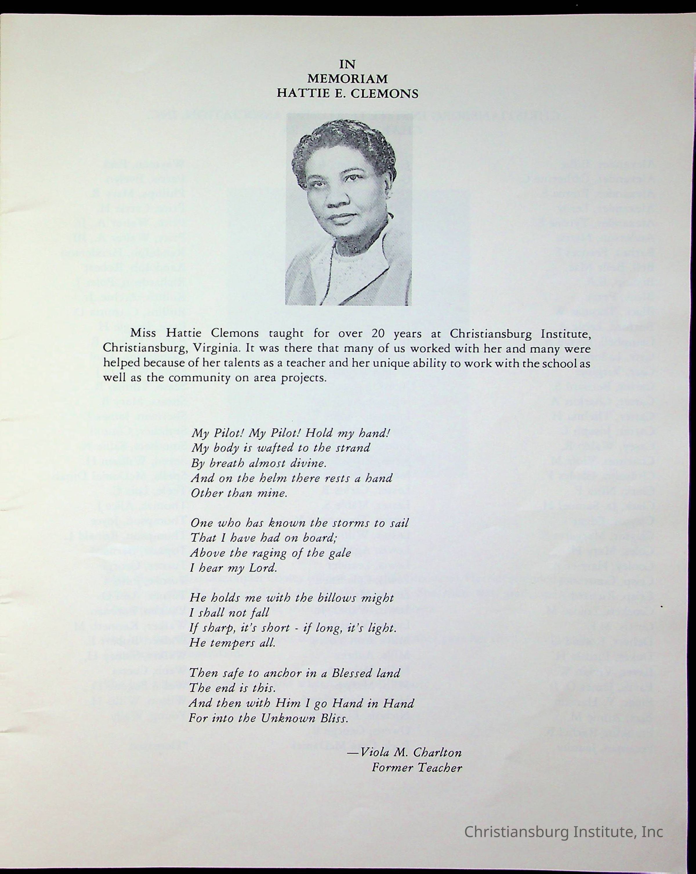 DeHart, Amanda, Christiansburg Institute Alumni Association