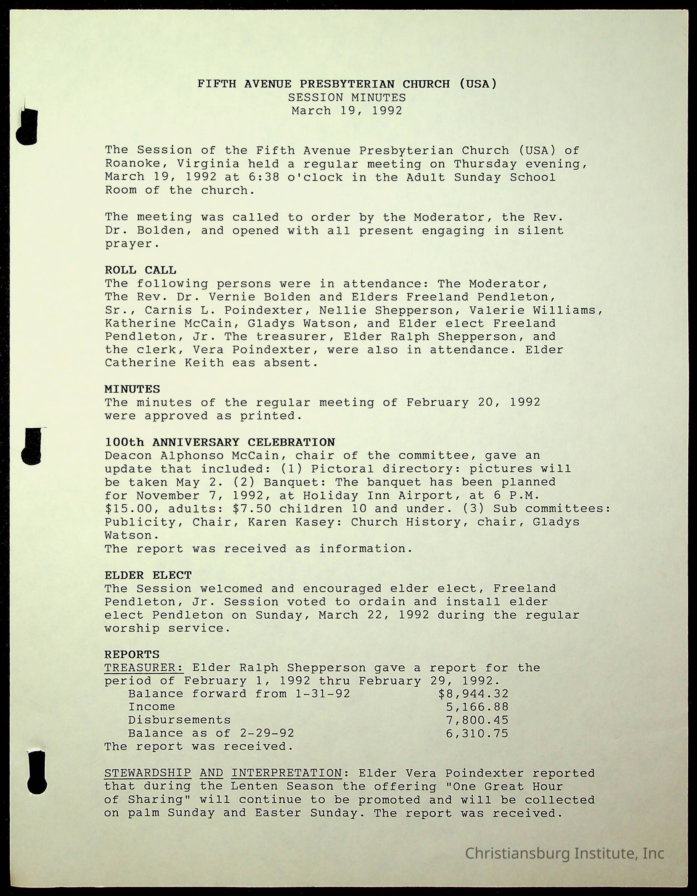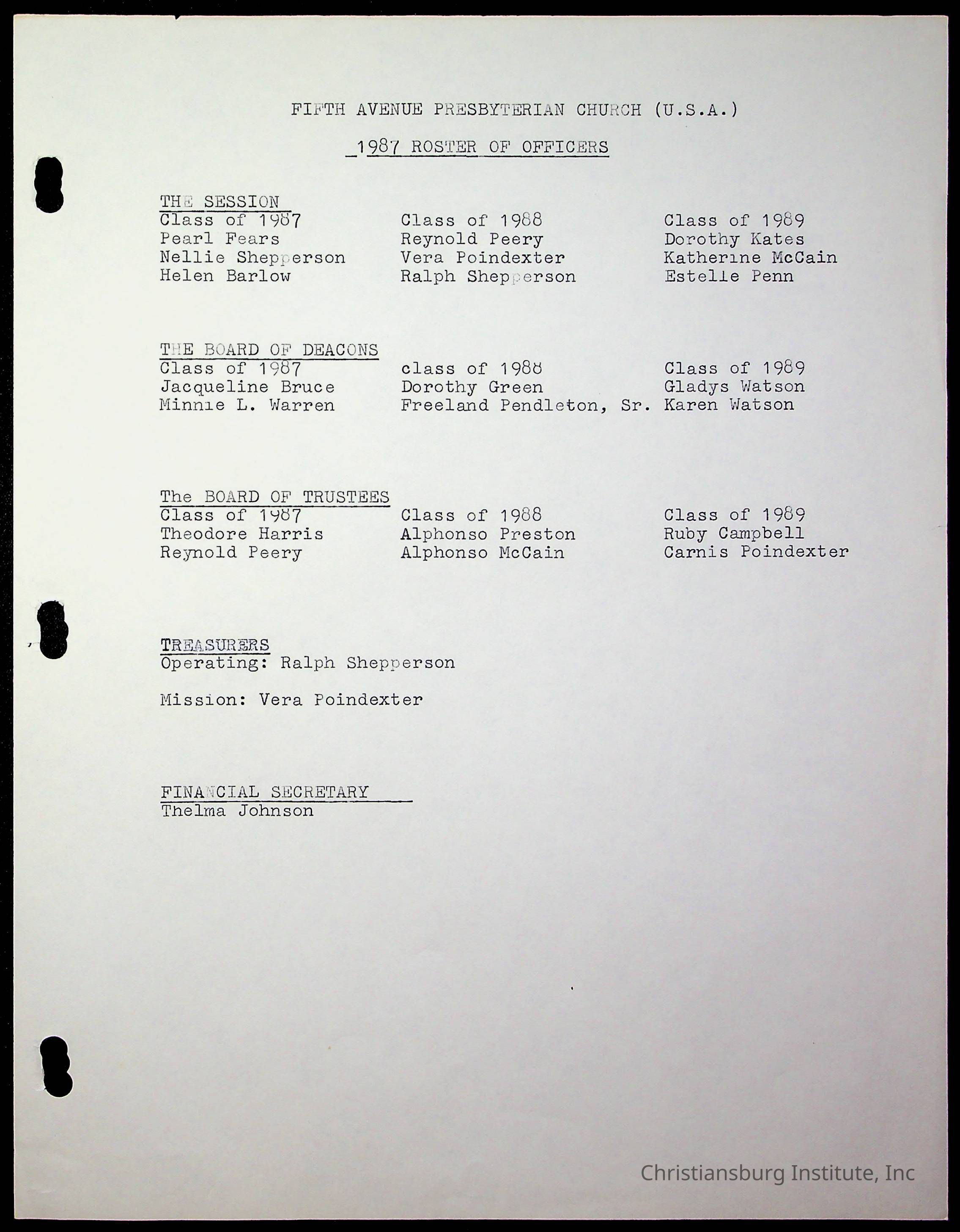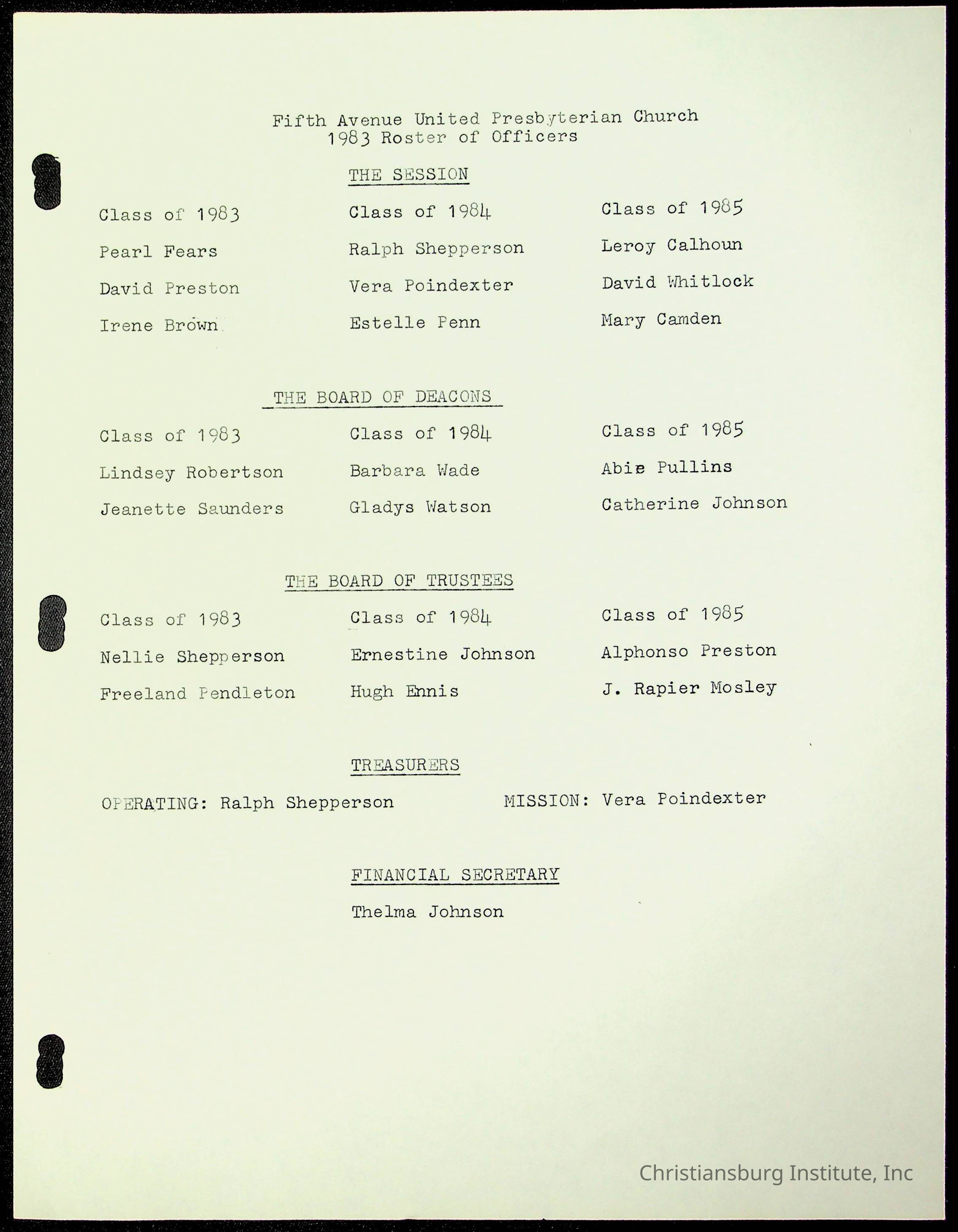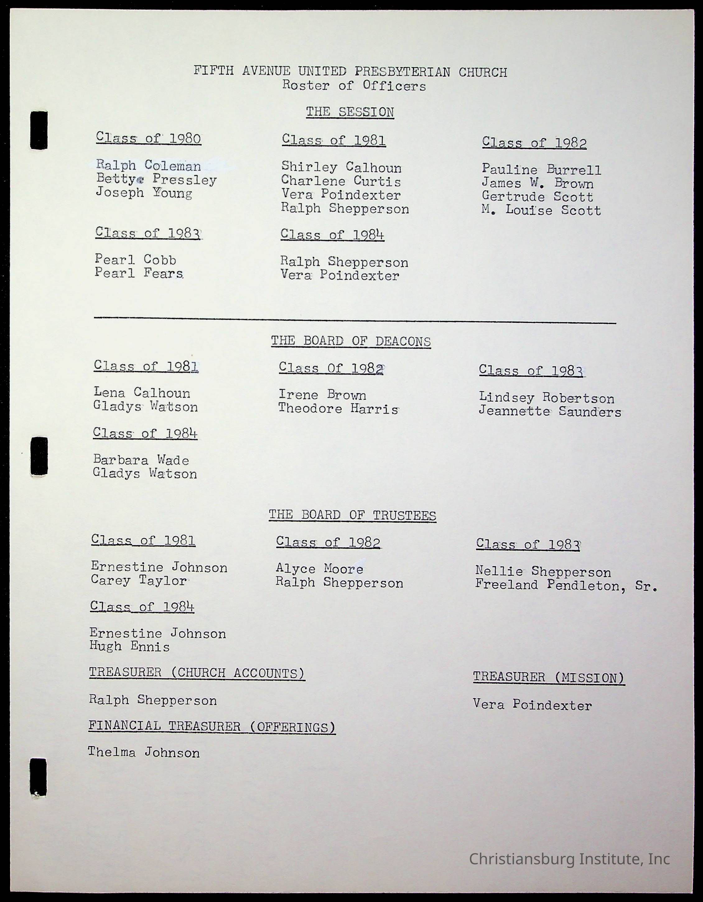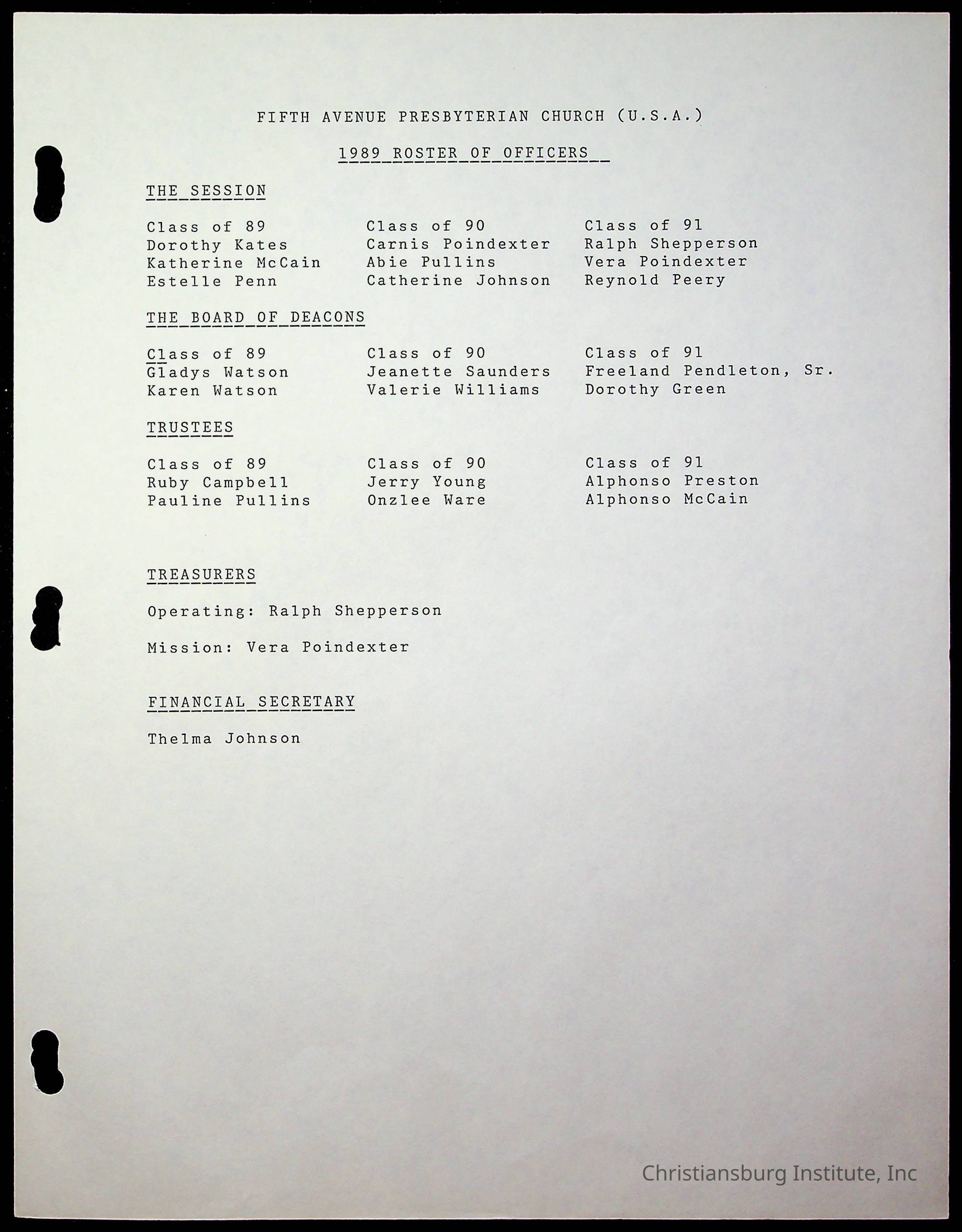 Copyright has been assigned to Christiansburg Institute Museum & Archives by Fifth Avenue Presbyterian Church. For permission to publish materials created by the donor, contact CIMA@christiansburginstitute.com. Materials not created by Fifth Avenue Presbyterian Church may still be under copyright.