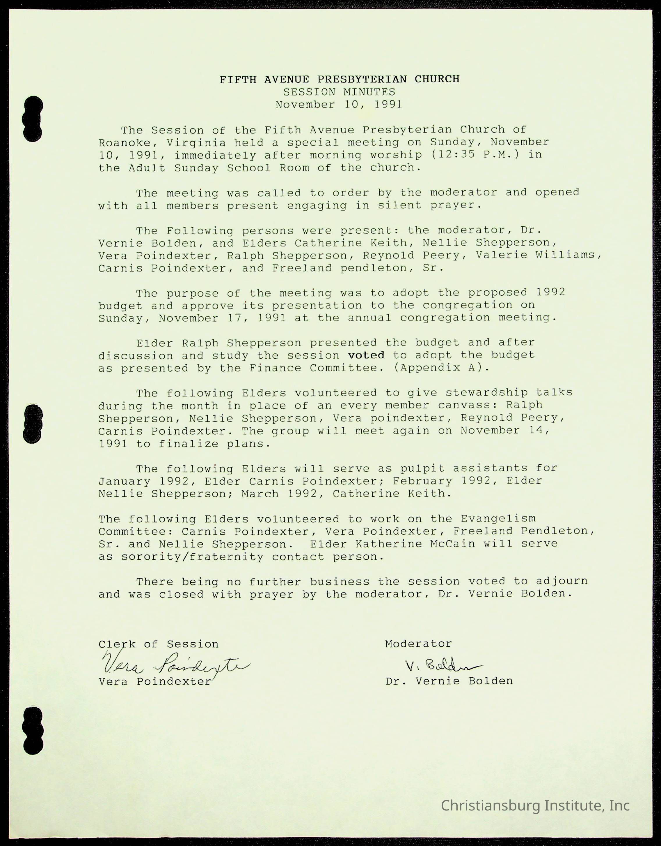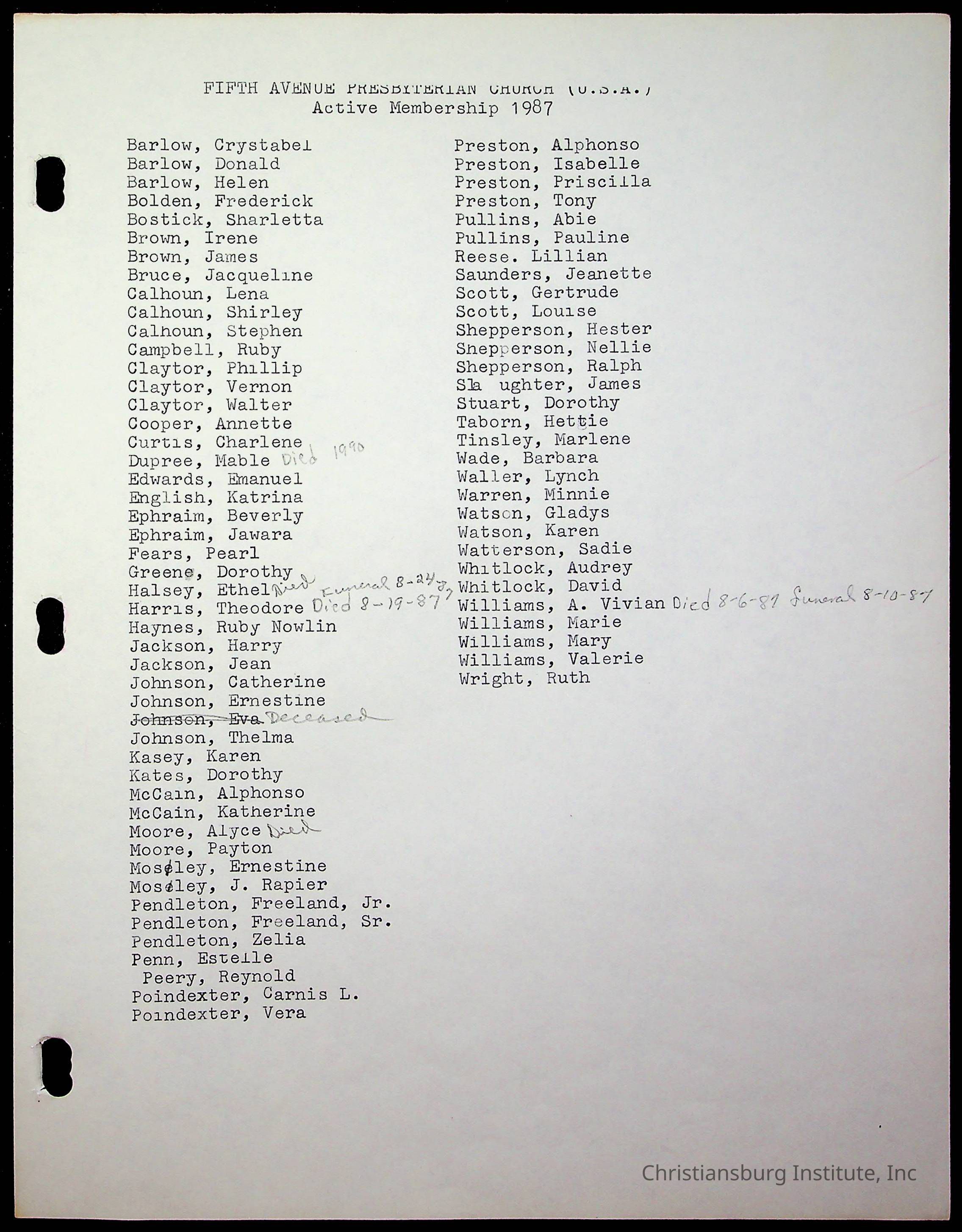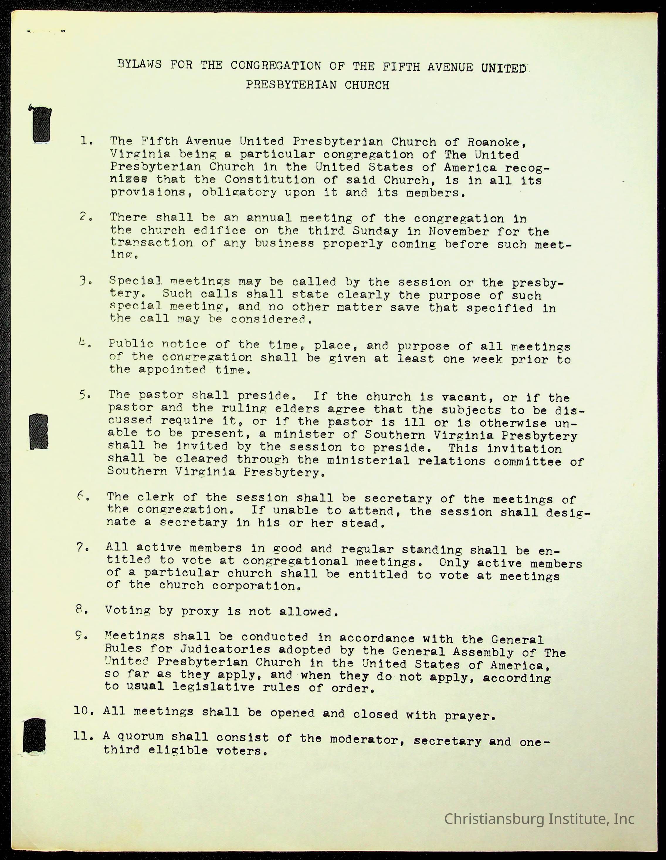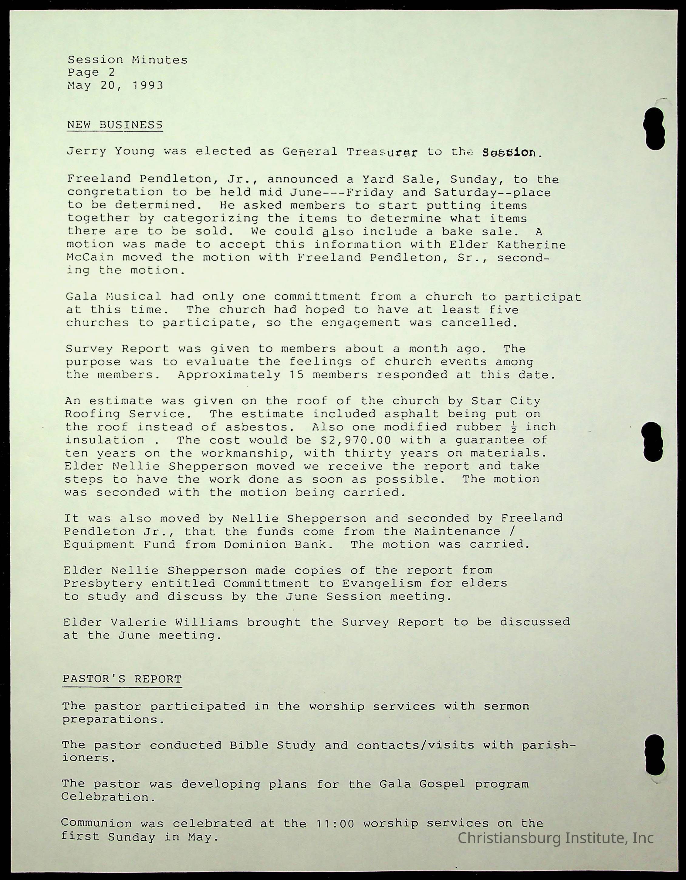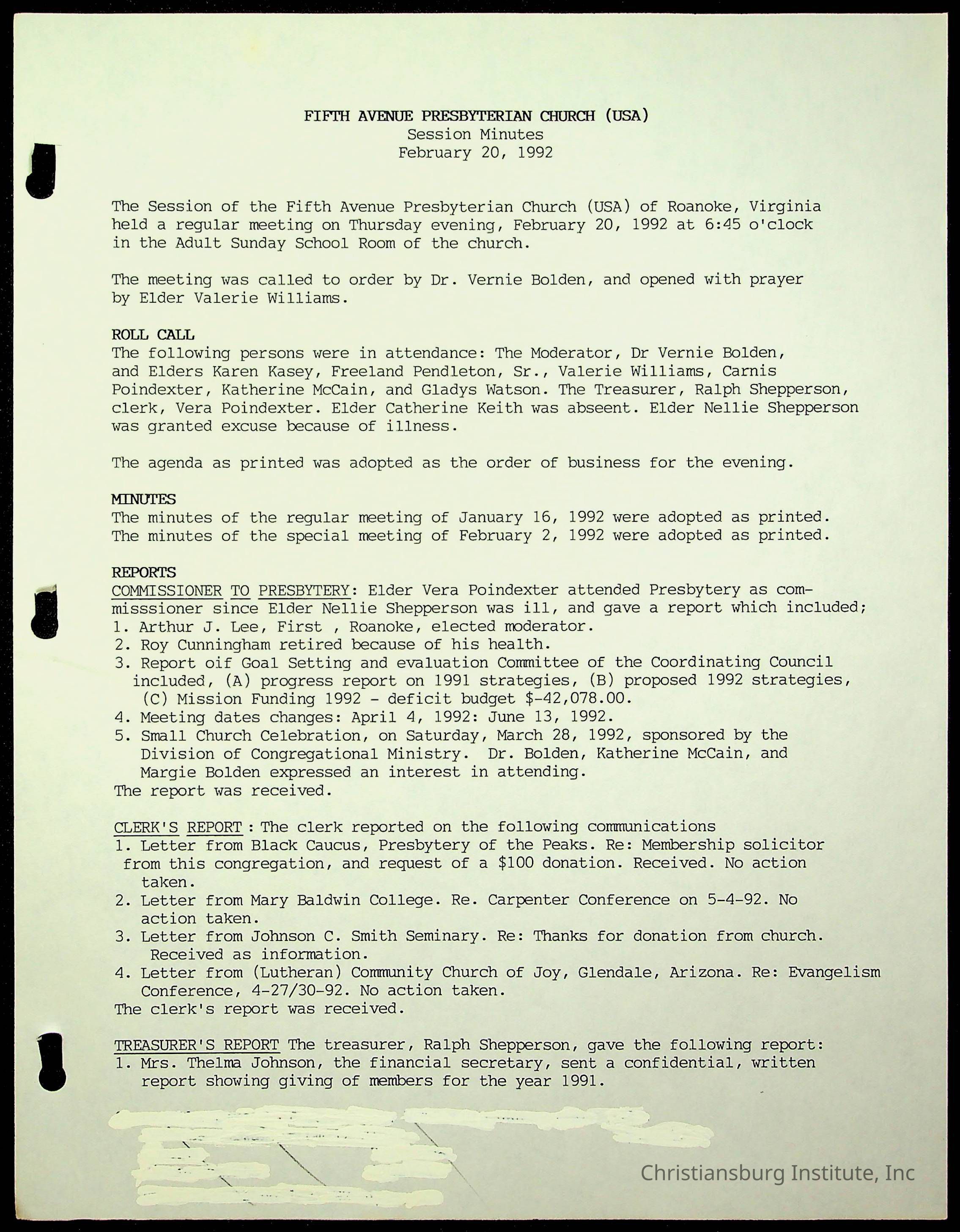 Copyright has been assigned to Christiansburg Institute Museum & Archives by Fifth Avenue Presbyterian Church. For permission to publish materials created by the donor, contact CIMA@christiansburginstitute.com. Materials not created by Fifth Avenue Presbyterian Church may still be under copyright.