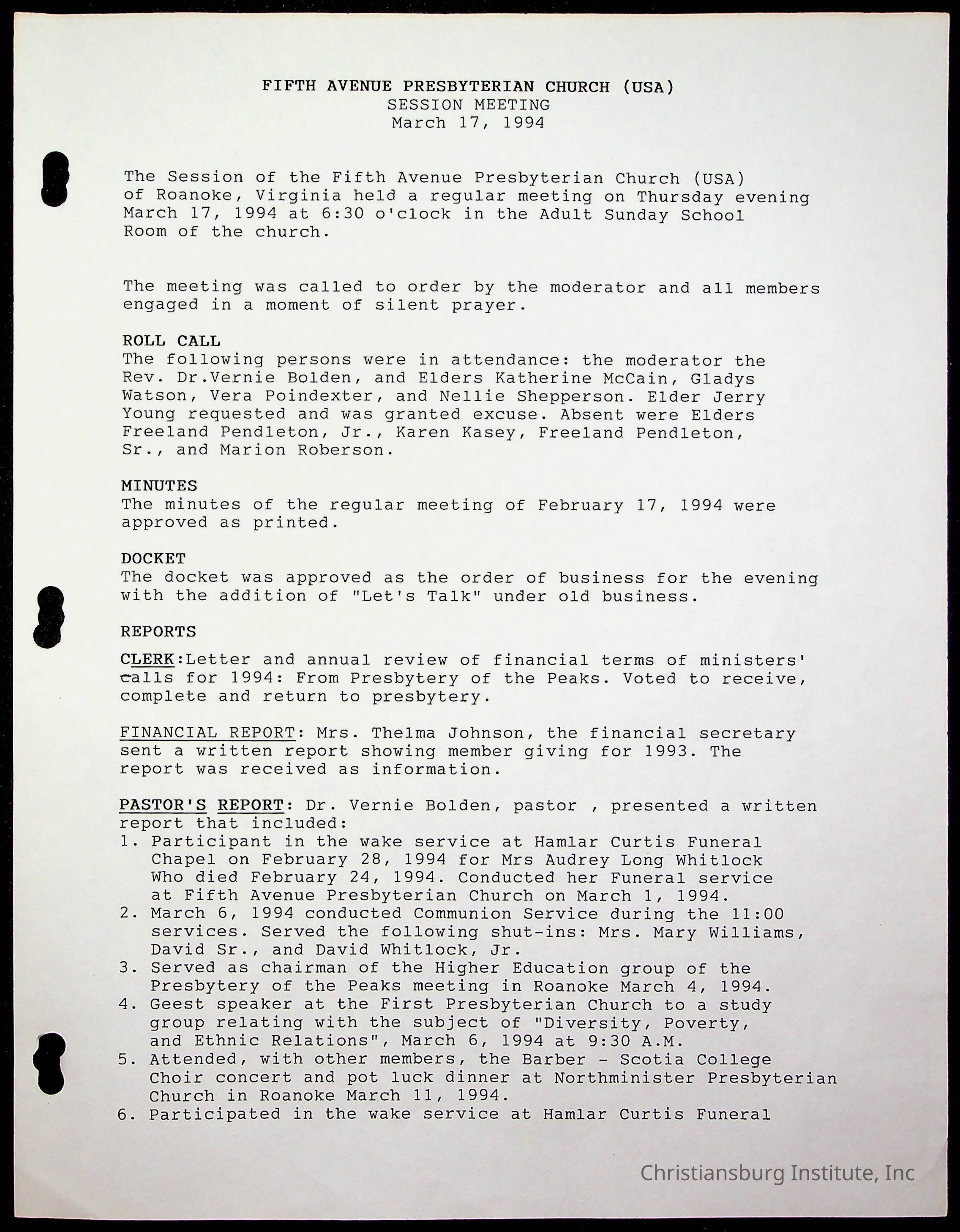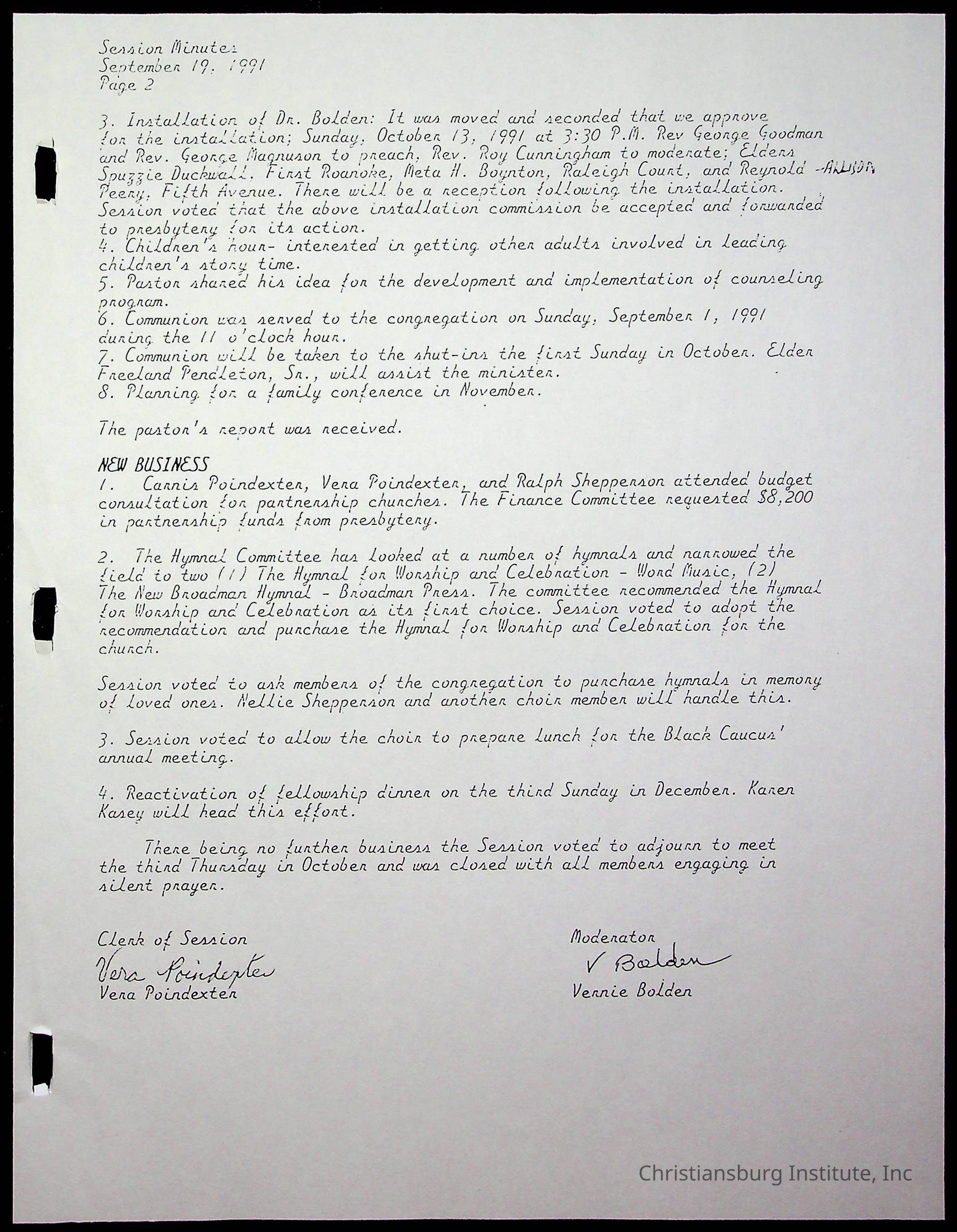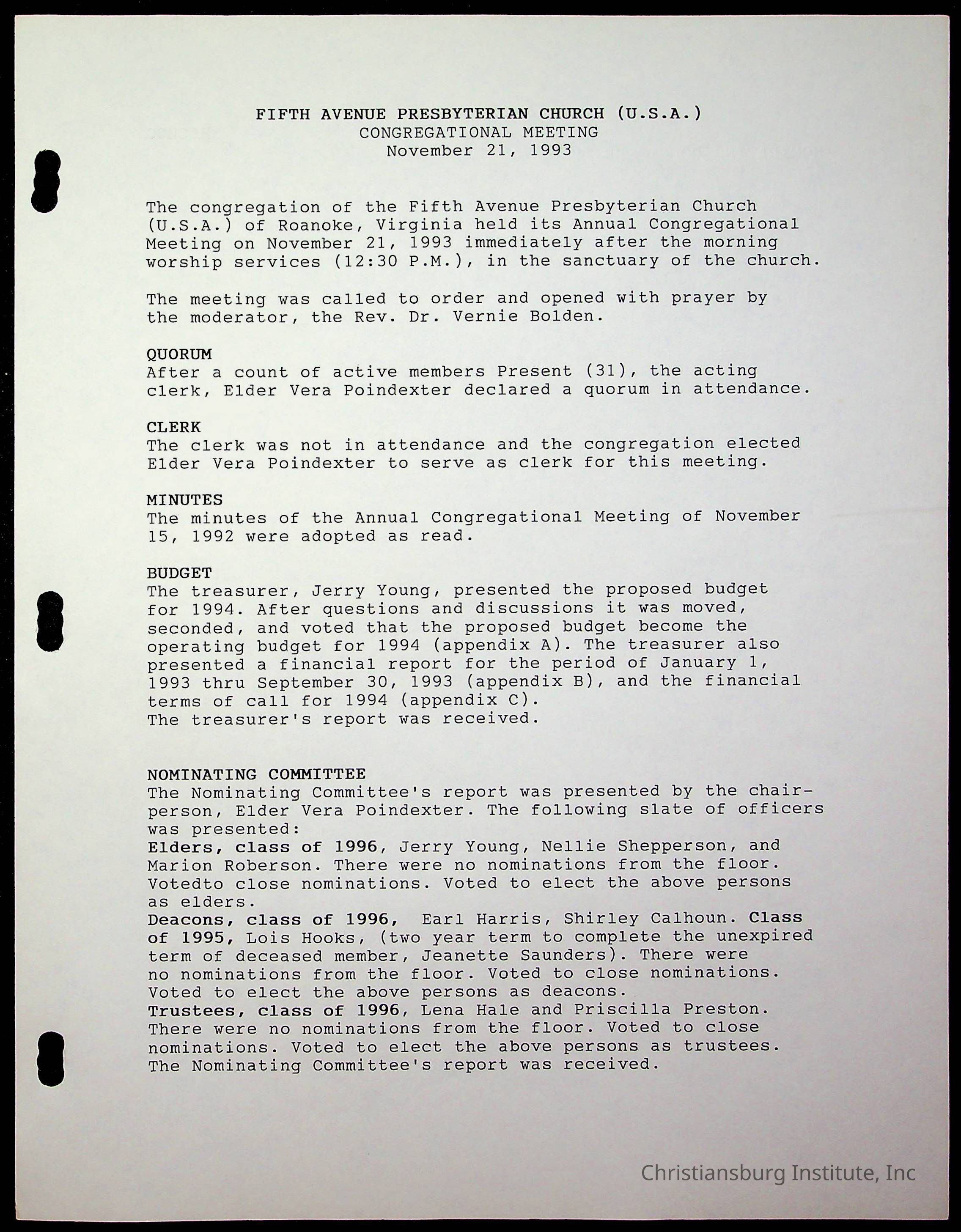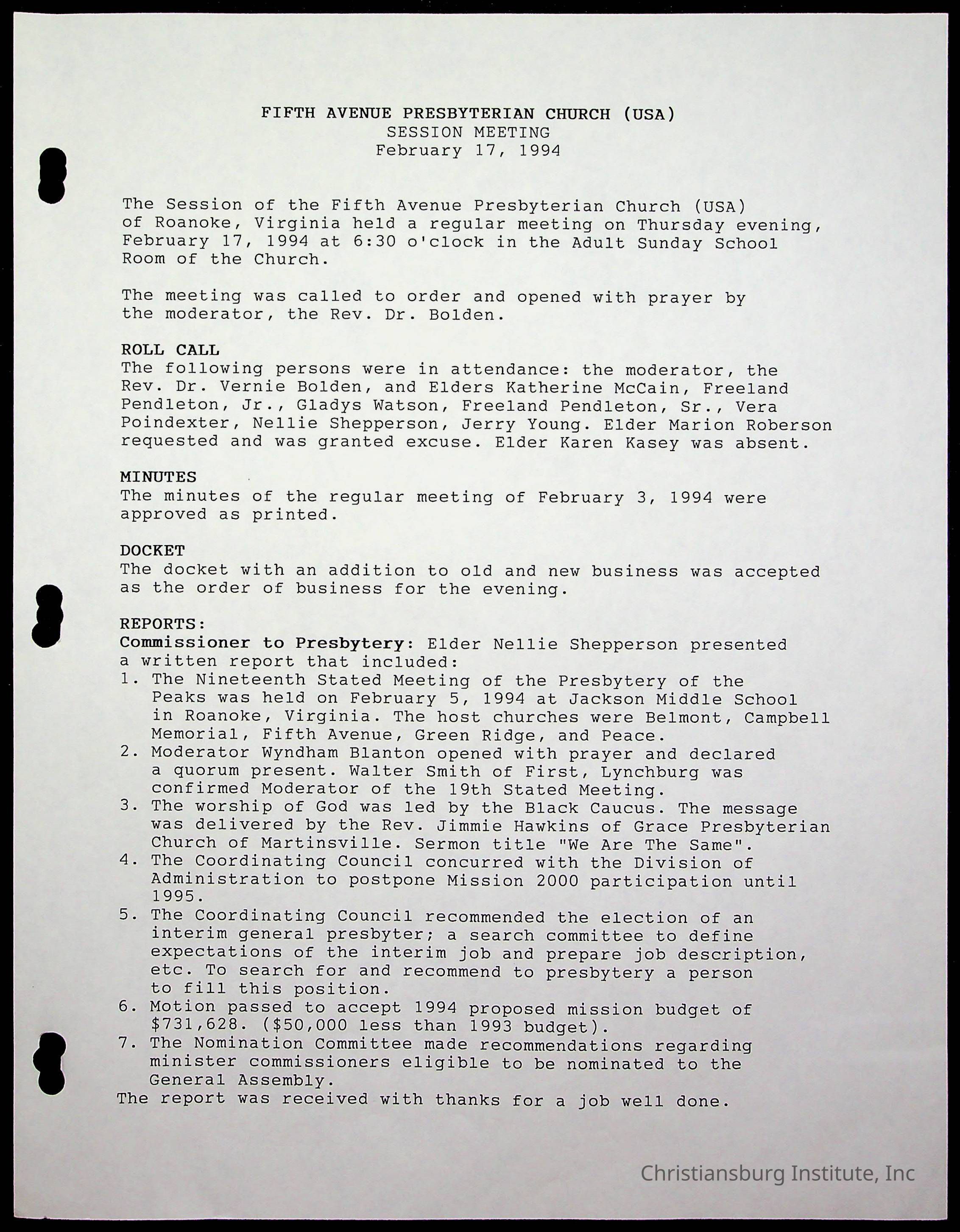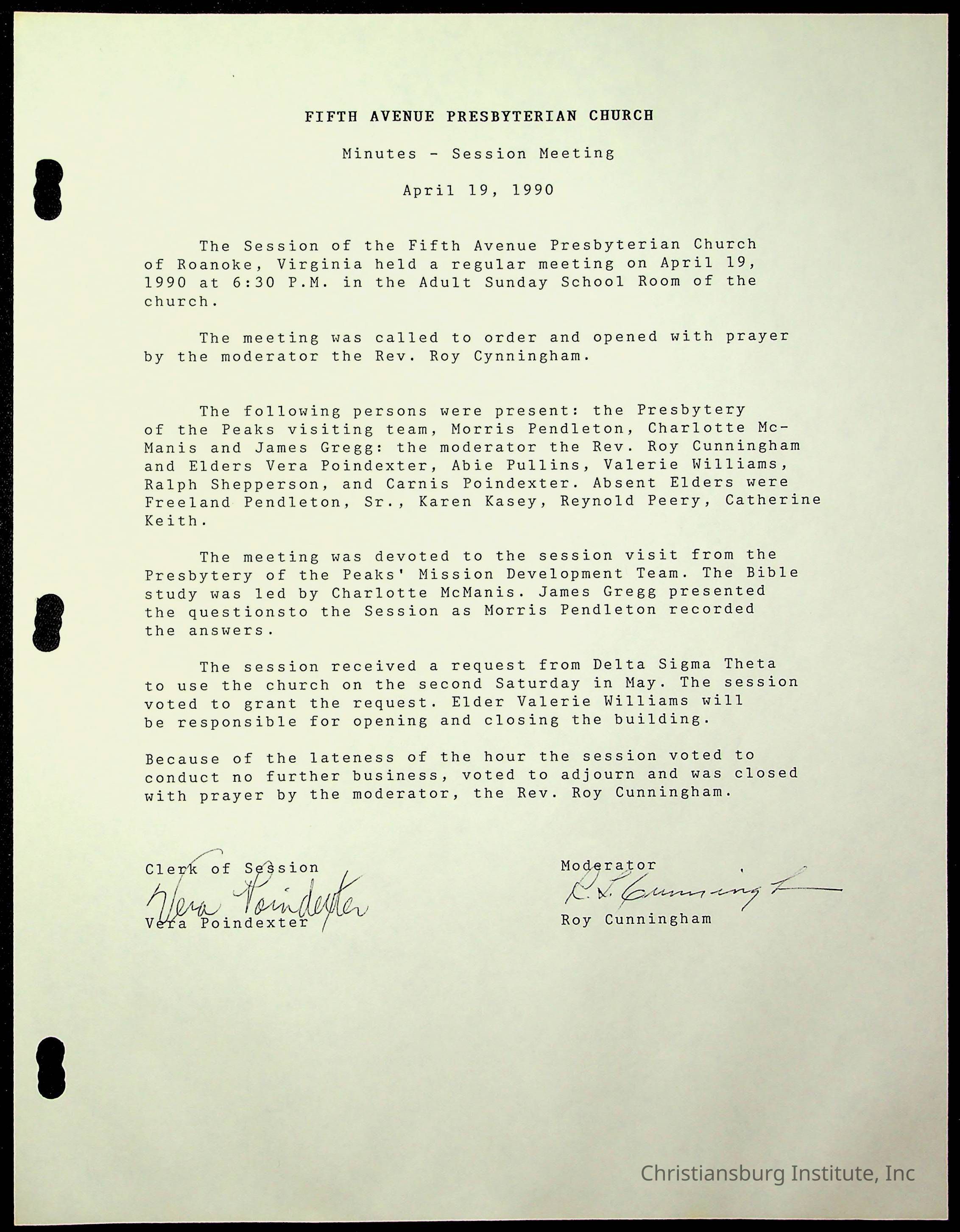 Copyright has been assigned to Christiansburg Institute Museum & Archives by Fifth Avenue Presbyterian Church. For permission to publish materials created by the donor, contact CIMA@christiansburginstitute.com. Materials not created by Fifth Avenue Presbyterian Church may still be under copyright.