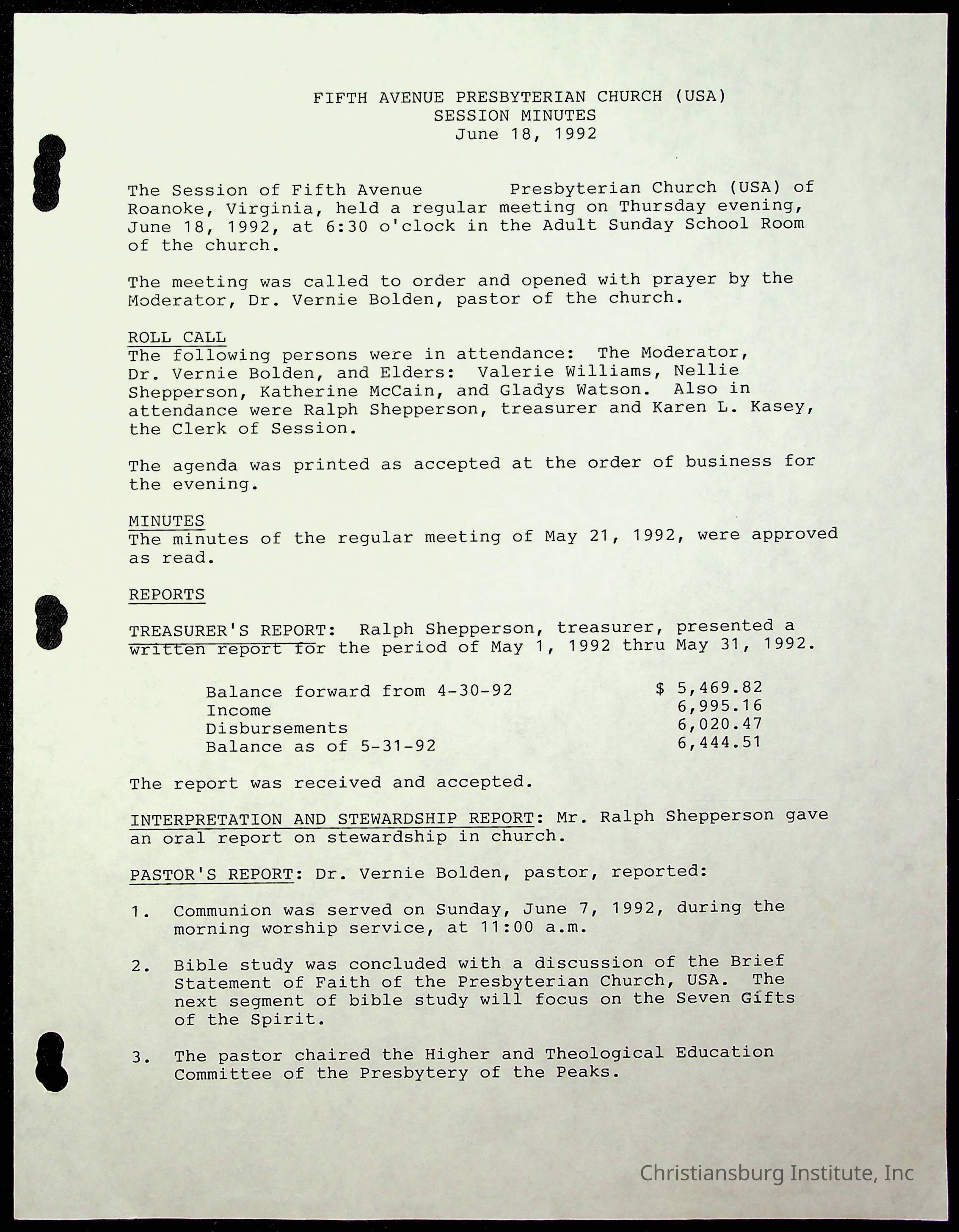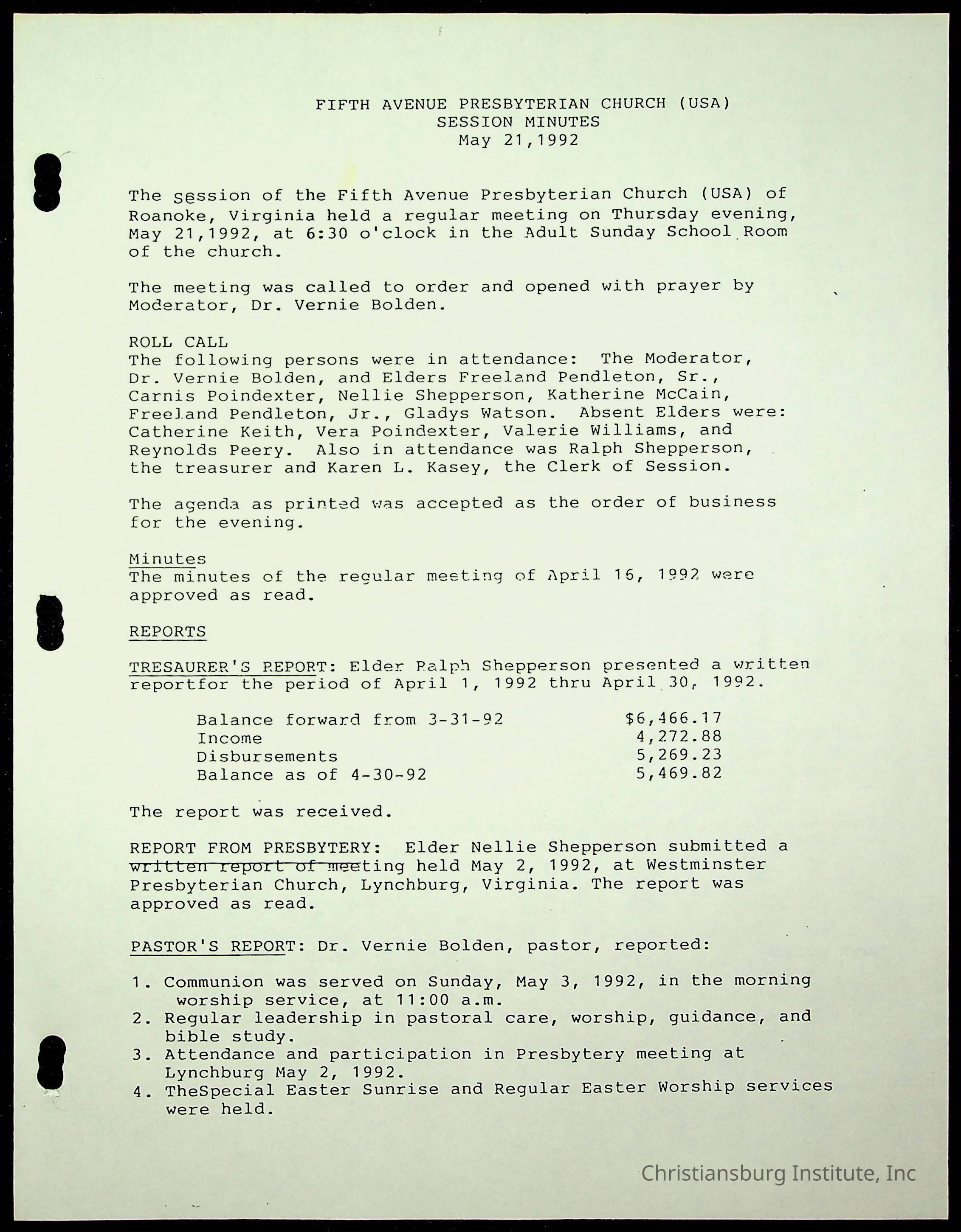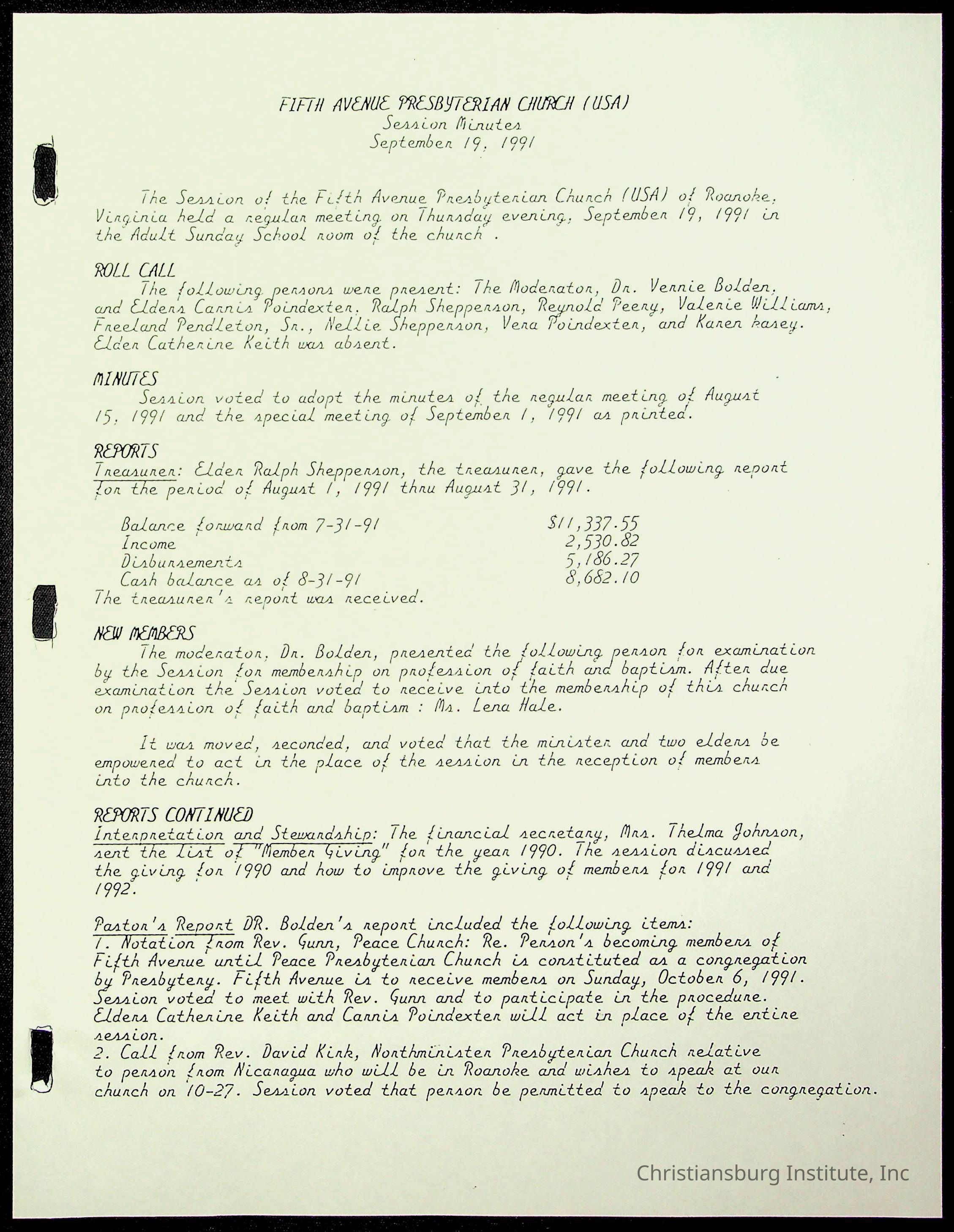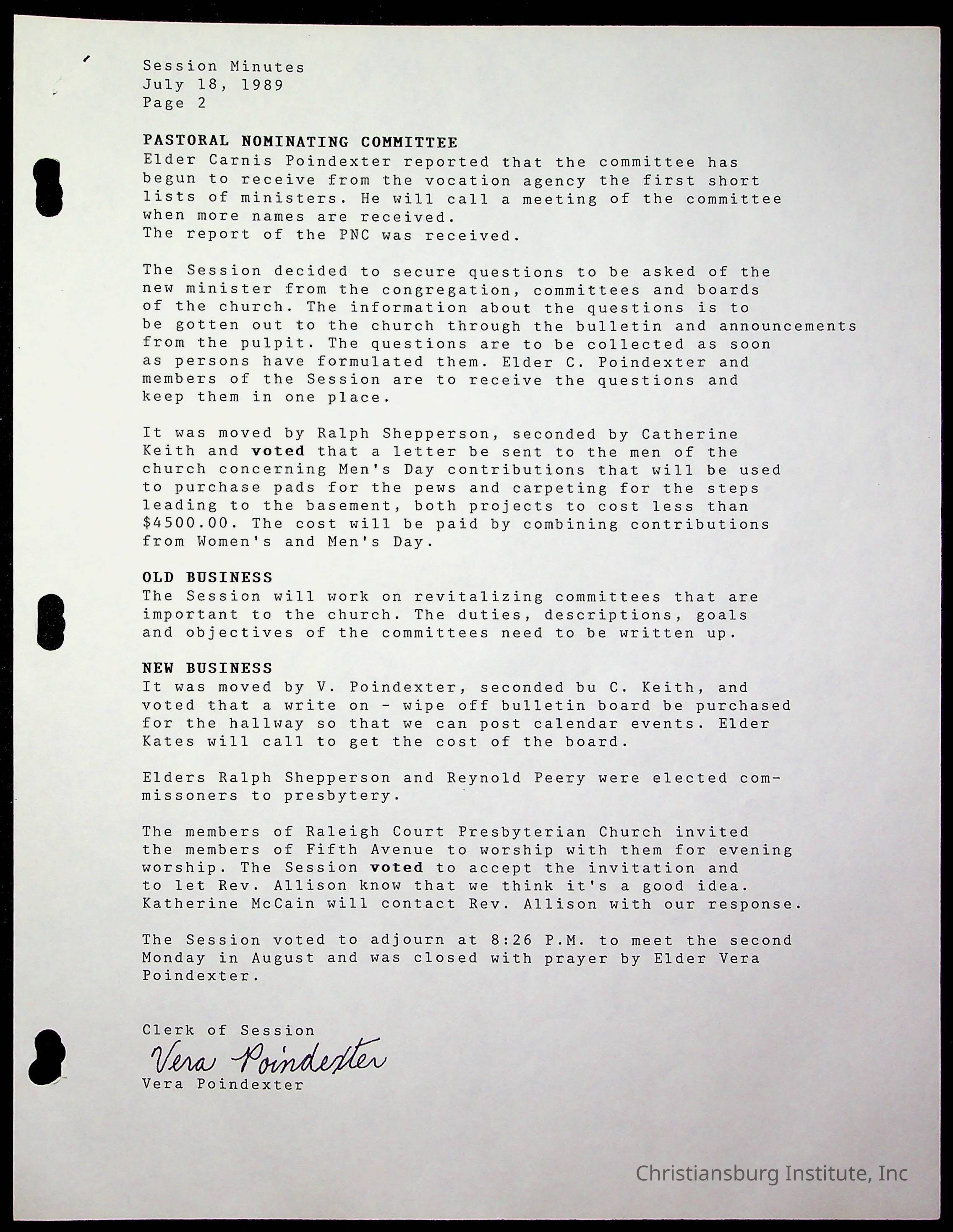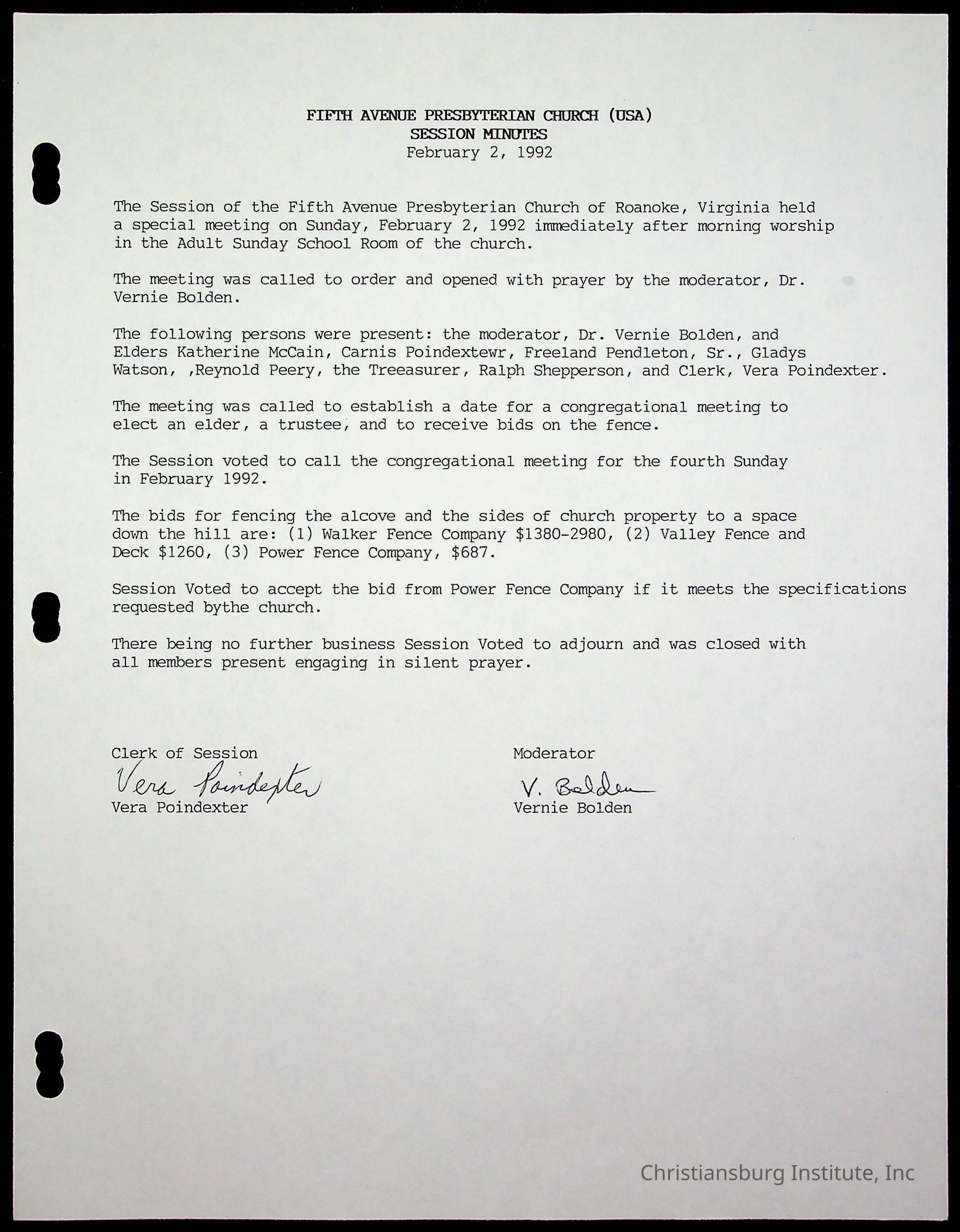 Copyright has been assigned to Christiansburg Institute Museum & Archives by Fifth Avenue Presbyterian Church. For permission to publish materials created by the donor, contact CIMA@christiansburginstitute.com. Materials not created by Fifth Avenue Presbyterian Church may still be under copyright.