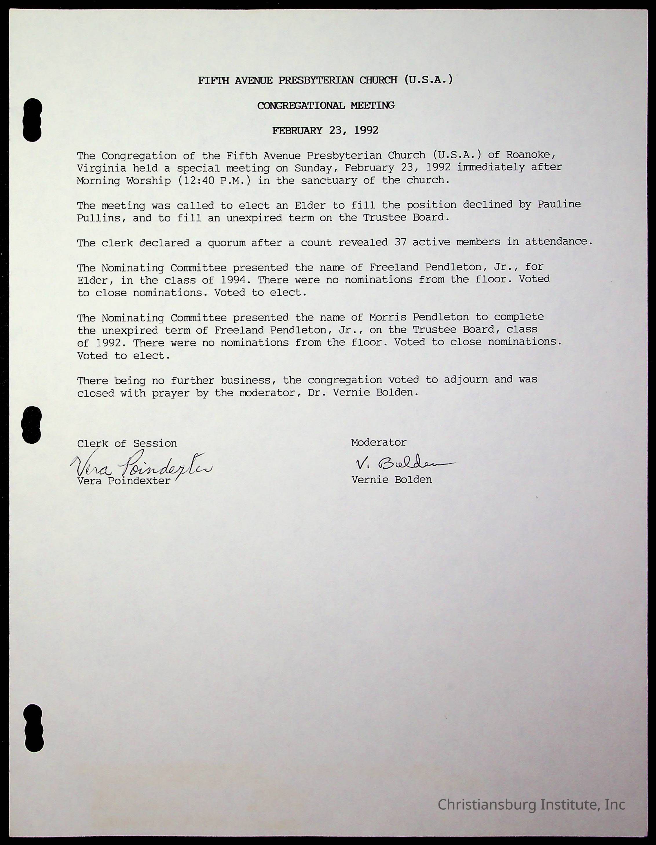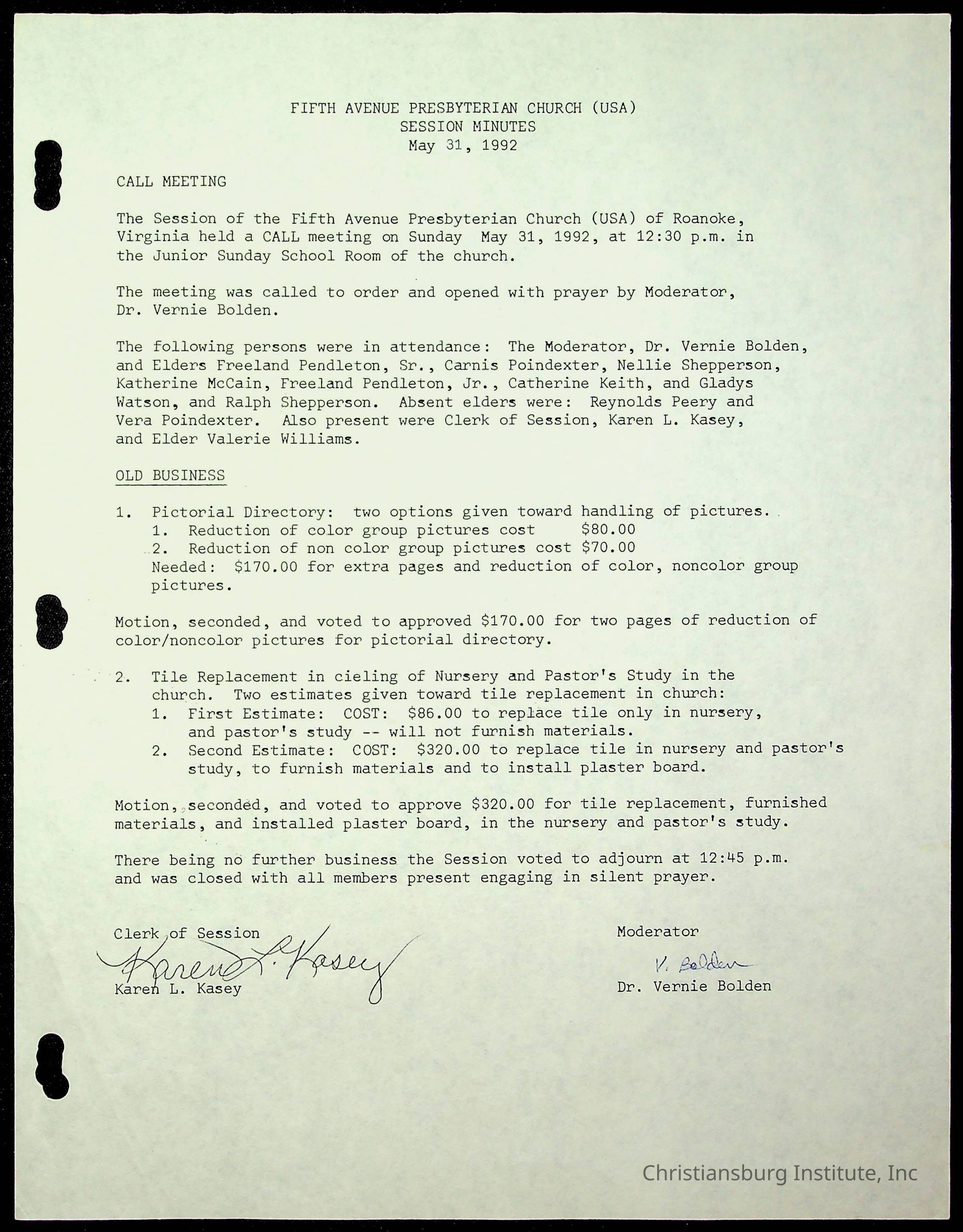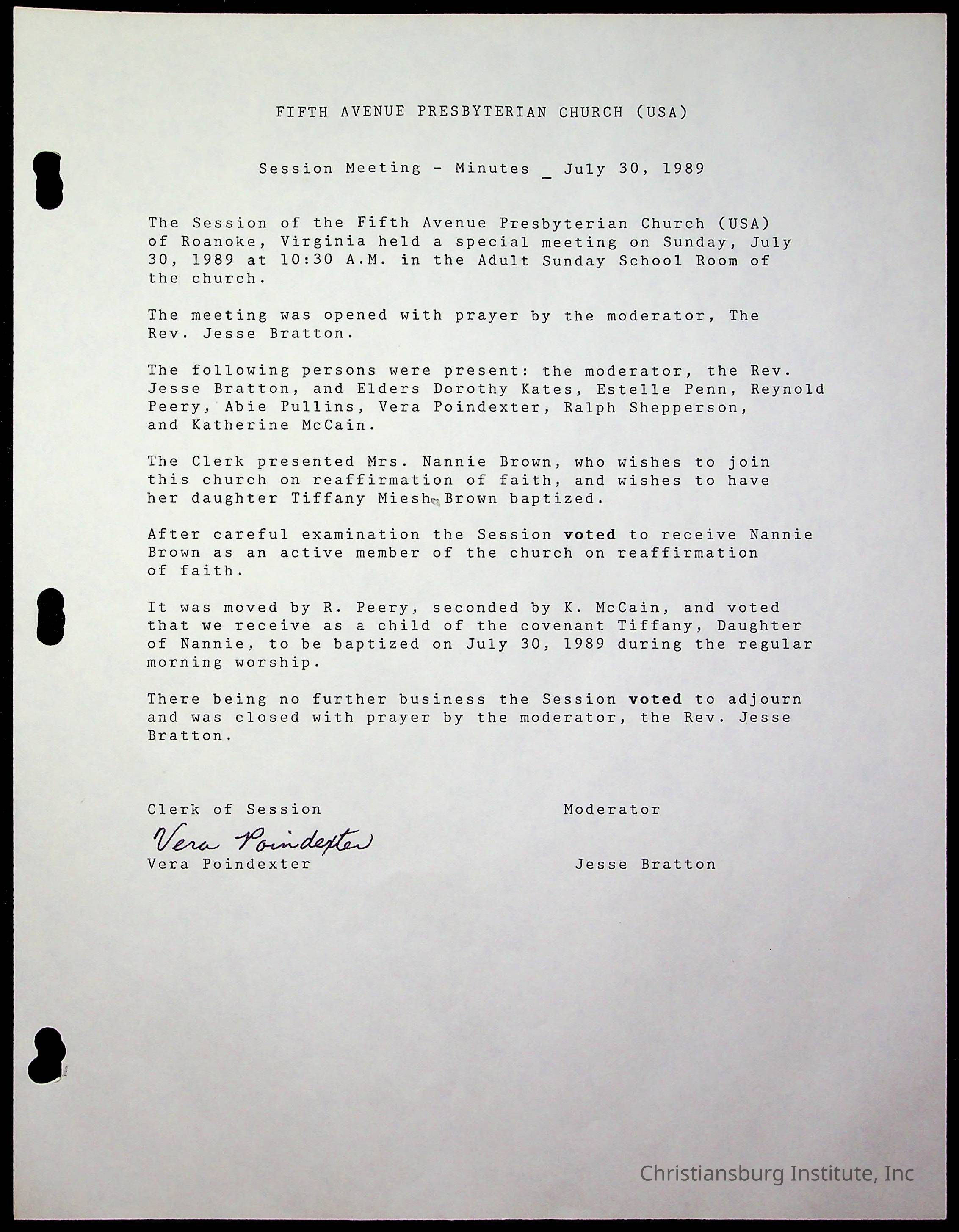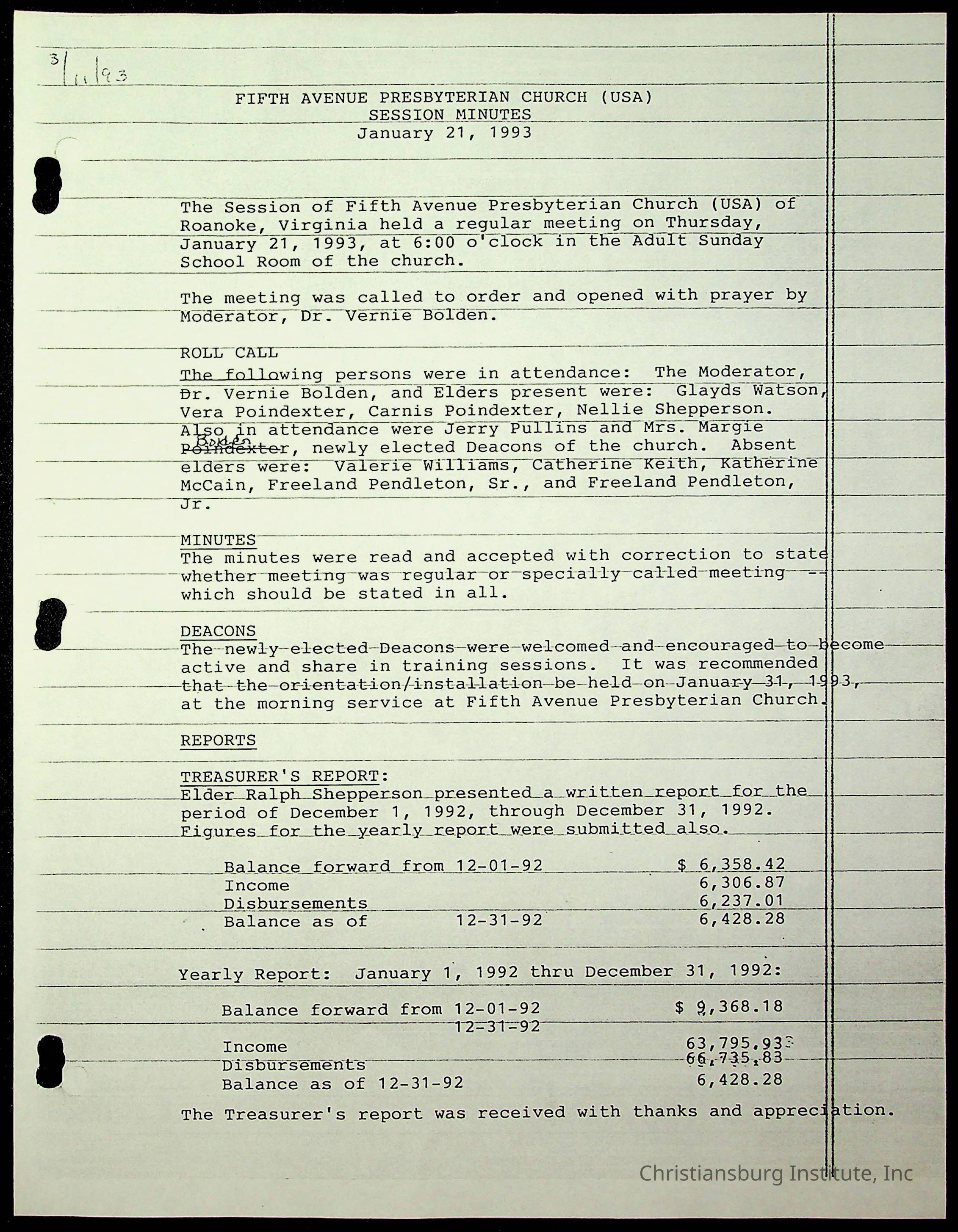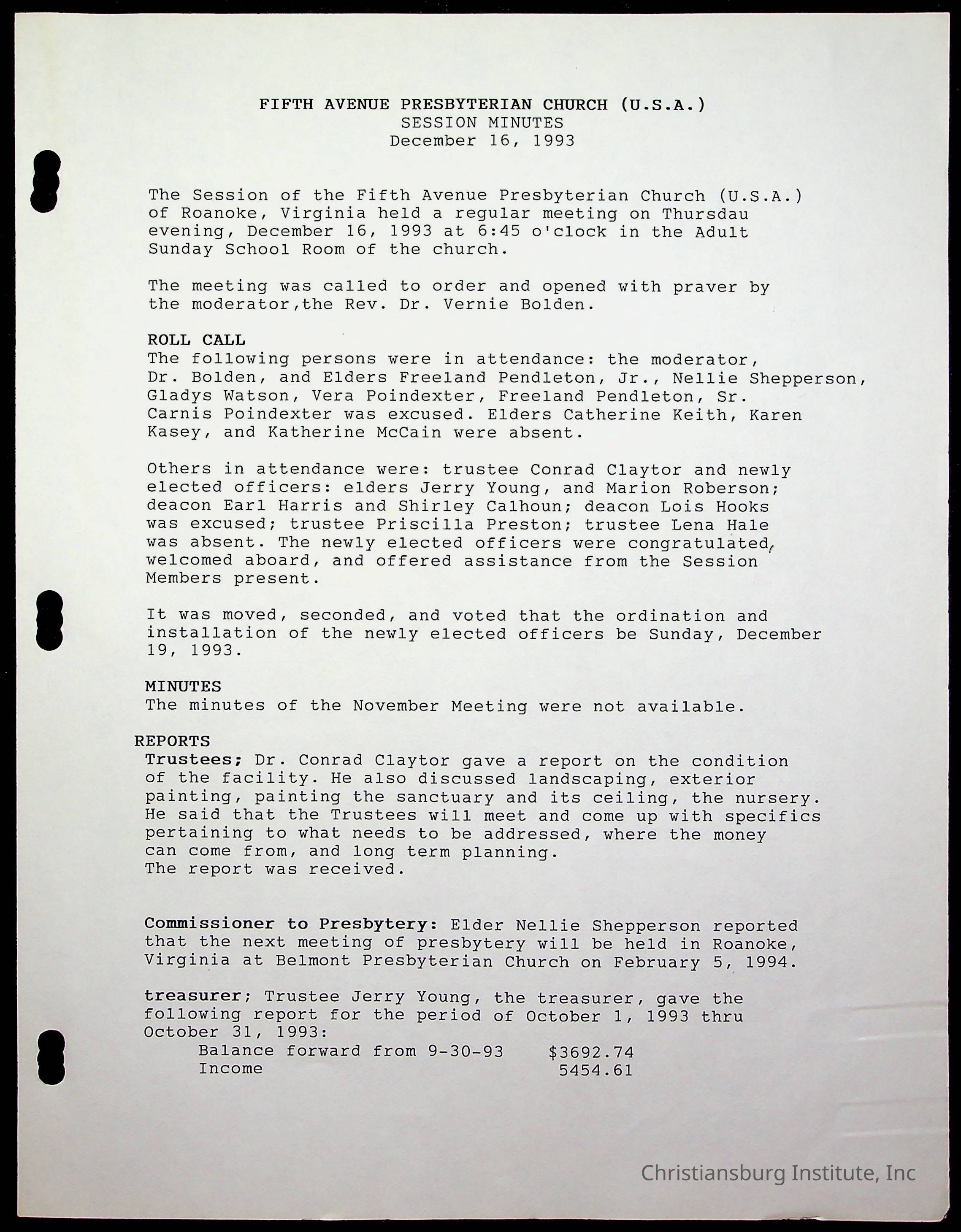 Copyright has been assigned to Christiansburg Institute Museum & Archives by Fifth Avenue Presbyterian Church. For permission to publish materials created by the donor, contact CIMA@christiansburginstitute.com. Materials not created by Fifth Avenue Presbyterian Church may still be under copyright.