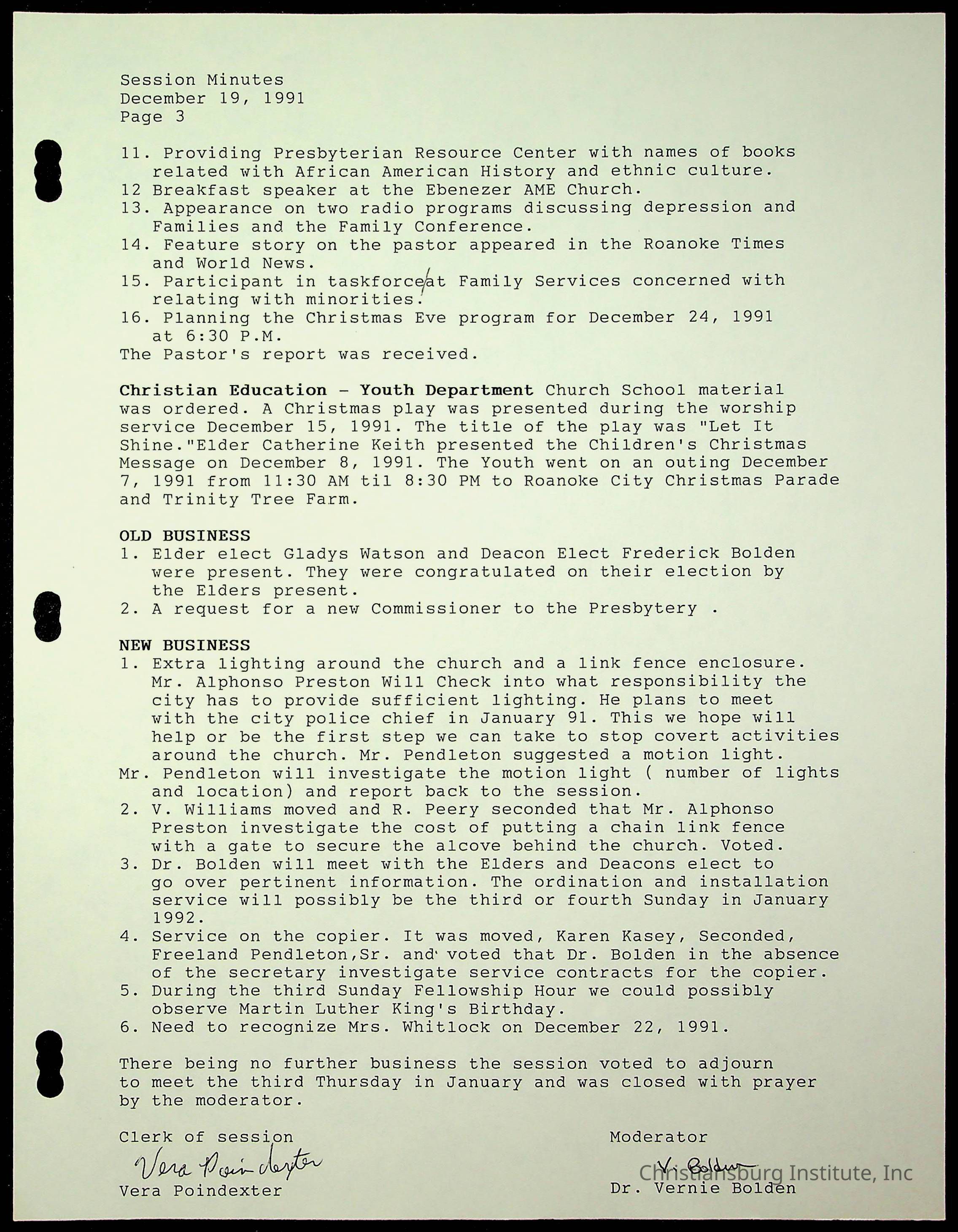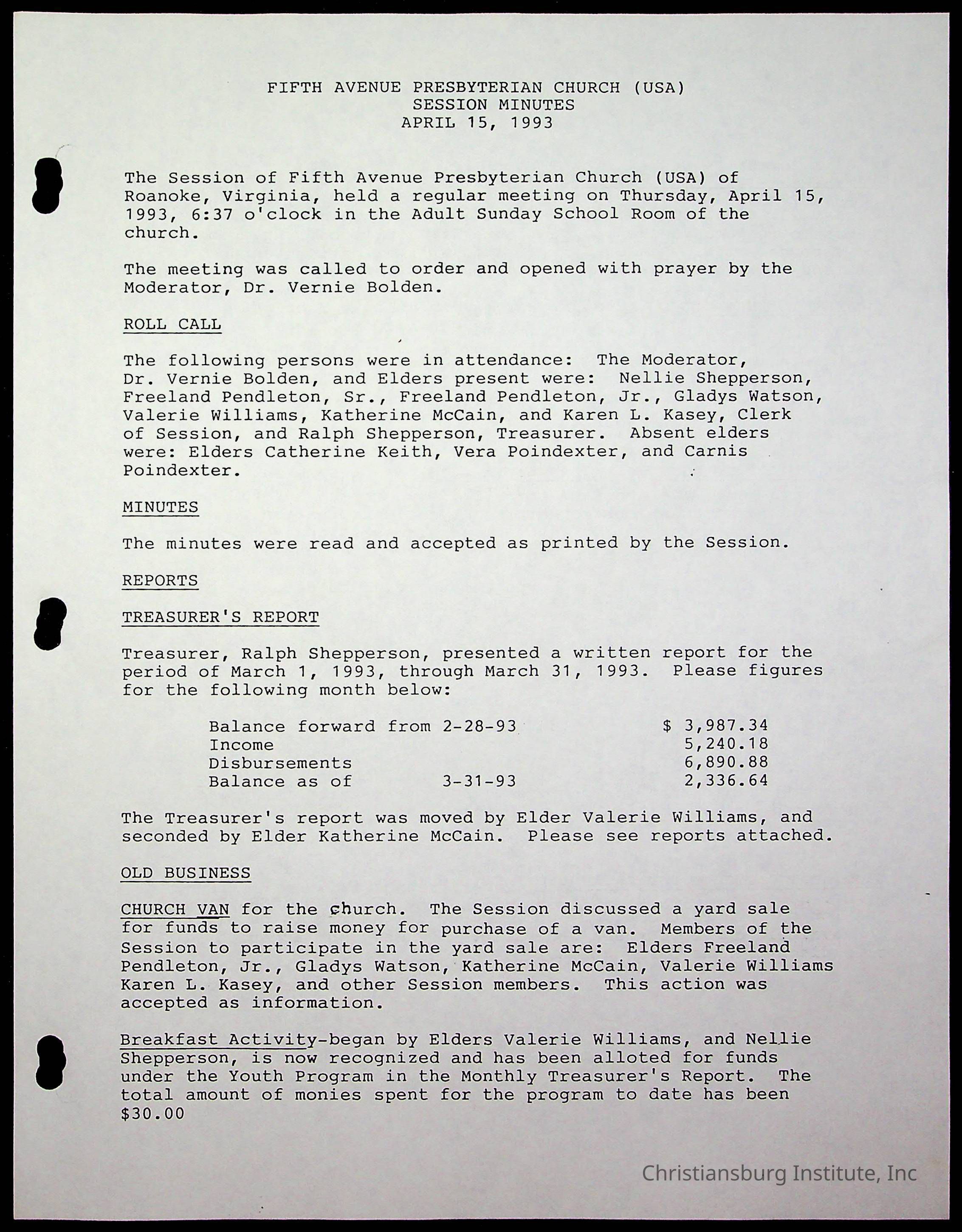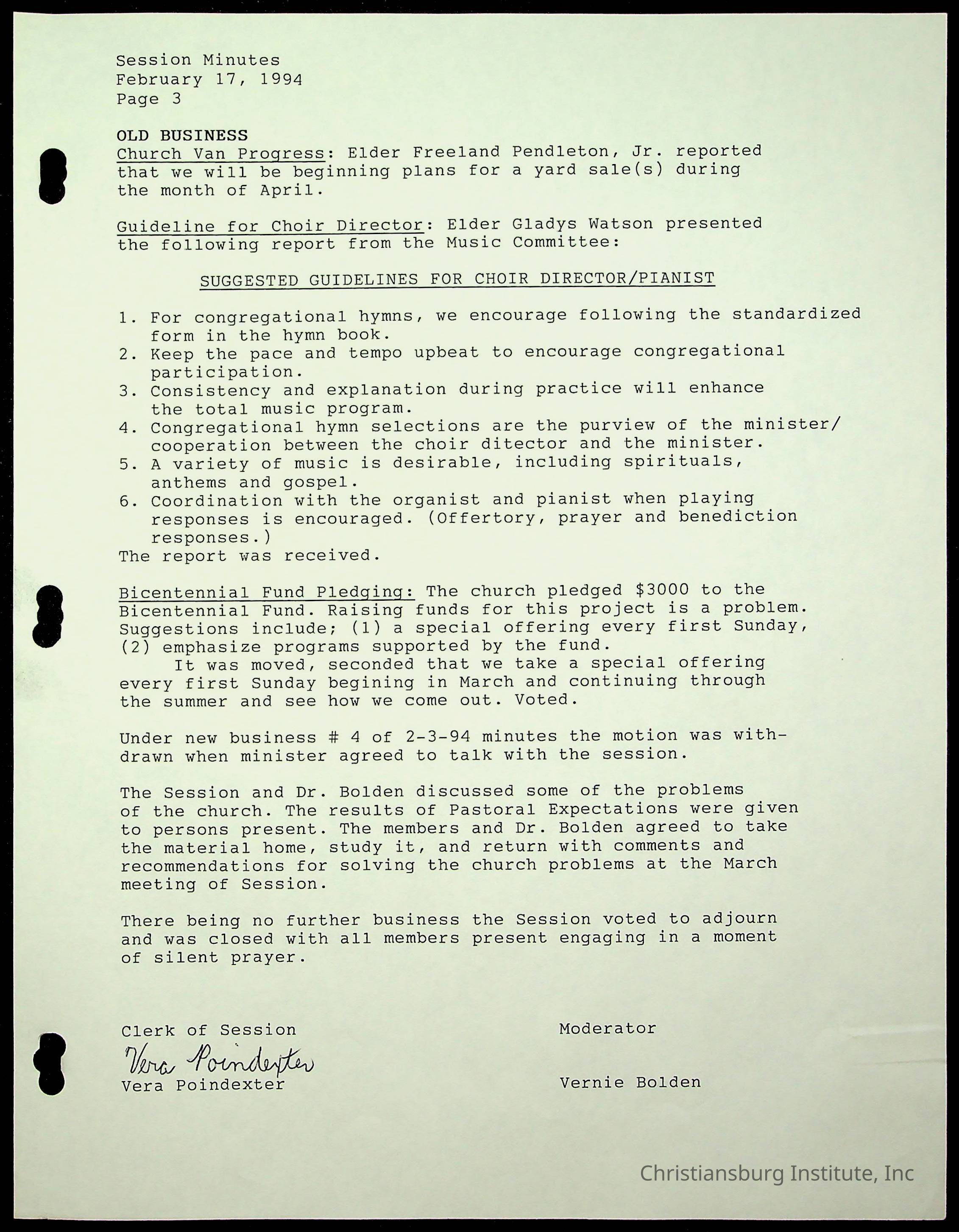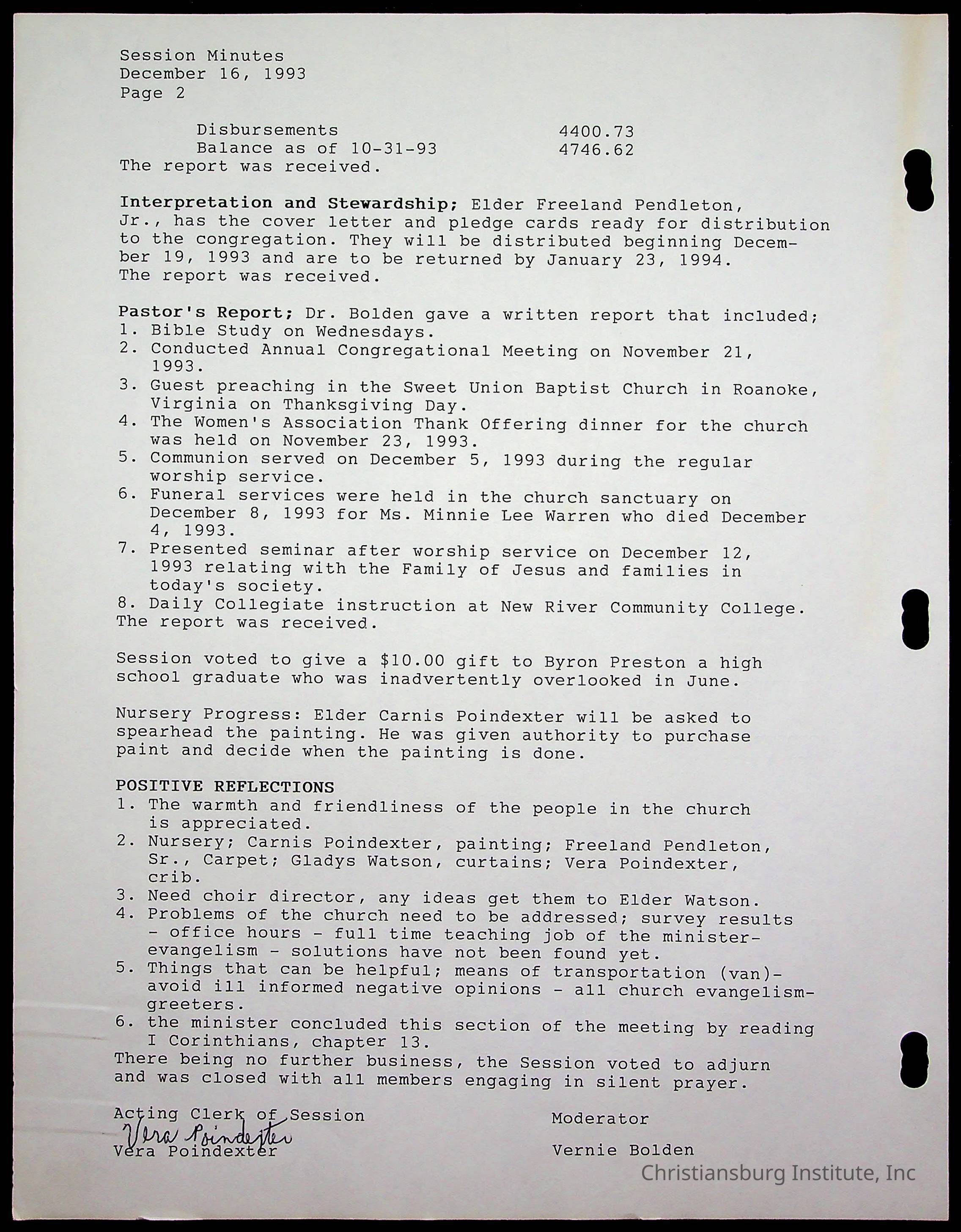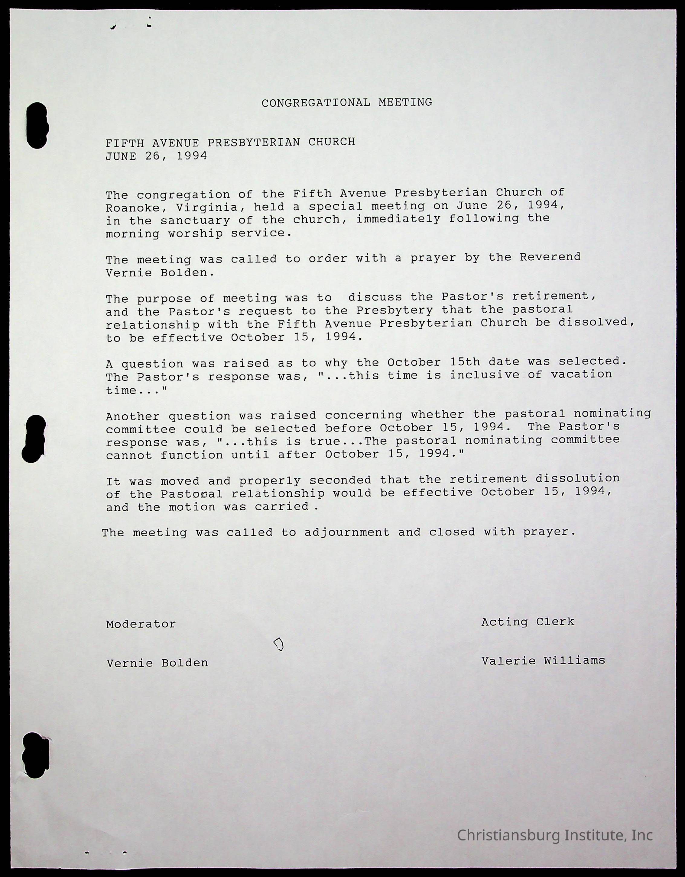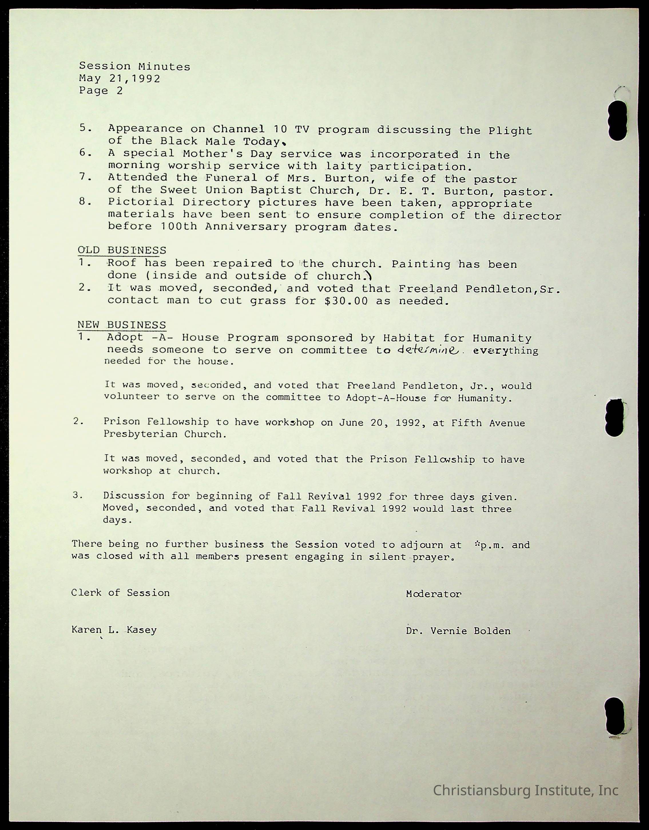 Copyright has been assigned to Christiansburg Institute Museum & Archives by Fifth Avenue Presbyterian Church. For permission to publish materials created by the donor, contact CIMA@christiansburginstitute.com. Materials not created by Fifth Avenue Presbyterian Church may still be under copyright.