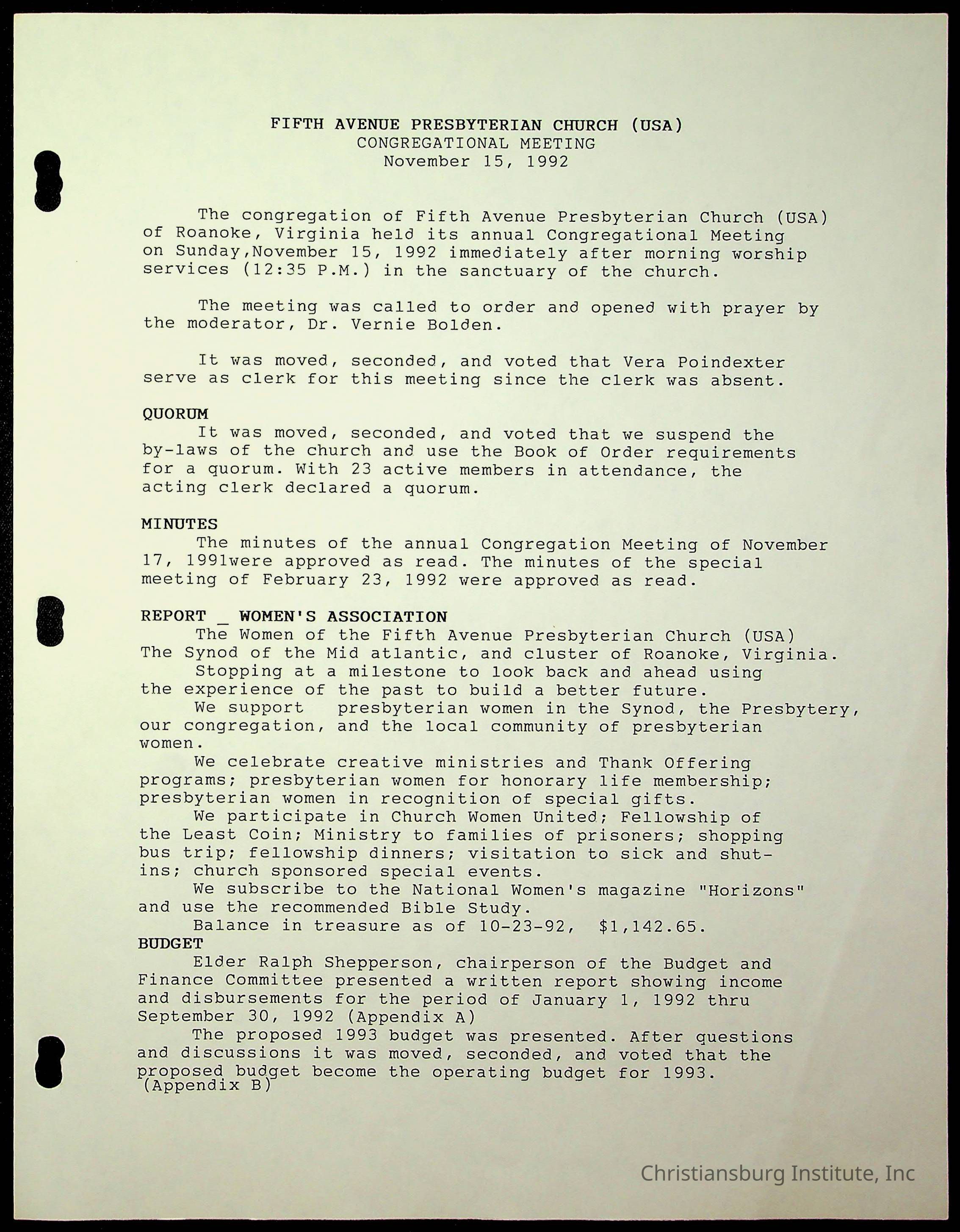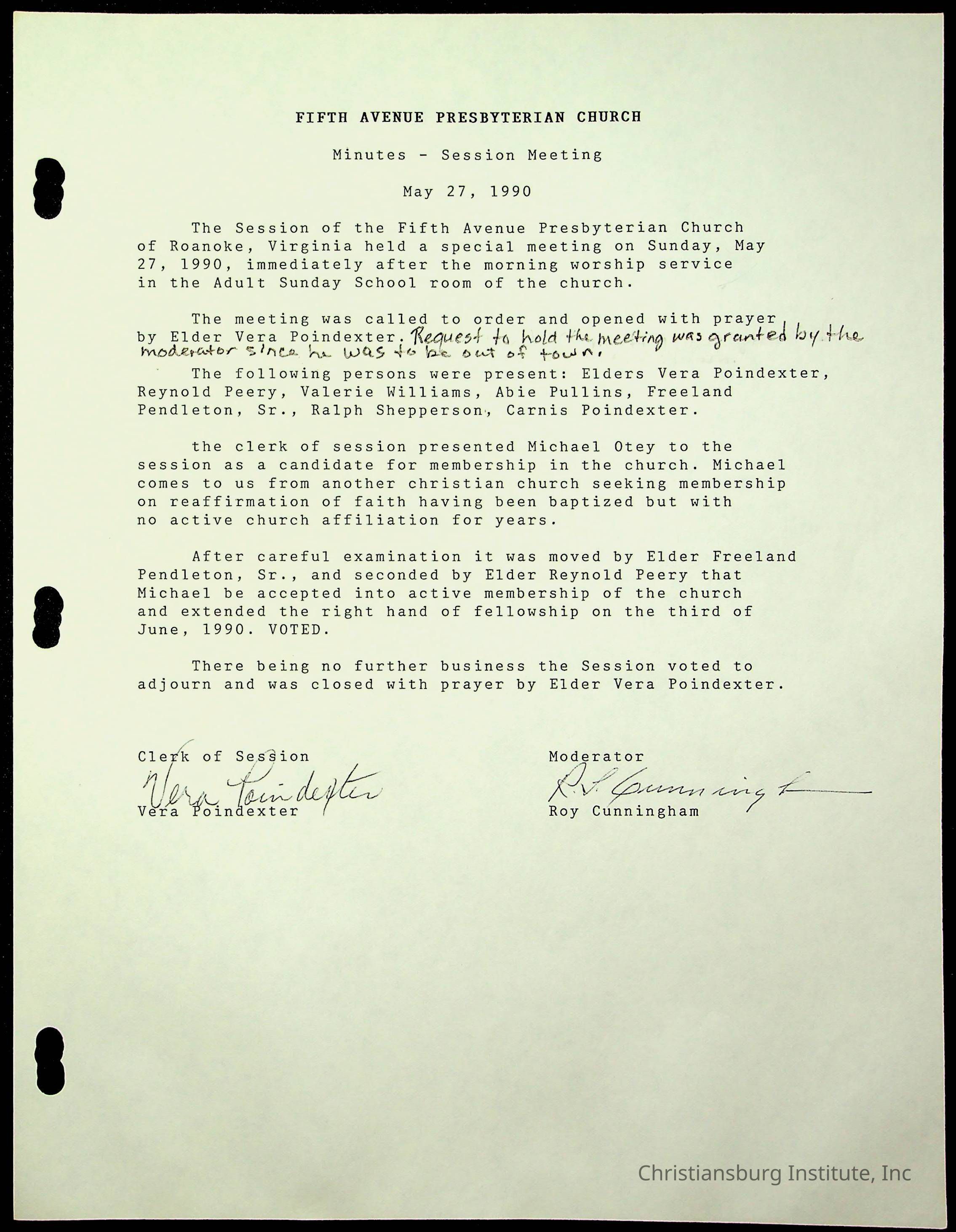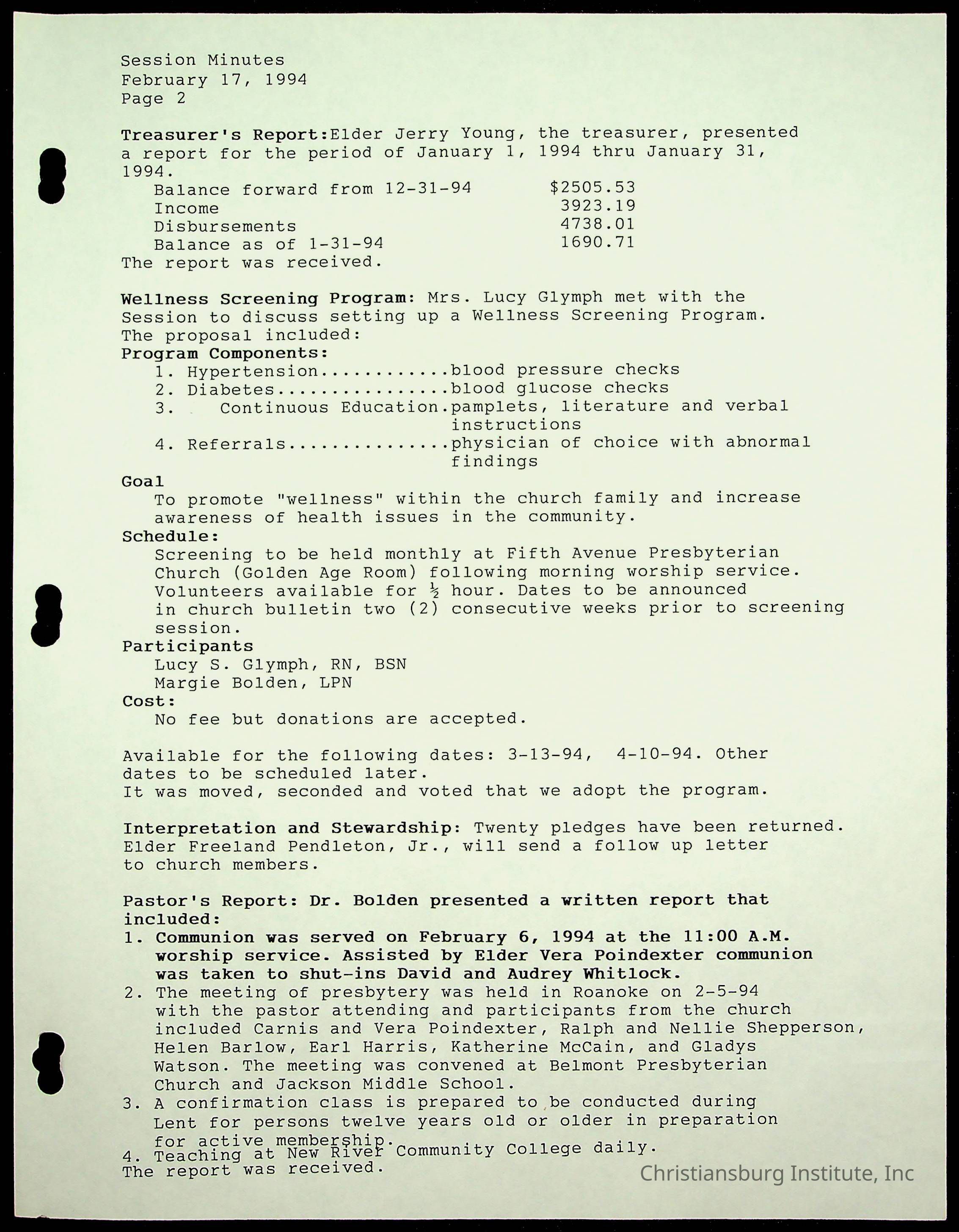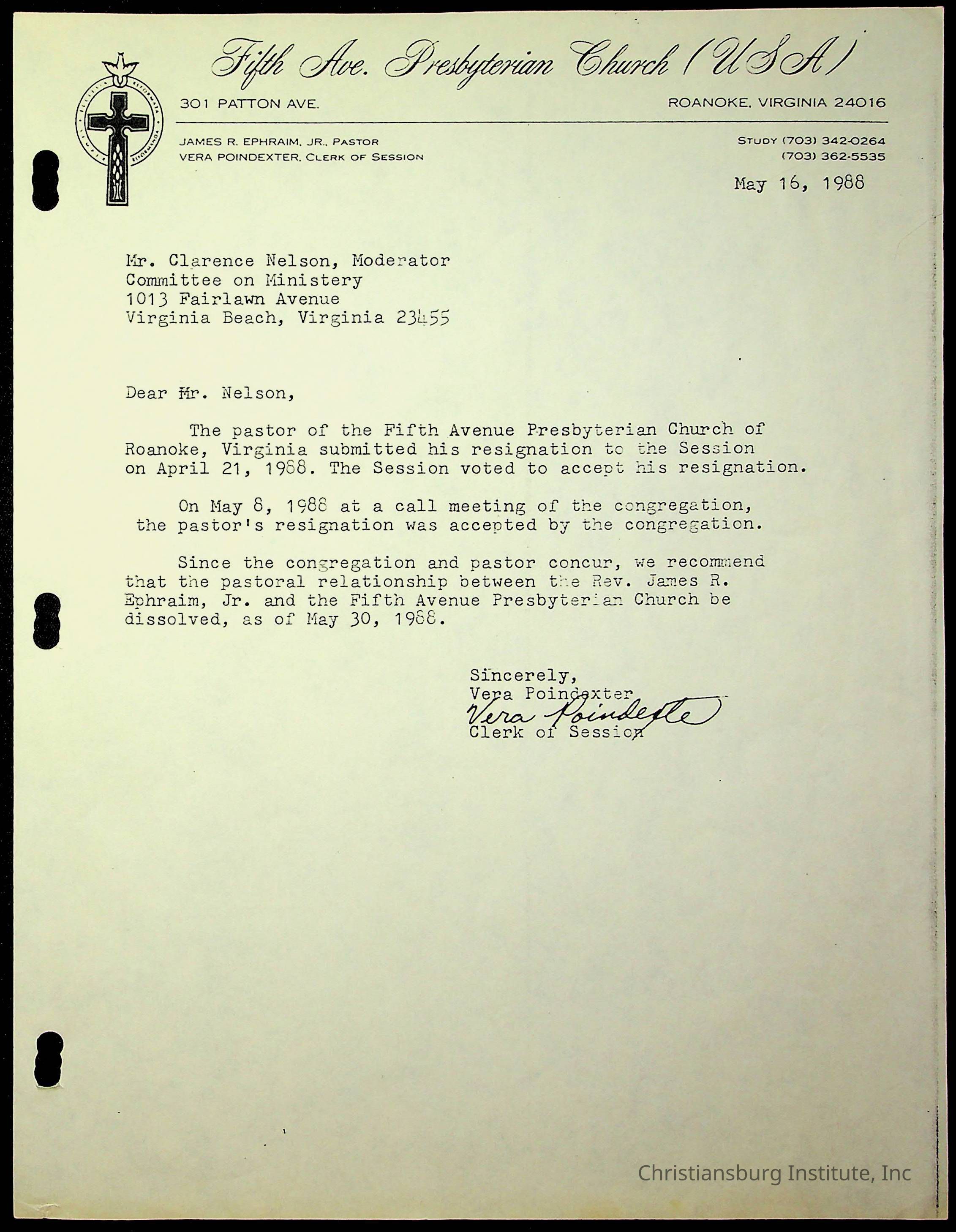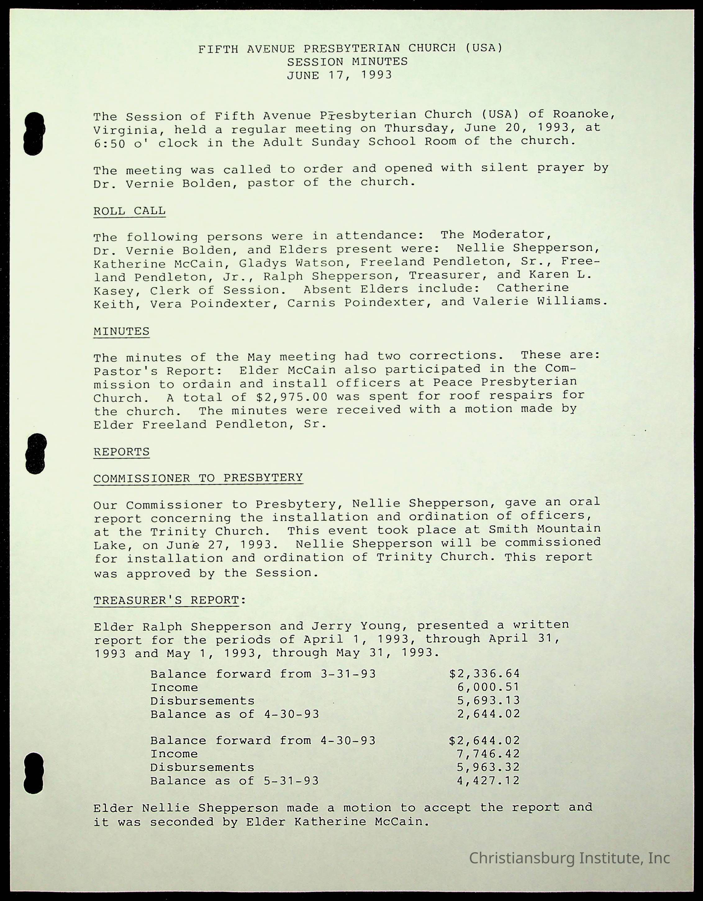 Copyright has been assigned to Christiansburg Institute Museum & Archives by Fifth Avenue Presbyterian Church. For permission to publish materials created by the donor, contact CIMA@christiansburginstitute.com. Materials not created by Fifth Avenue Presbyterian Church may still be under copyright.