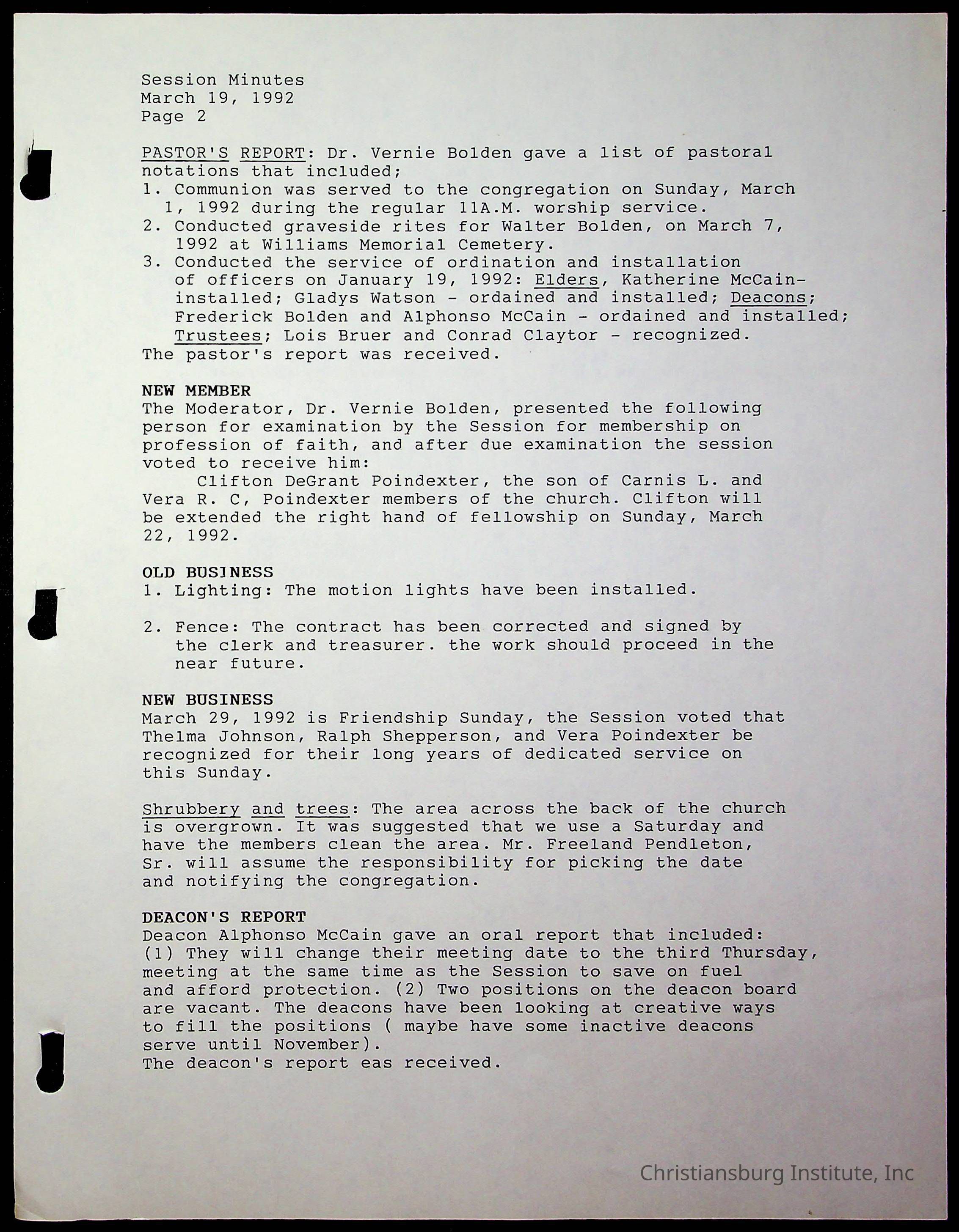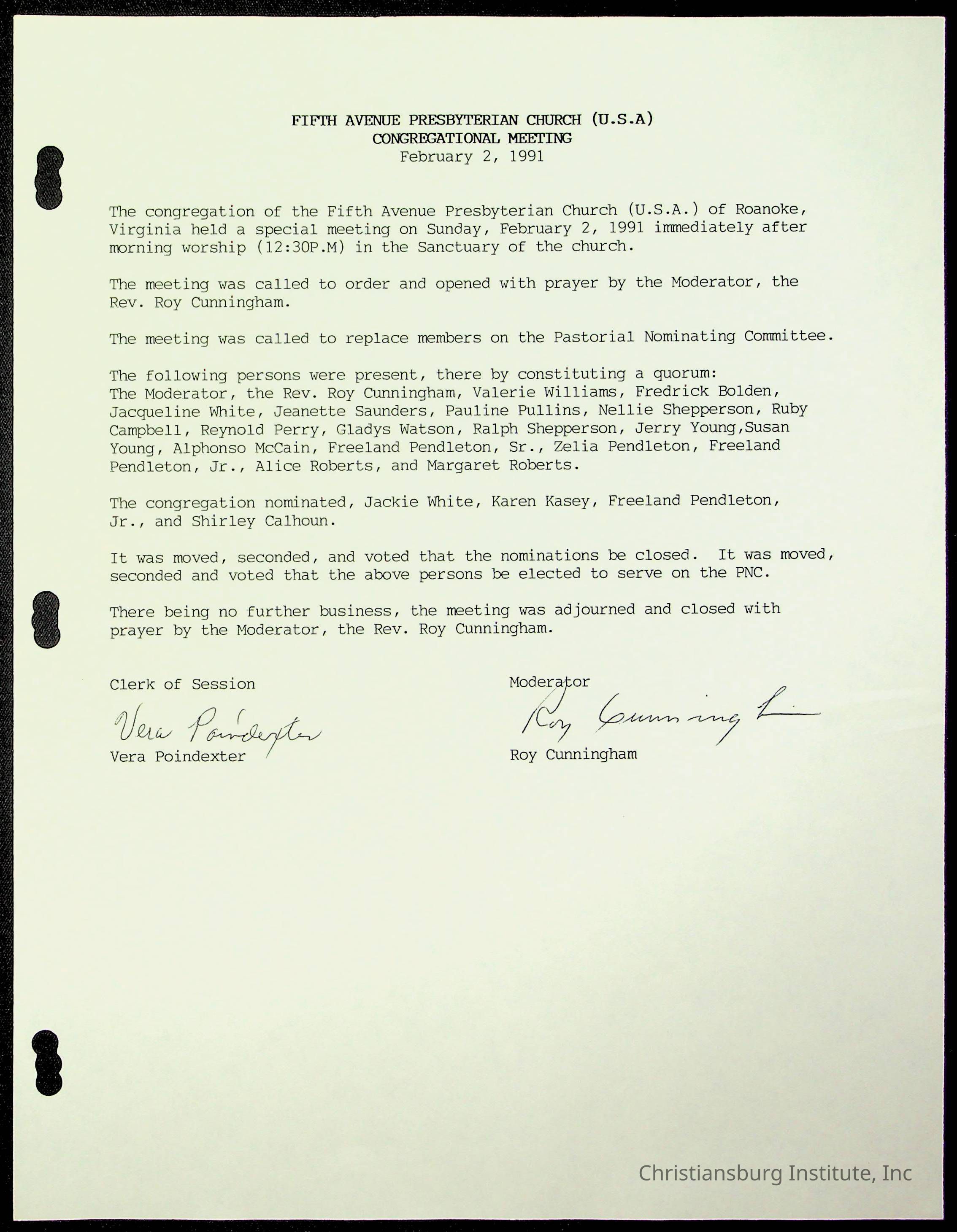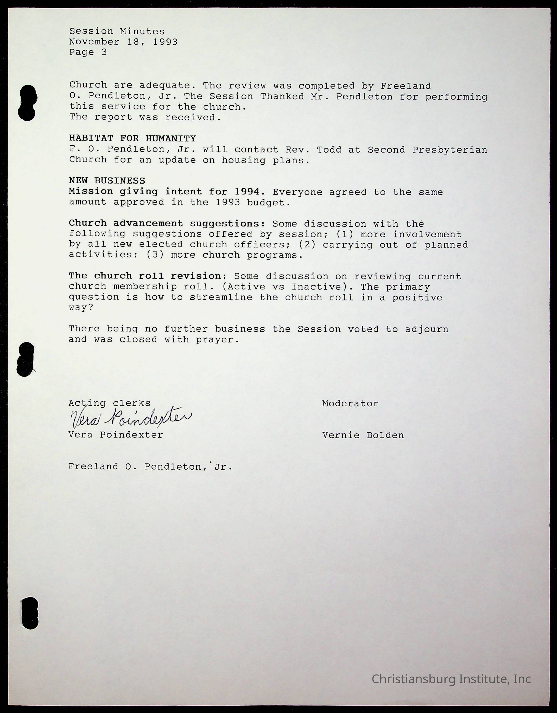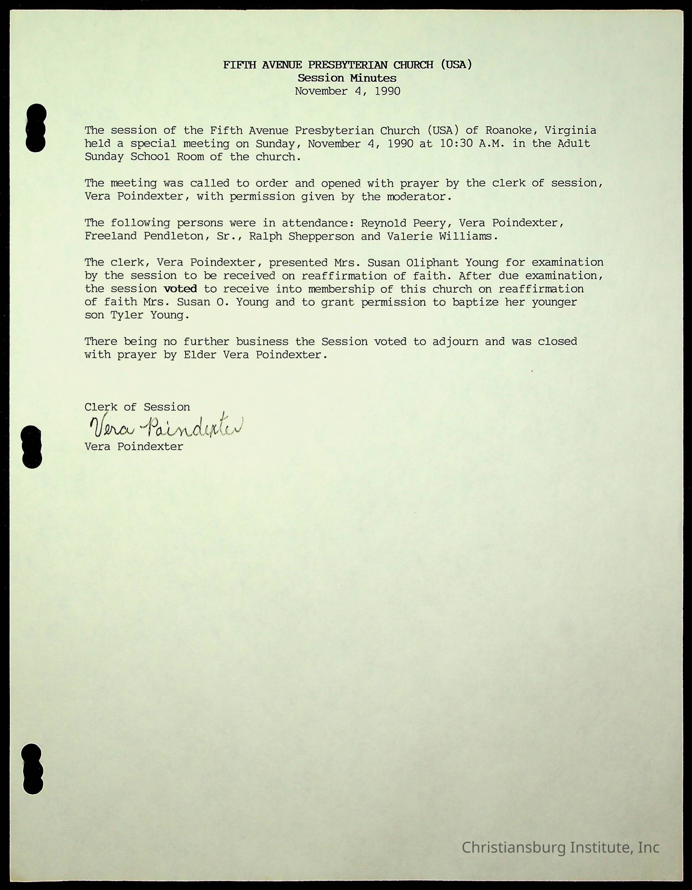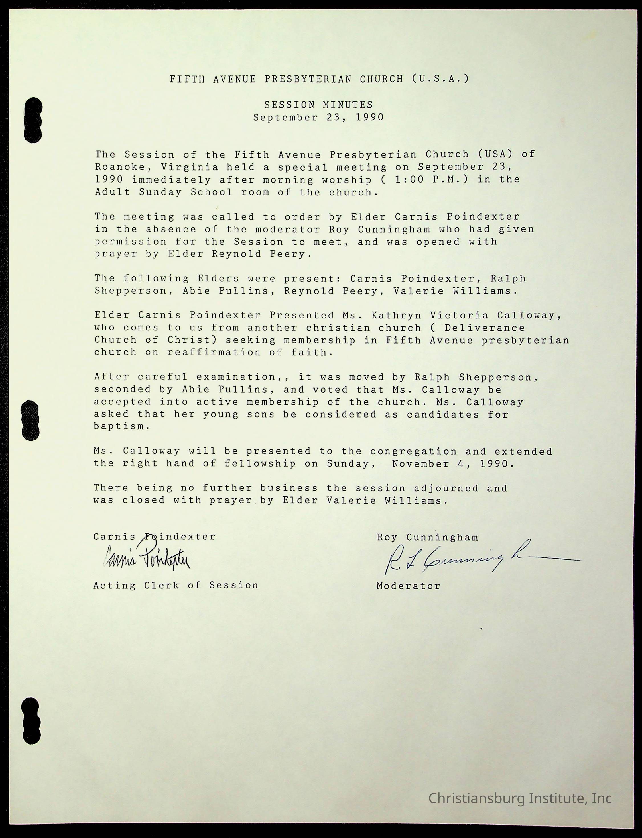 Copyright has been assigned to Christiansburg Institute Museum & Archives by Fifth Avenue Presbyterian Church. For permission to publish materials created by the donor, contact CIMA@christiansburginstitute.com. Materials not created by Fifth Avenue Presbyterian Church may still be under copyright.