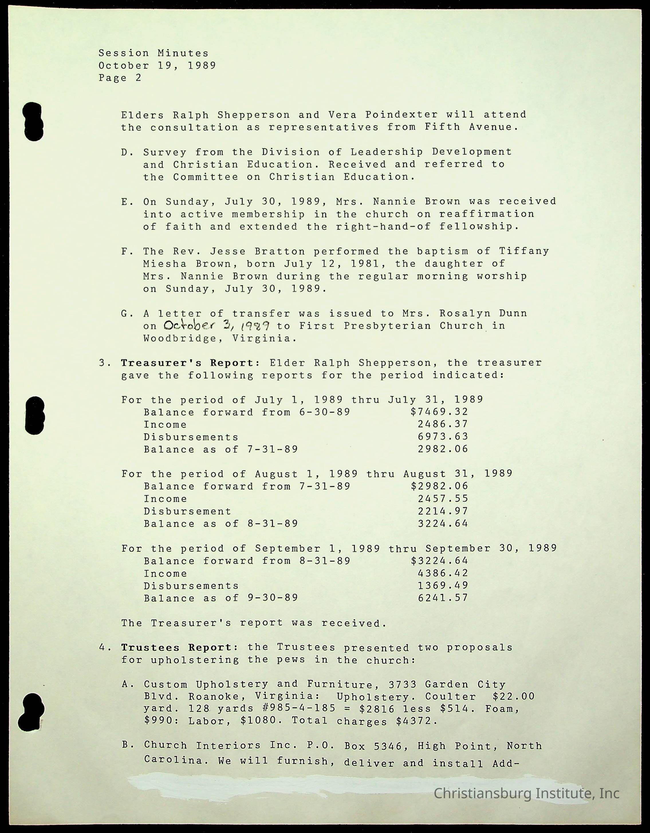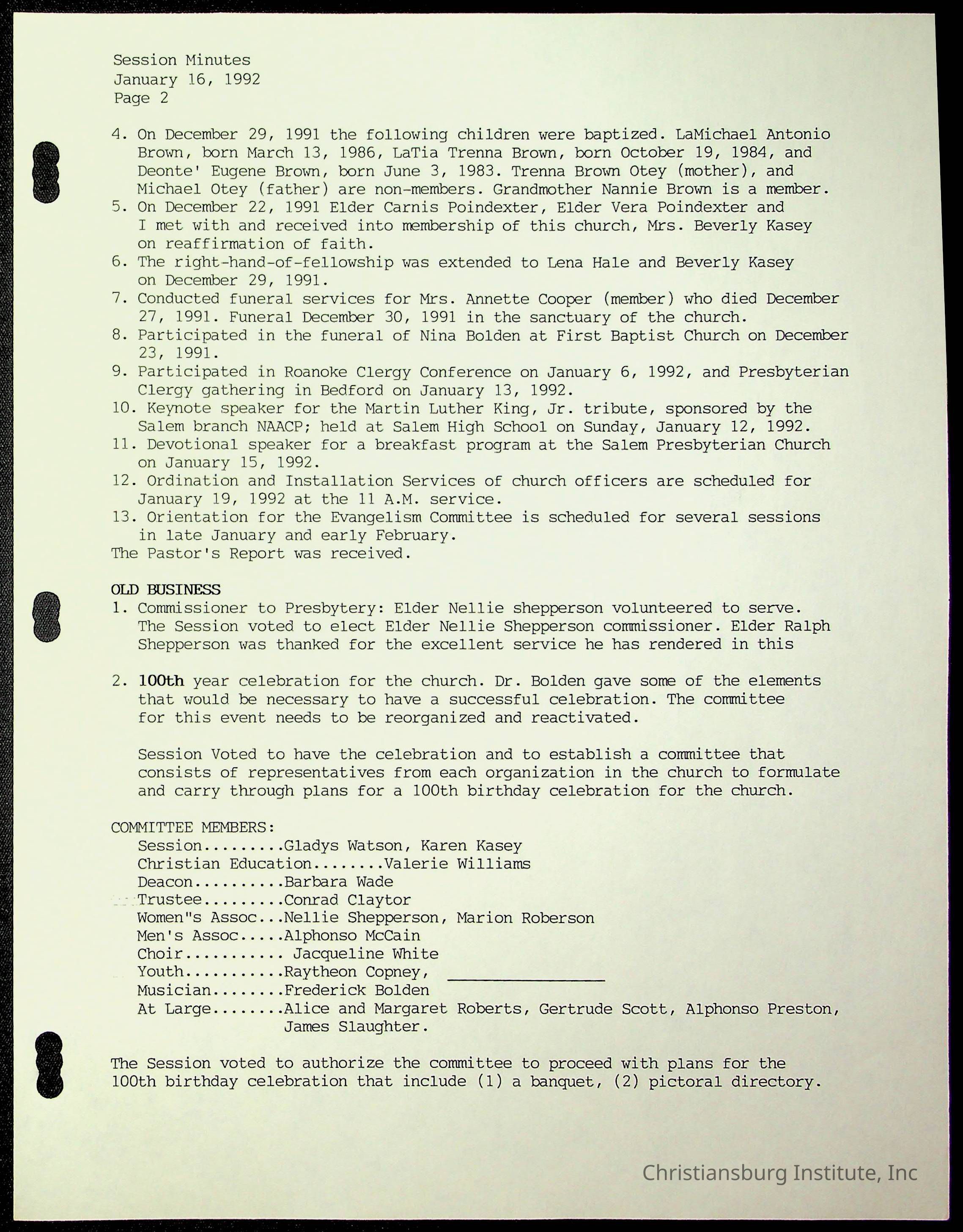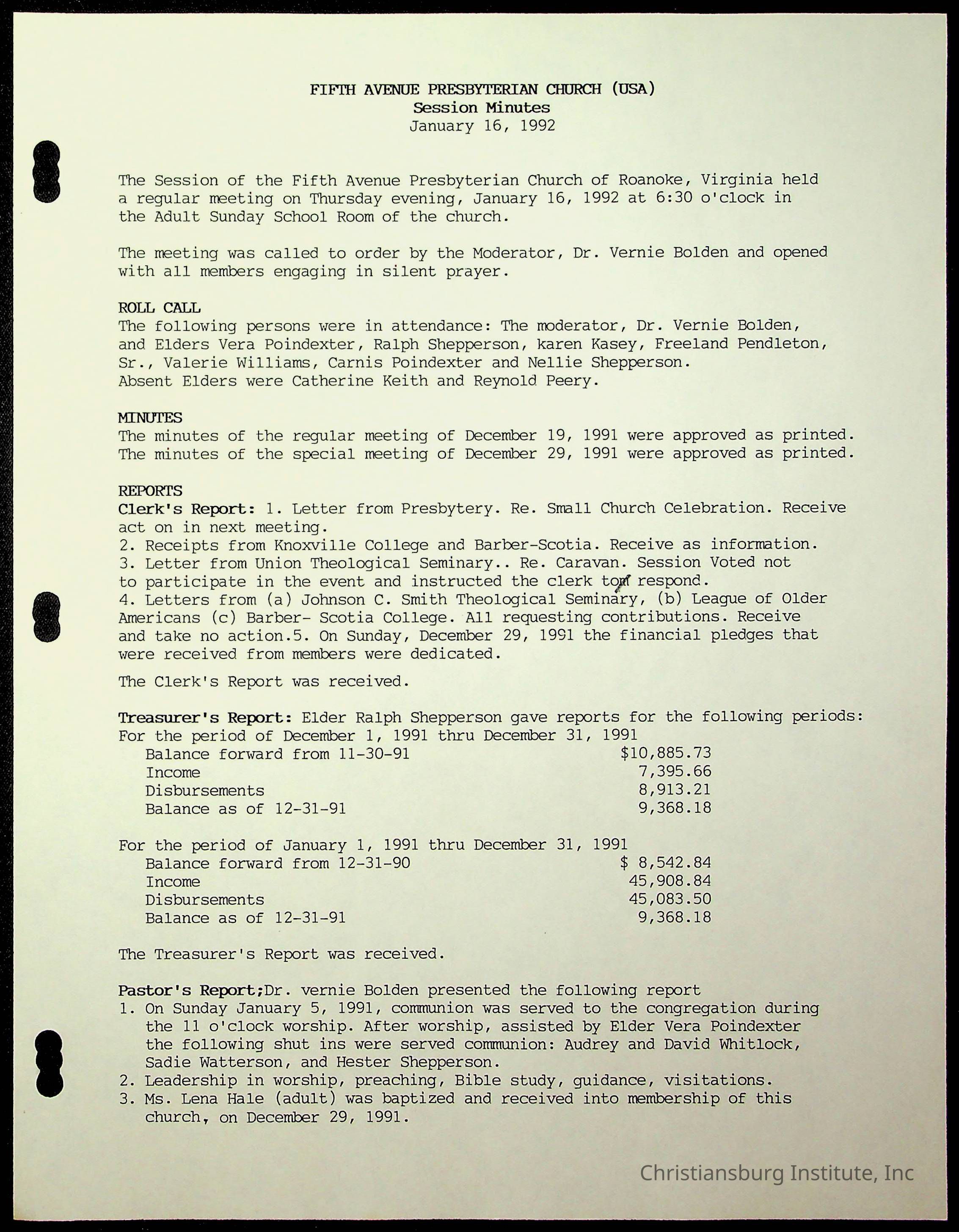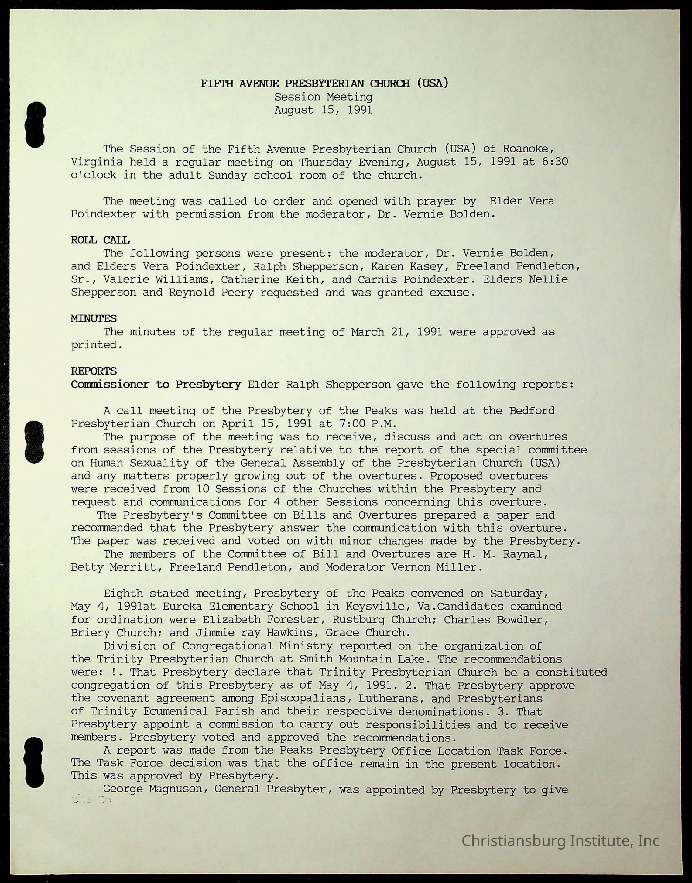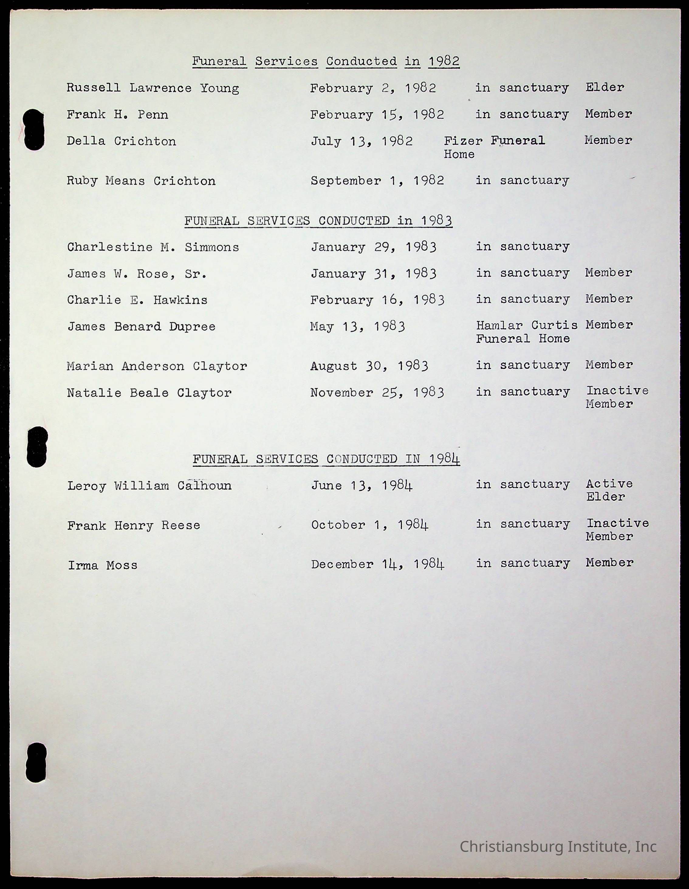Copyright has been assigned to Christiansburg Institute Museum & Archives by Fifth Avenue Presbyterian Church. For permission to publish materials created by the donor, contact CIMA@christiansburginstitute.com. Materials not created by Fifth Avenue Presbyterian Church may still be under copyright.