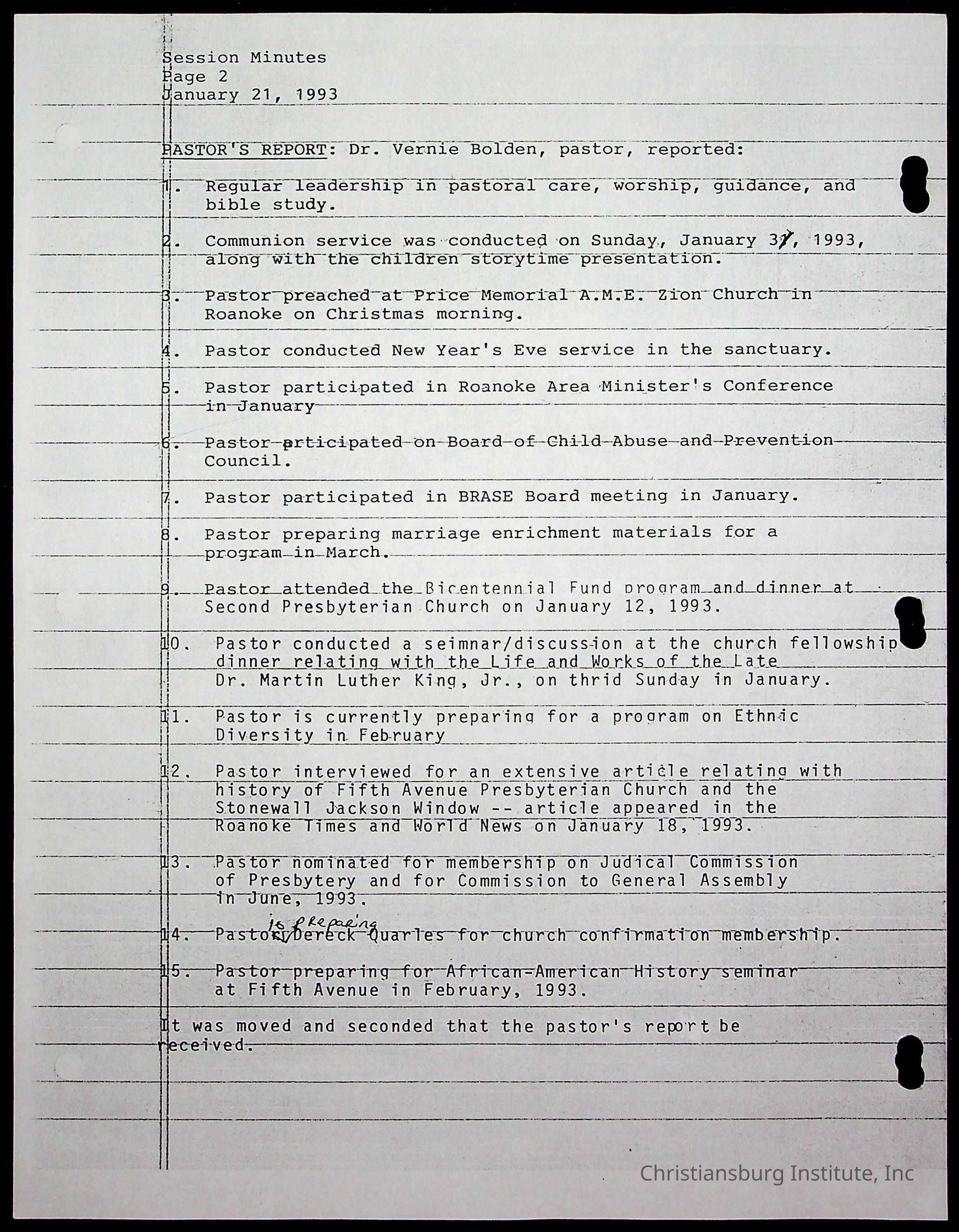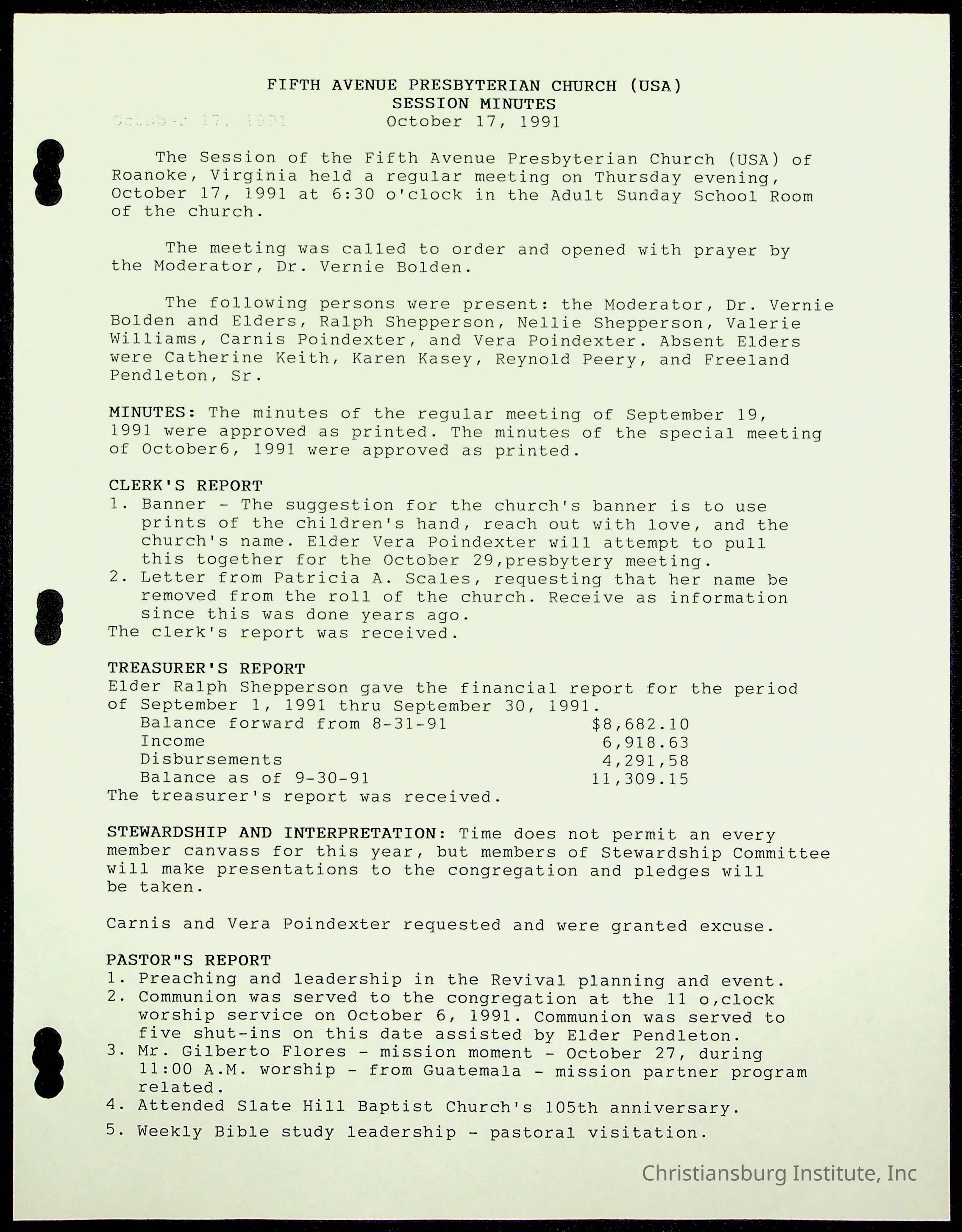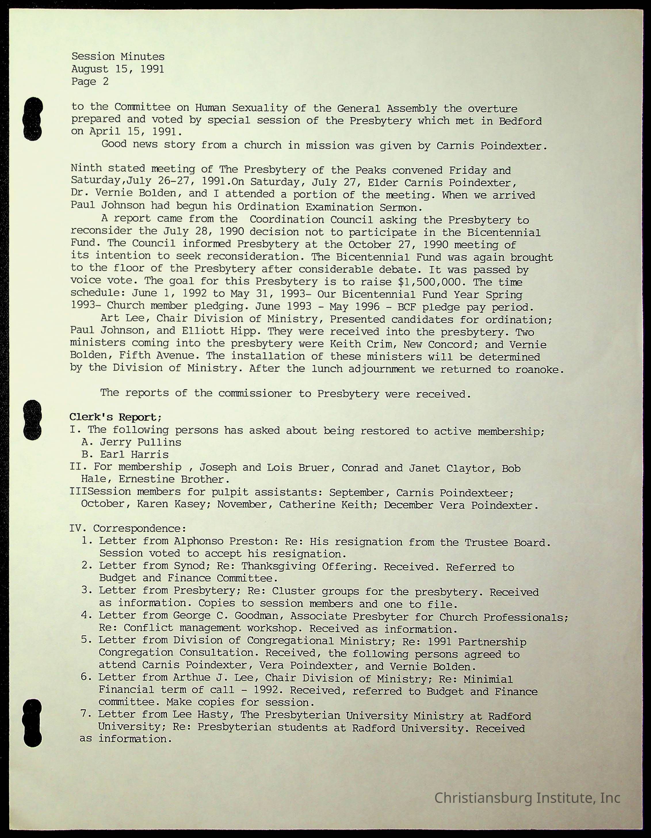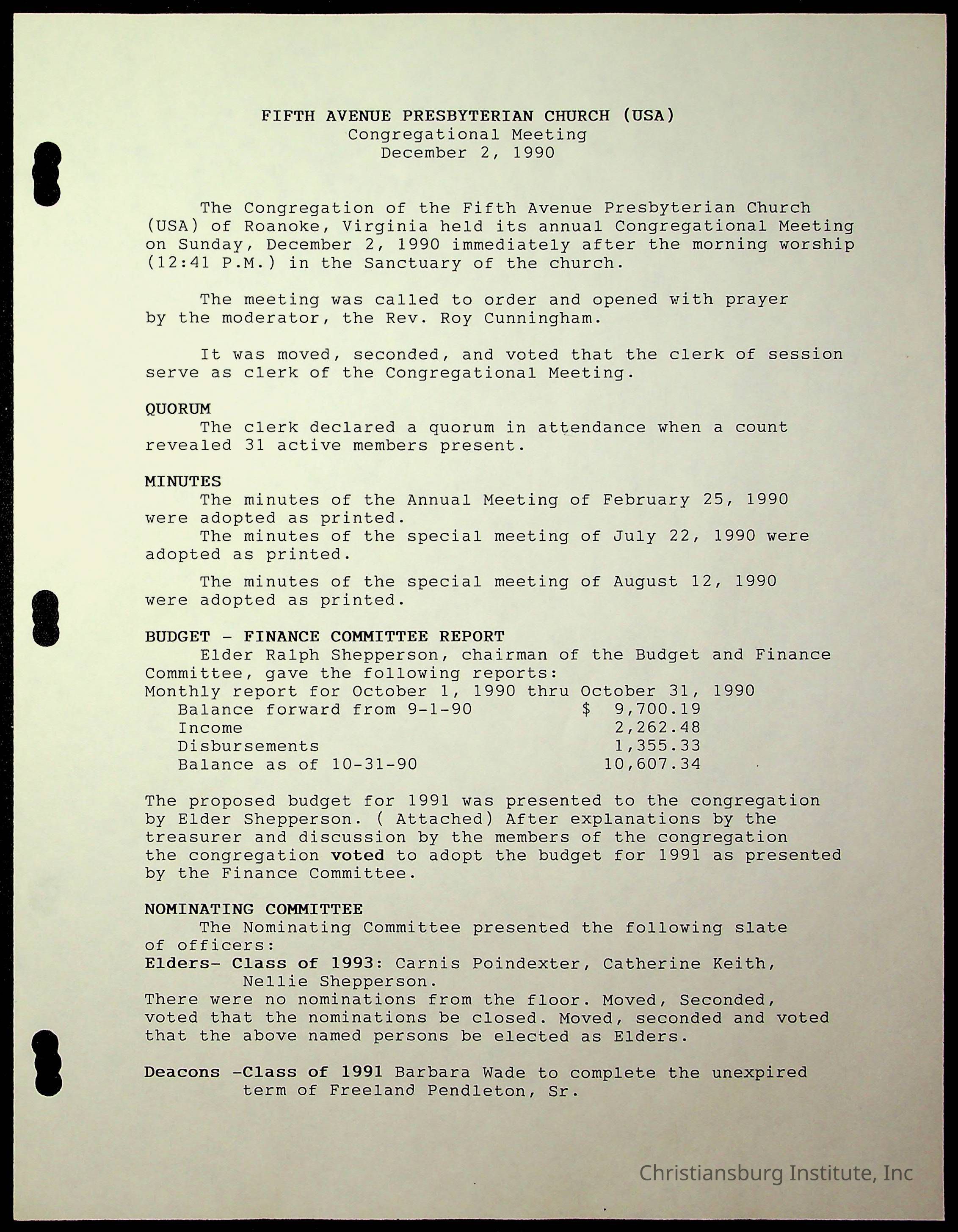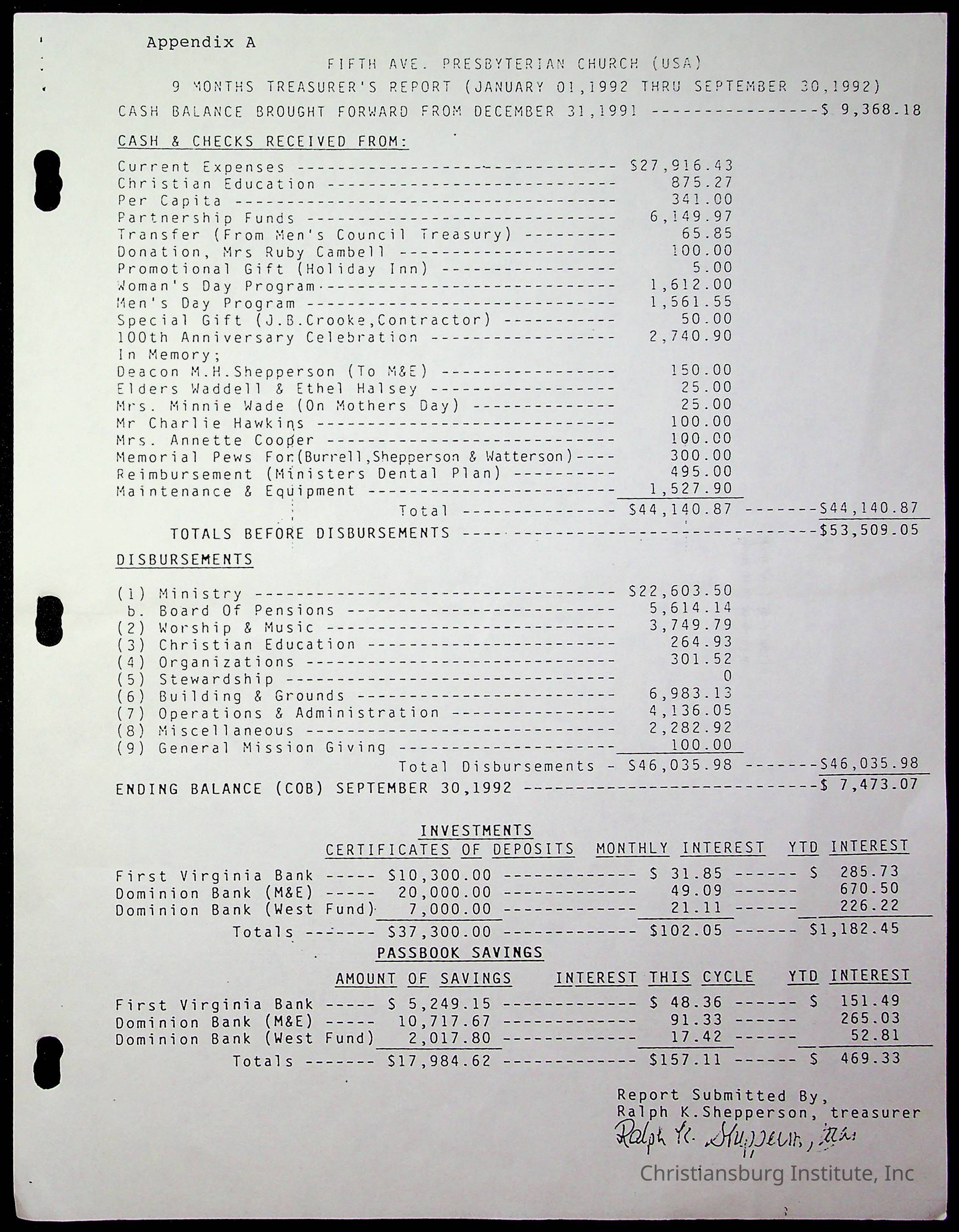 Copyright has been assigned to Christiansburg Institute Museum & Archives by Fifth Avenue Presbyterian Church. For permission to publish materials created by the donor, contact CIMA@christiansburginstitute.com. Materials not created by Fifth Avenue Presbyterian Church may still be under copyright.
