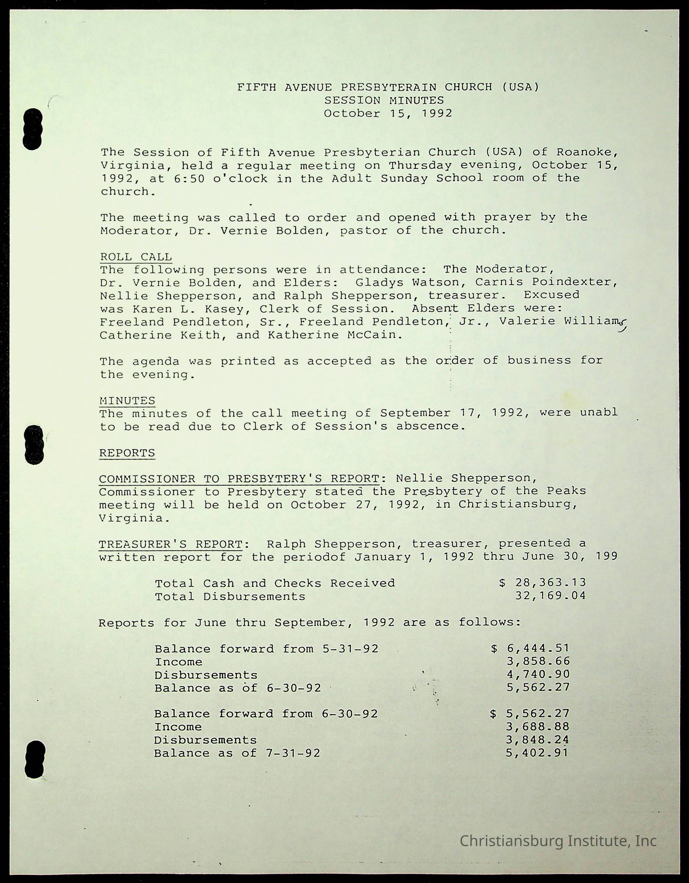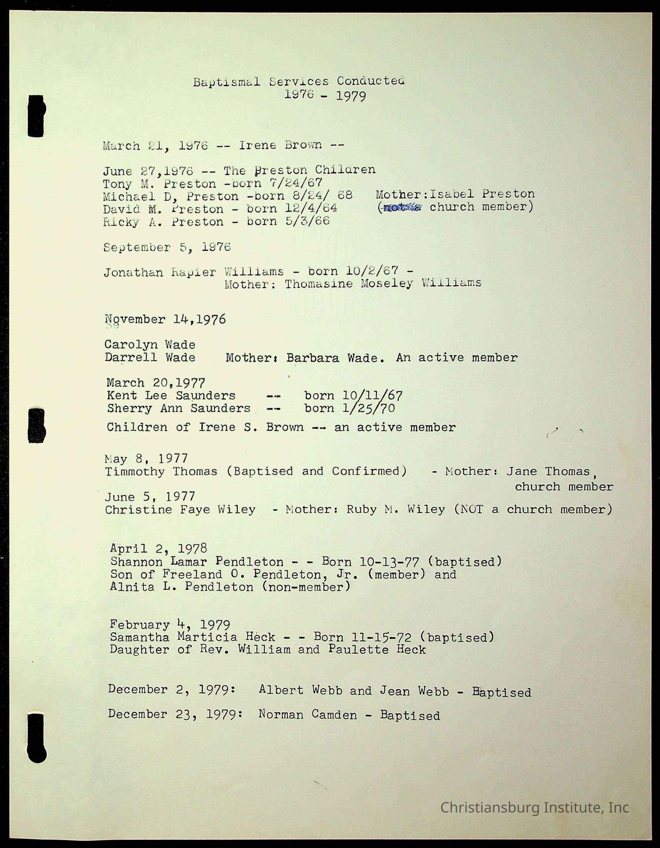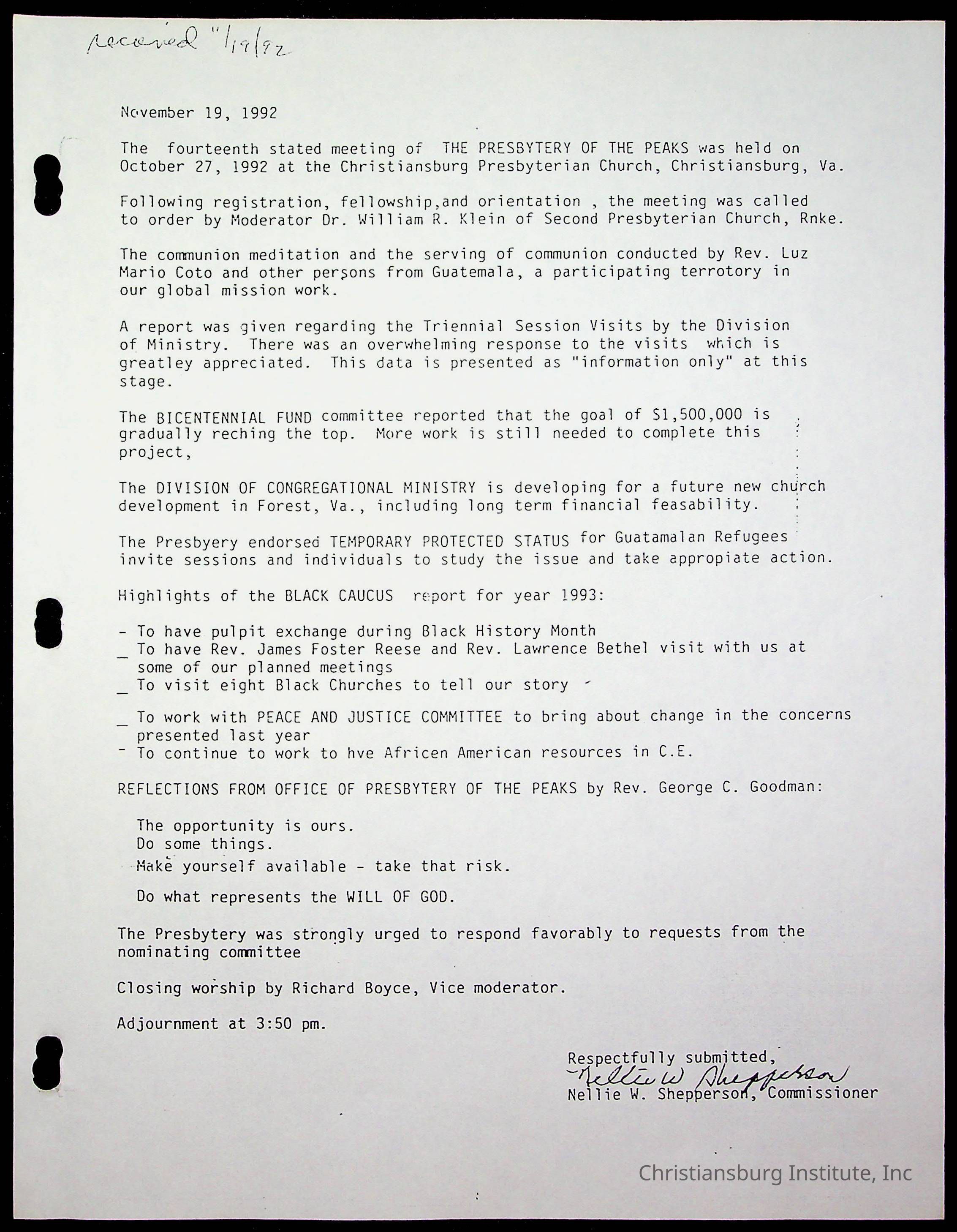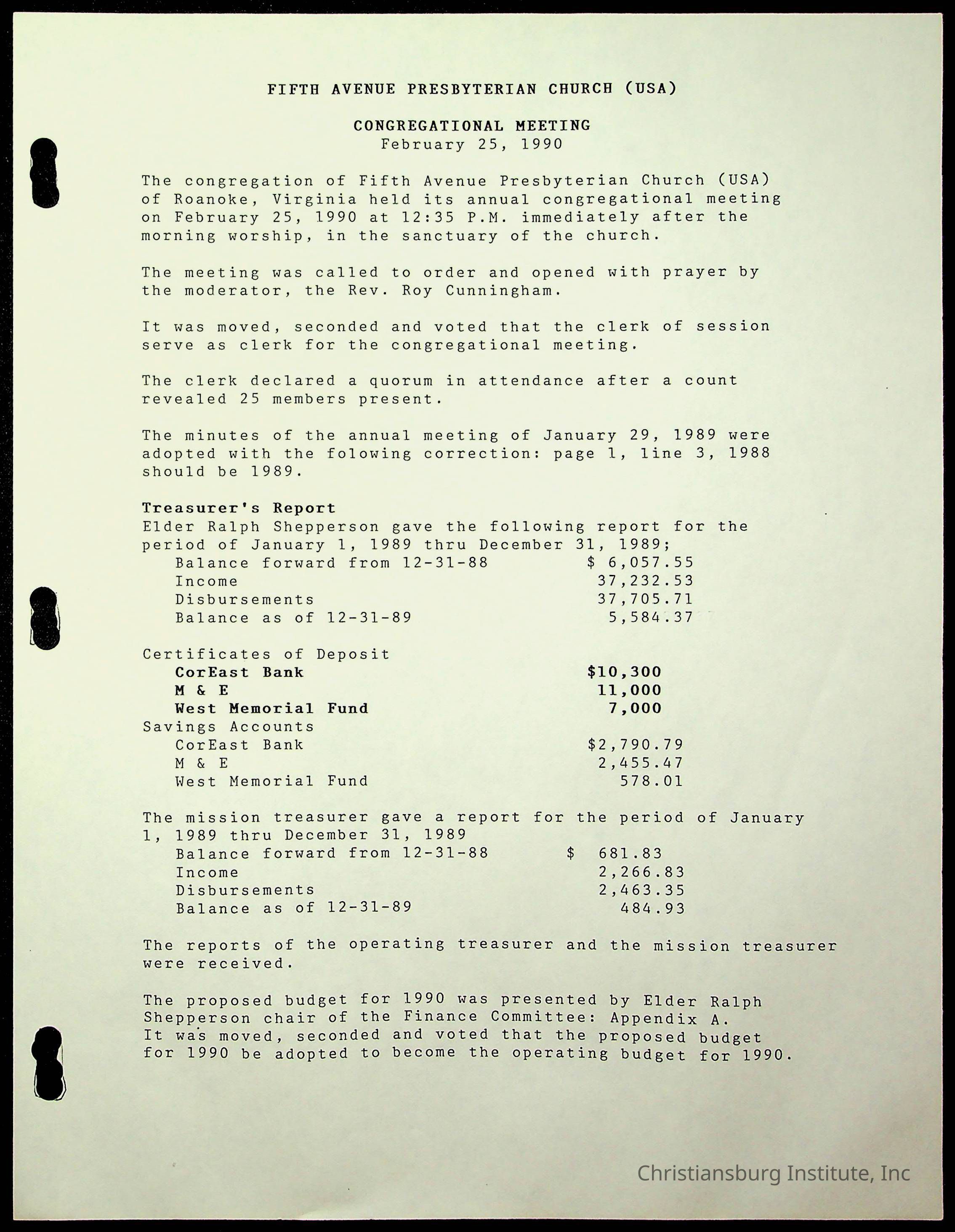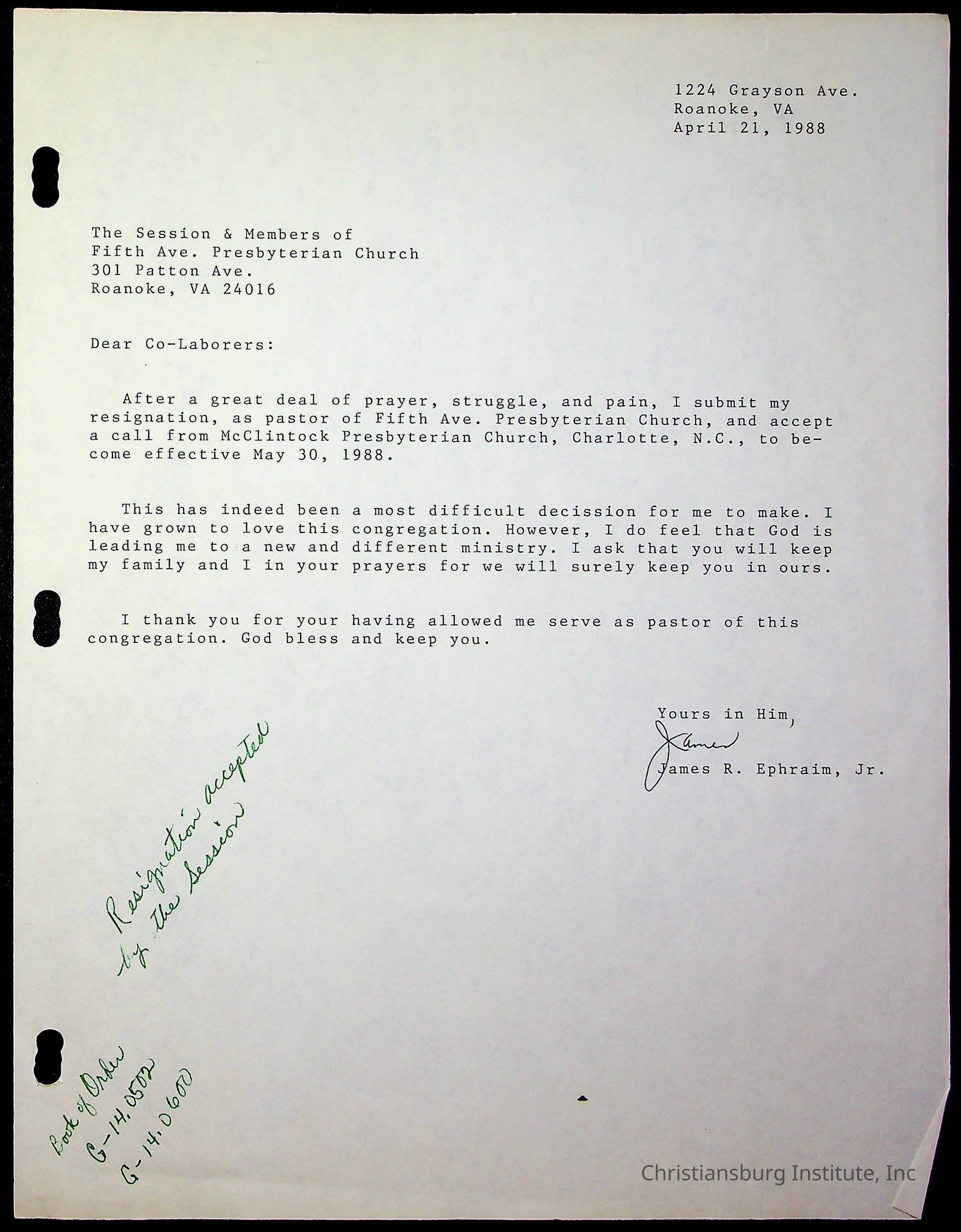 Copyright has been assigned to Christiansburg Institute Museum & Archives by Fifth Avenue Presbyterian Church. For permission to publish materials created by the donor, contact CIMA@christiansburginstitute.com. Materials not created by Fifth Avenue Presbyterian Church may still be under copyright.