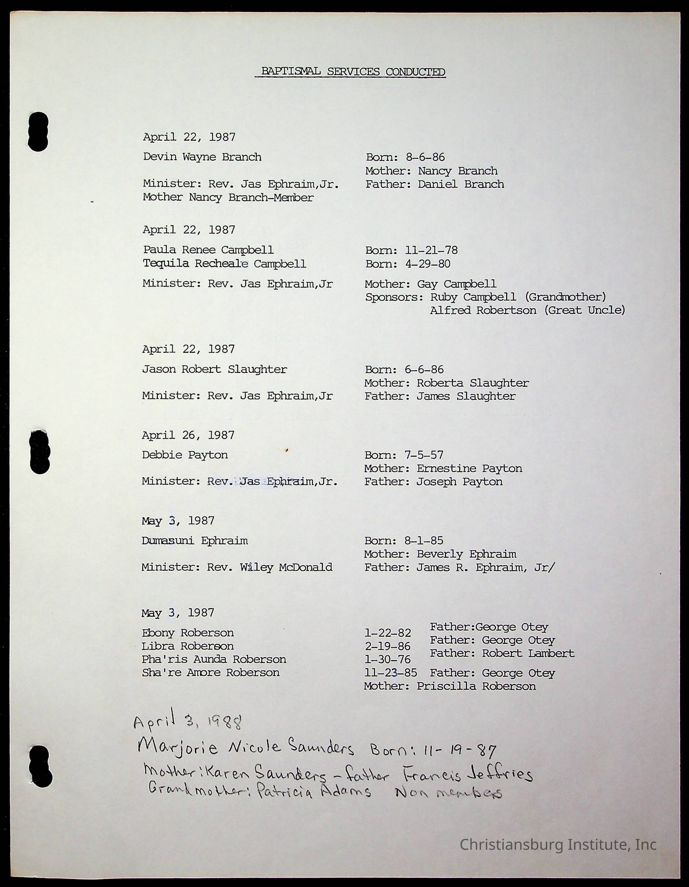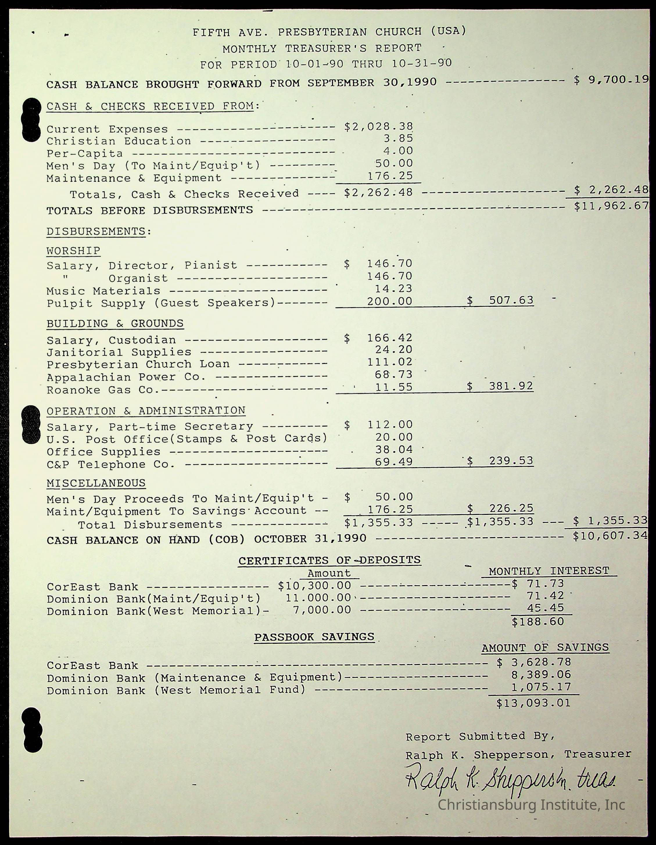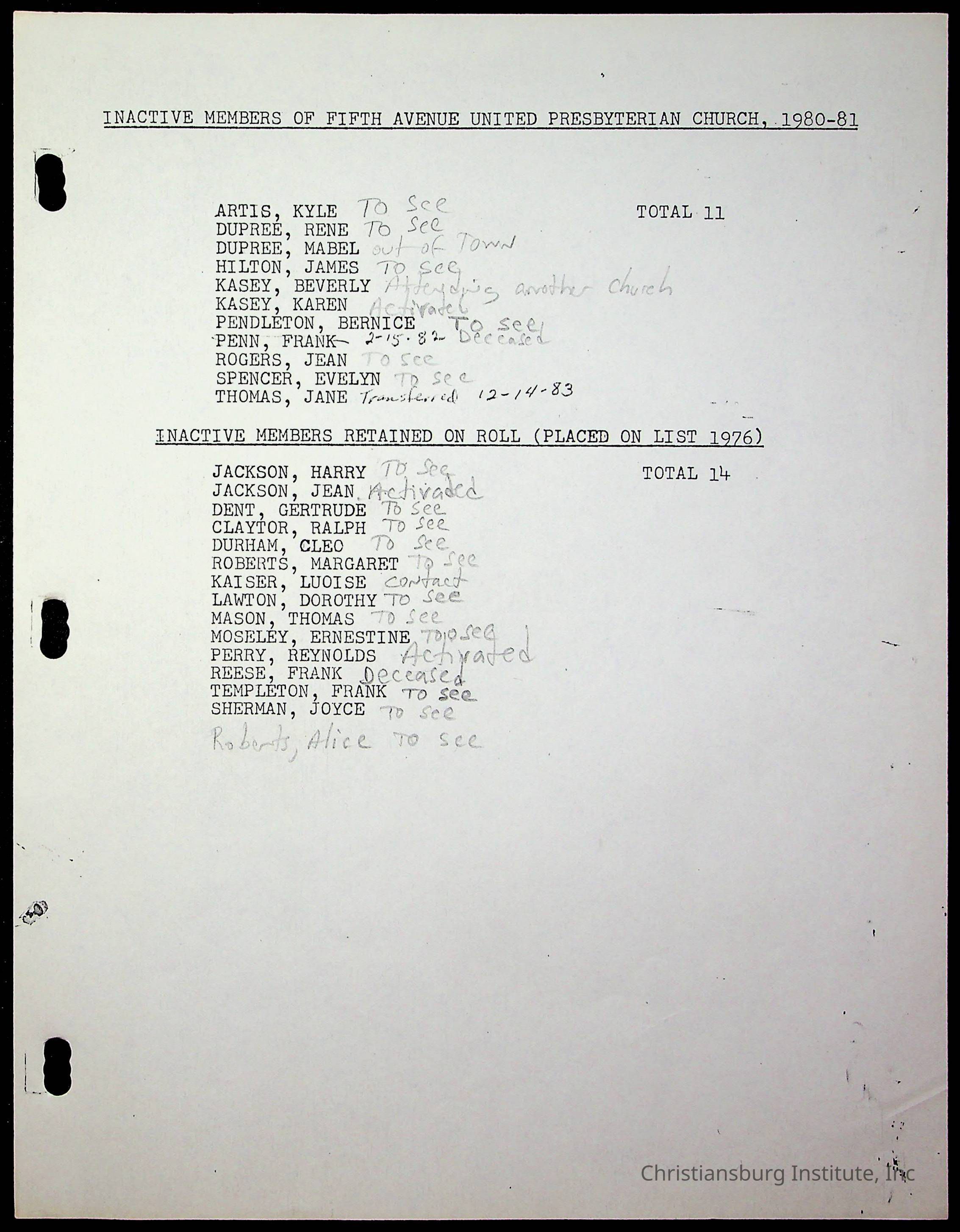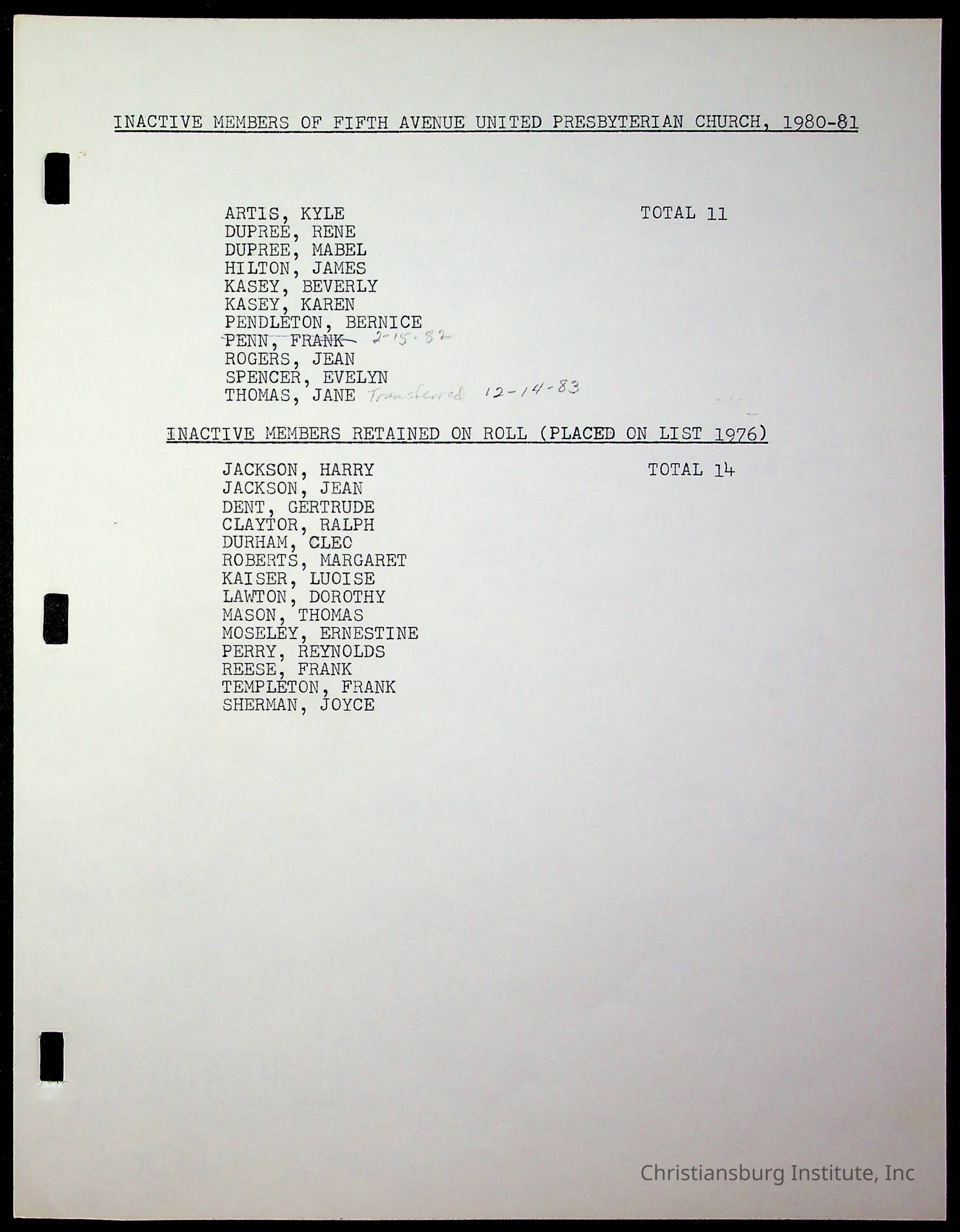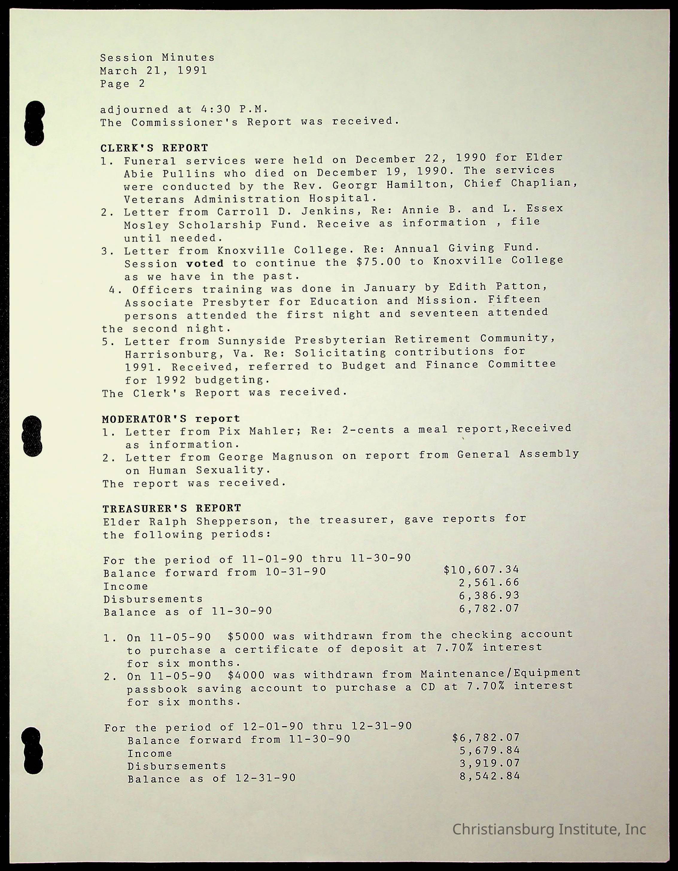 Copyright has been assigned to Christiansburg Institute Museum & Archives by Fifth Avenue Presbyterian Church. For permission to publish materials created by the donor, contact CIMA@christiansburginstitute.com. Materials not created by Fifth Avenue Presbyterian Church may still be under copyright.