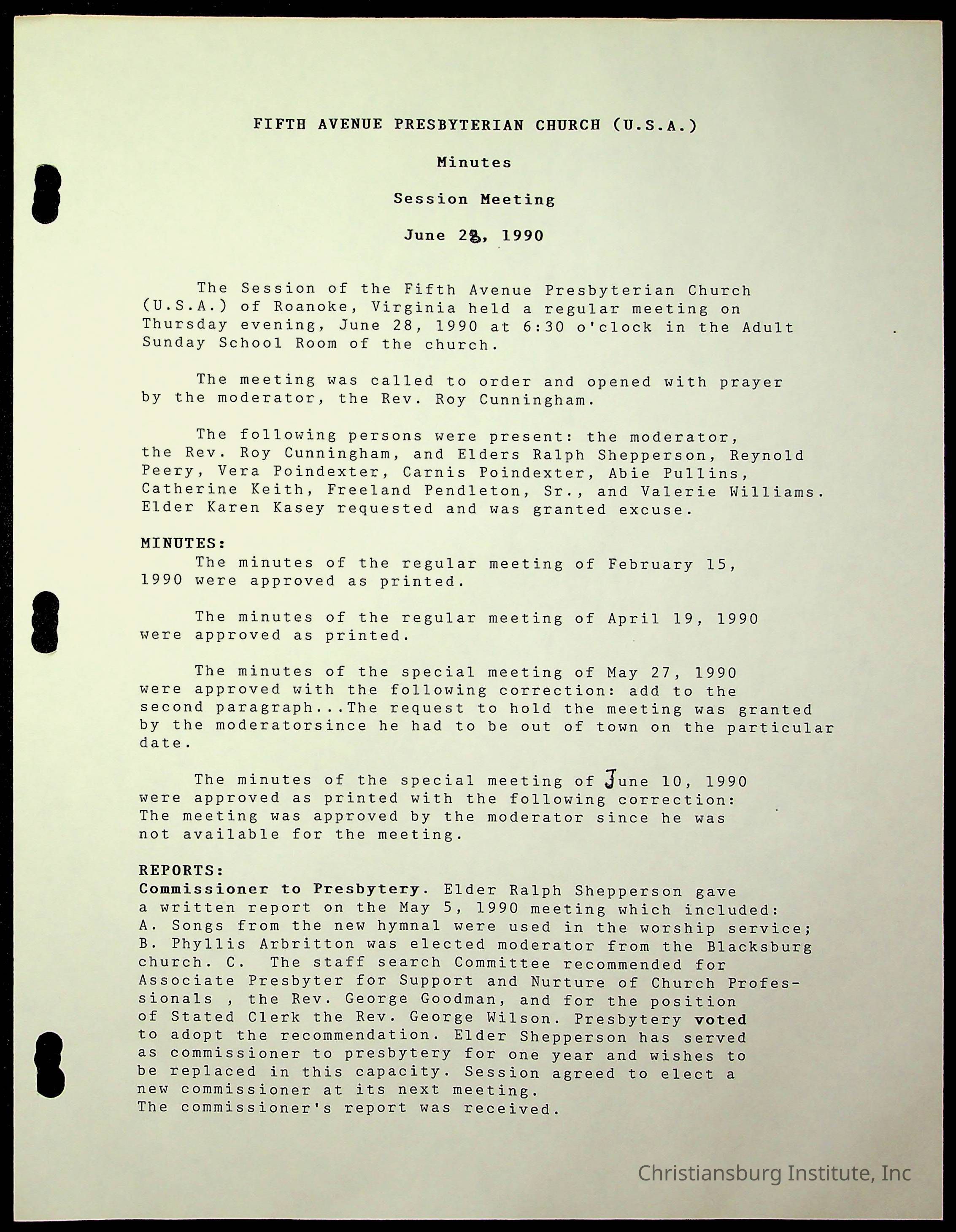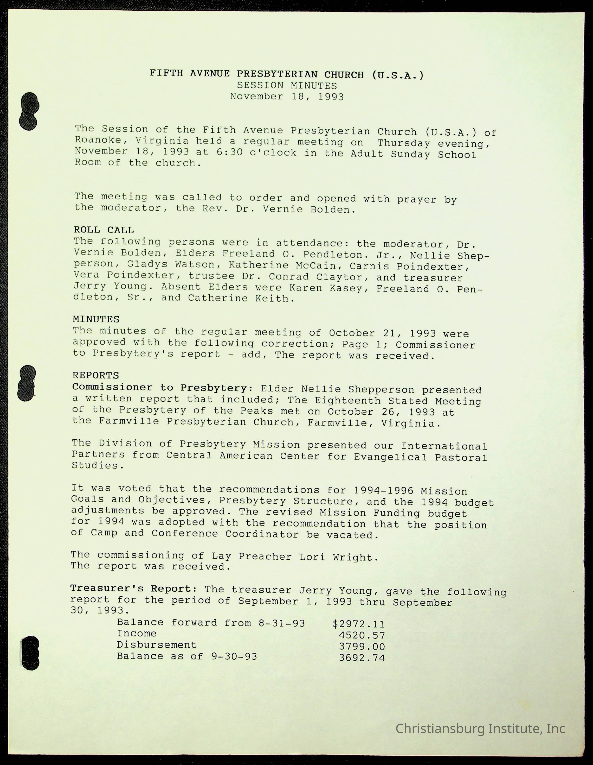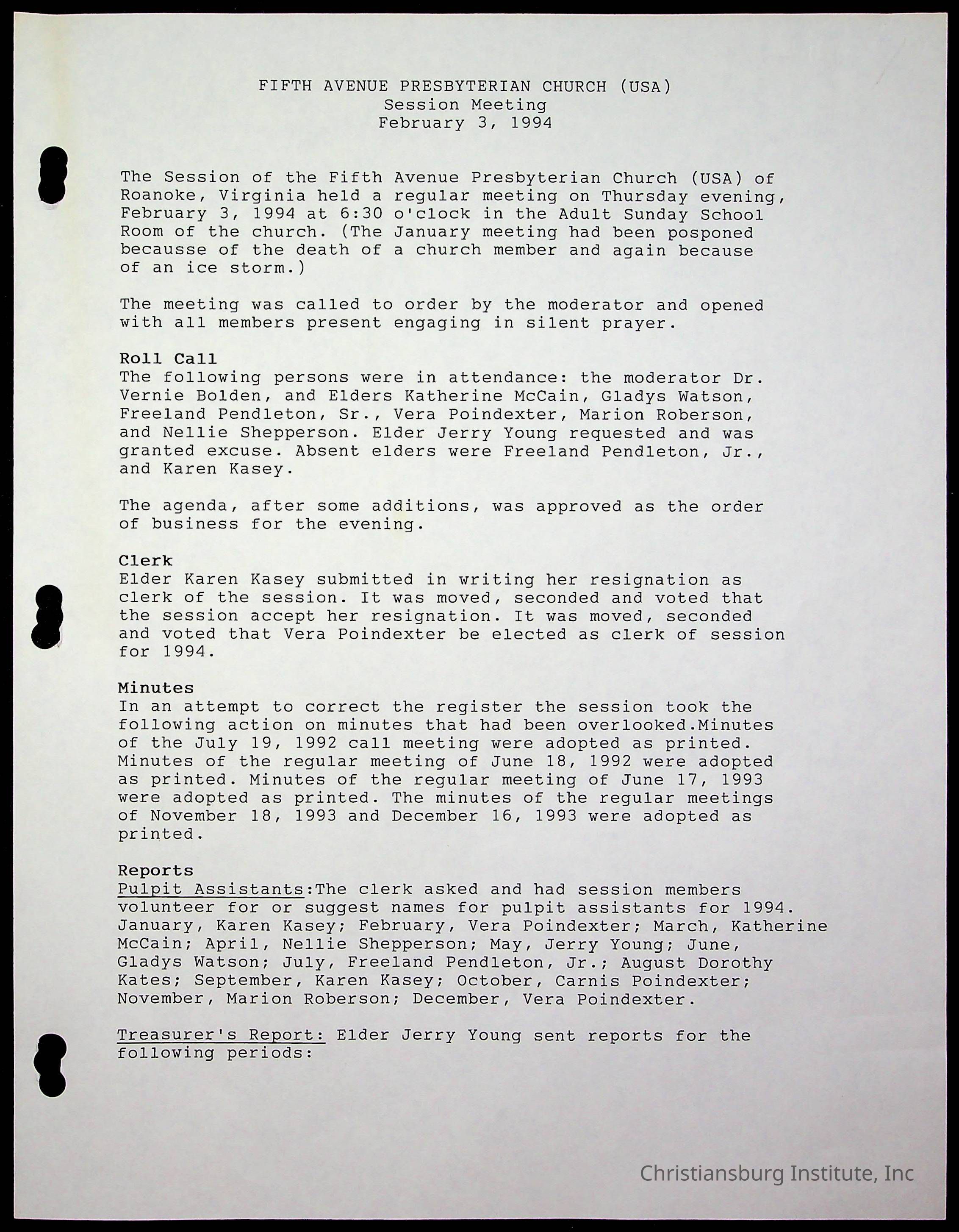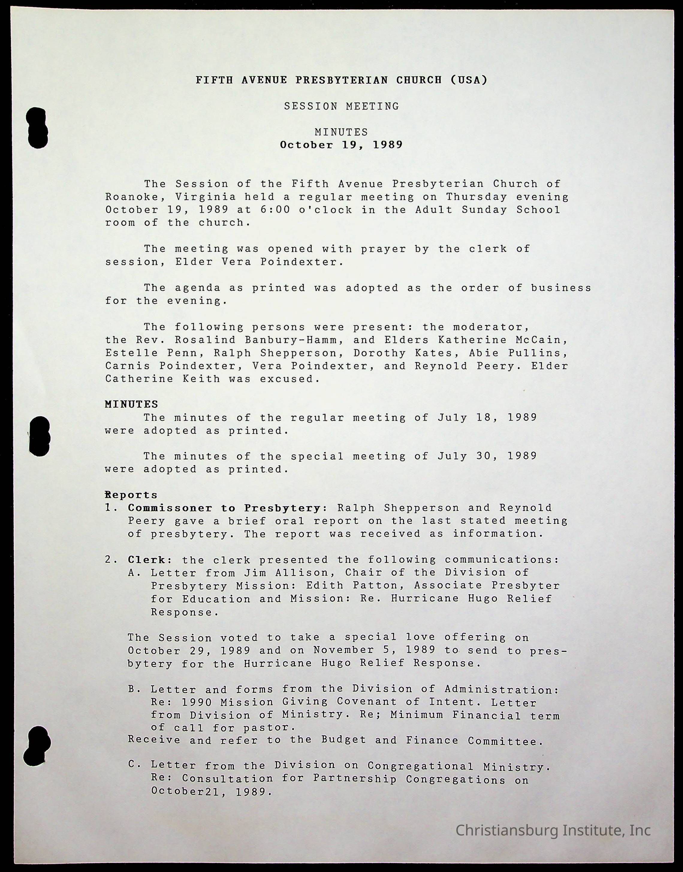 The session minutes for the Fifth Avenue Presbyterian Church from the years 1989-1994.Collection