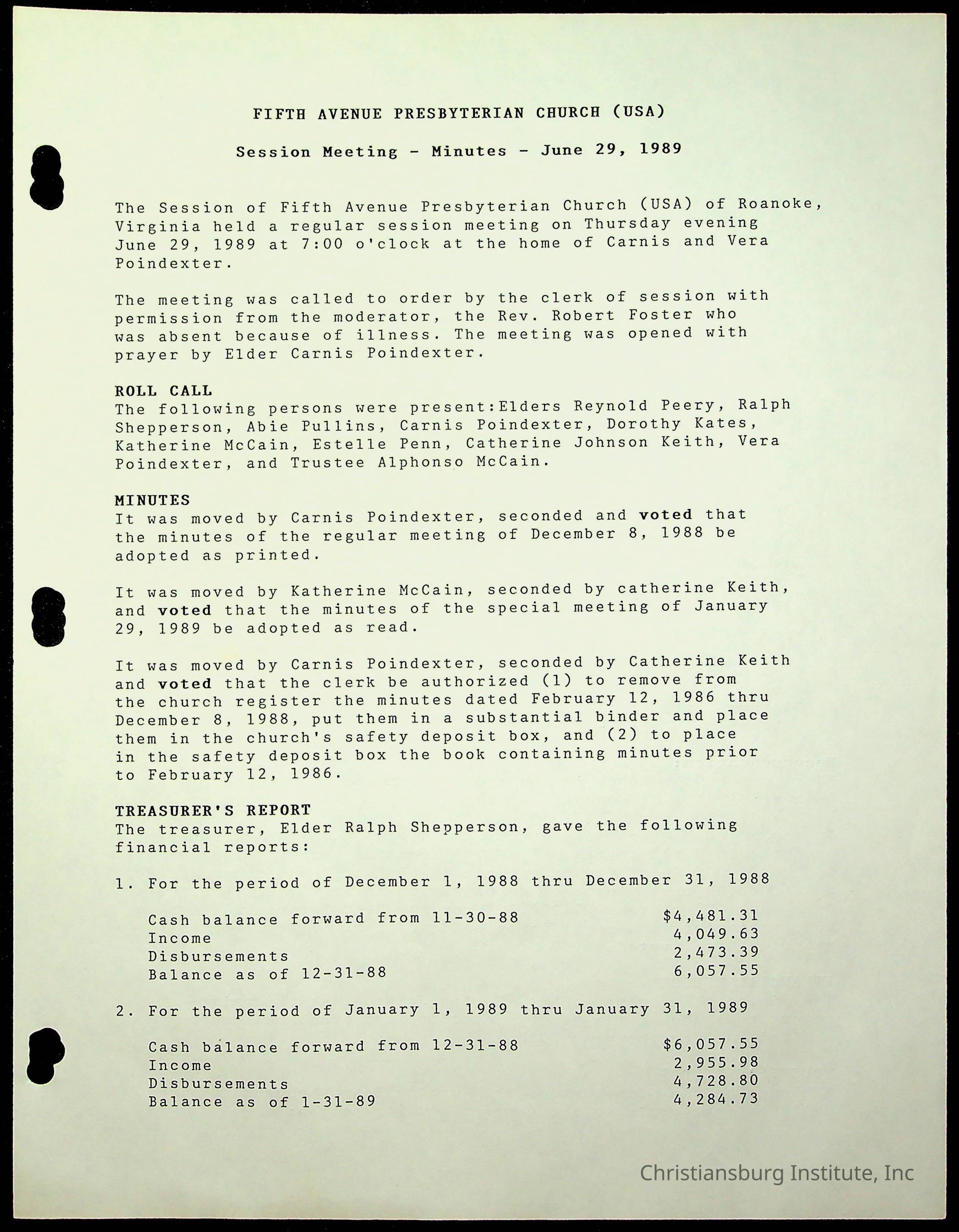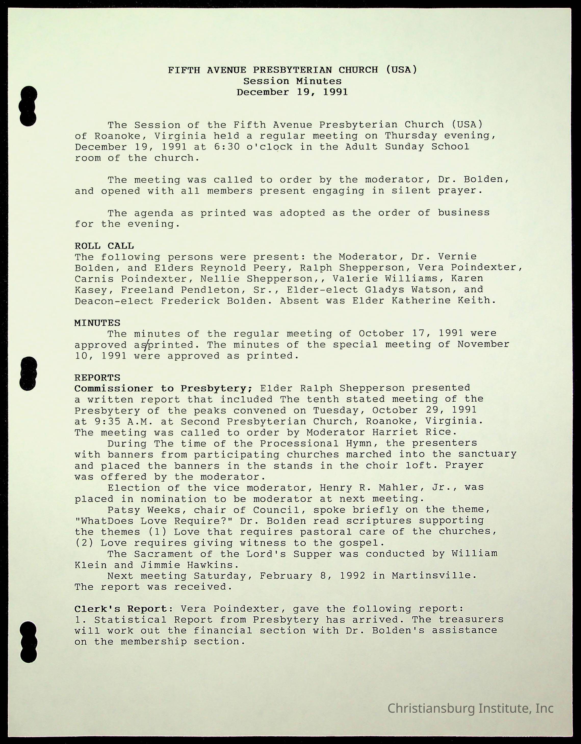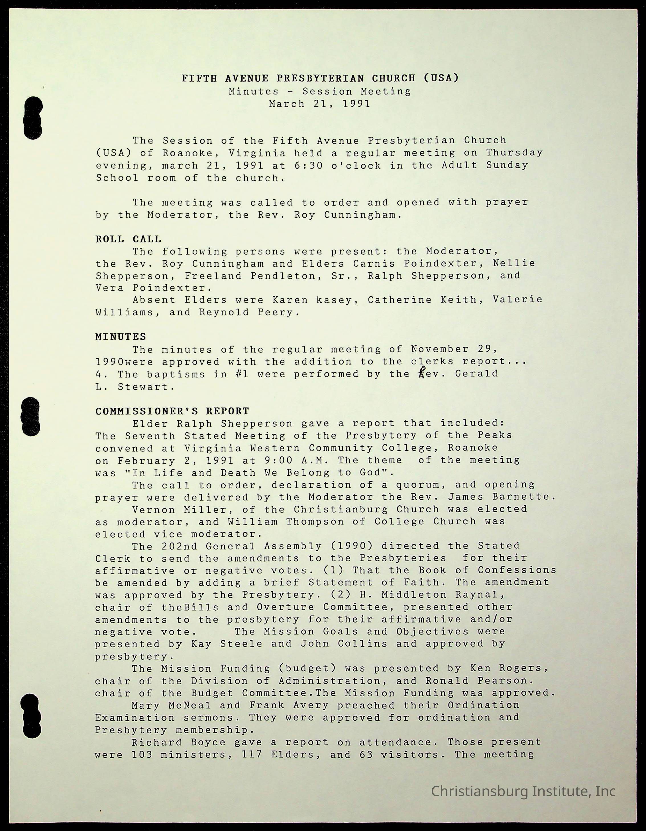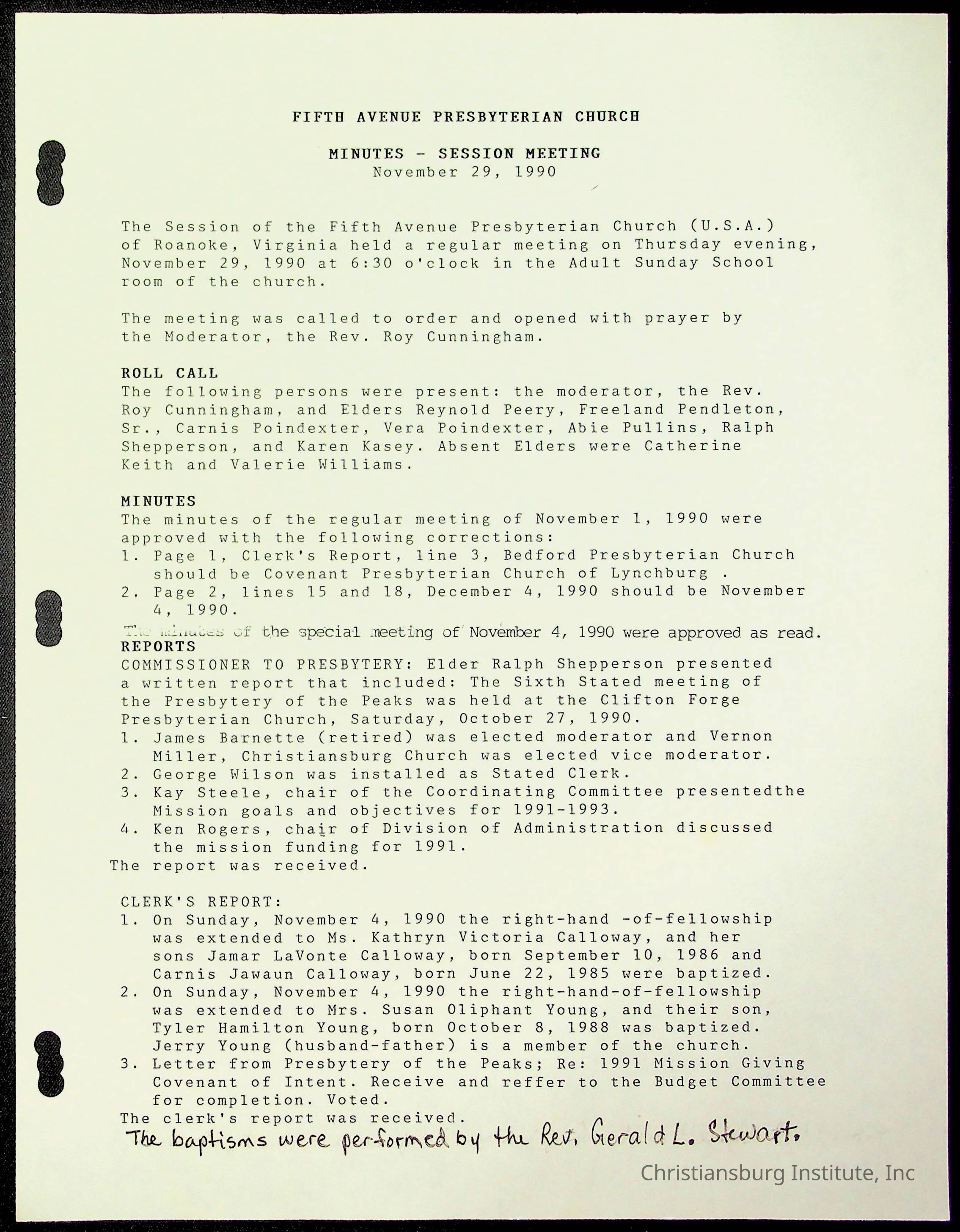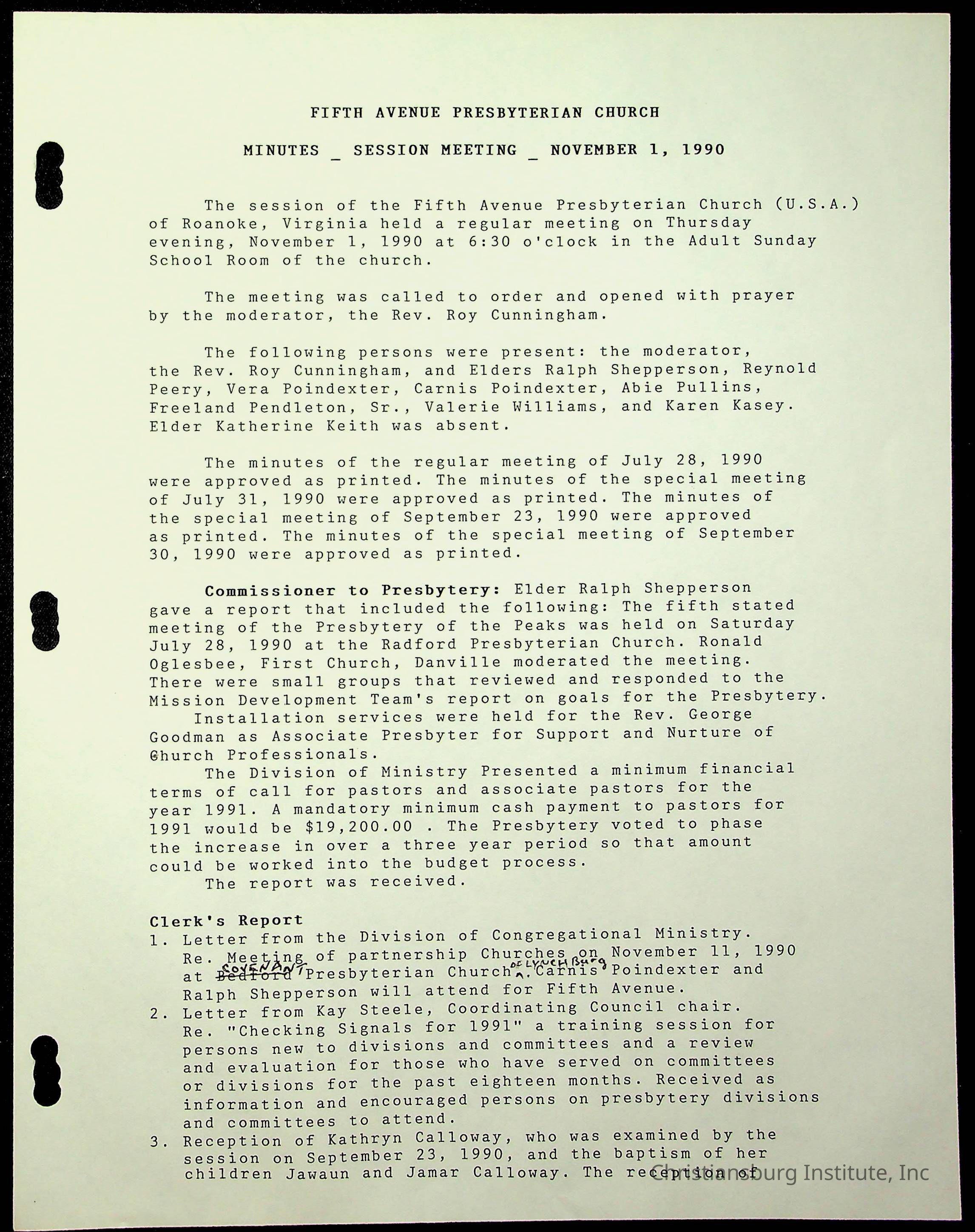 The session minutes for the Fifth Avenue Presbyterian Church from the years 1989-1994.Collection