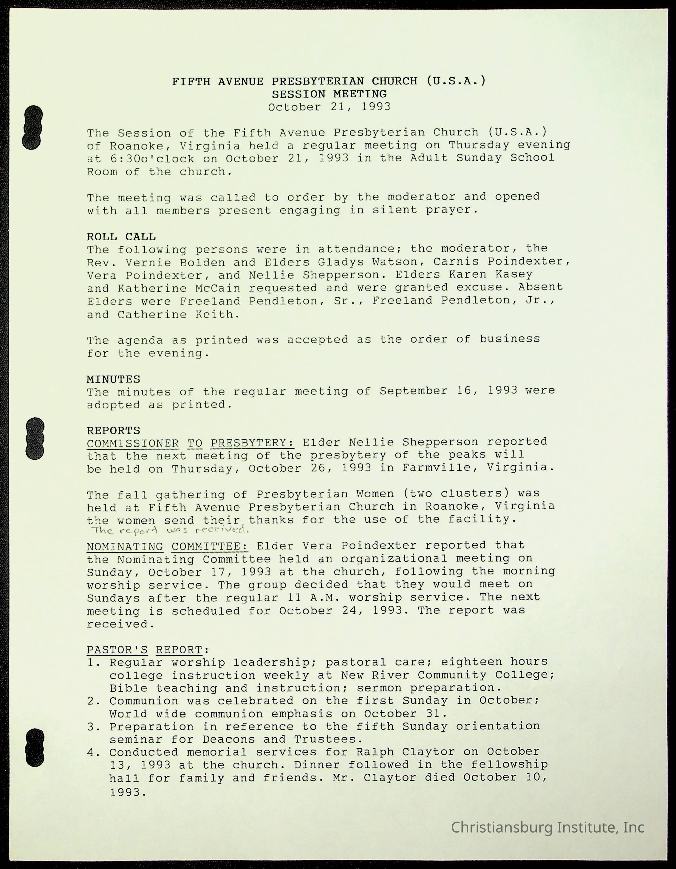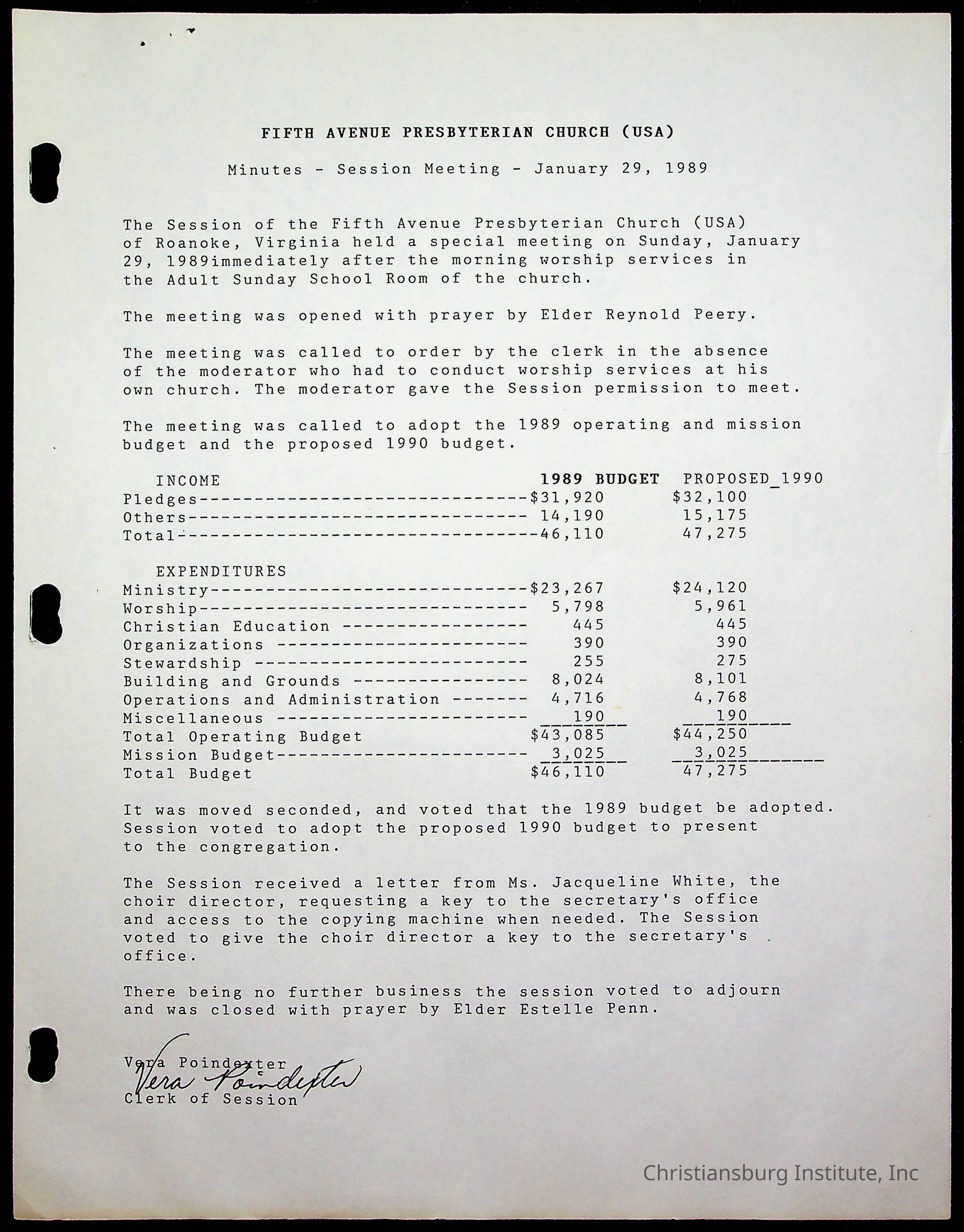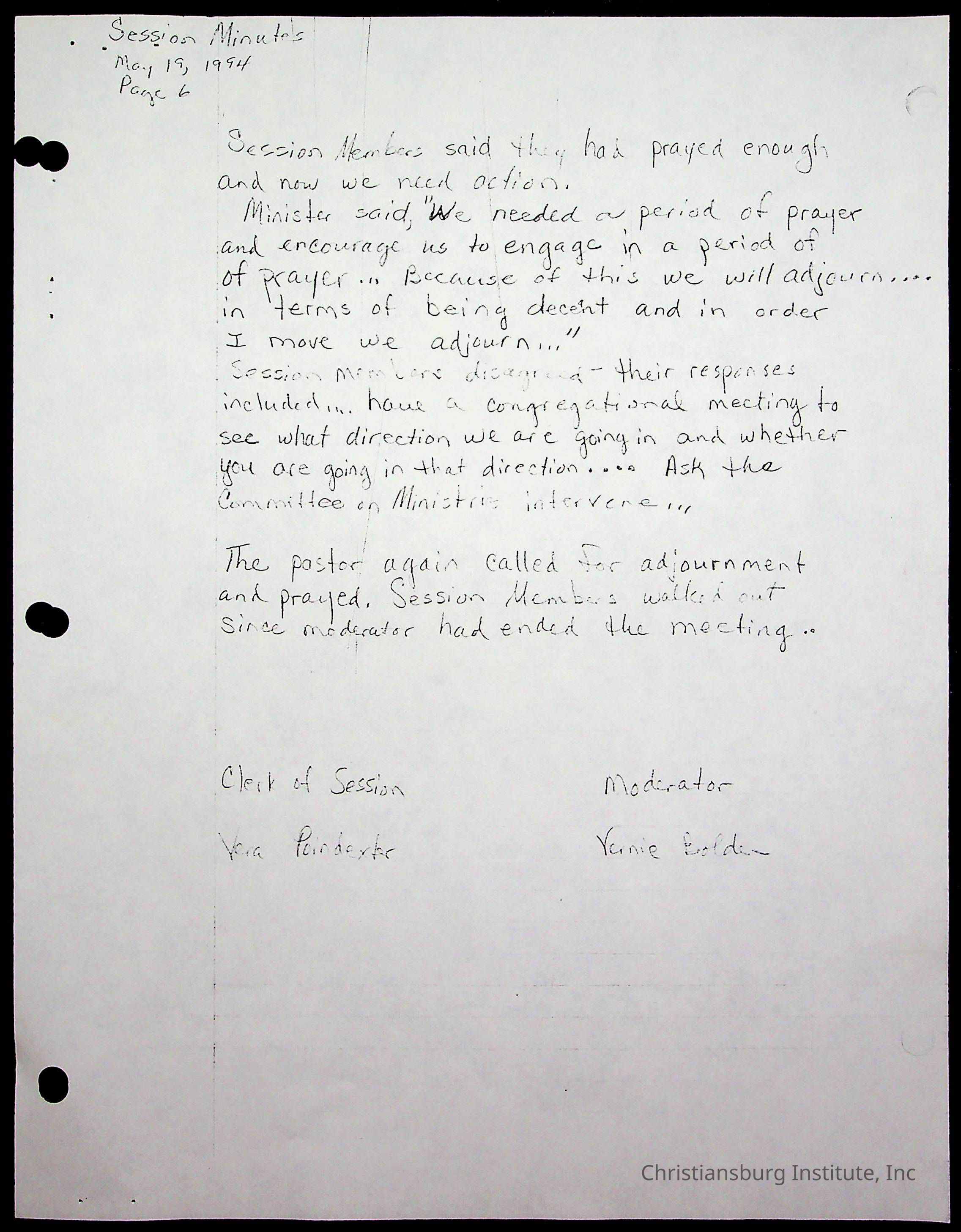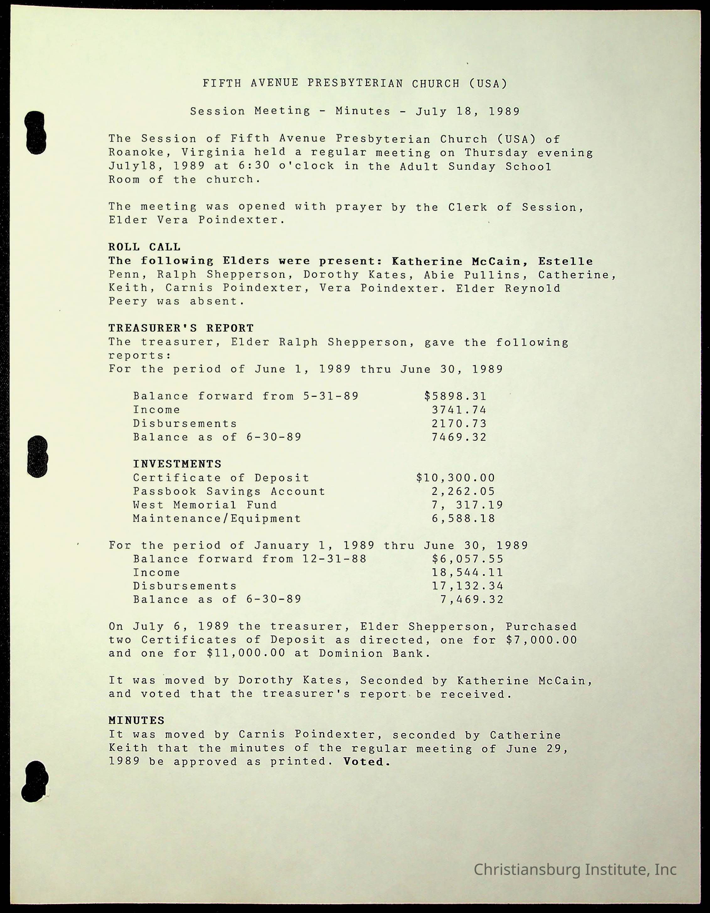 The session minutes for the Fifth Avenue Presbyterian Church from the years 1989-1994.Collection
