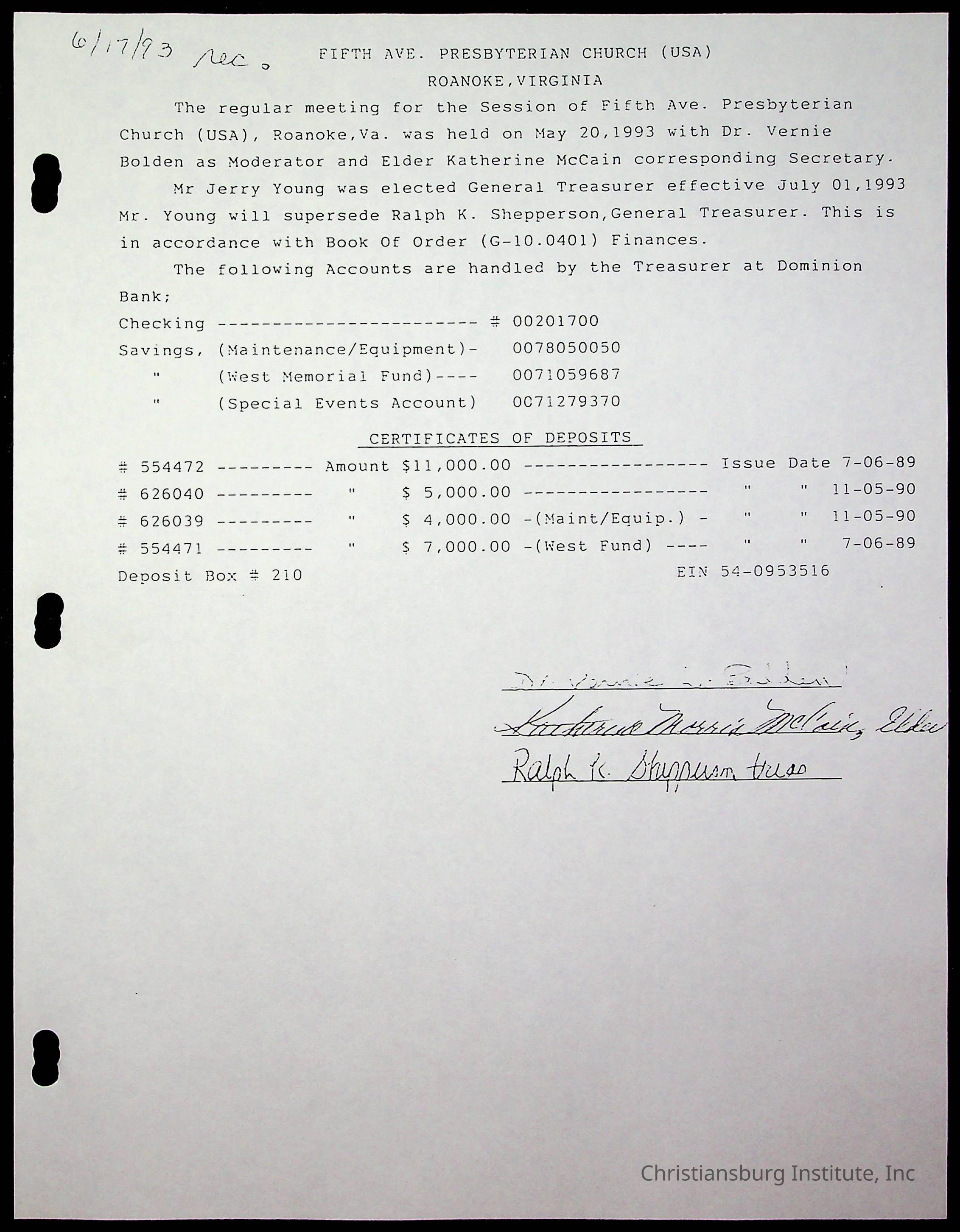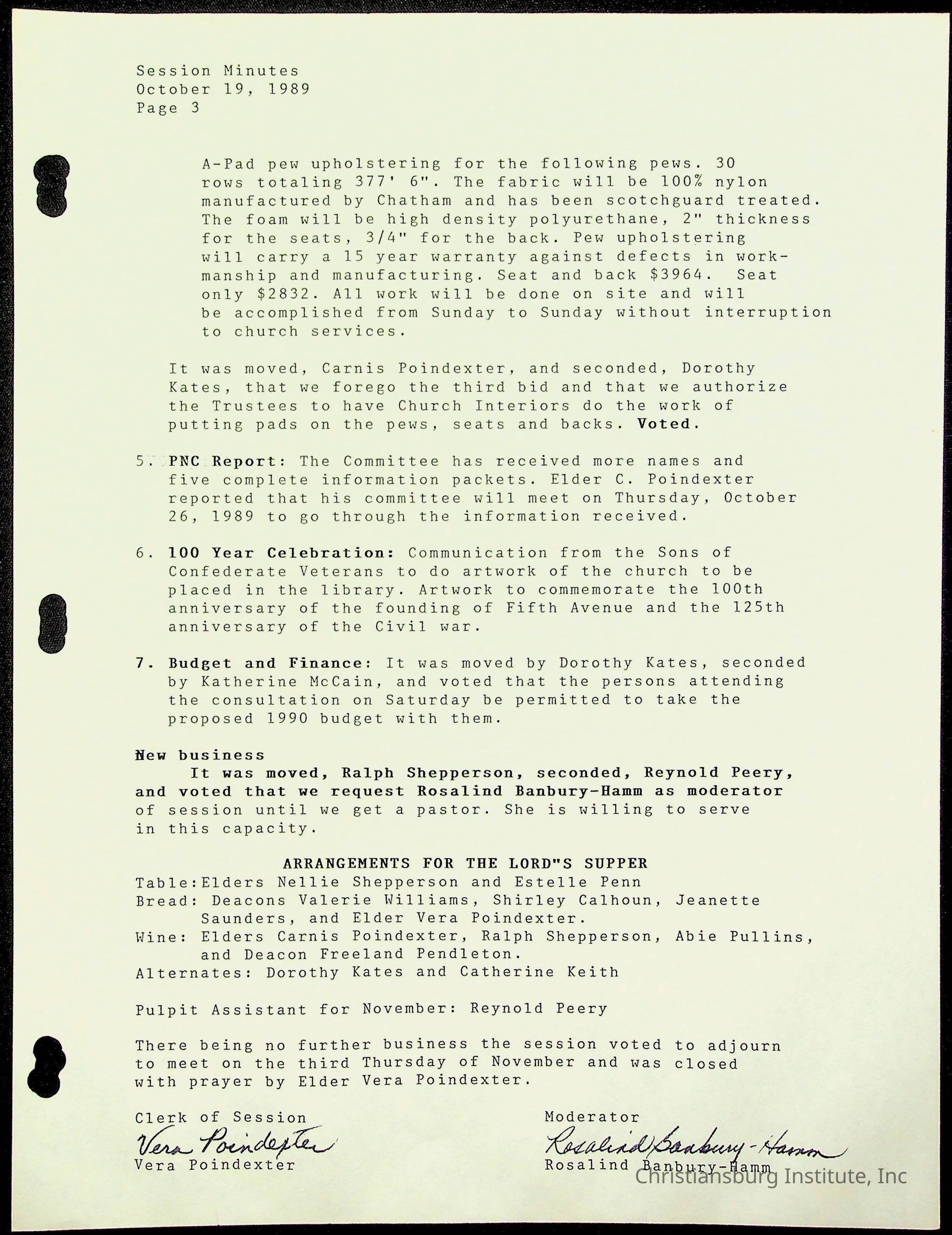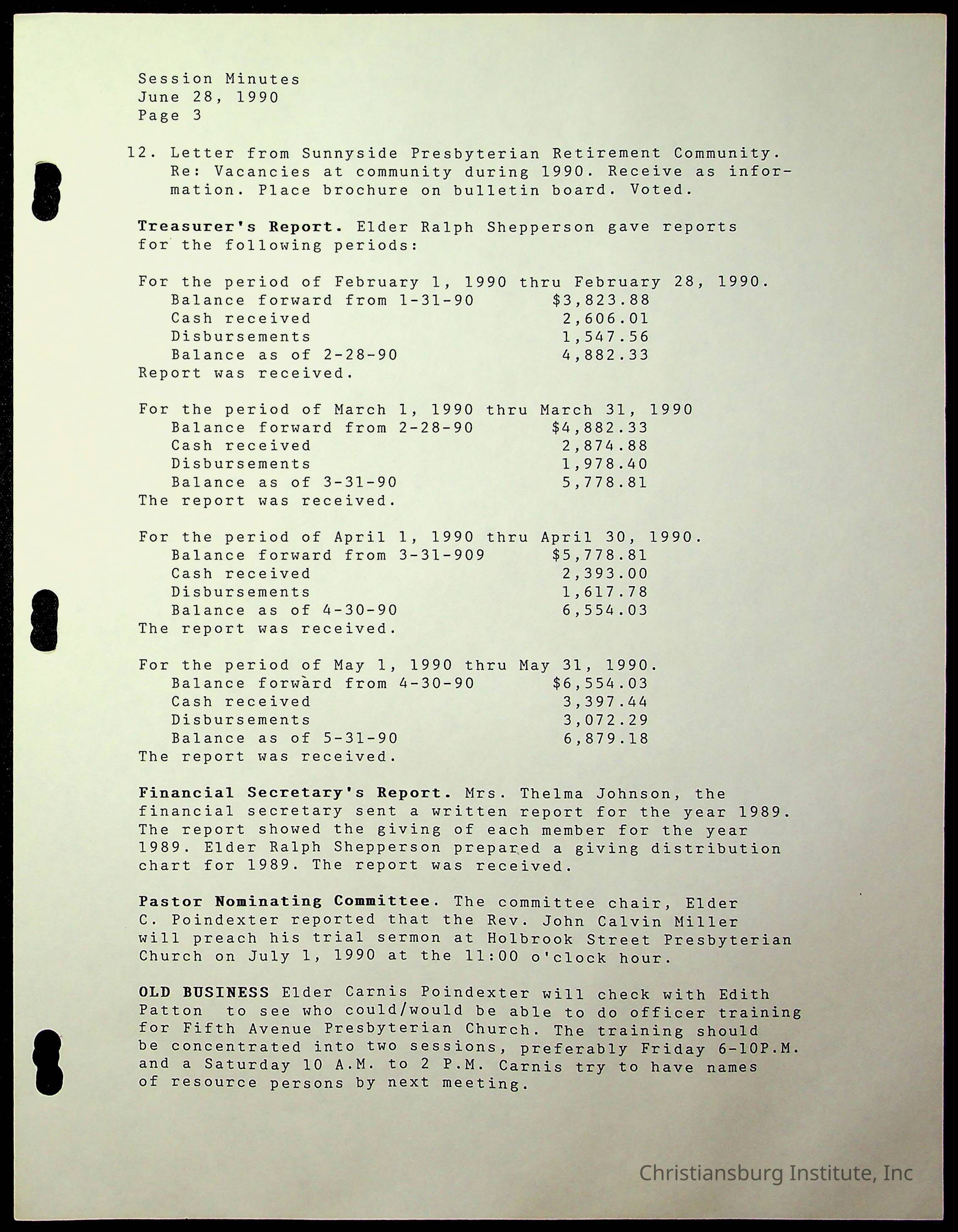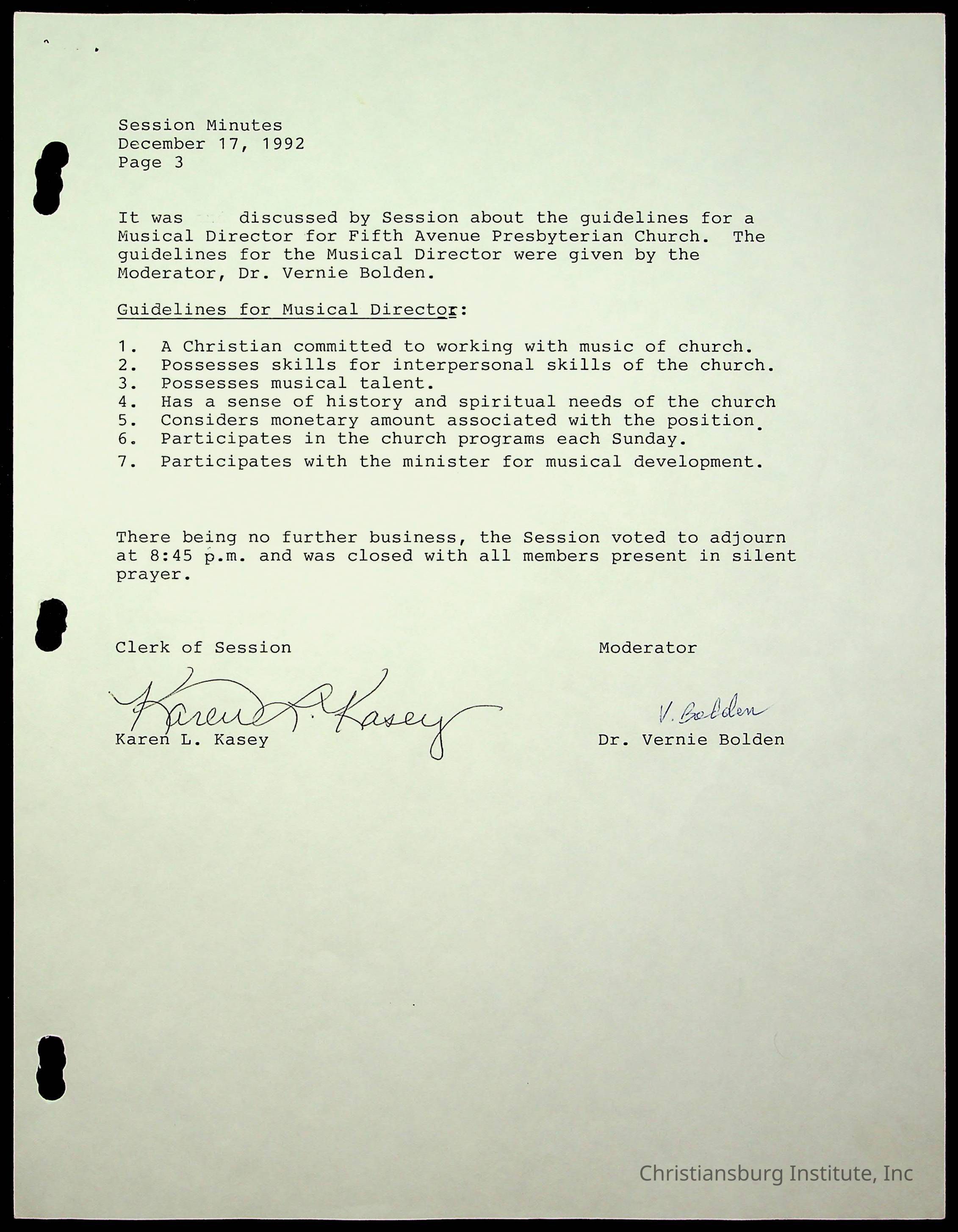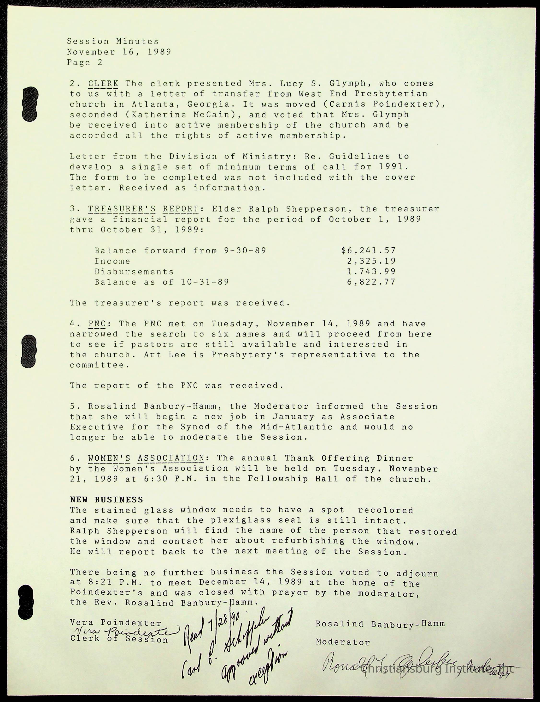 The session minutes for the Fifth Avenue Presbyterian Church from the years 1989-1994.Collection