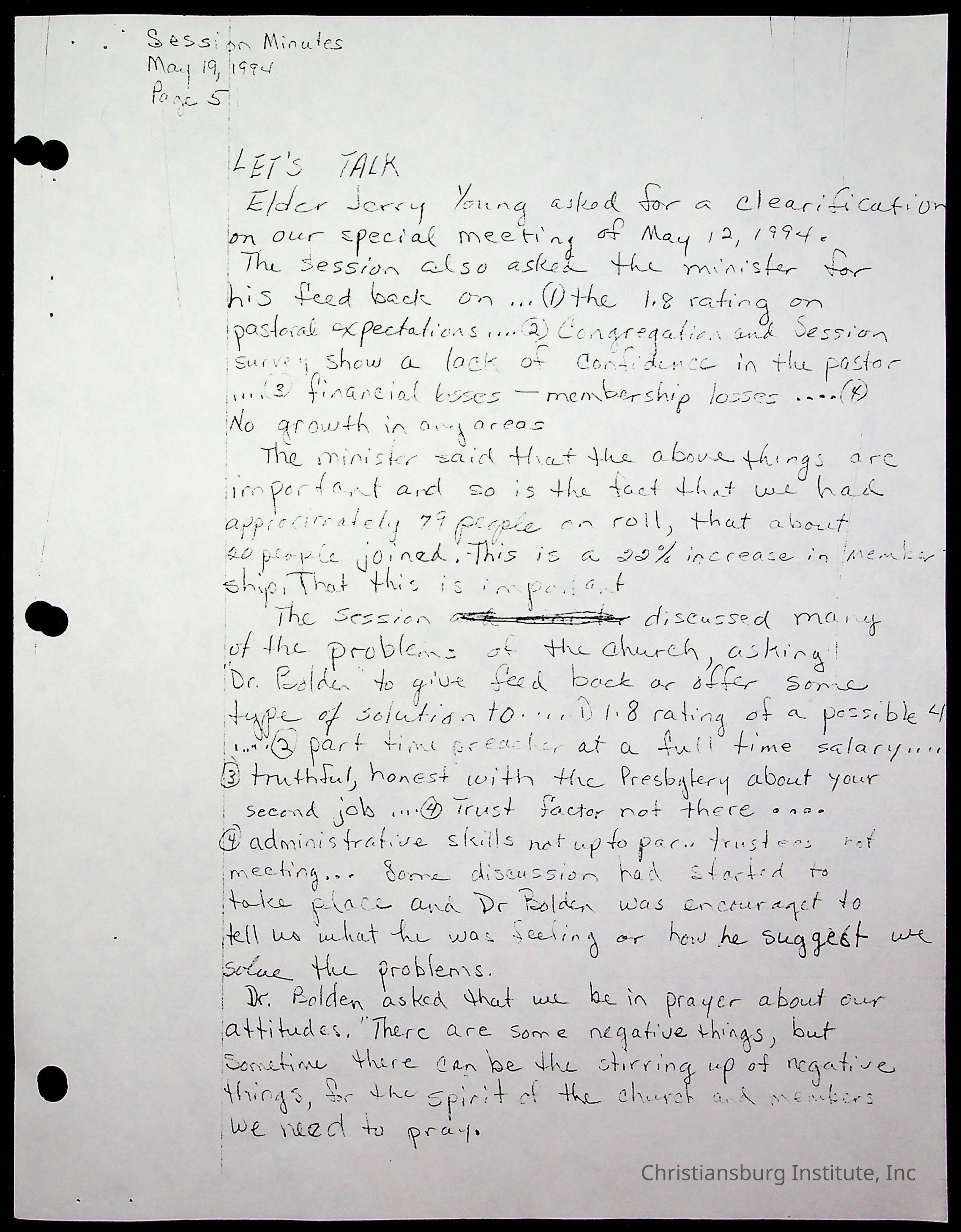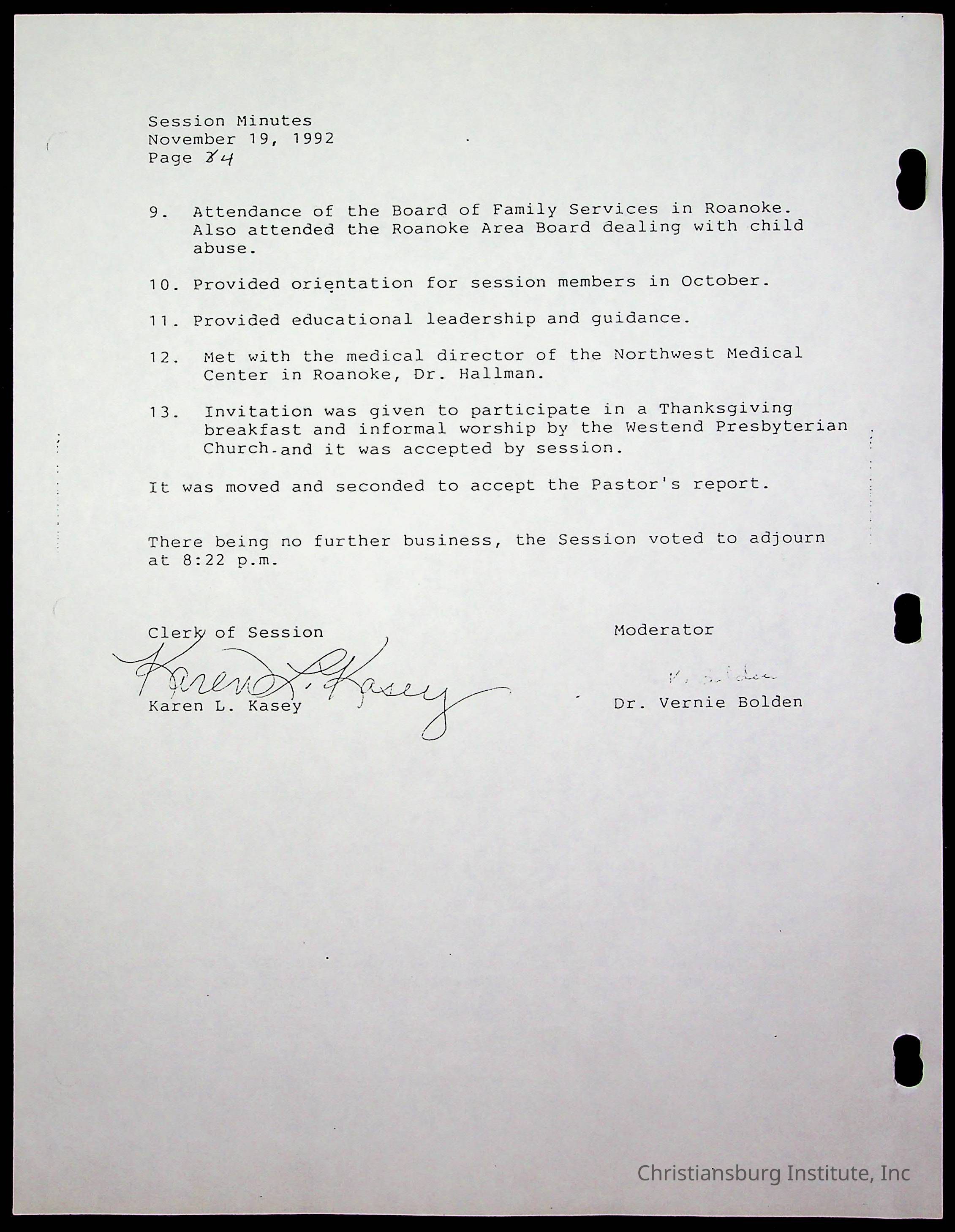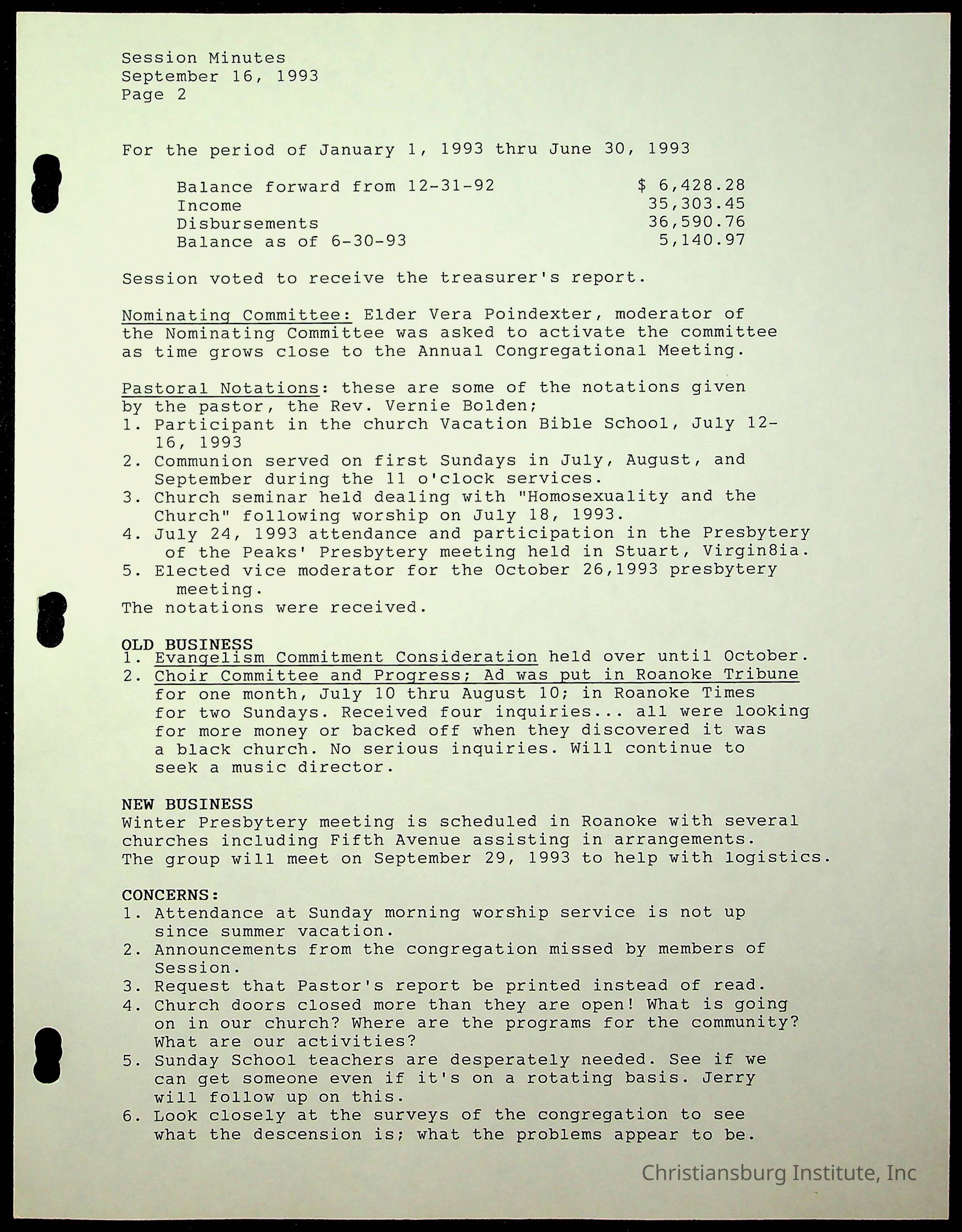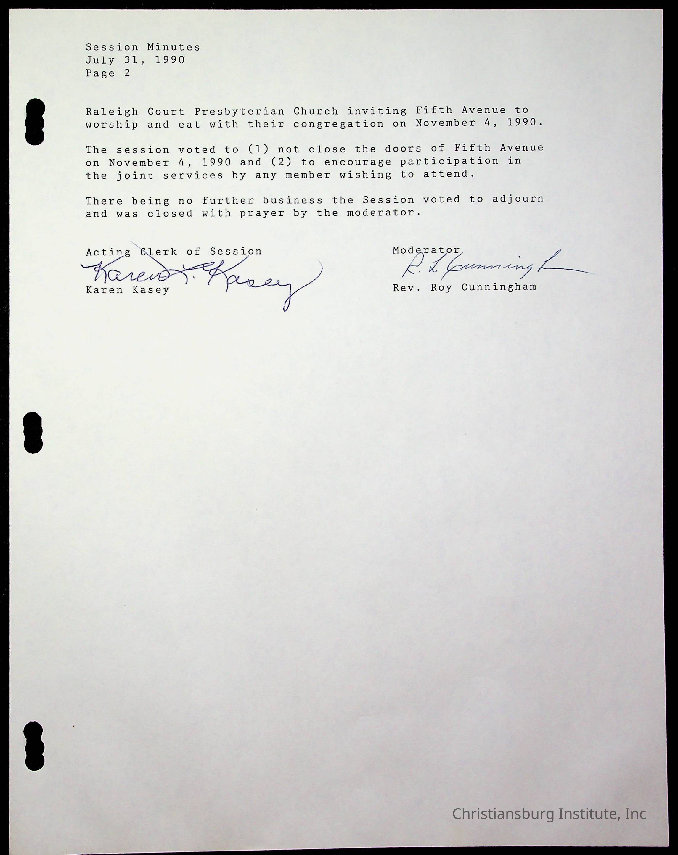 The session minutes for the Fifth Avenue Presbyterian Church from the years 1989-1994.Collection