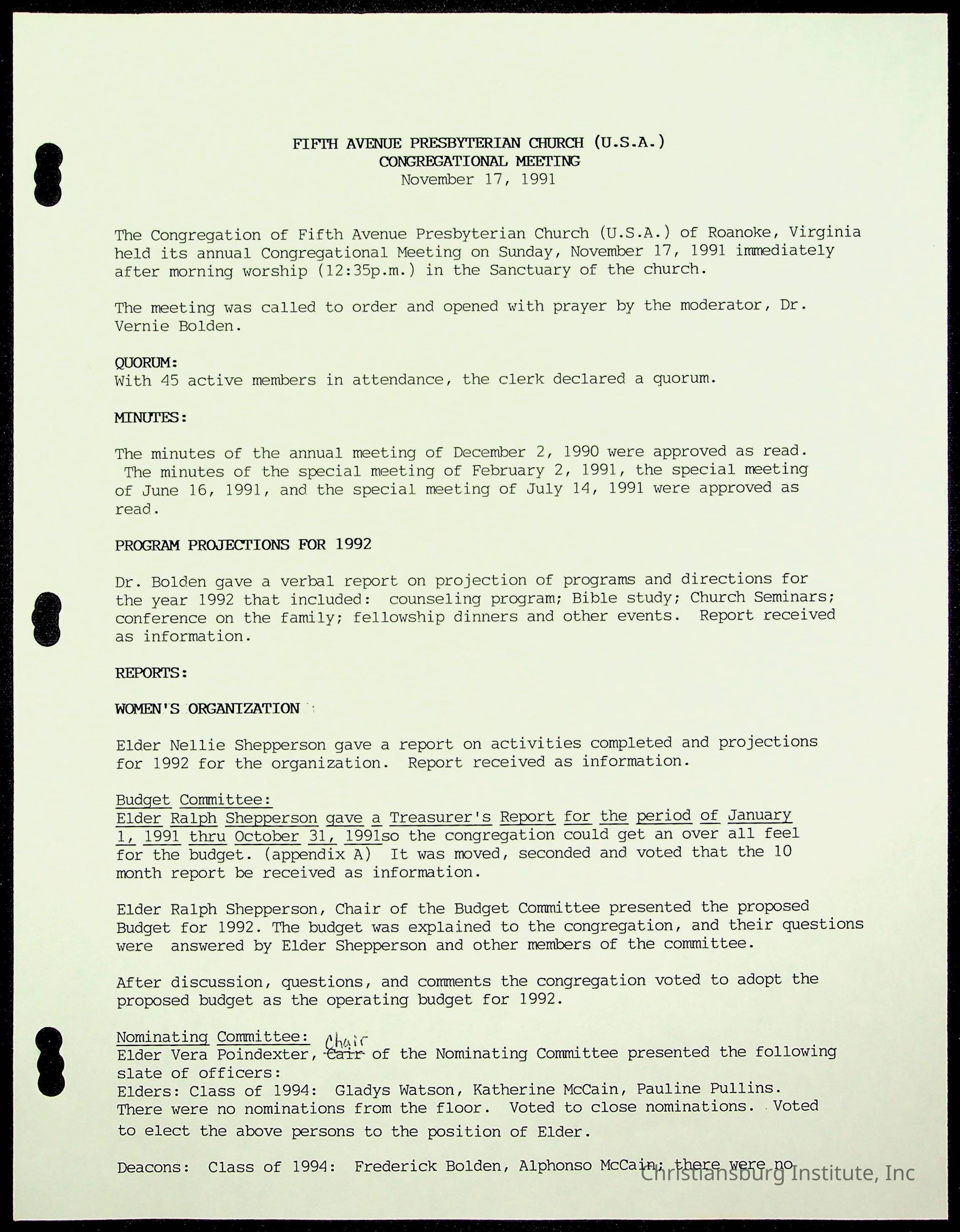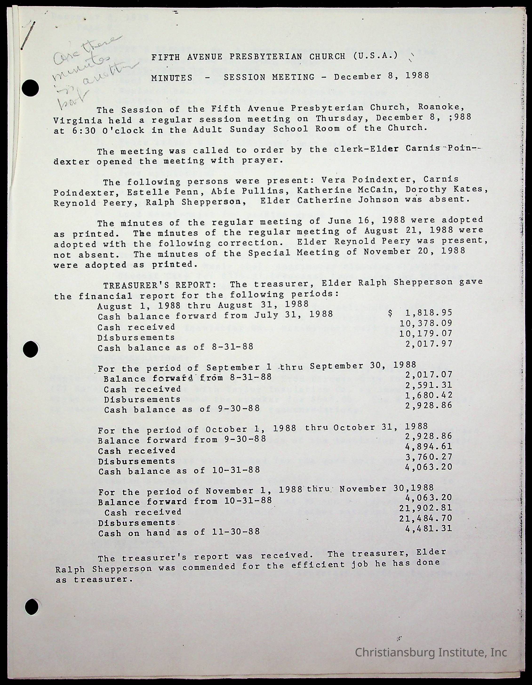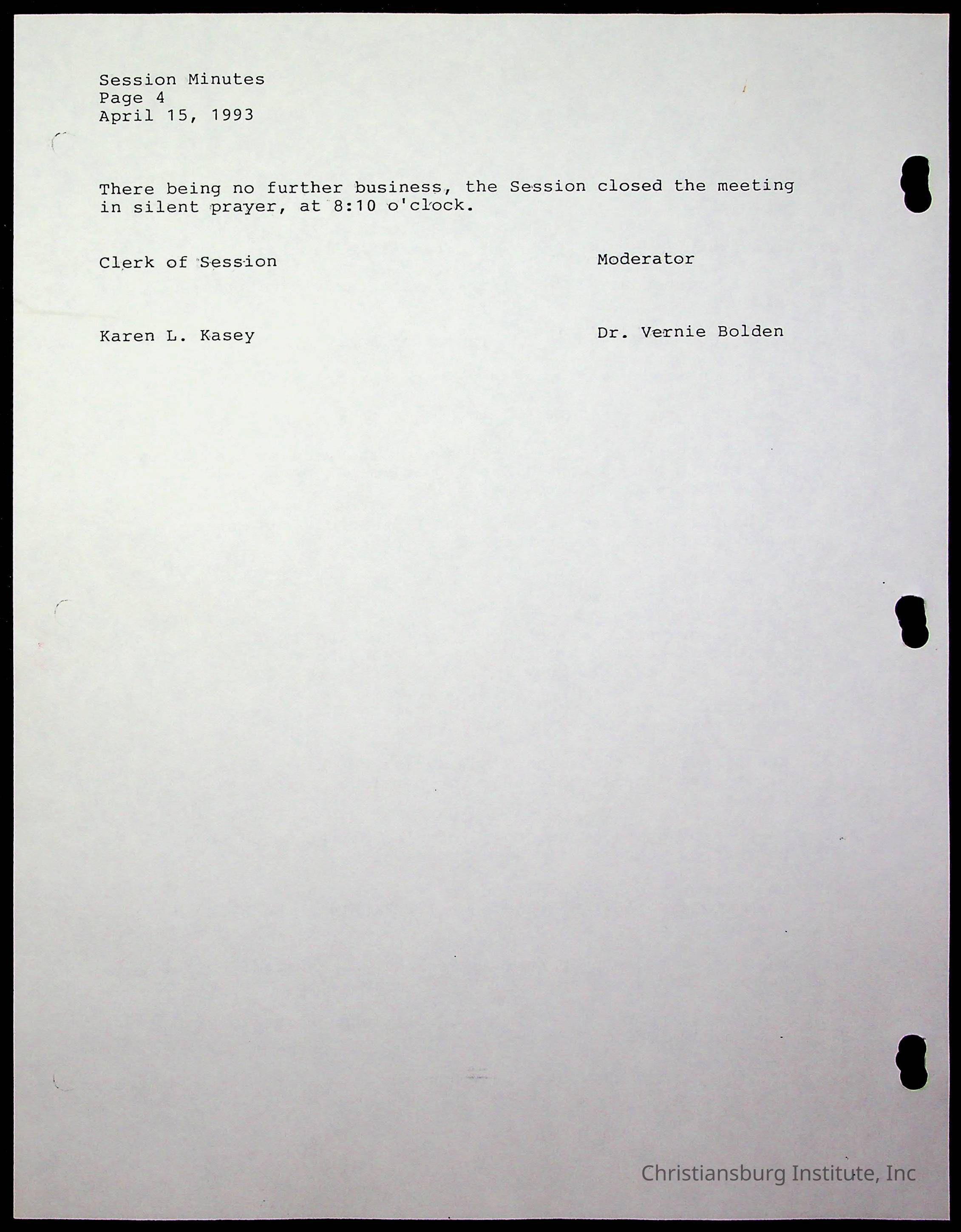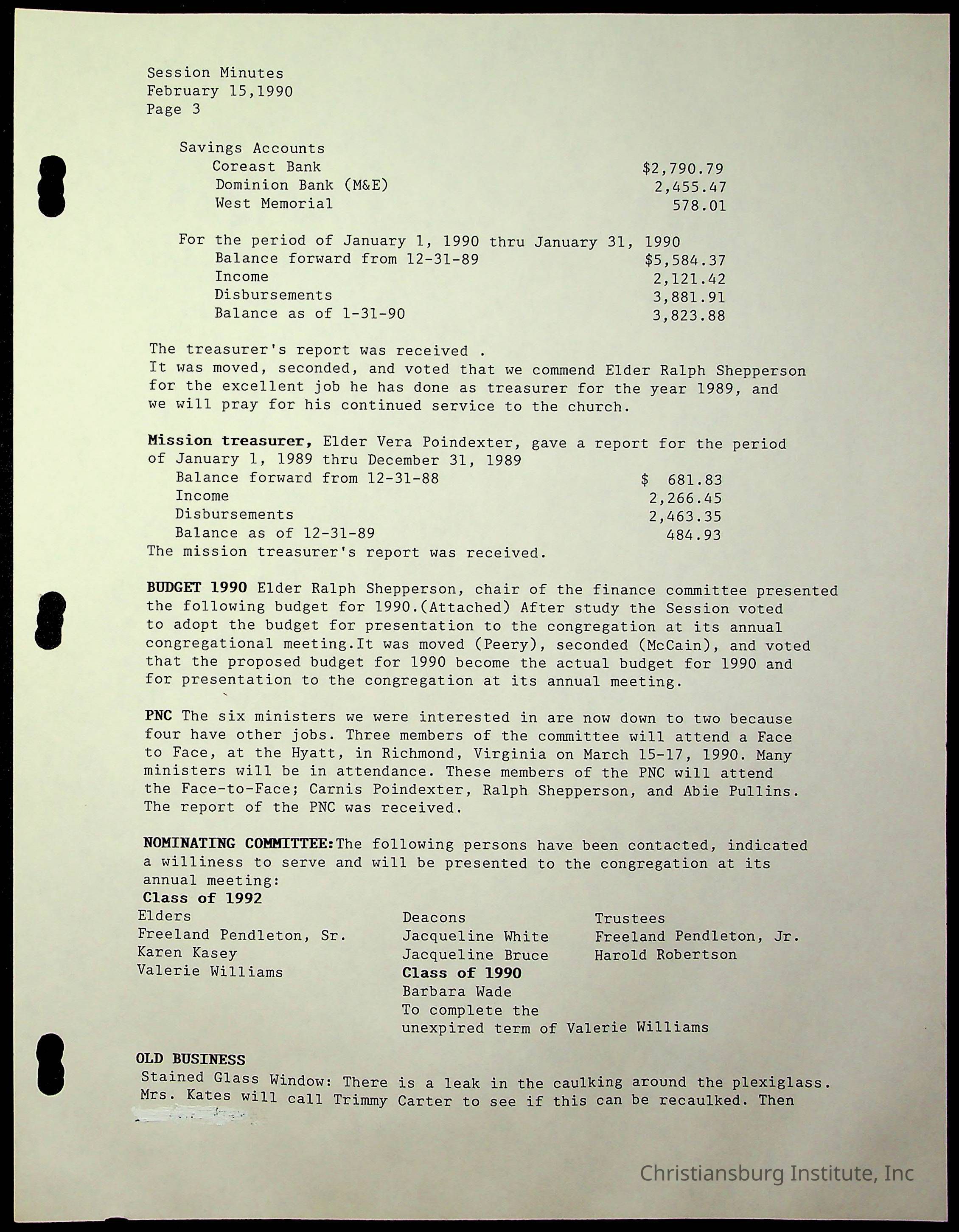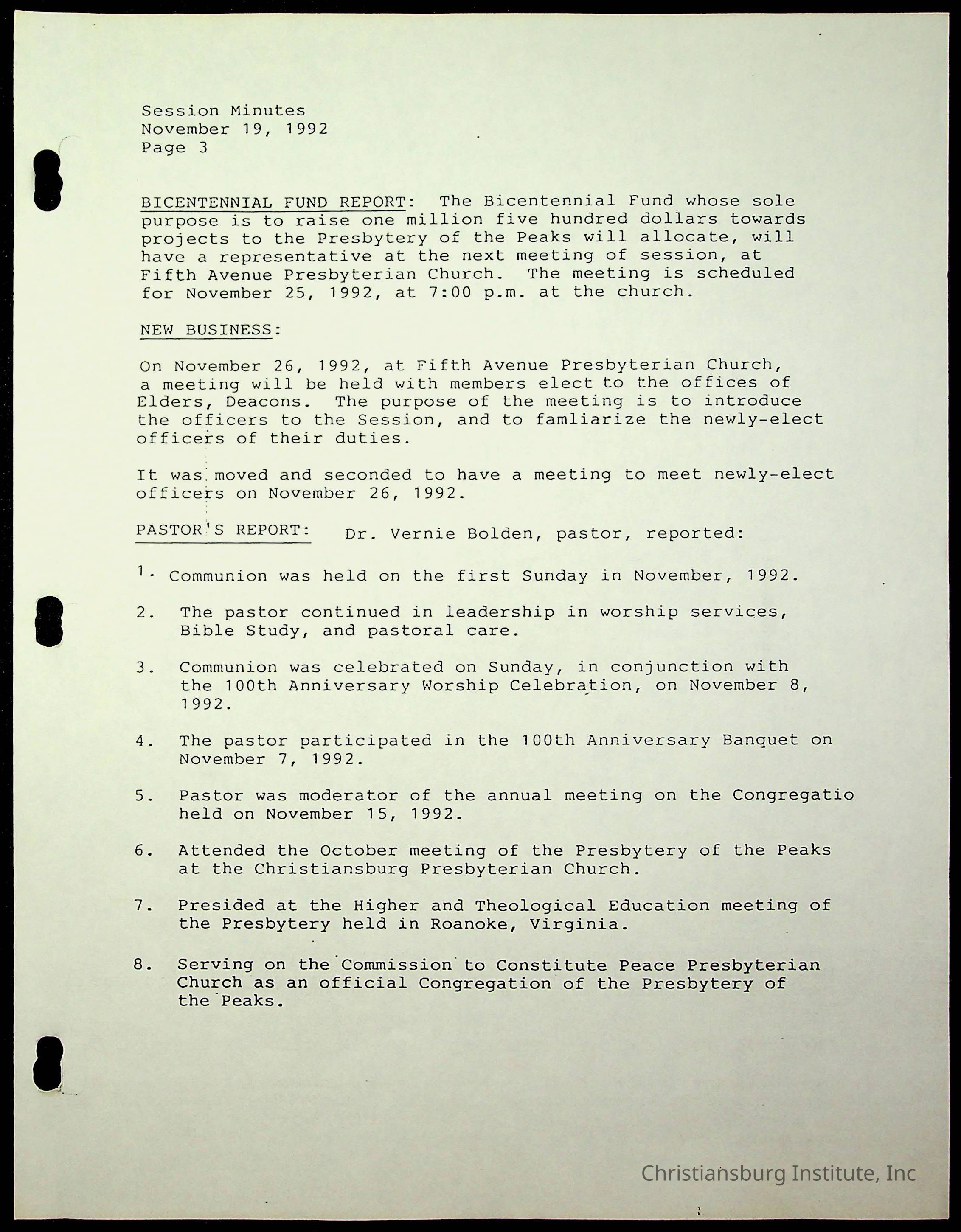 The session minutes for the Fifth Avenue Presbyterian Church from the years 1989-1994.Collection