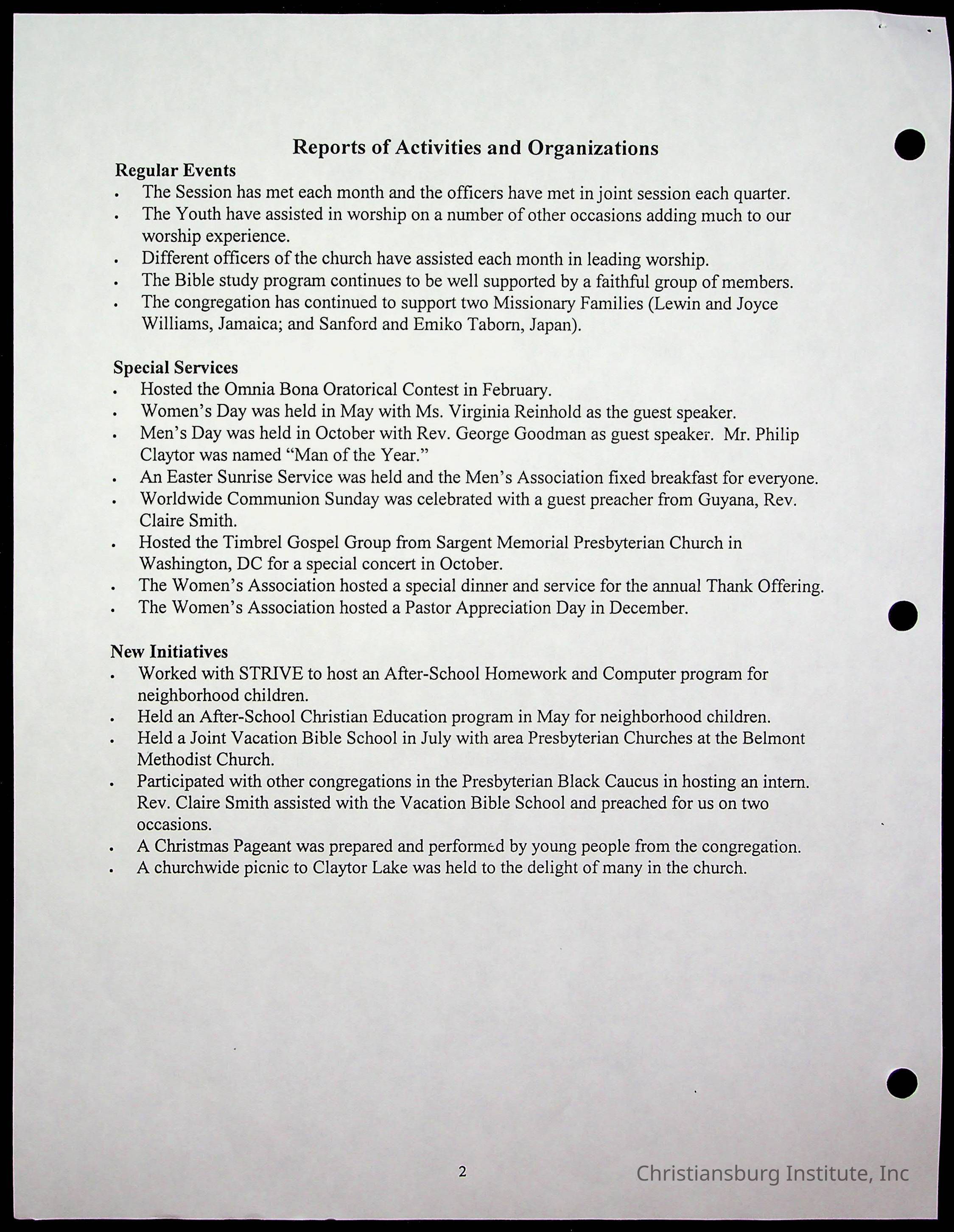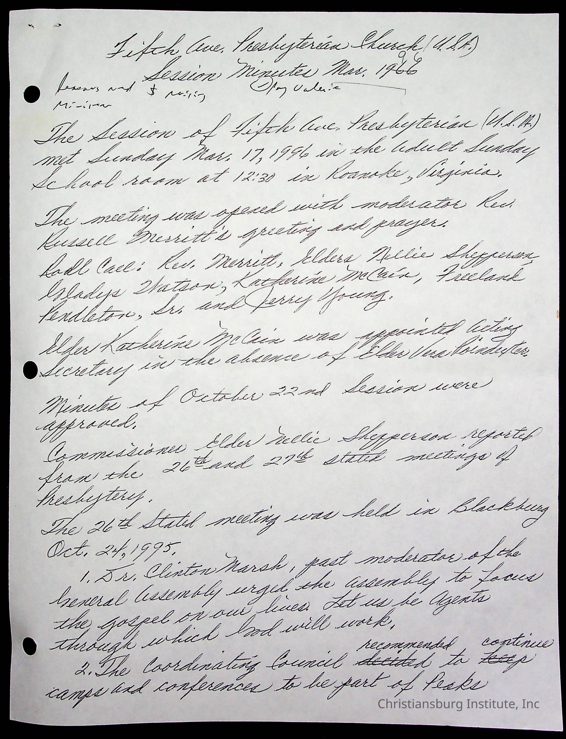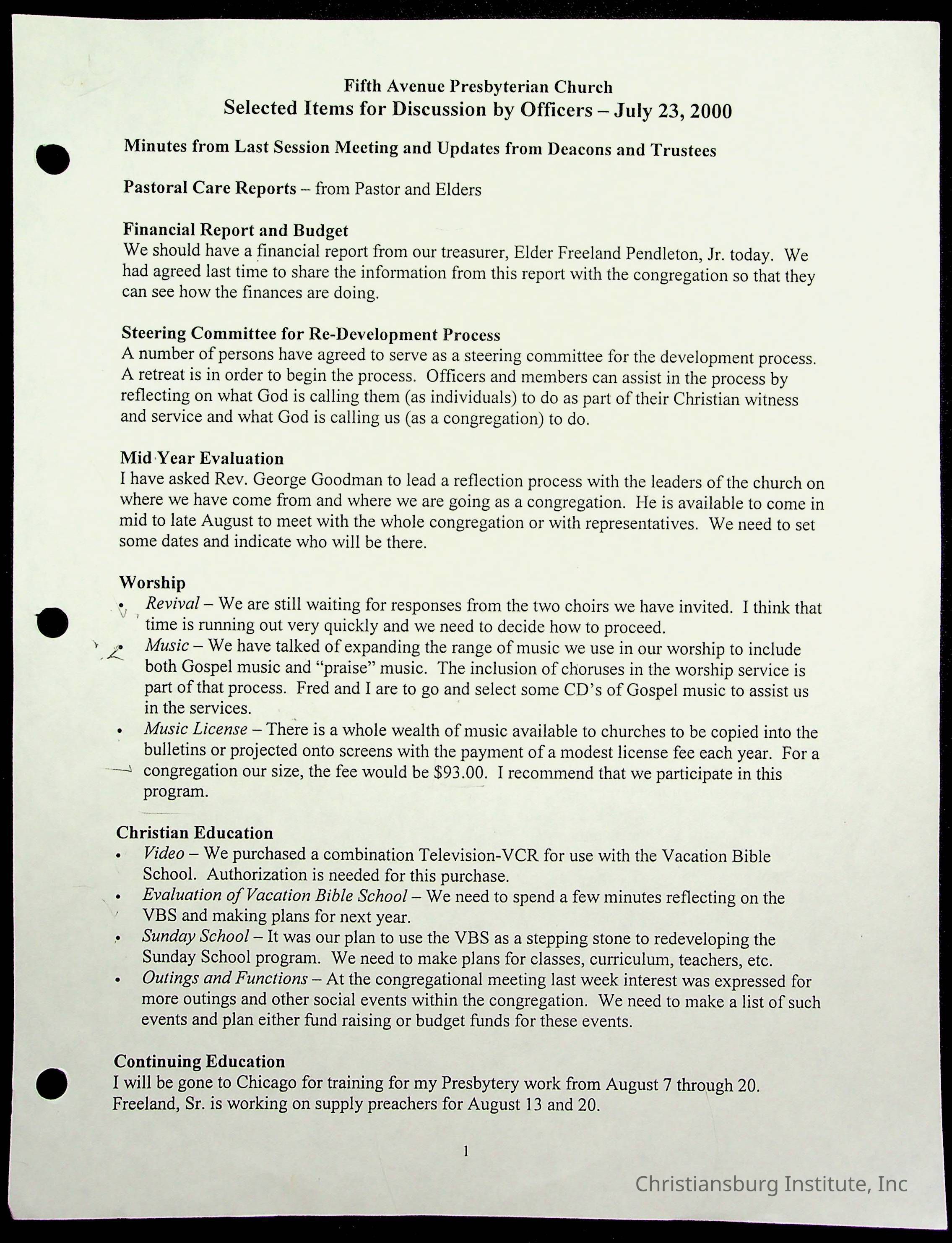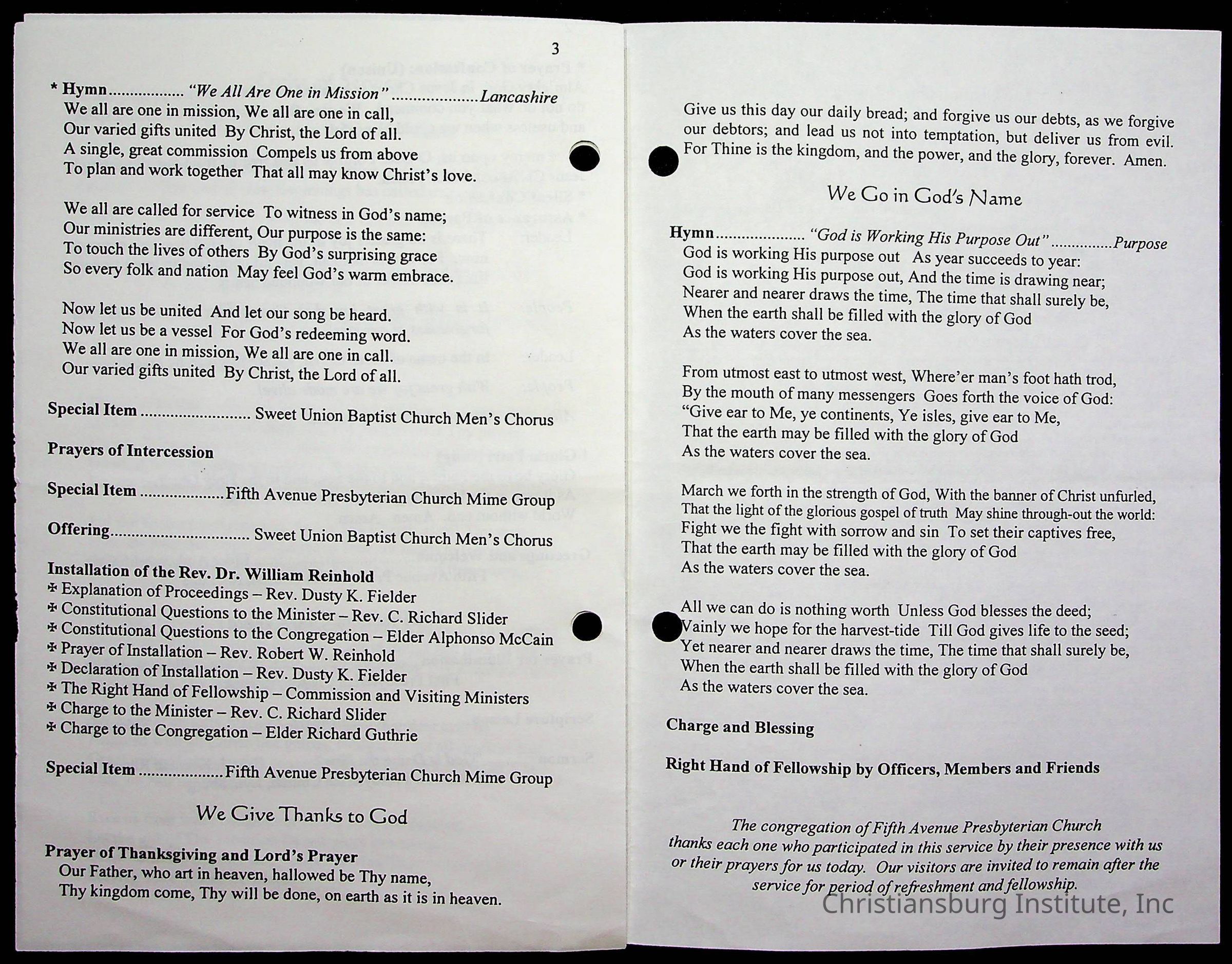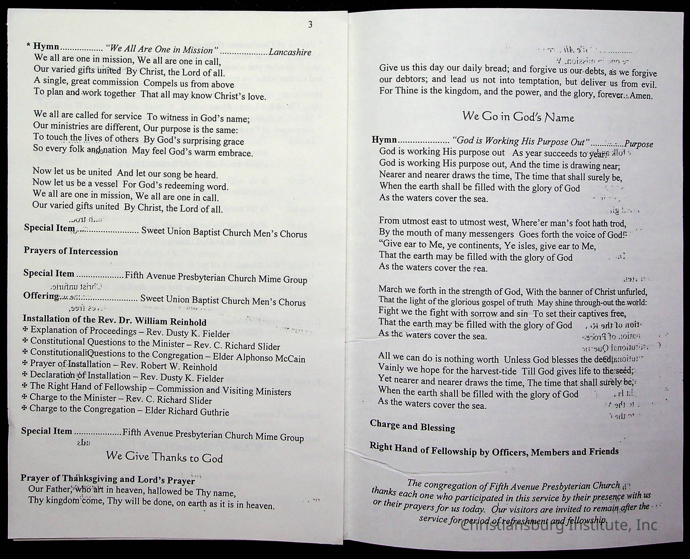 Copyright has been assigned to Christiansburg Institute Museum & Archives by Fifth Avenue Presbyterian Church. For permission to publish materials created by the donor, contact CIMA@christiansburginstitute.com. Materials not created by Fifth Avenue Presbyterian Church may still be under copyright.