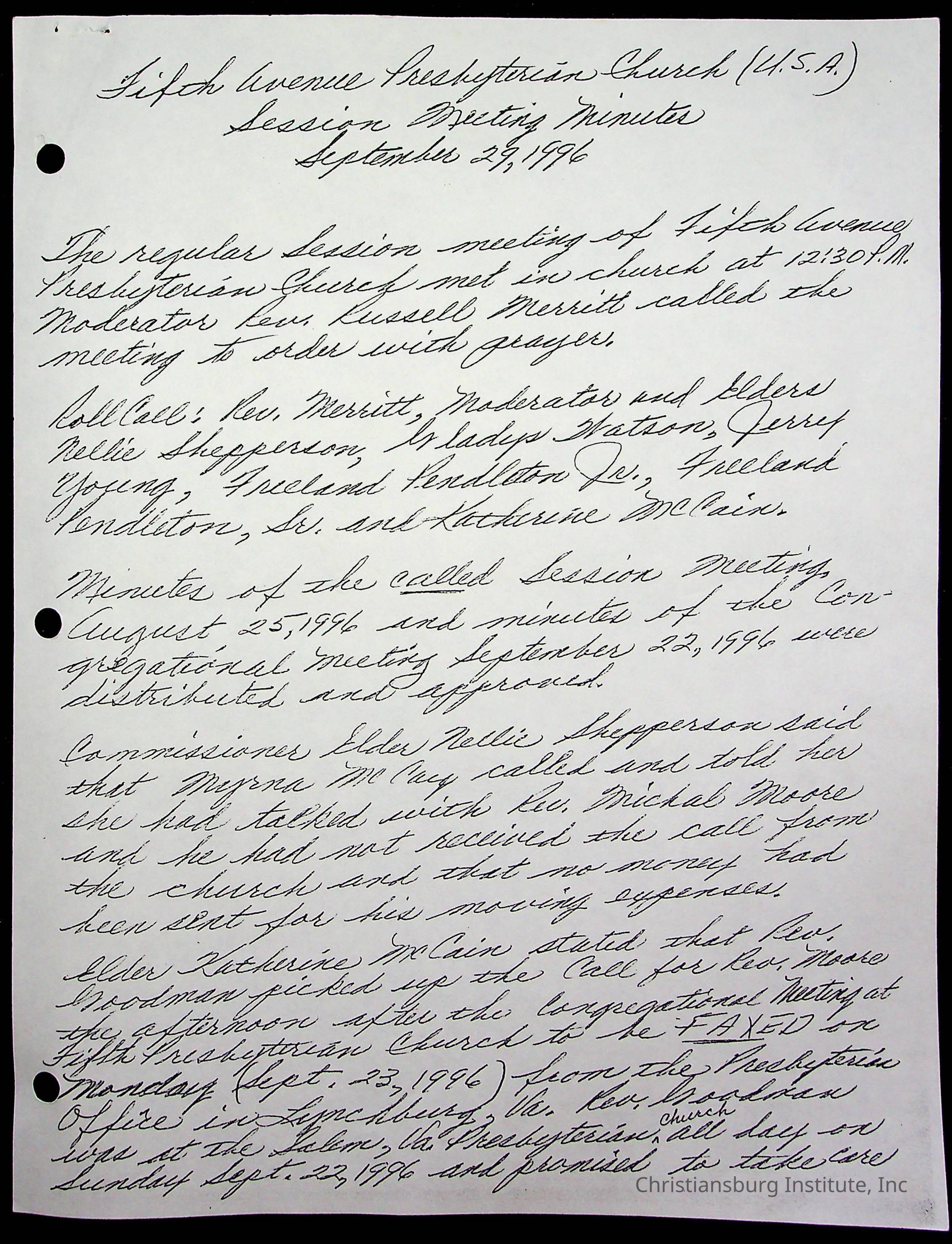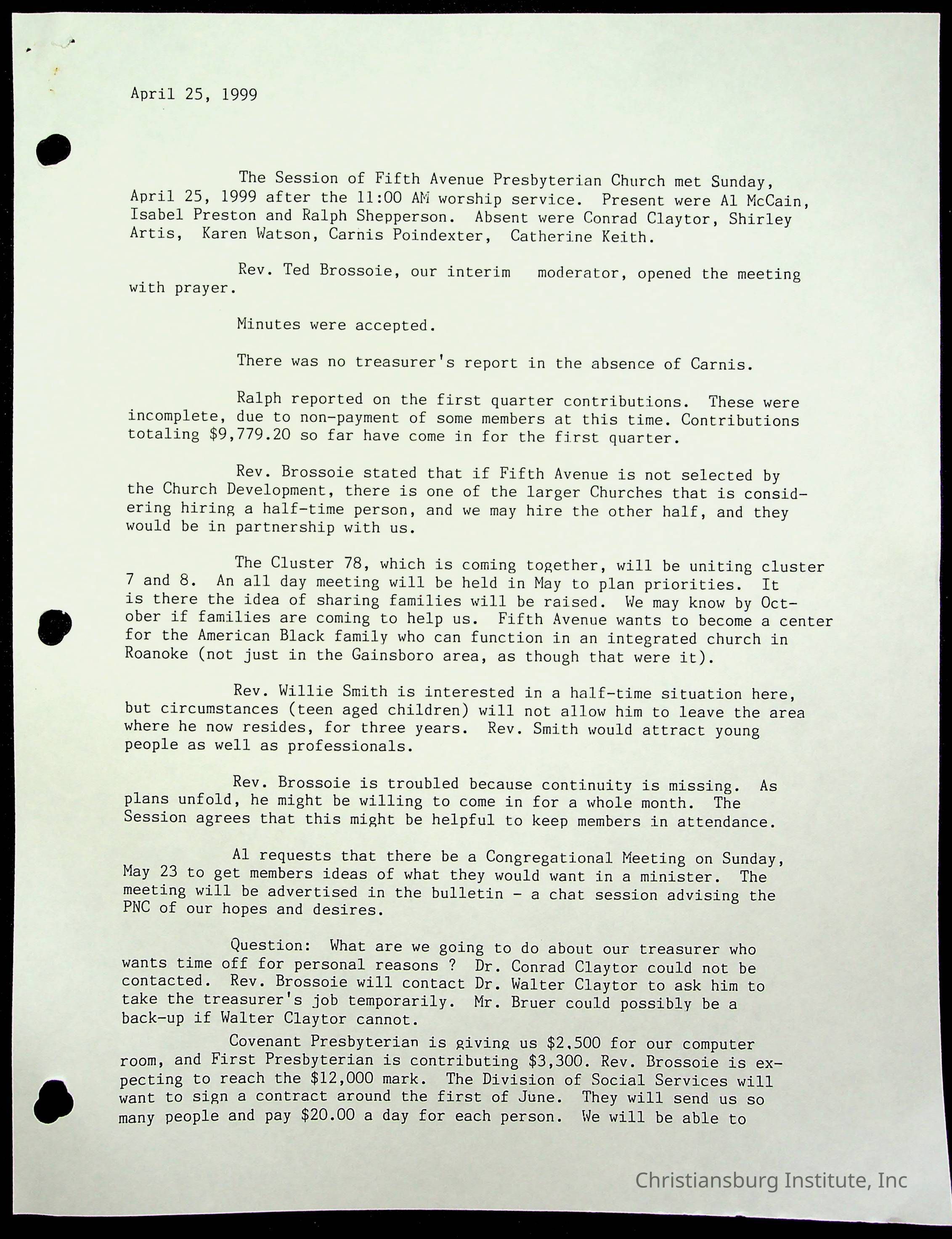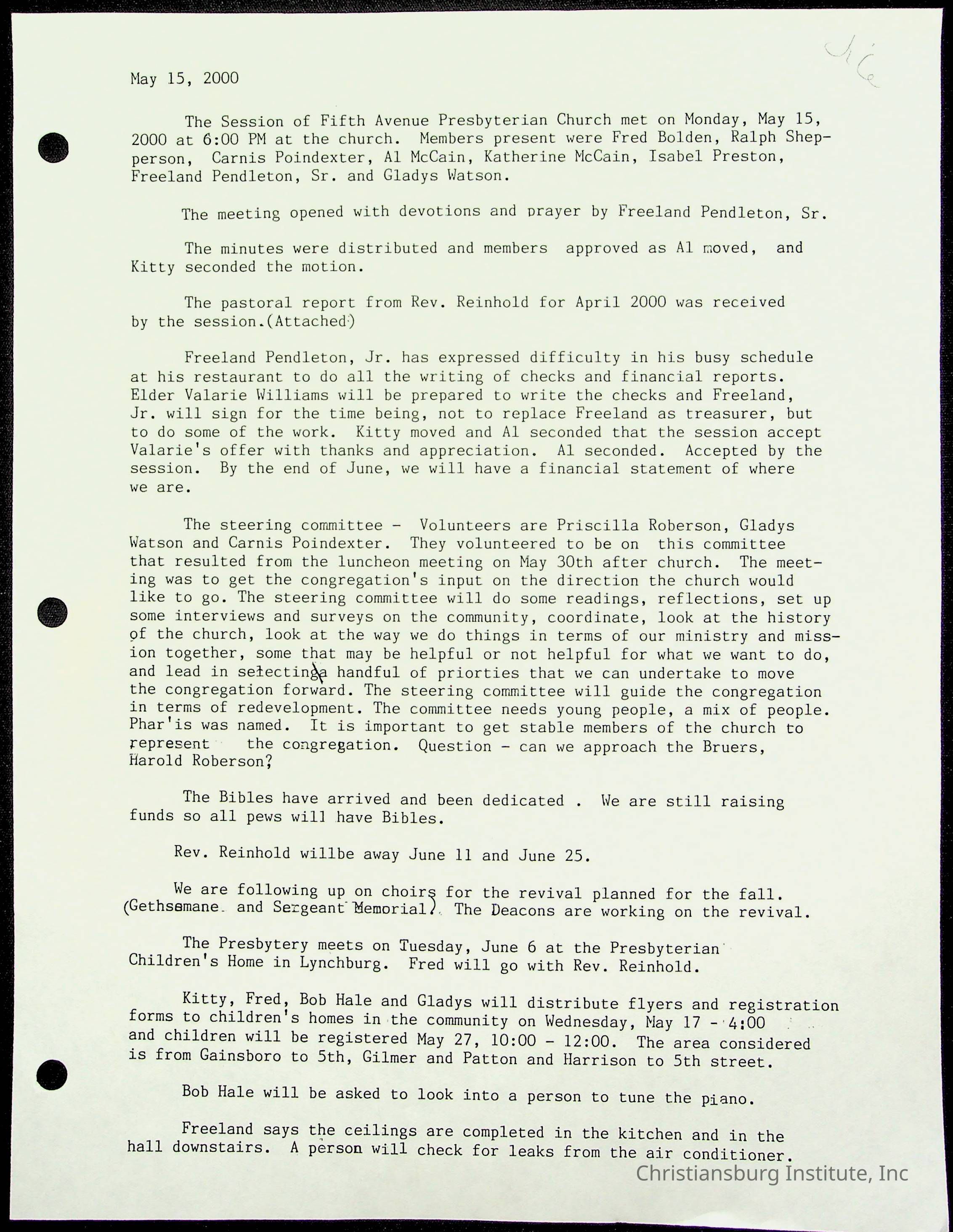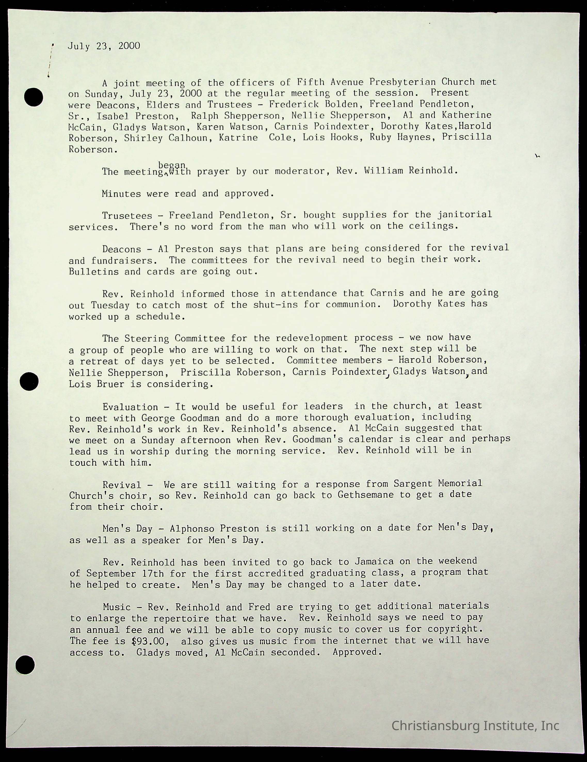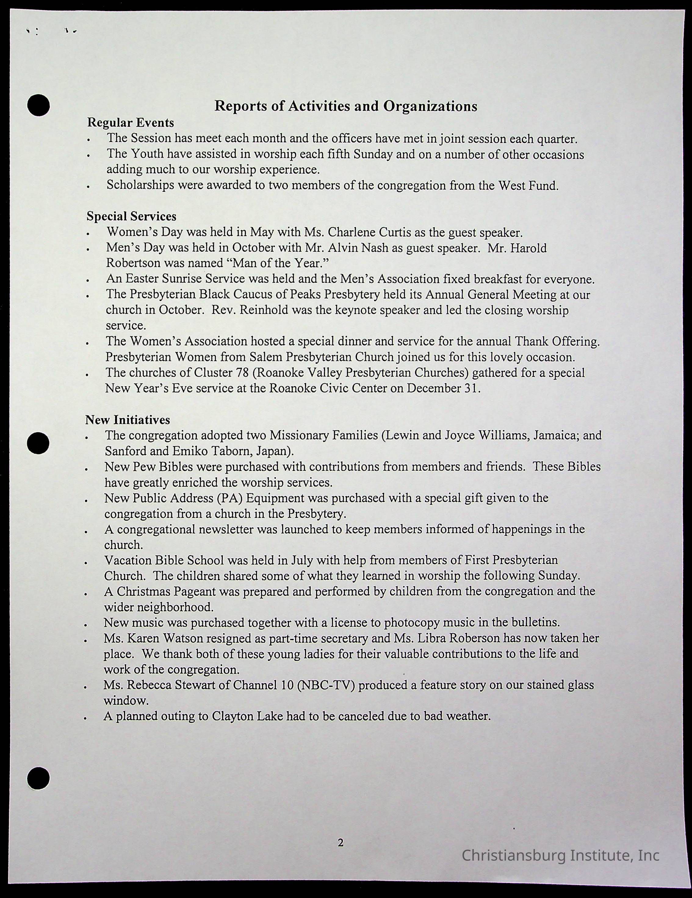 Copyright has been assigned to Christiansburg Institute Museum & Archives by Fifth Avenue Presbyterian Church. For permission to publish materials created by the donor, contact CIMA@christiansburginstitute.com. Materials not created by Fifth Avenue Presbyterian Church may still be under copyright.