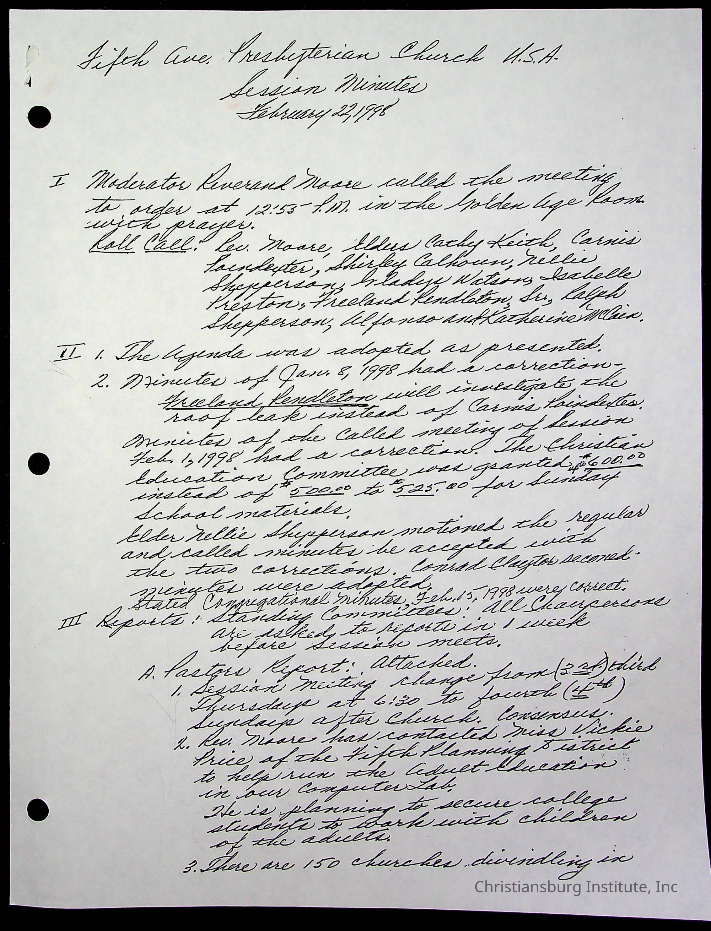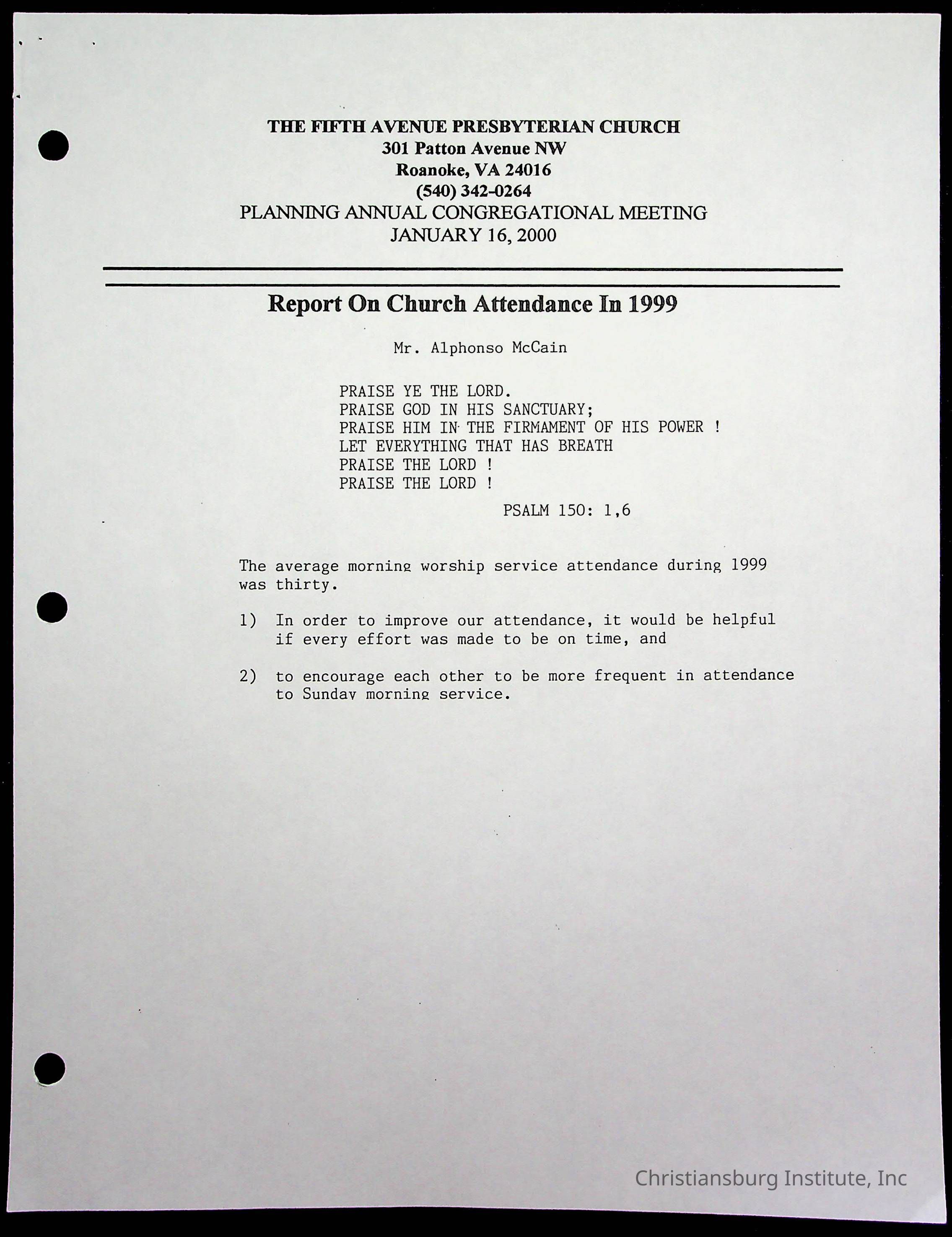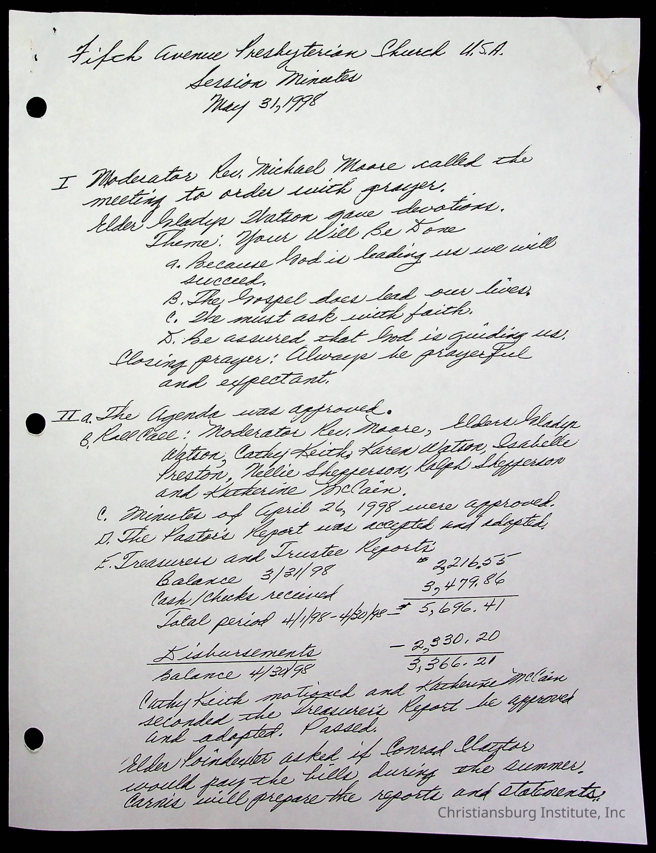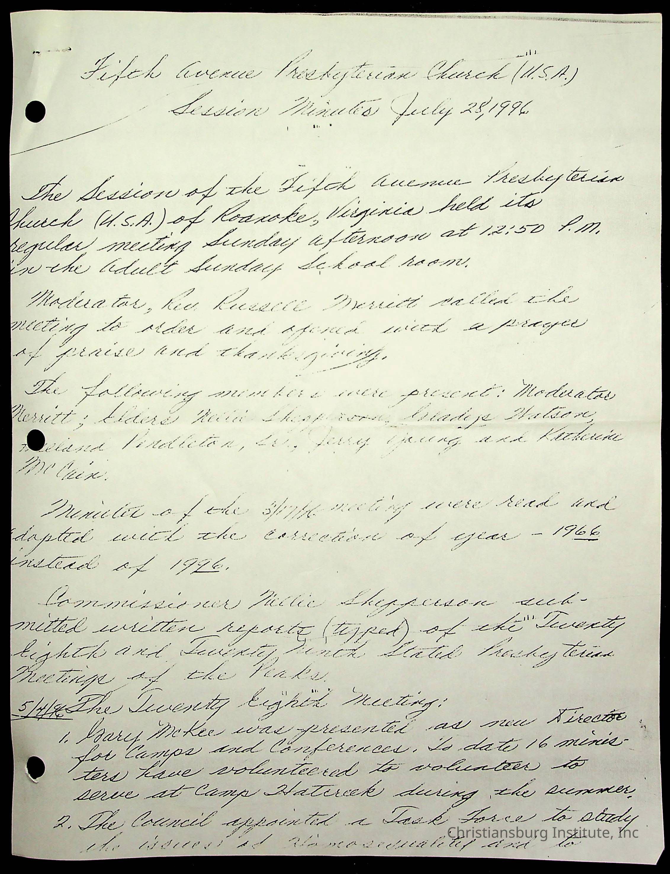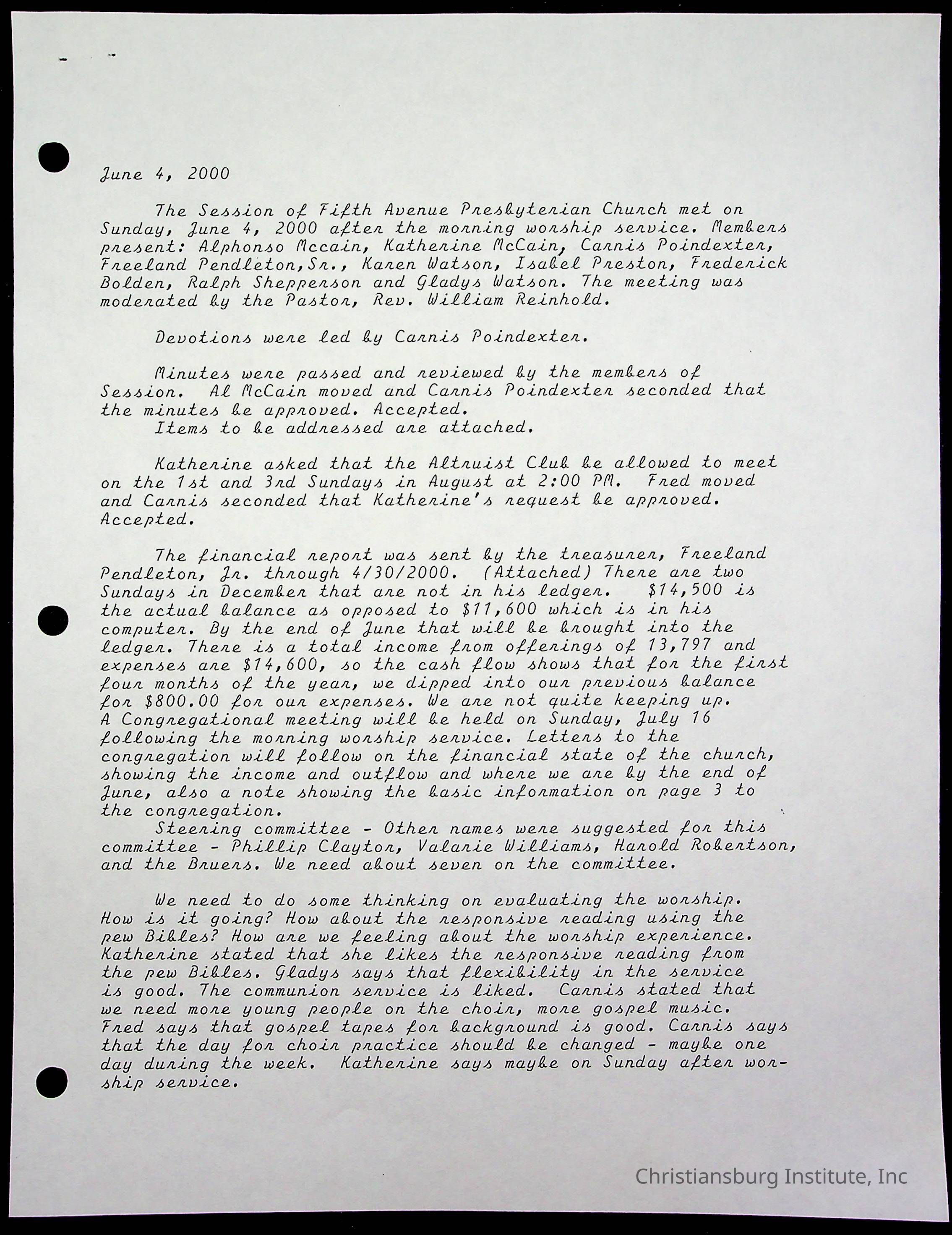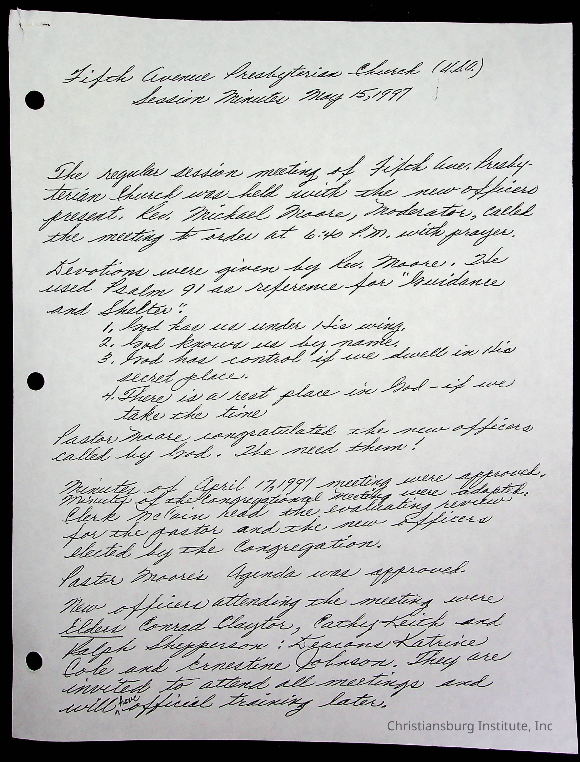 Copyright has been assigned to Christiansburg Institute Museum & Archives by Fifth Avenue Presbyterian Church. For permission to publish materials created by the donor, contact CIMA@christiansburginstitute.com. Materials not created by Fifth Avenue Presbyterian Church may still be under copyright.