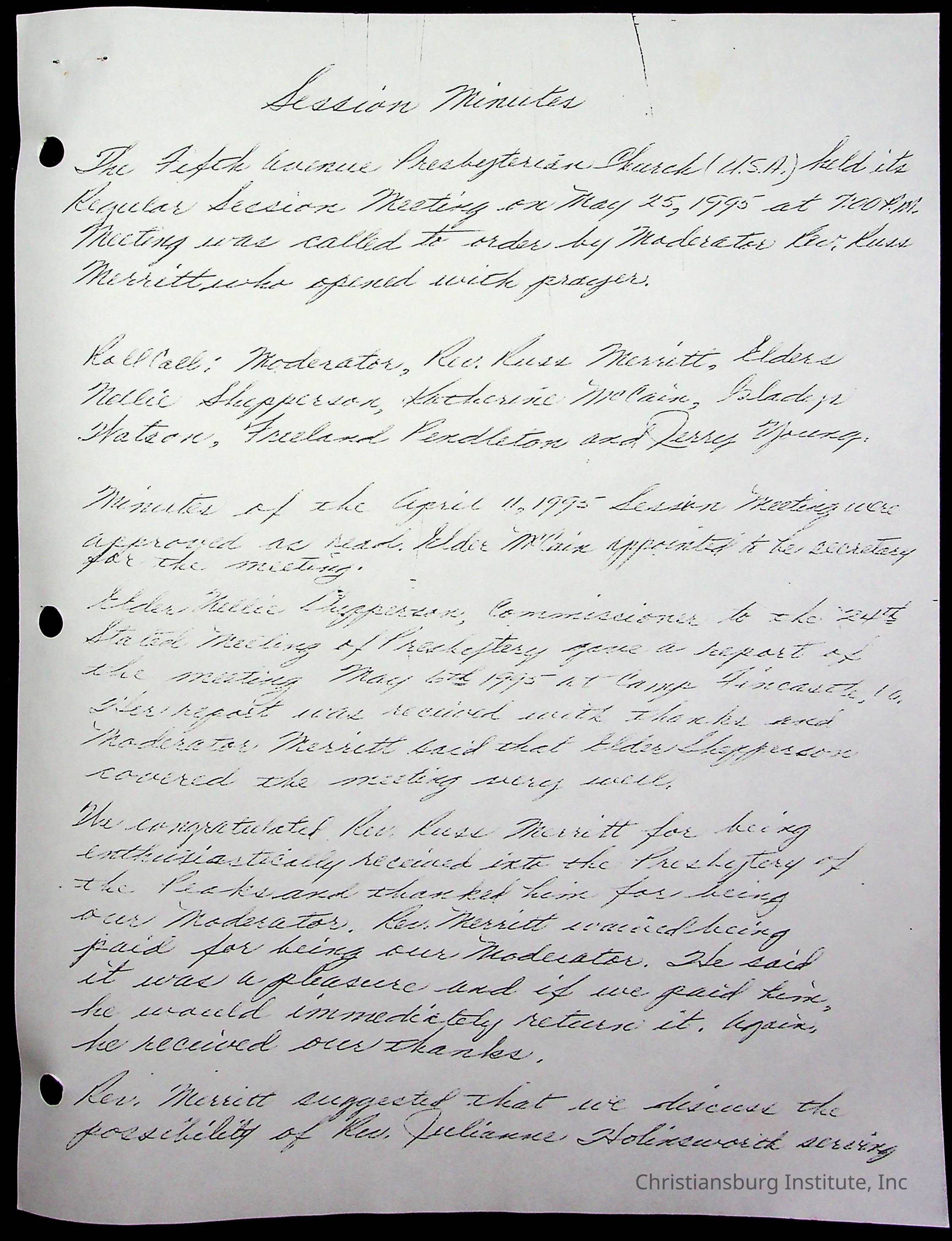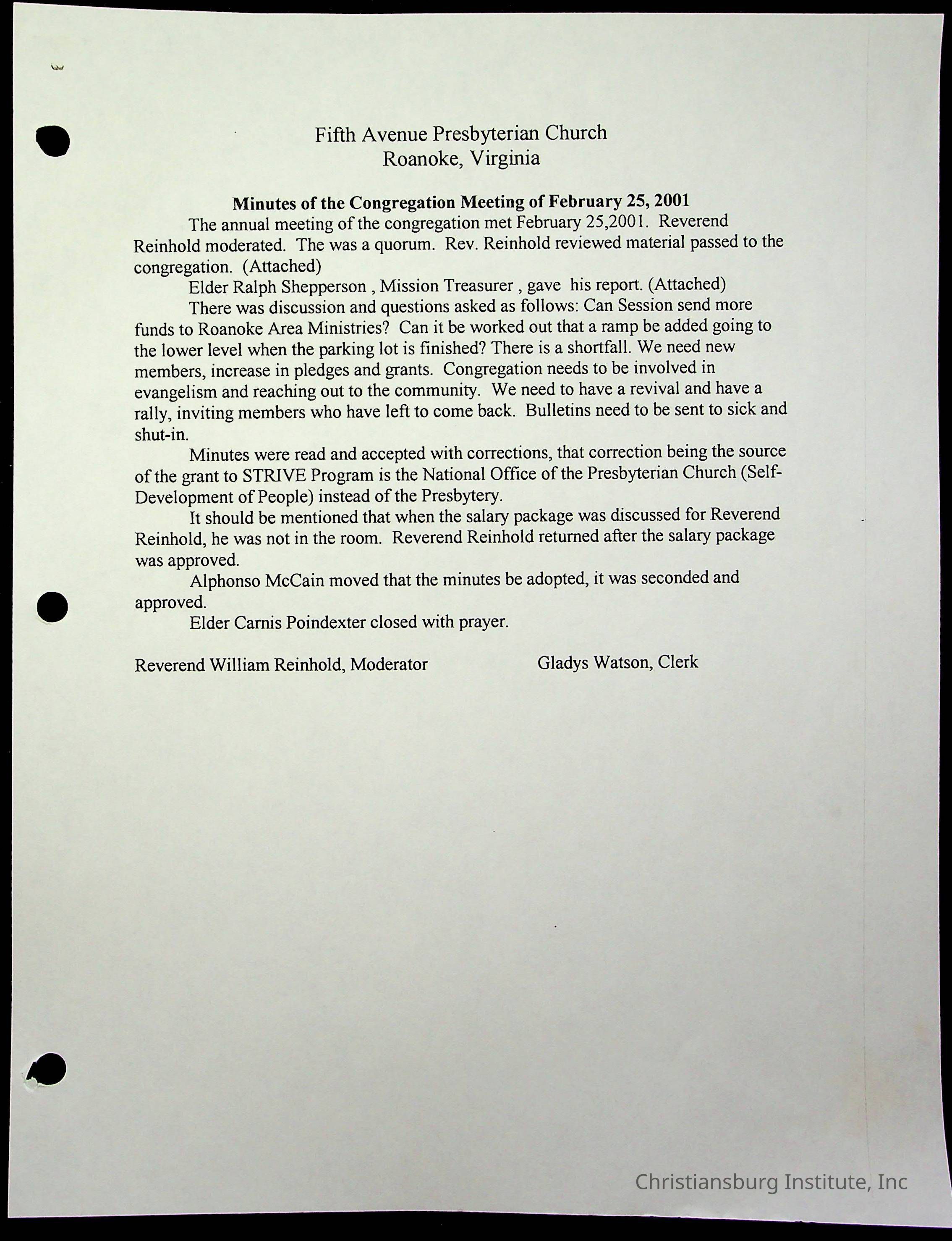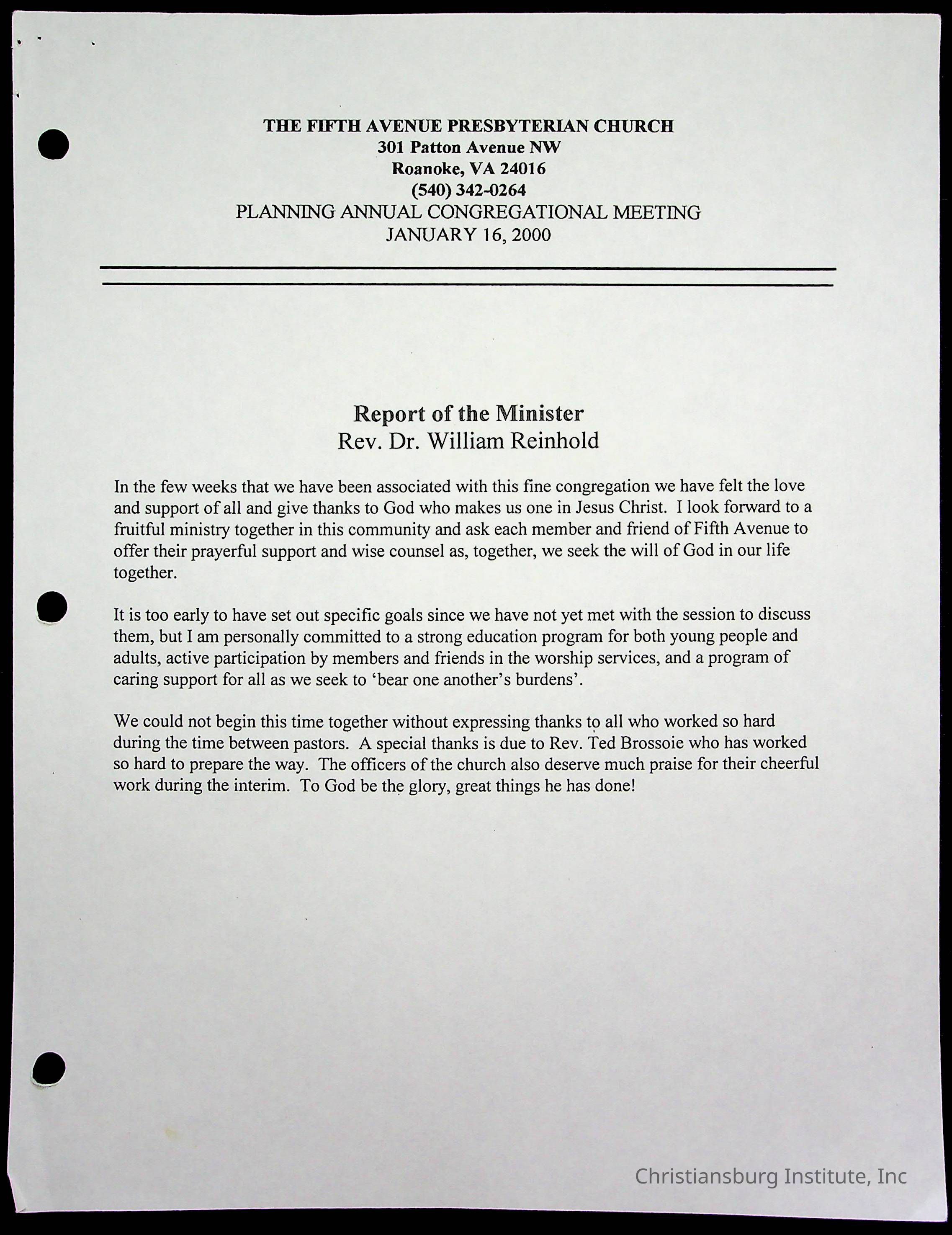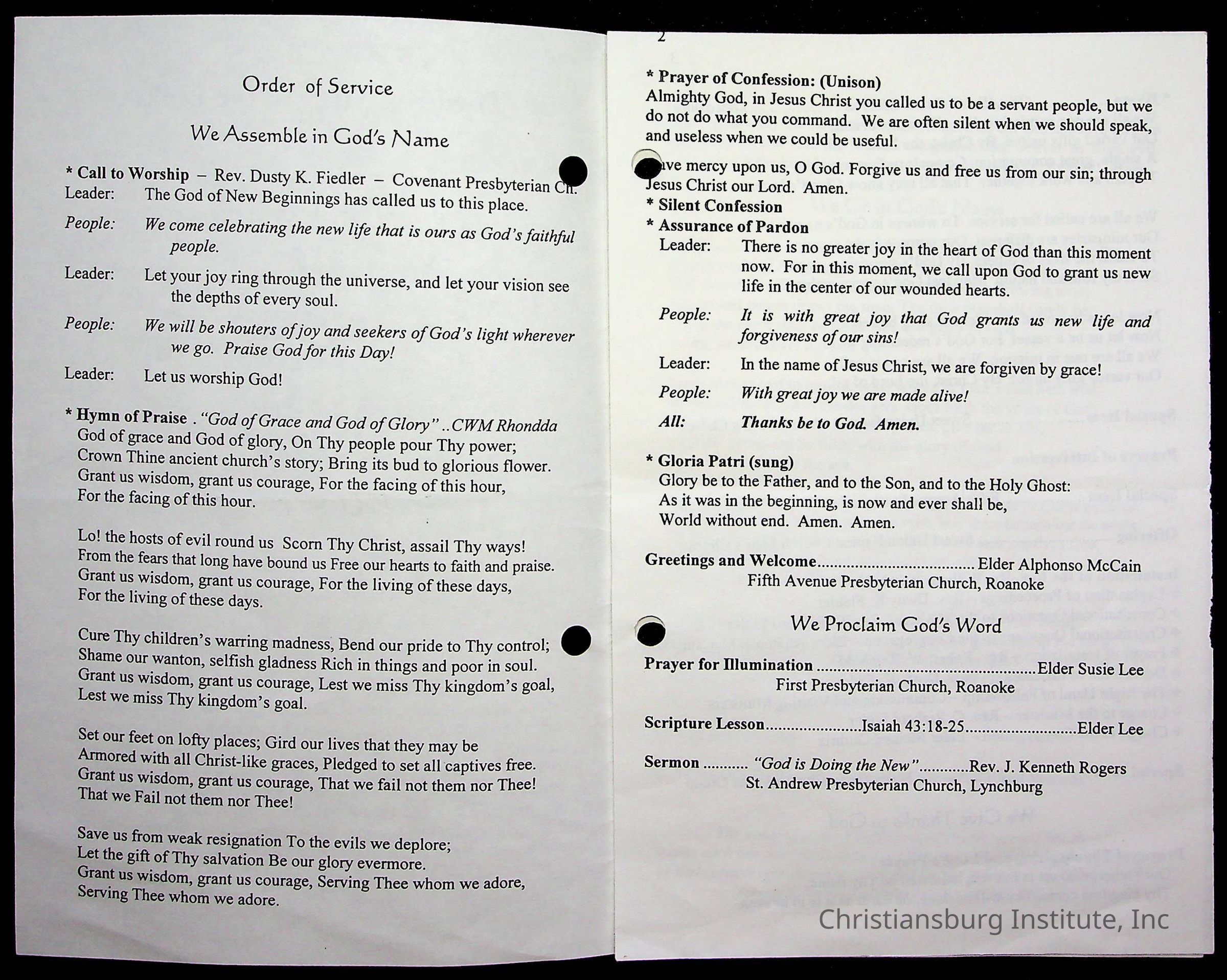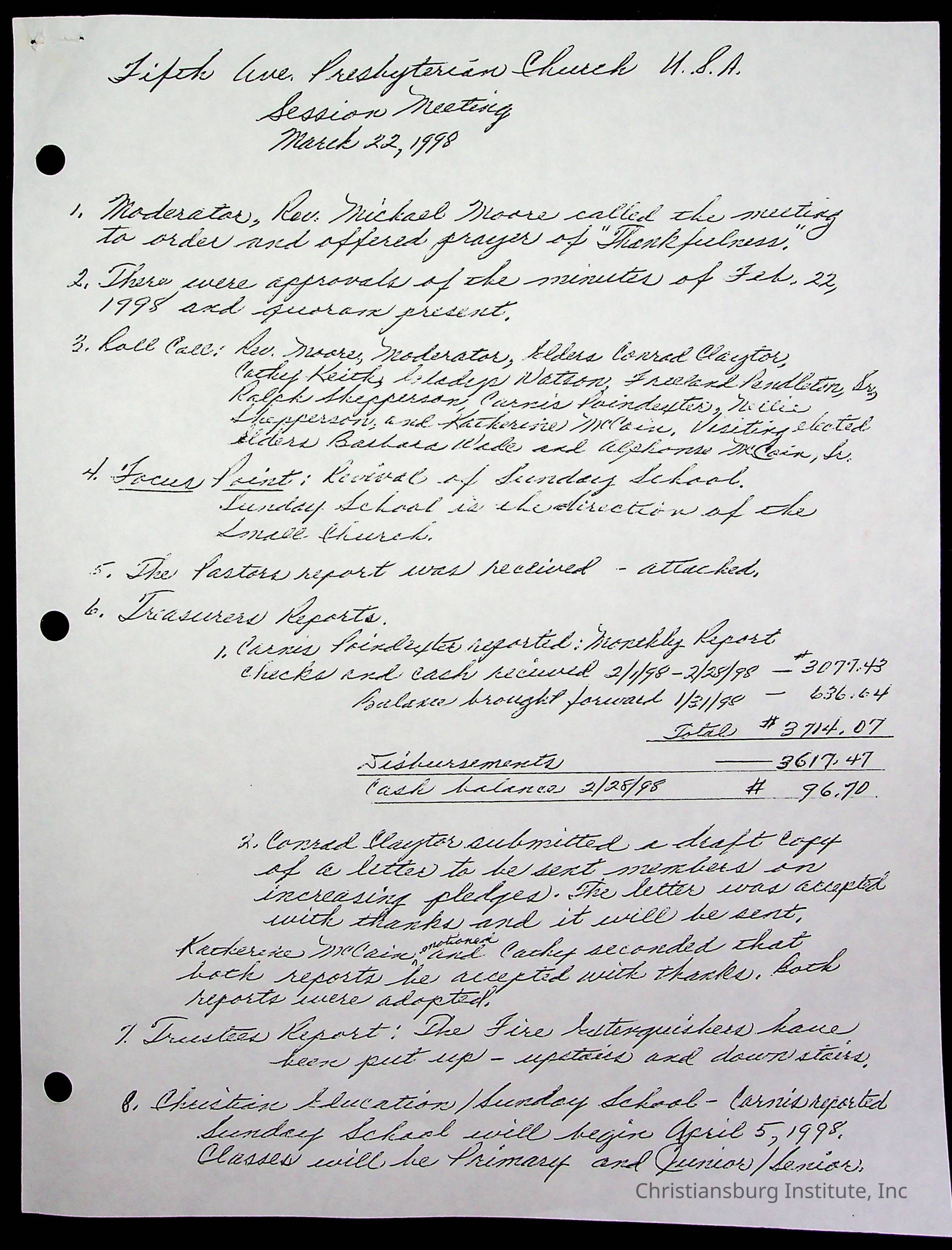 Copyright has been assigned to Christiansburg Institute Museum & Archives by Fifth Avenue Presbyterian Church. For permission to publish materials created by the donor, contact CIMA@christiansburginstitute.com. Materials not created by Fifth Avenue Presbyterian Church may still be under copyright.