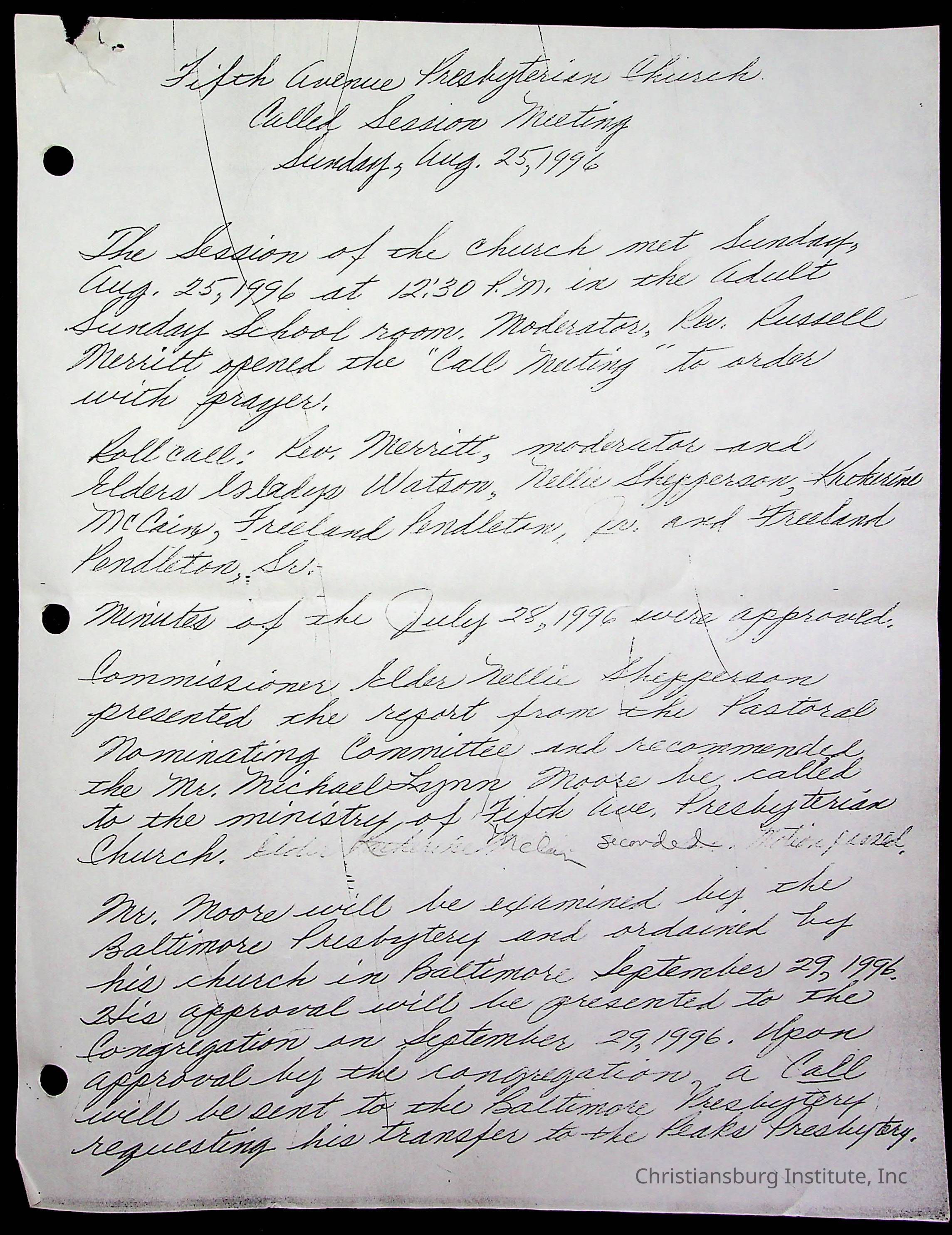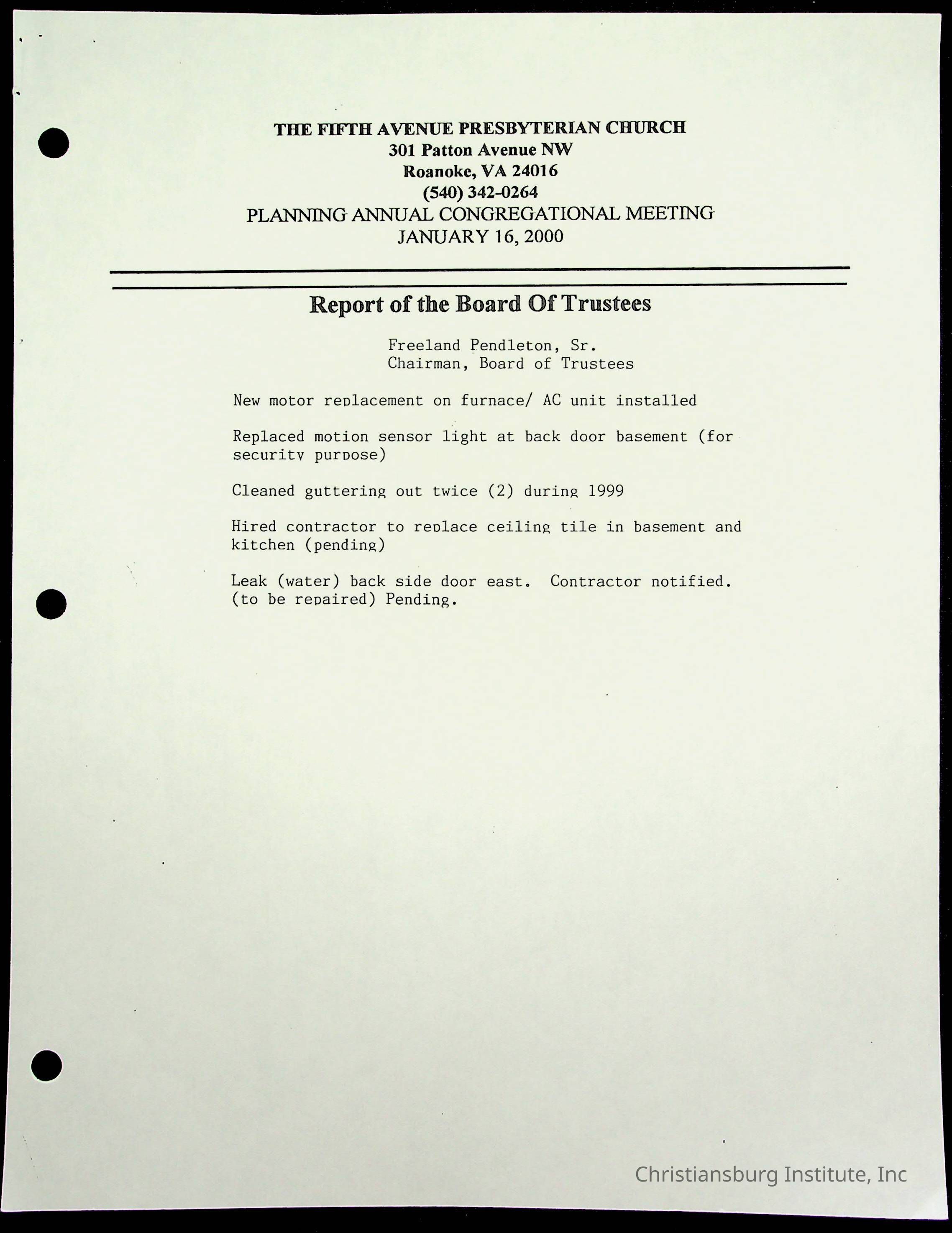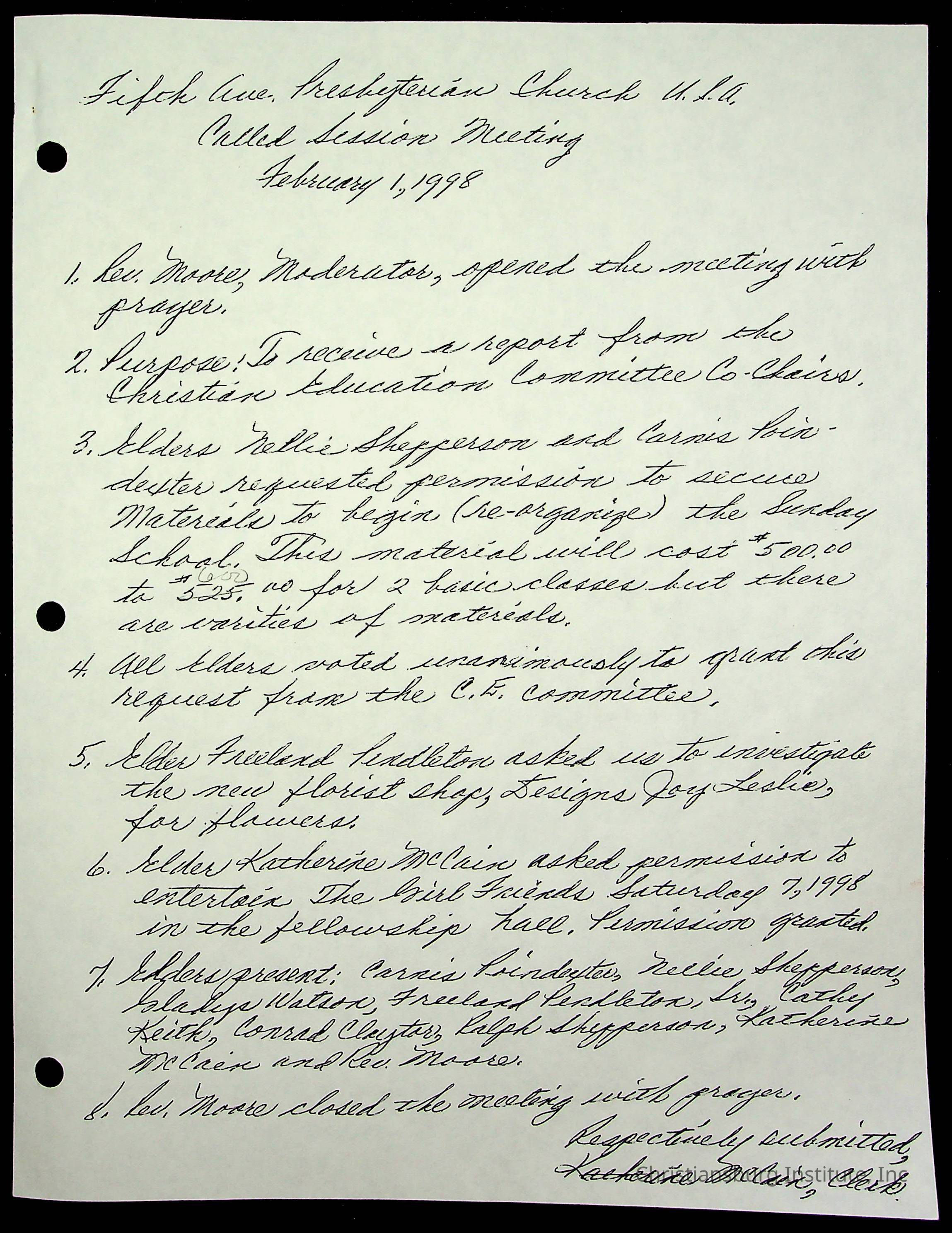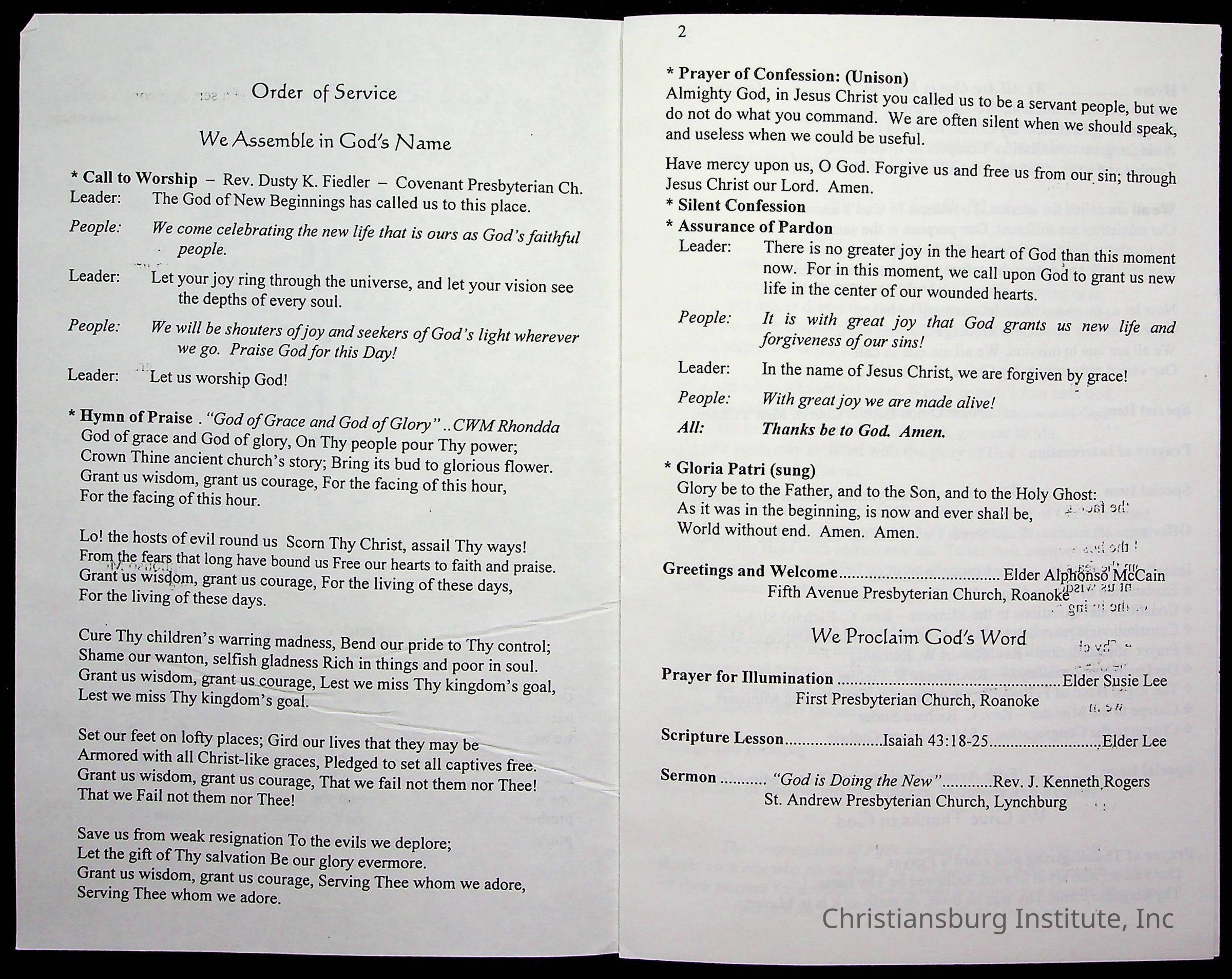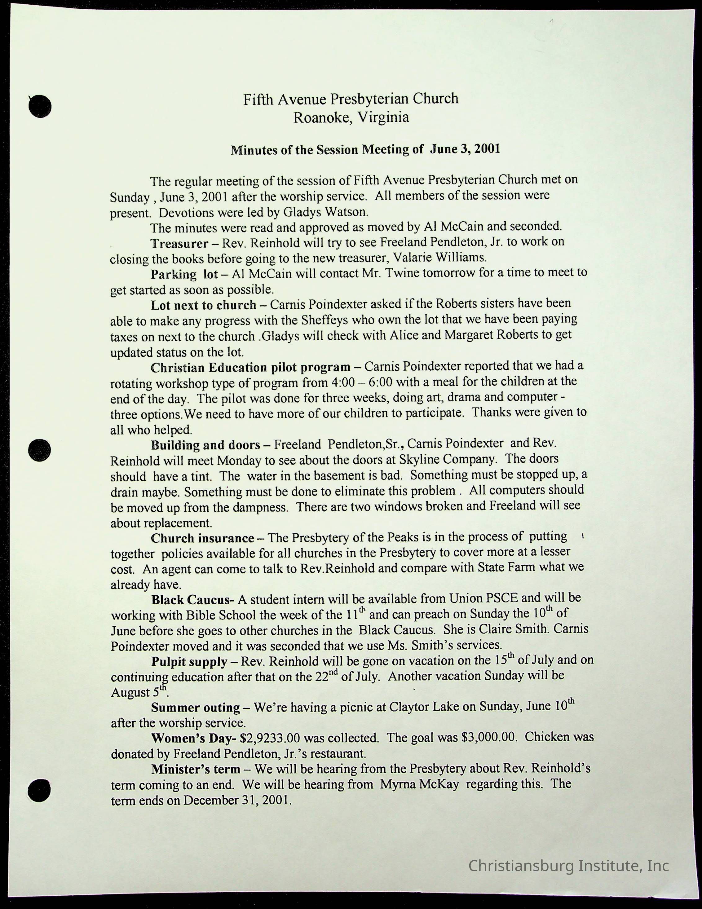 Copyright has been assigned to Christiansburg Institute Museum & Archives by Fifth Avenue Presbyterian Church. For permission to publish materials created by the donor, contact CIMA@christiansburginstitute.com. Materials not created by Fifth Avenue Presbyterian Church may still be under copyright.