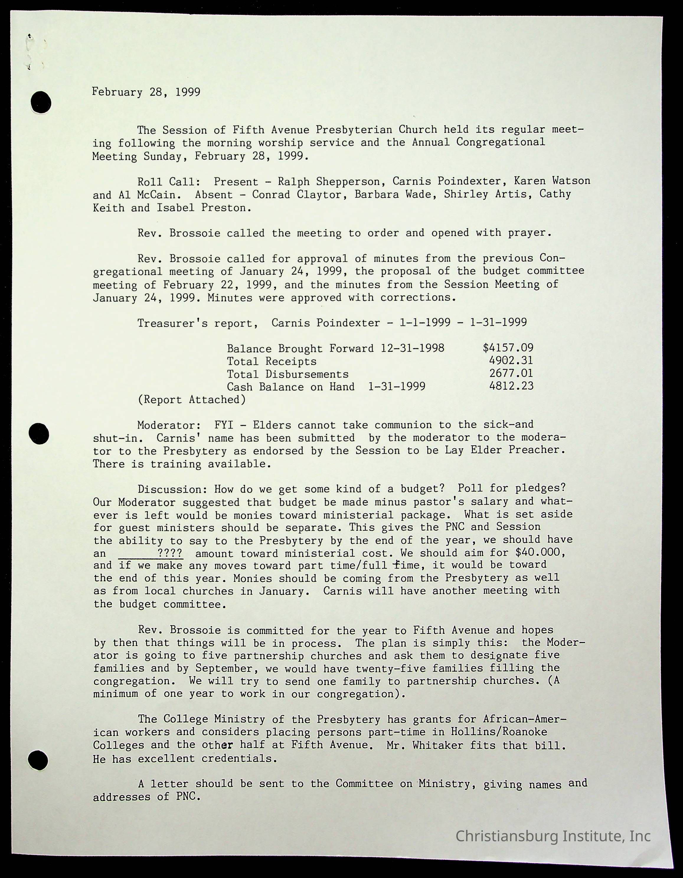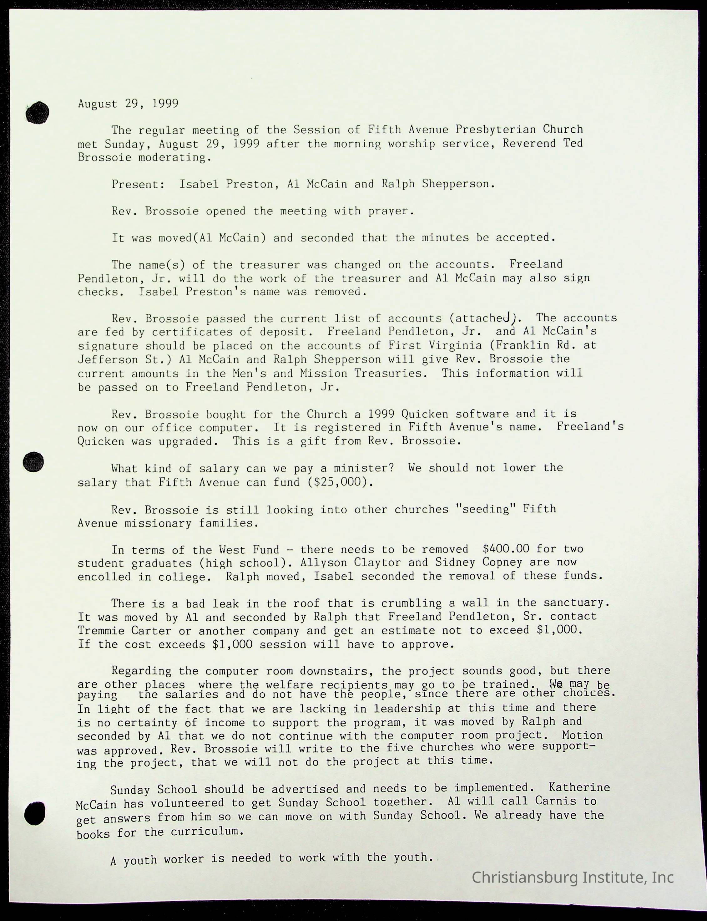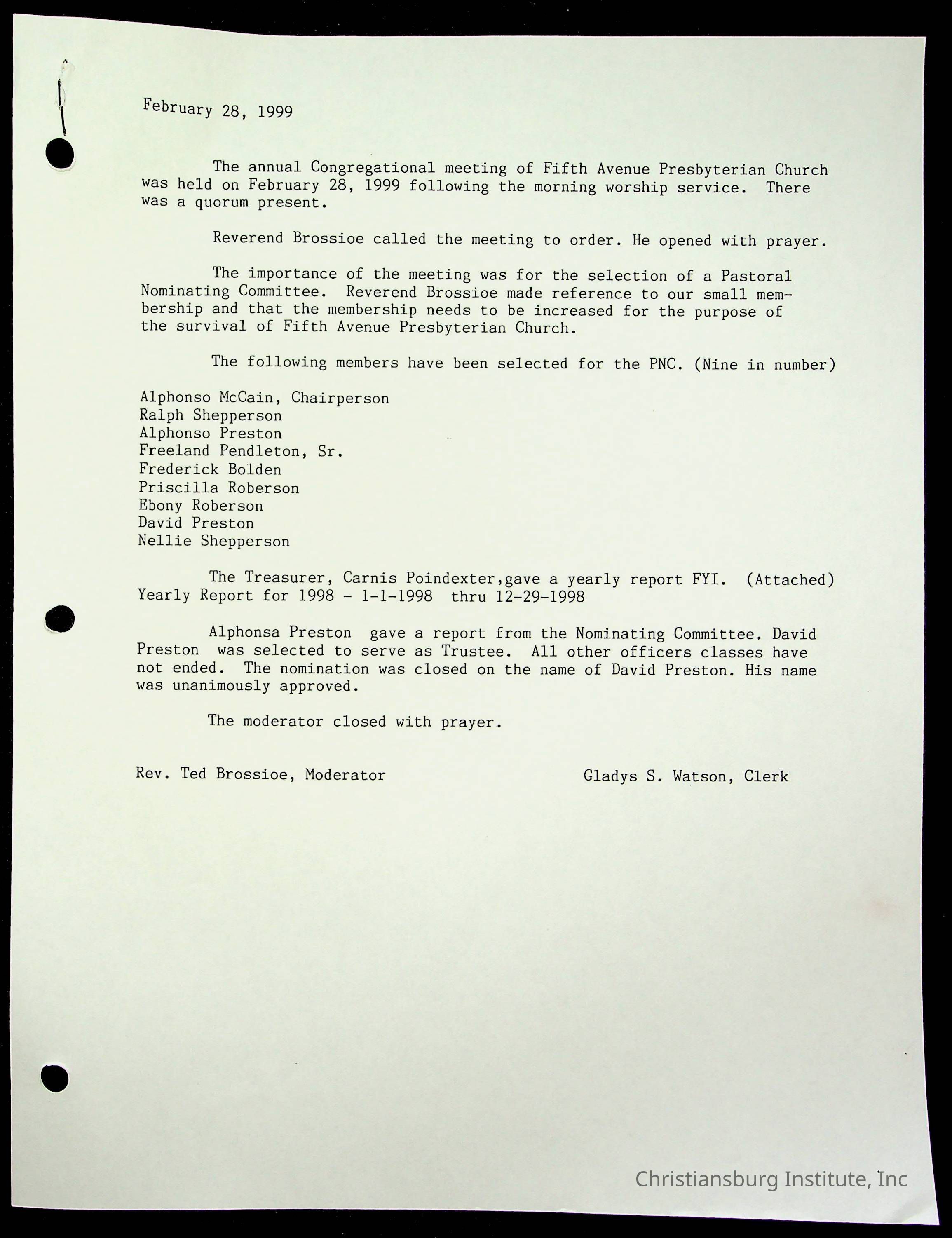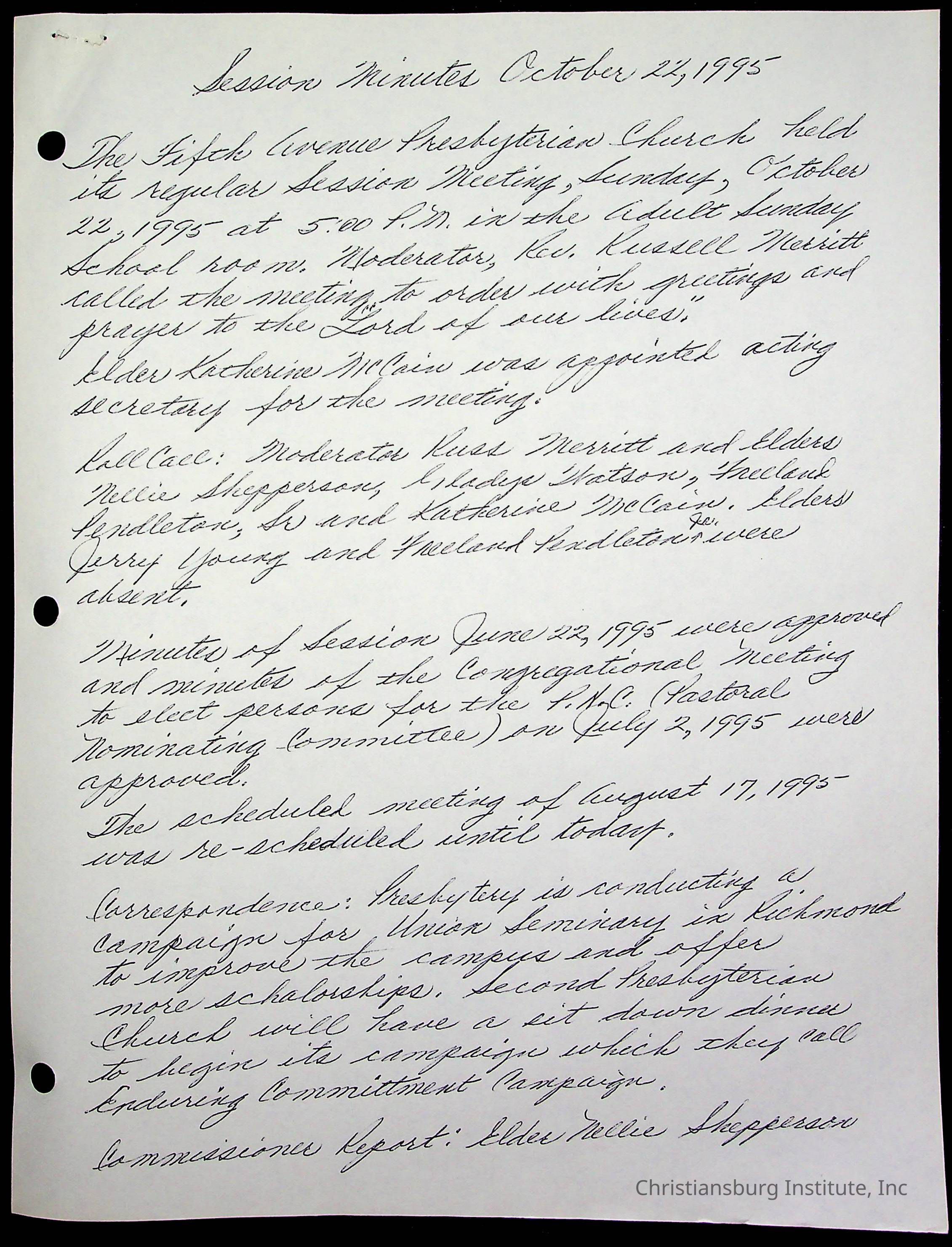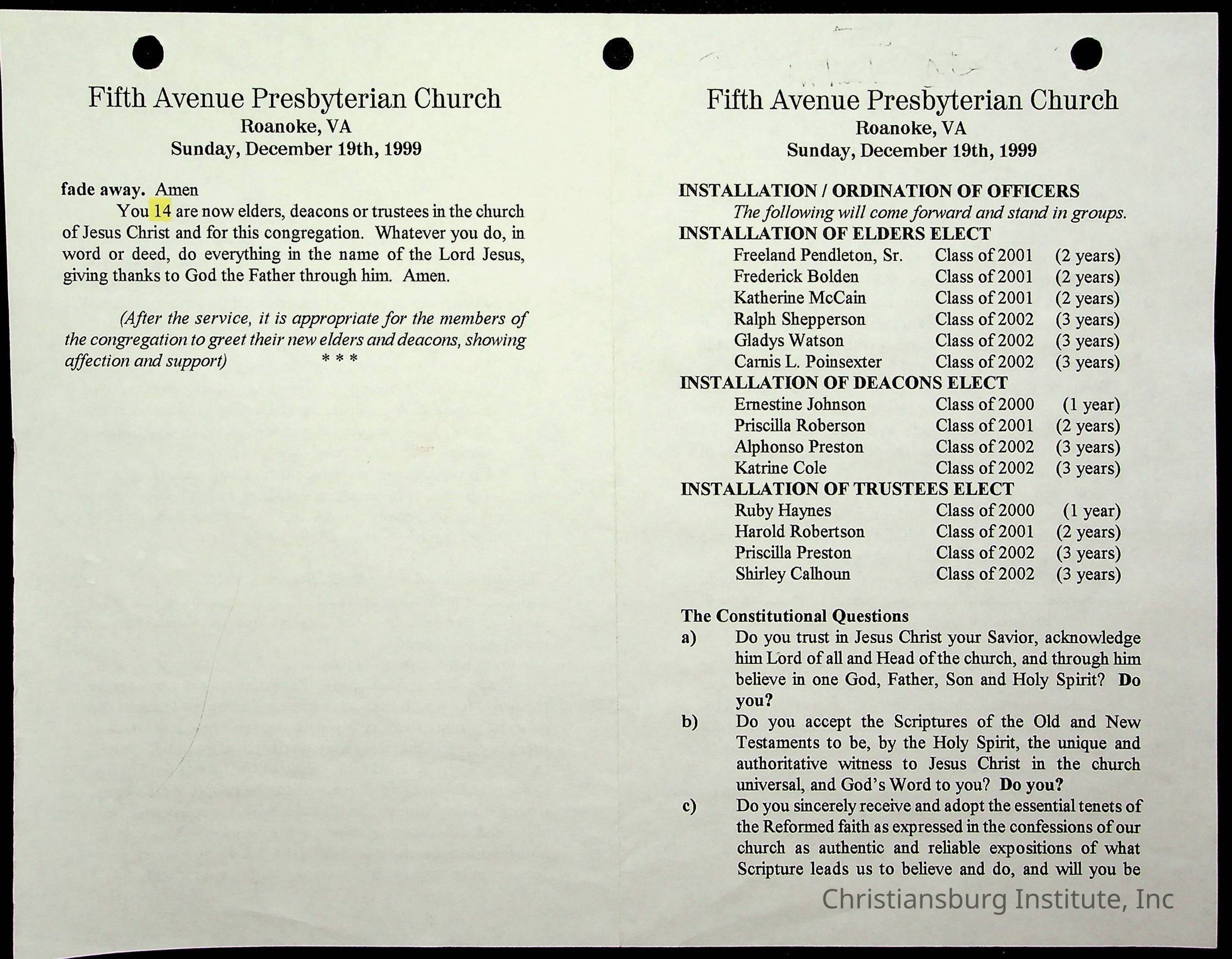 Copyright has been assigned to Christiansburg Institute Museum & Archives by Fifth Avenue Presbyterian Church. For permission to publish materials created by the donor, contact CIMA@christiansburginstitute.com. Materials not created by Fifth Avenue Presbyterian Church may still be under copyright.