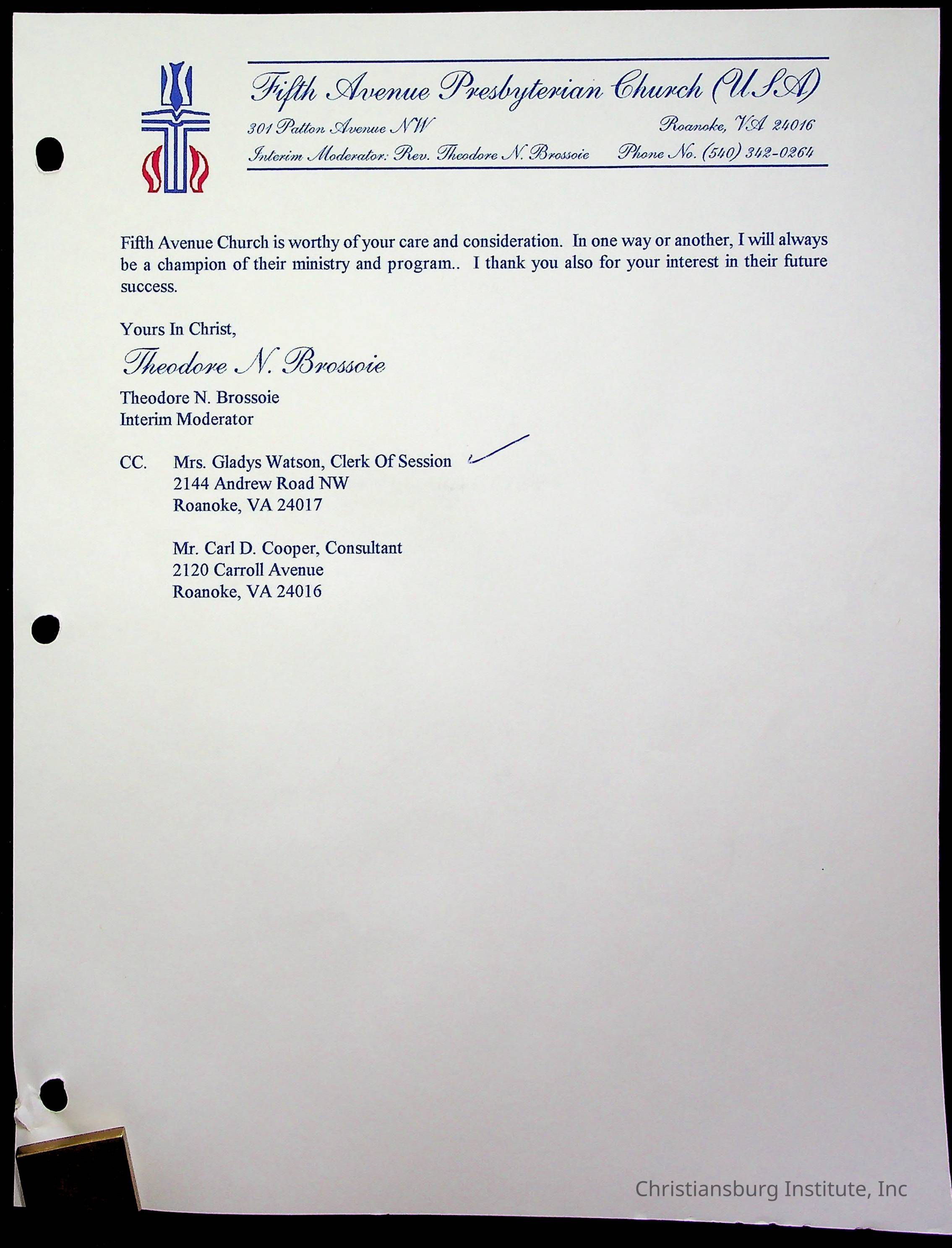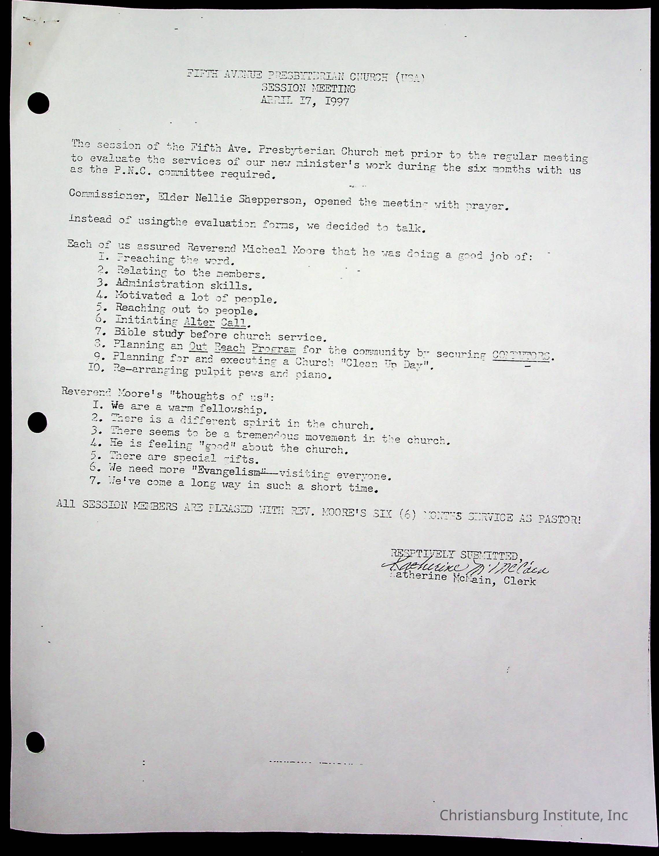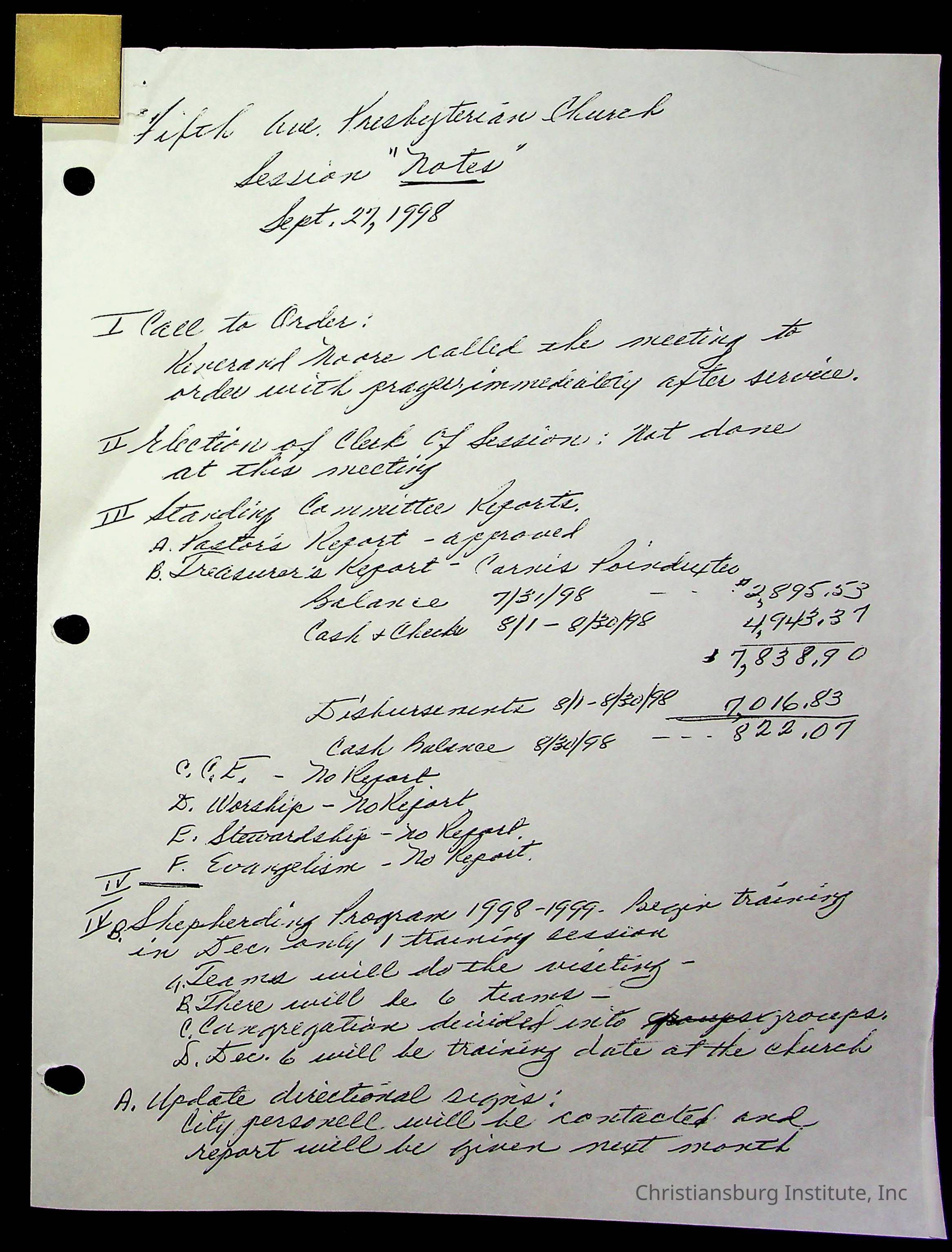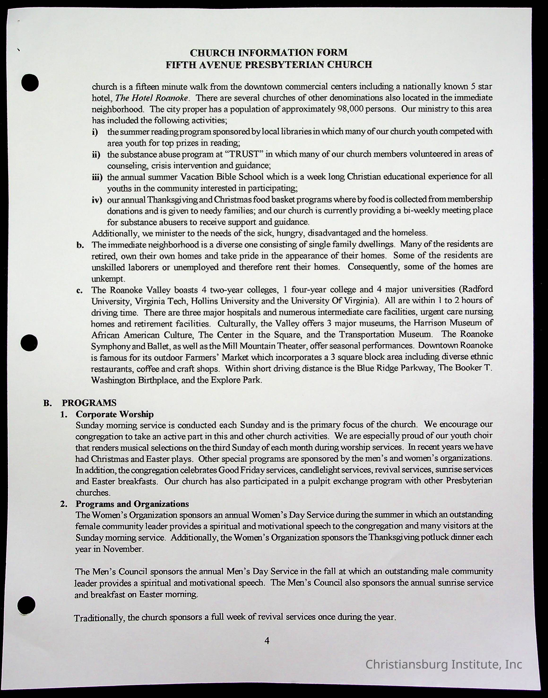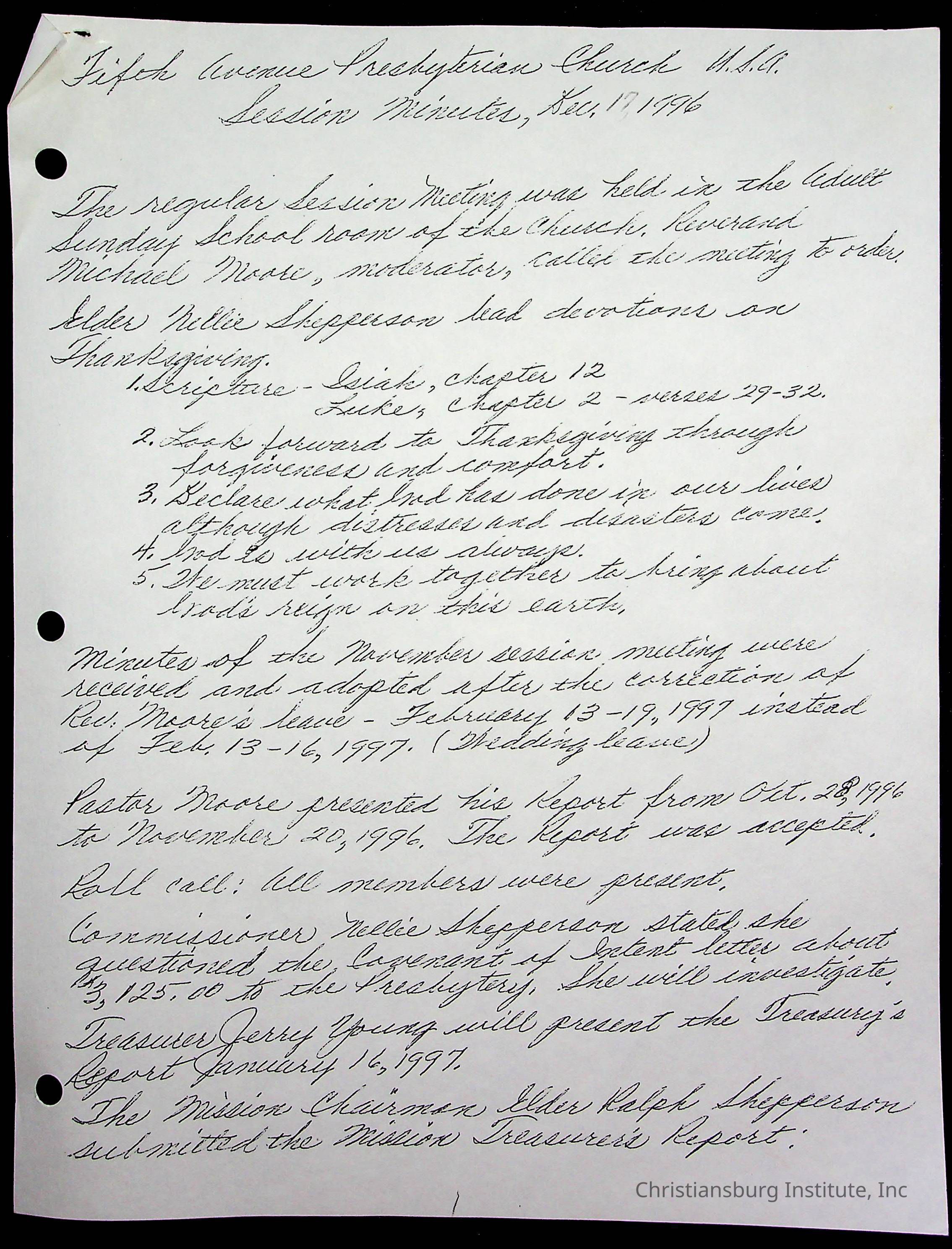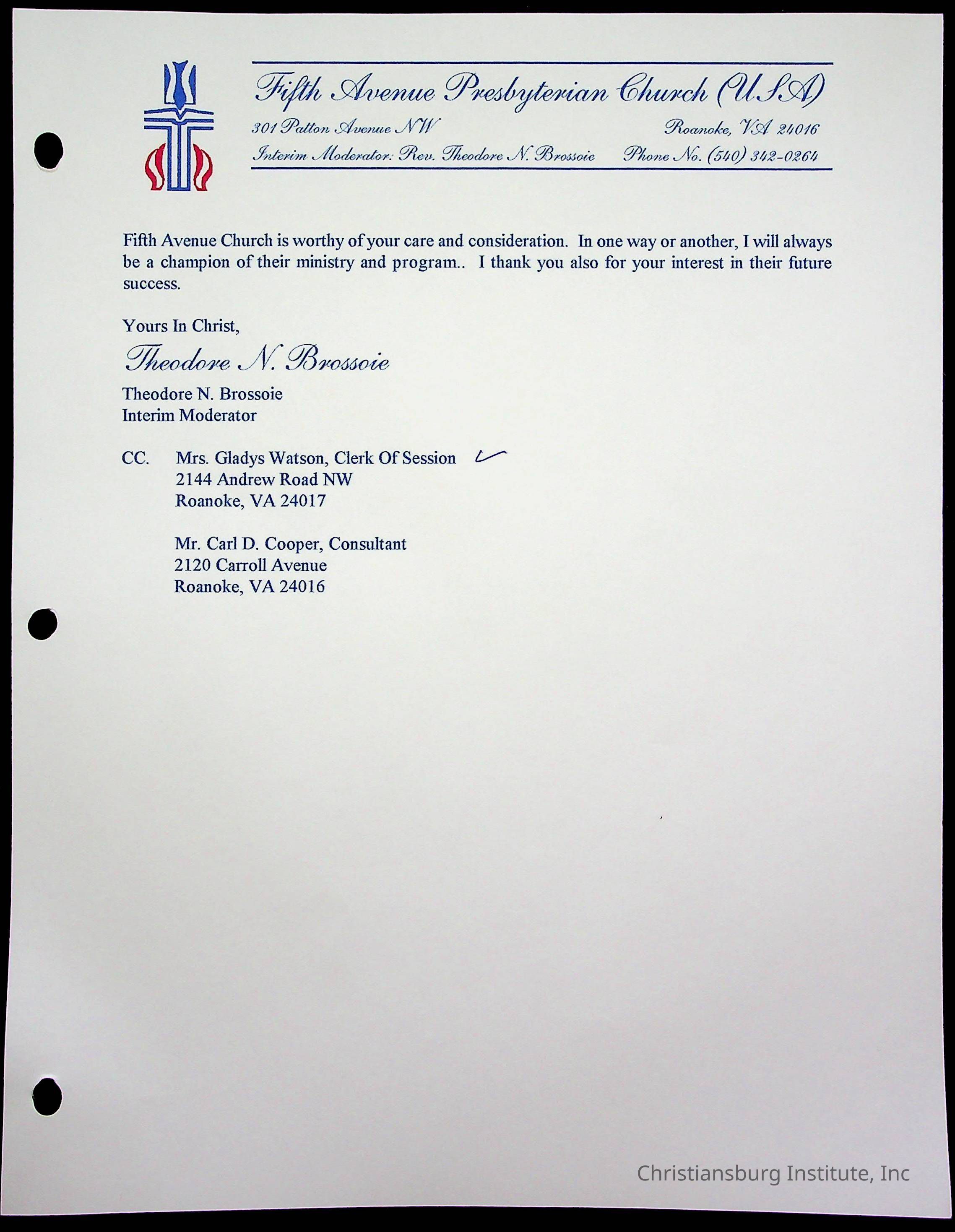 Copyright has been assigned to Christiansburg Institute Museum & Archives by Fifth Avenue Presbyterian Church. For permission to publish materials created by the donor, contact CIMA@christiansburginstitute.com. Materials not created by Fifth Avenue Presbyterian Church may still be under copyright.