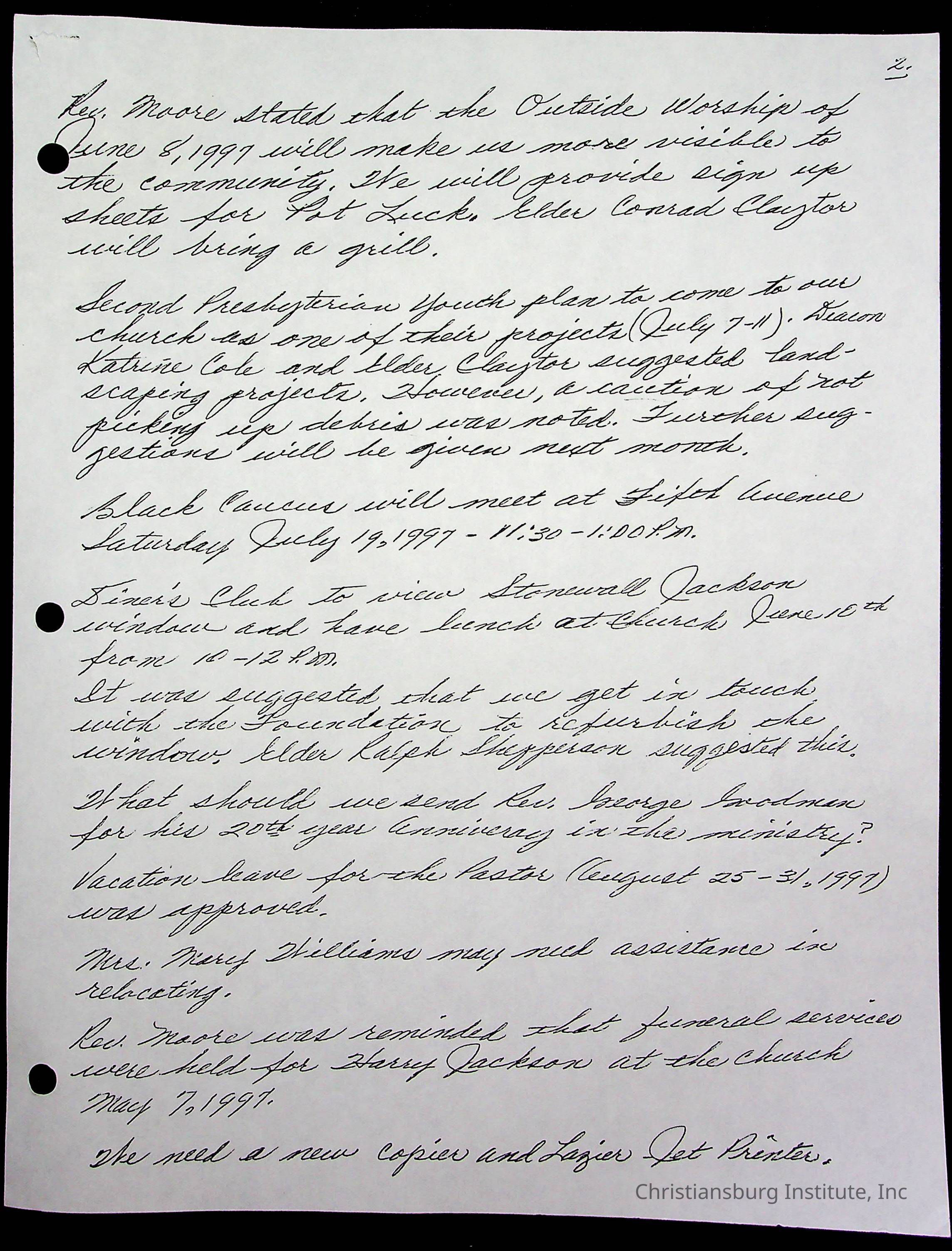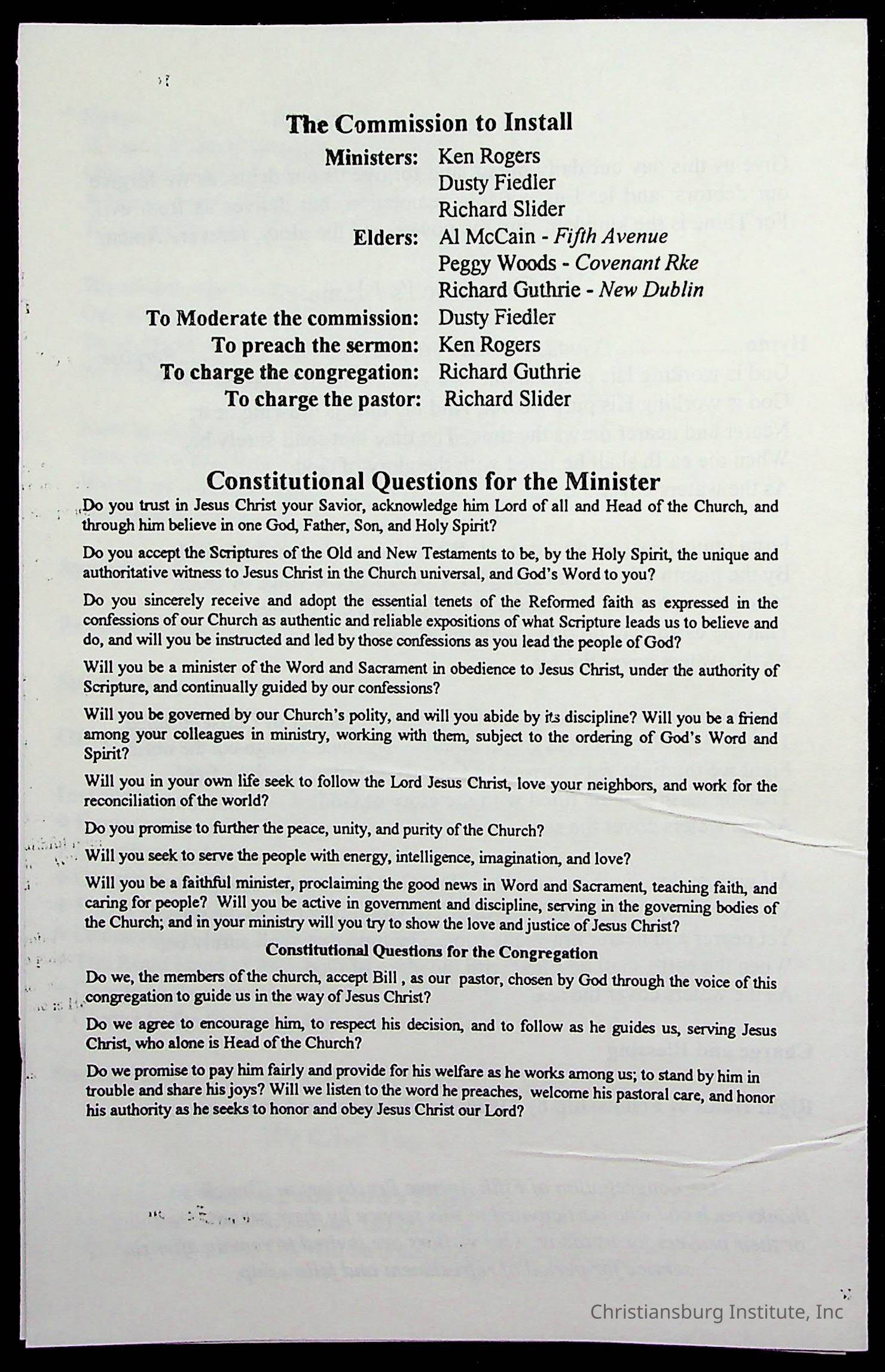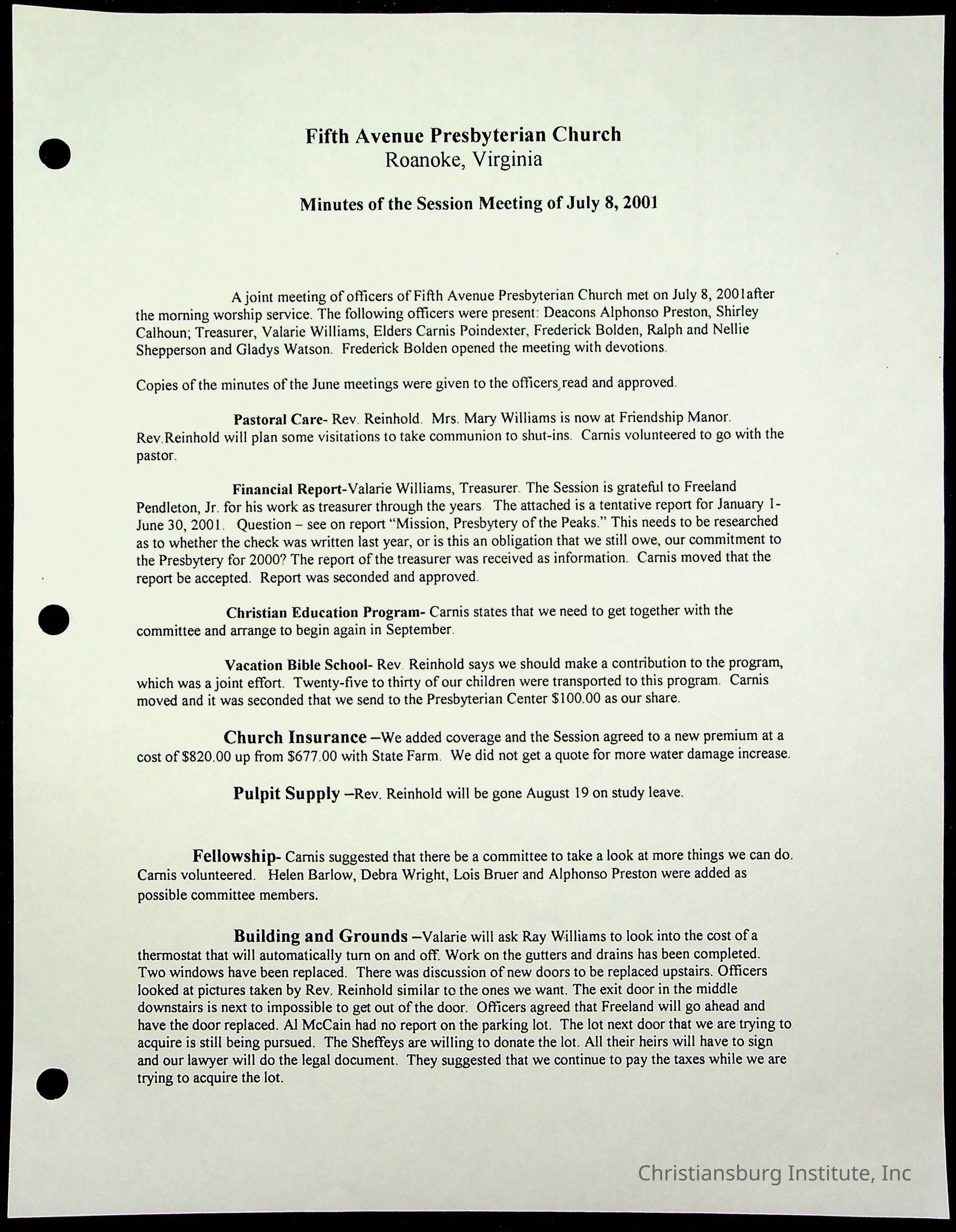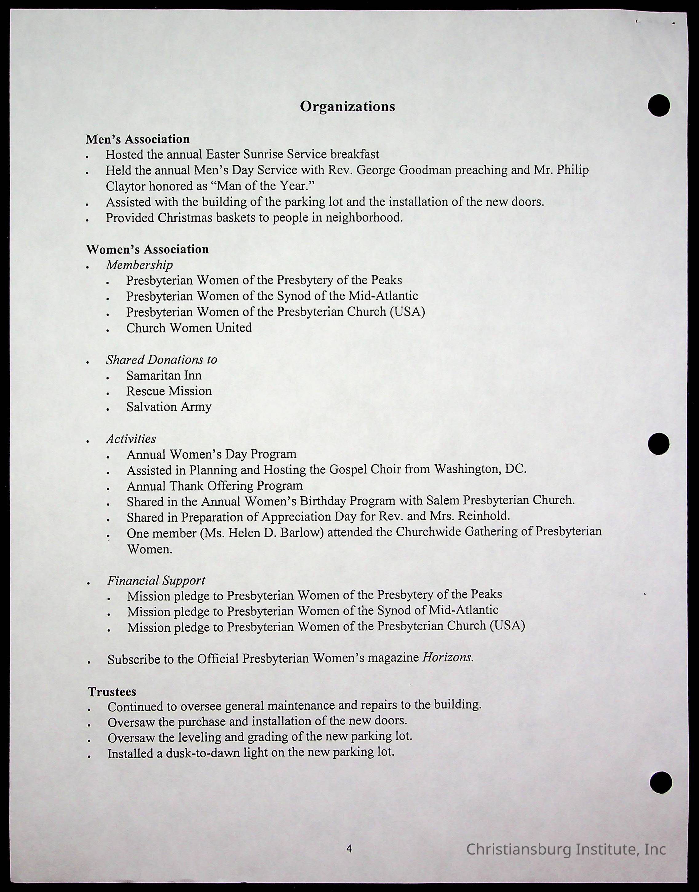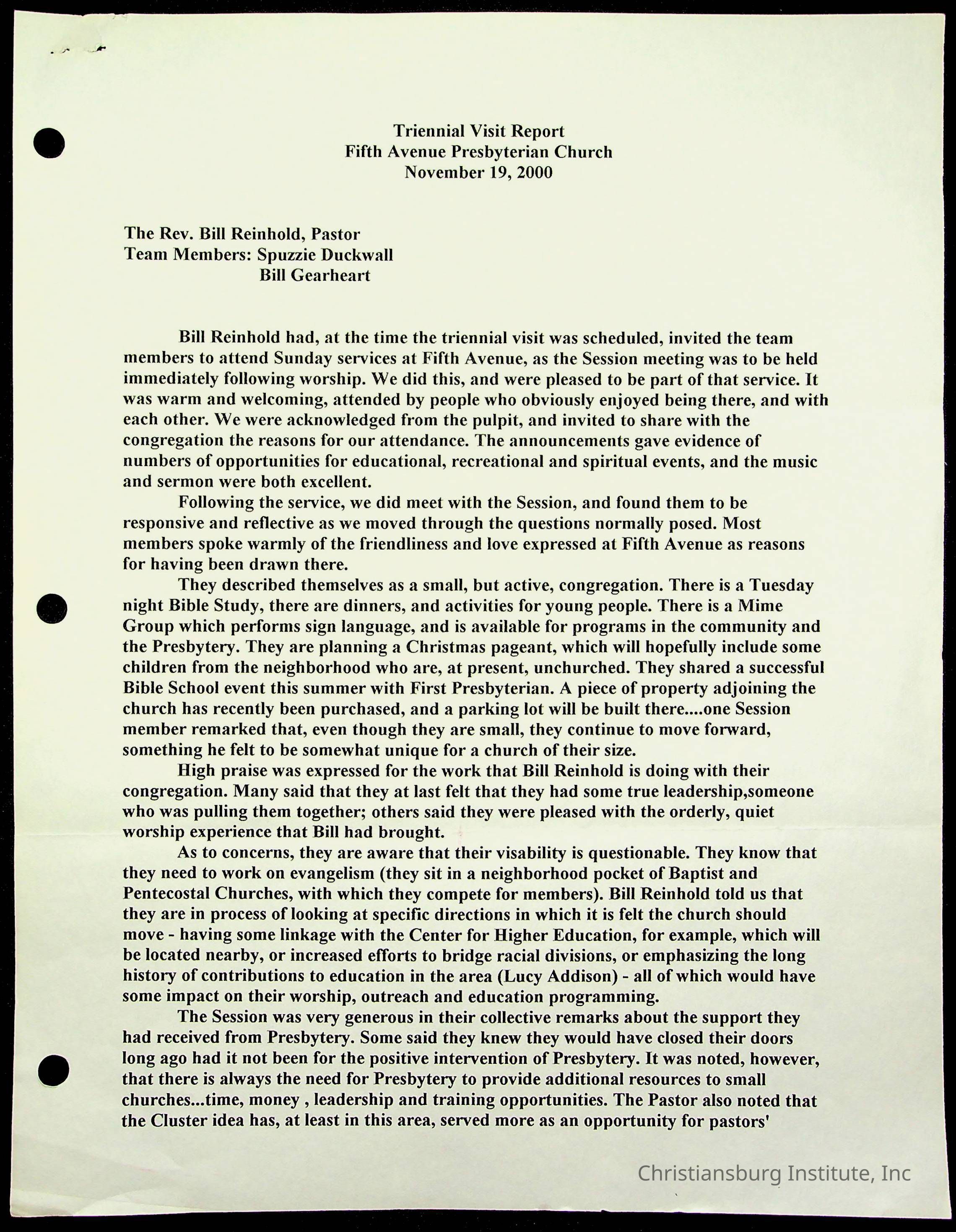 Copyright has been assigned to Christiansburg Institute Museum & Archives by Fifth Avenue Presbyterian Church. For permission to publish materials created by the donor, contact CIMA@christiansburginstitute.com. Materials not created by Fifth Avenue Presbyterian Church may still be under copyright.