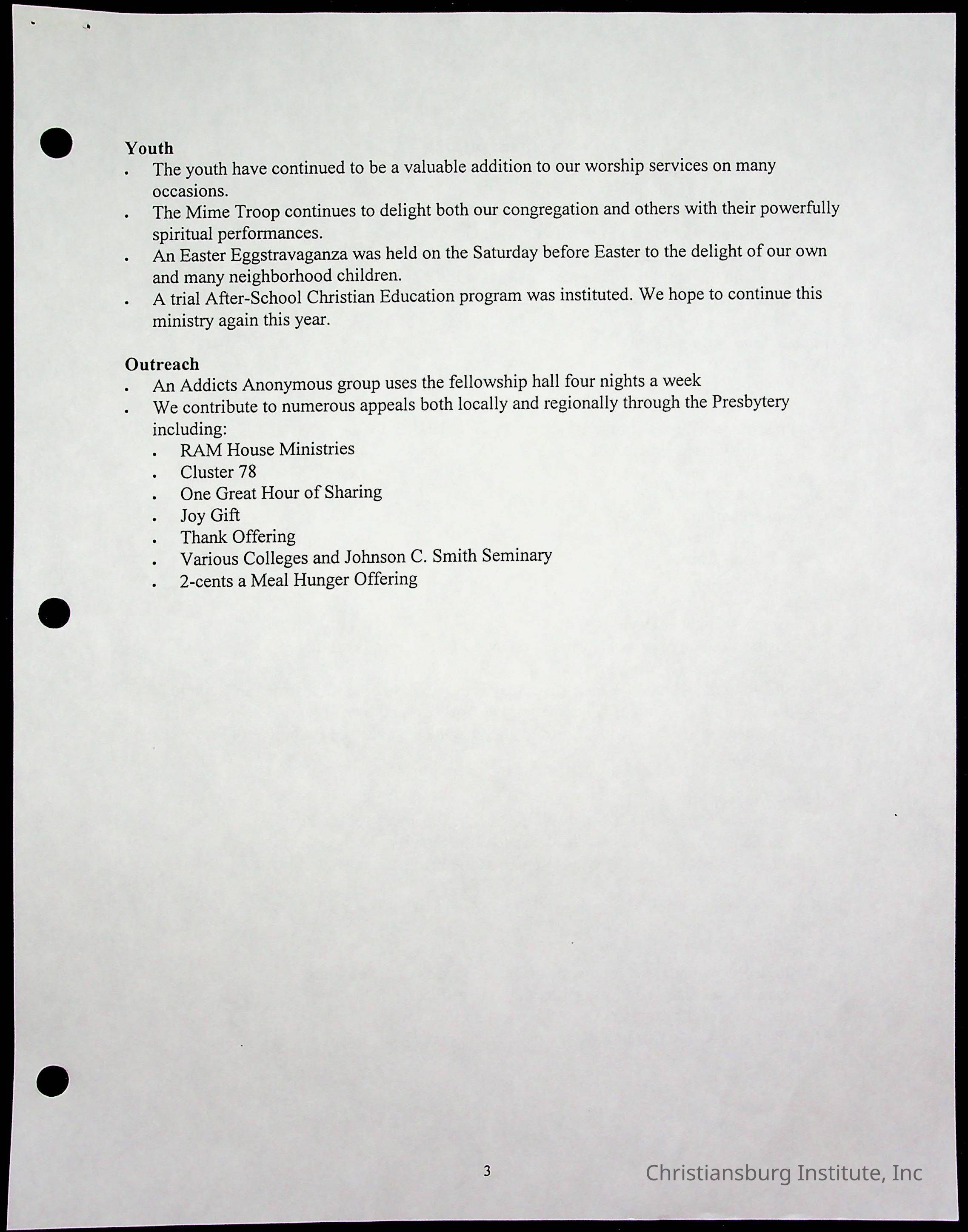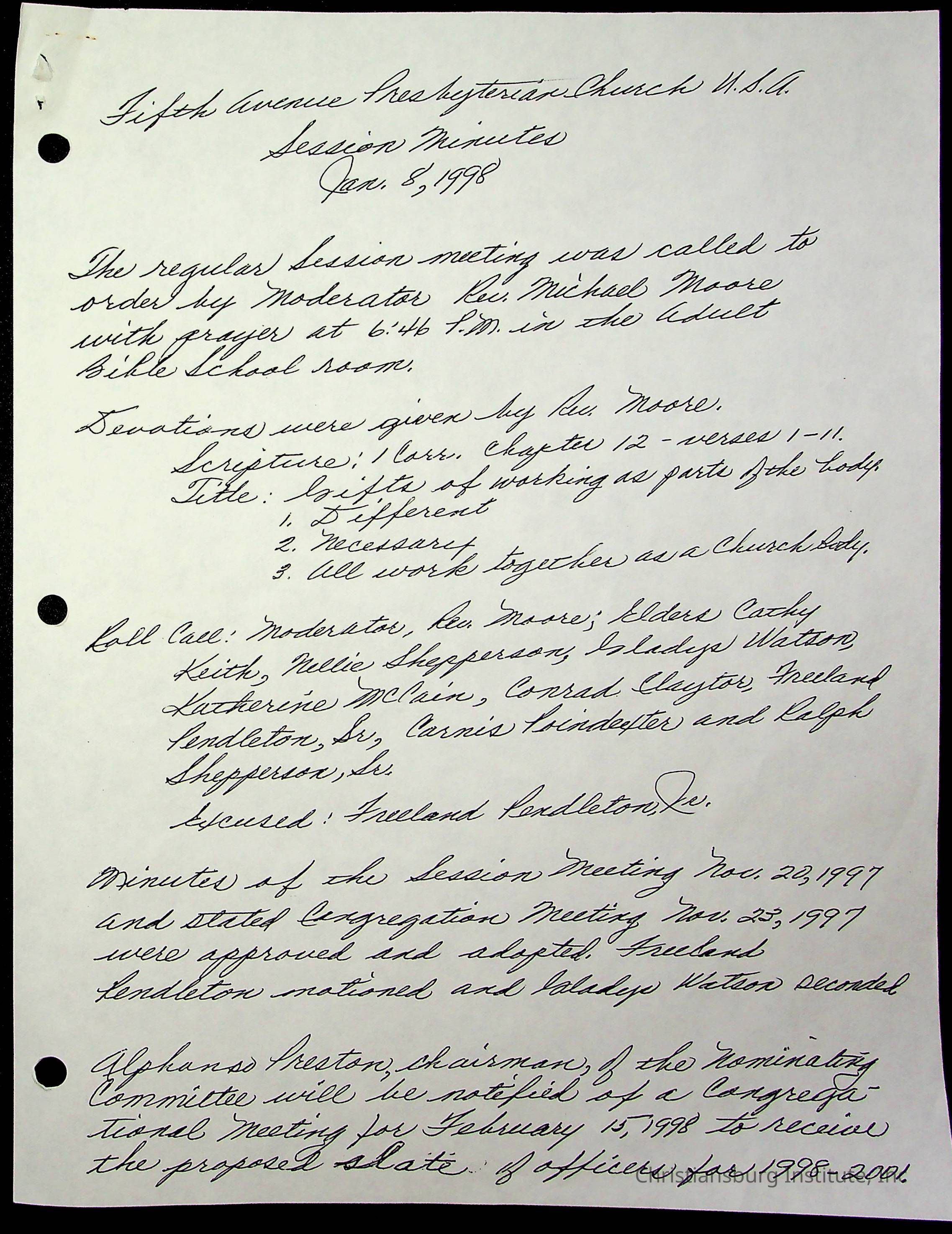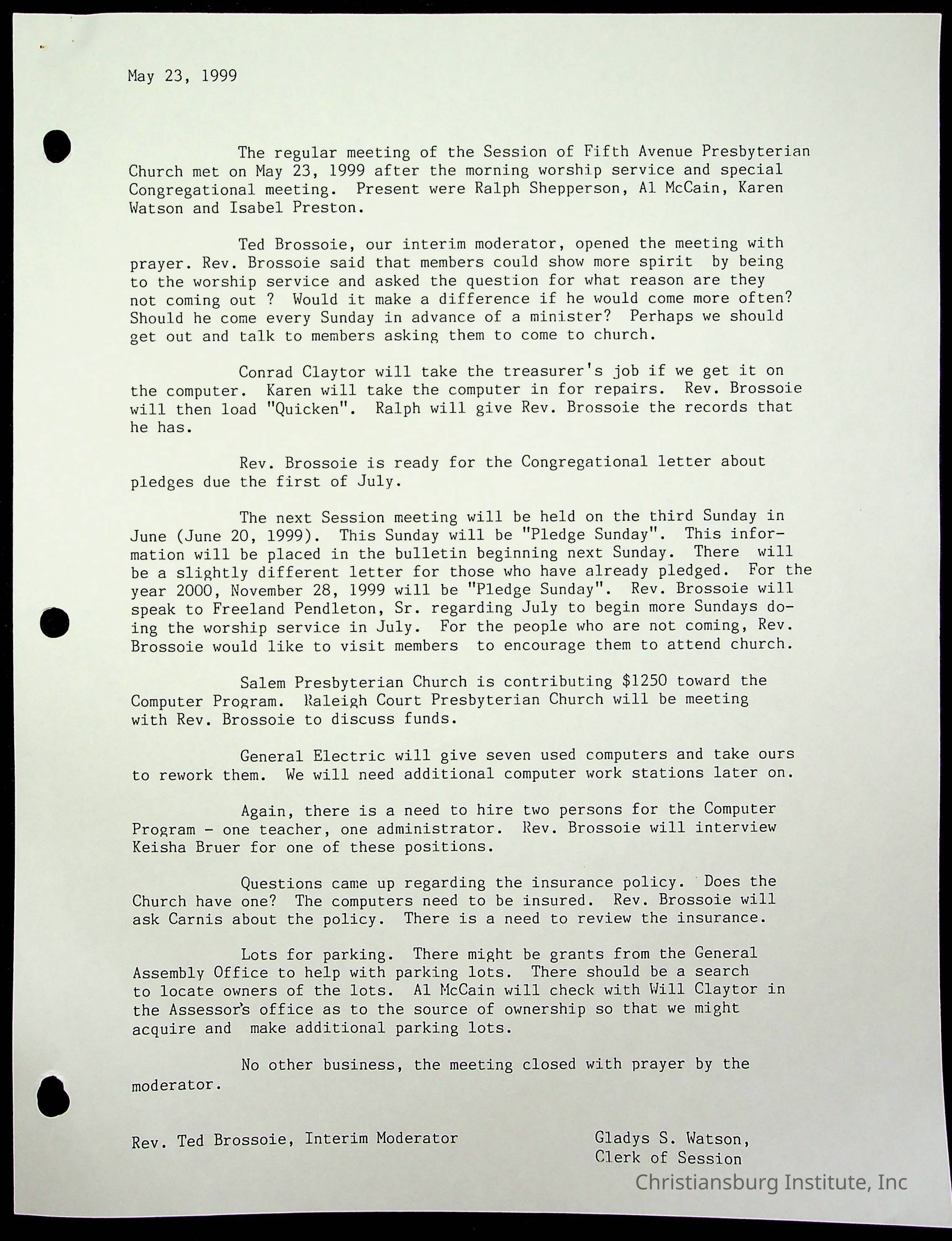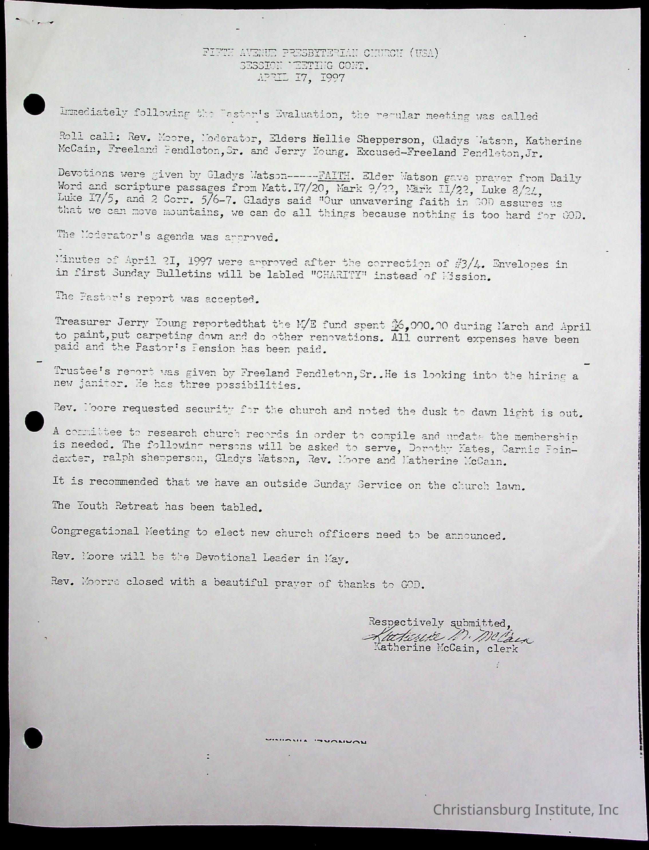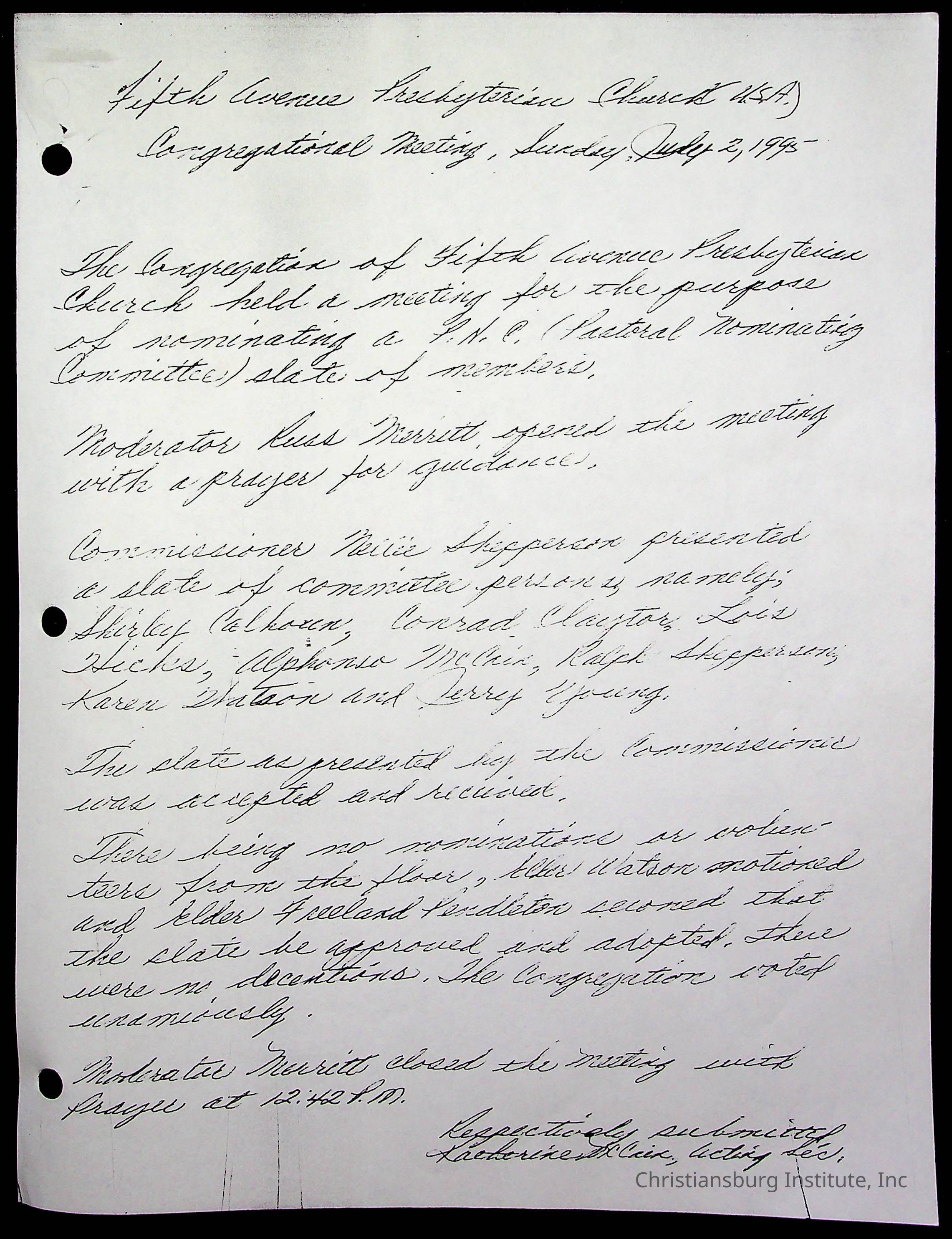 Copyright has been assigned to Christiansburg Institute Museum & Archives by Fifth Avenue Presbyterian Church. For permission to publish materials created by the donor, contact CIMA@christiansburginstitute.com. Materials not created by Fifth Avenue Presbyterian Church may still be under copyright.