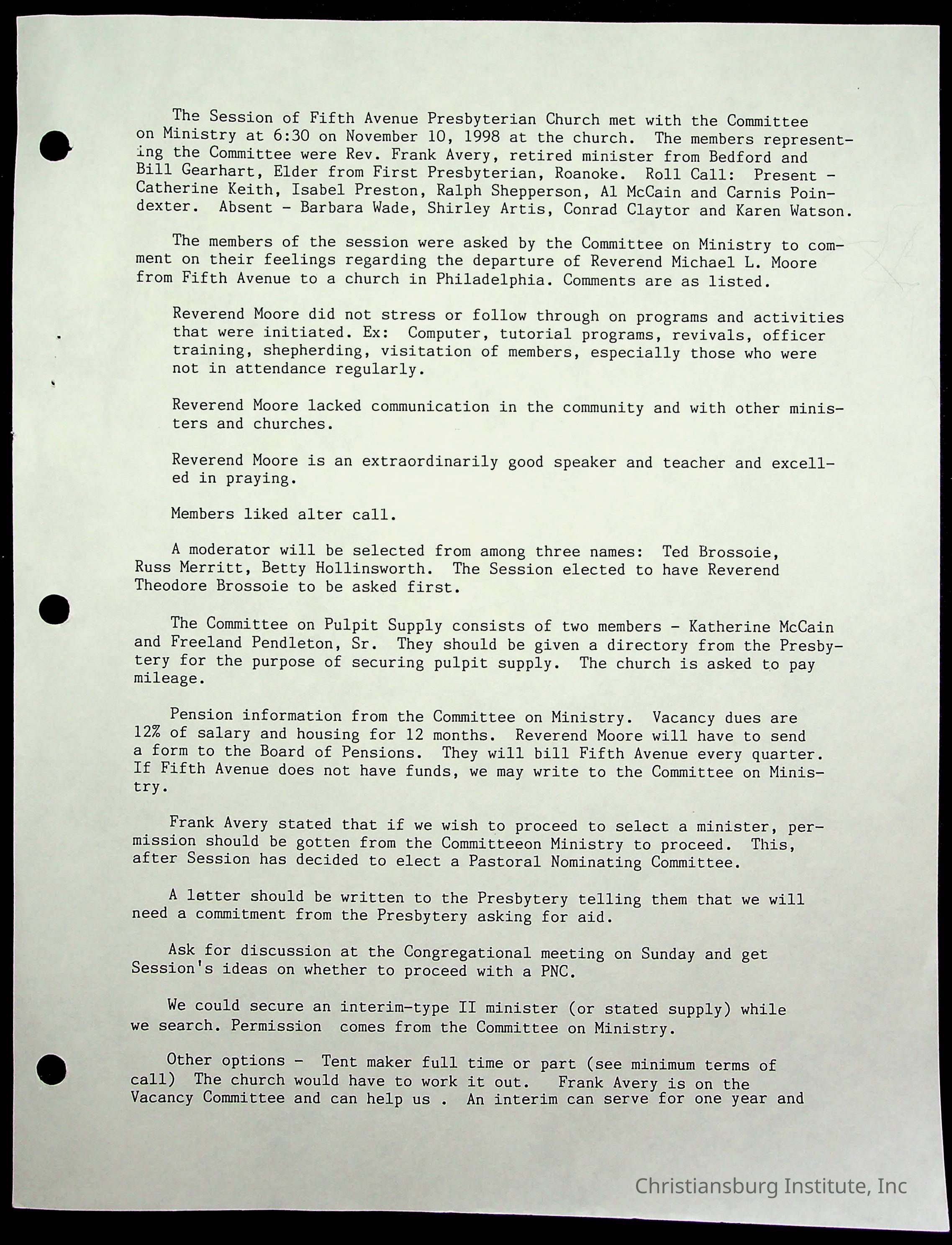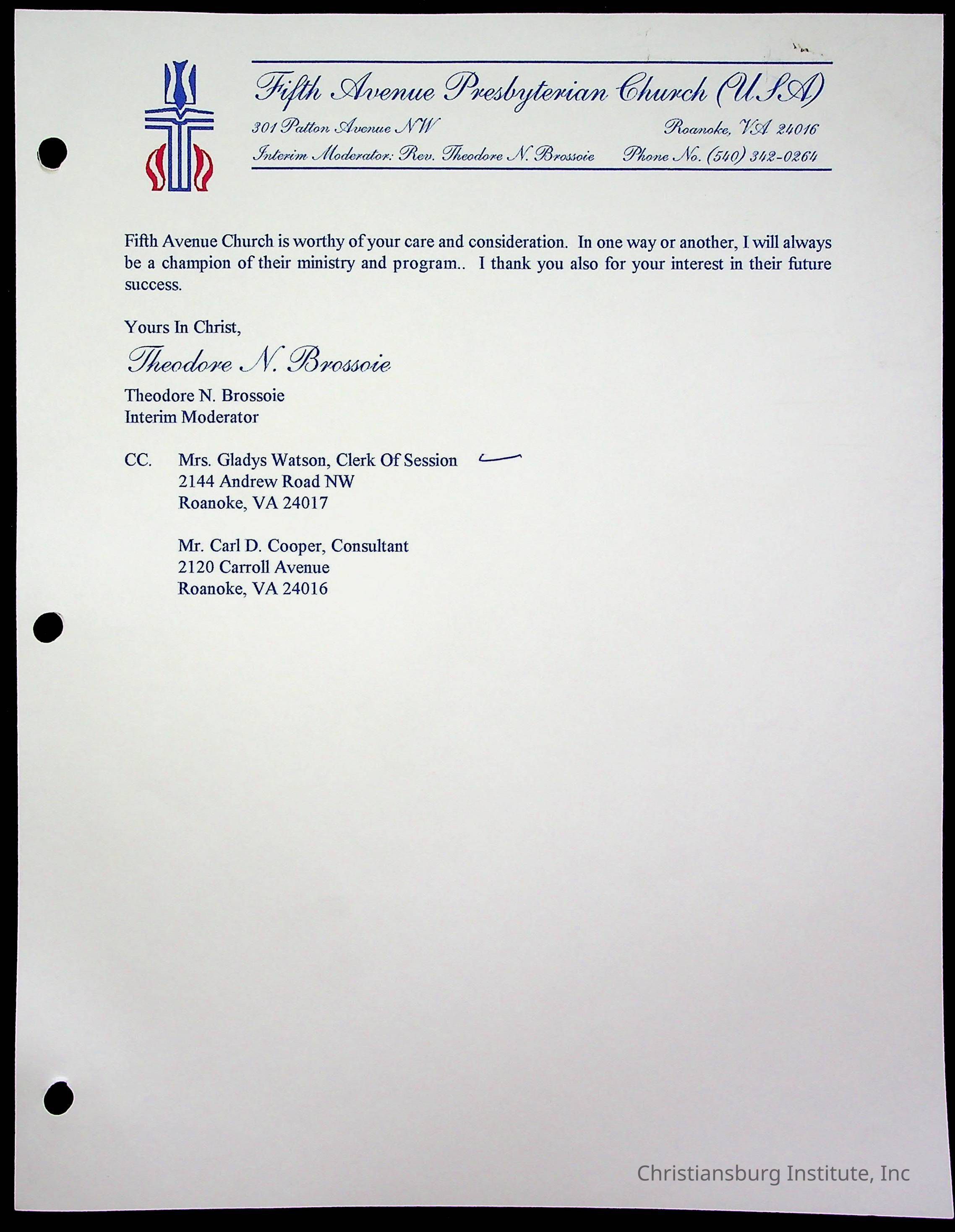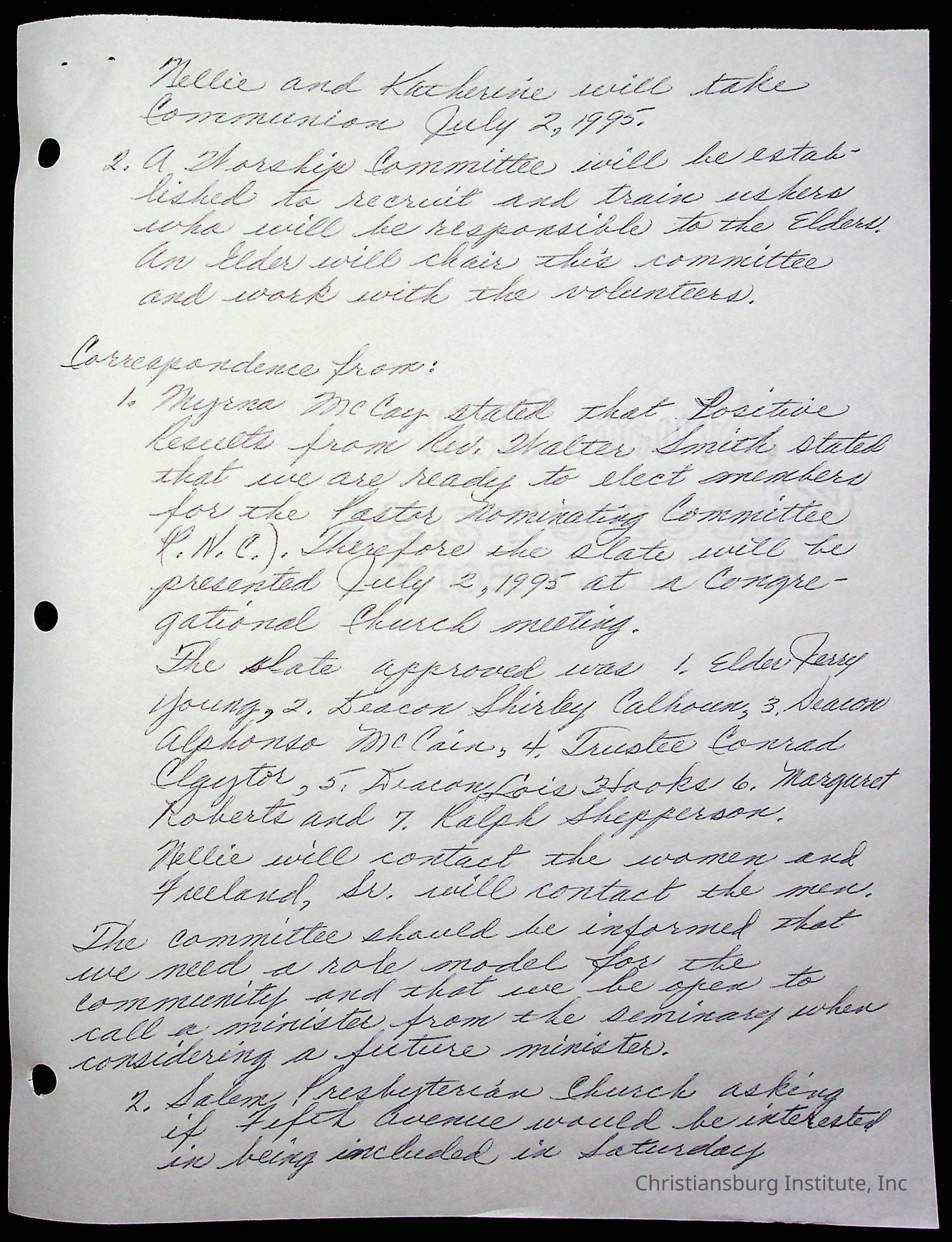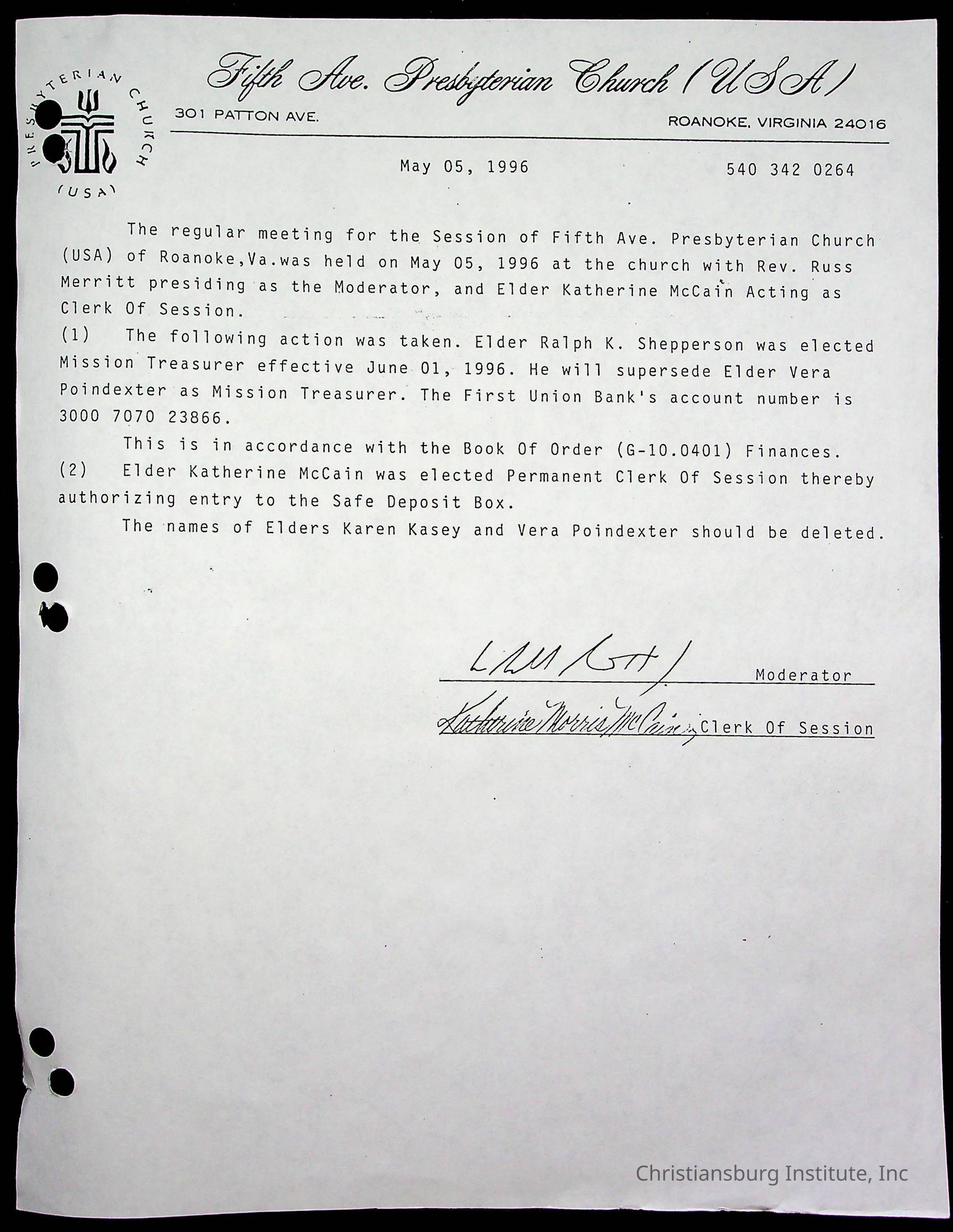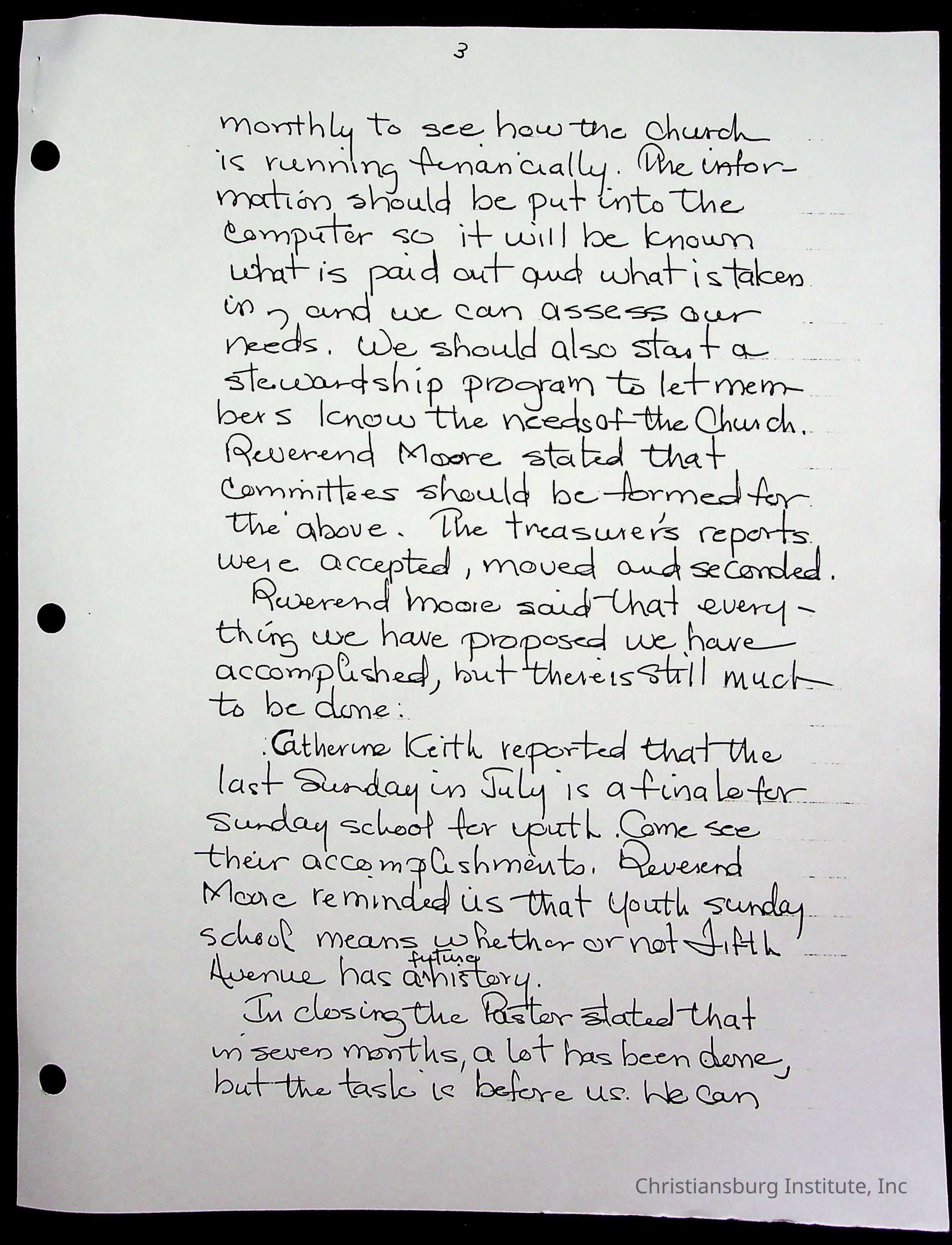 Copyright has been assigned to Christiansburg Institute Museum & Archives by Fifth Avenue Presbyterian Church. For permission to publish materials created by the donor, contact CIMA@christiansburginstitute.com. Materials not created by Fifth Avenue Presbyterian Church may still be under copyright.