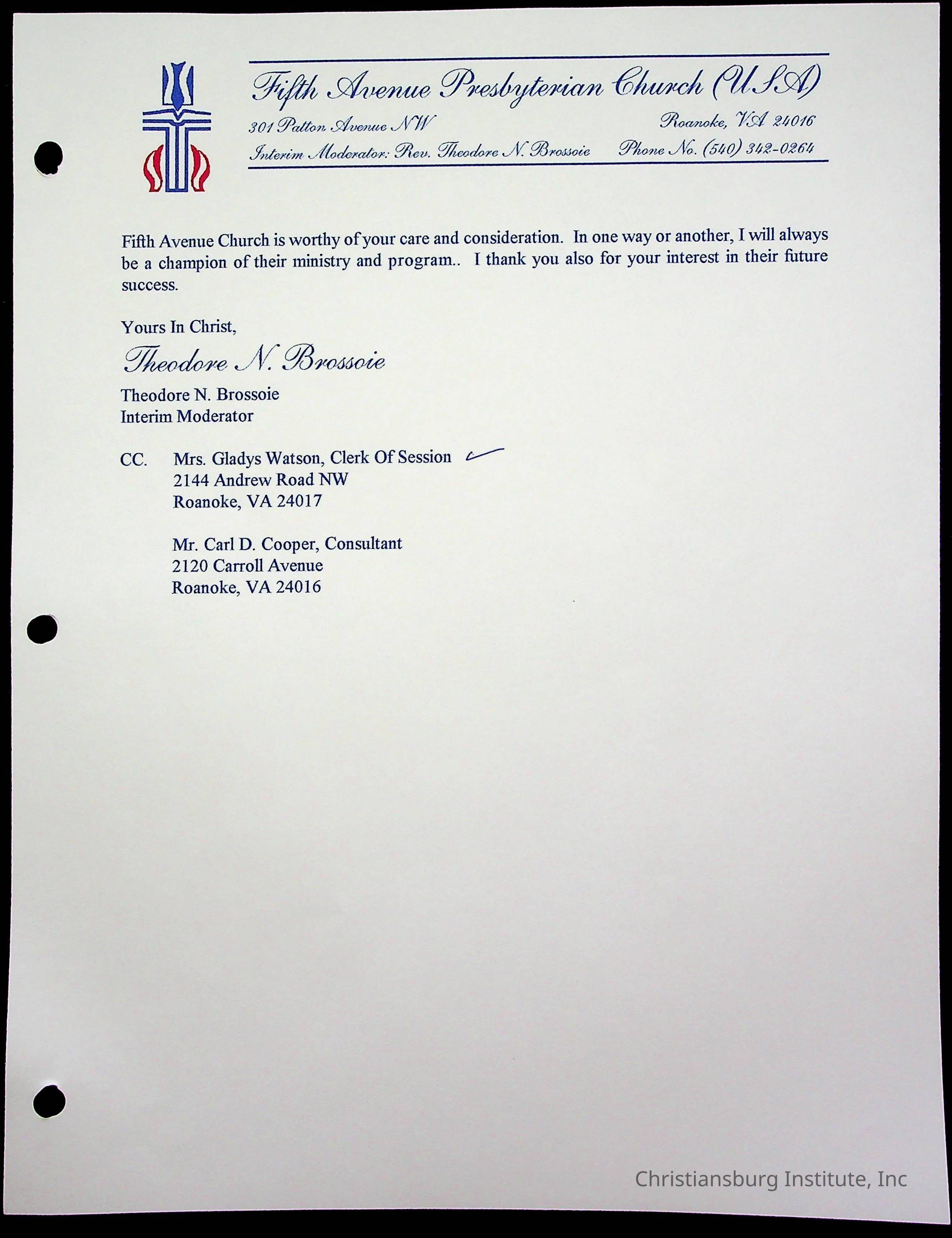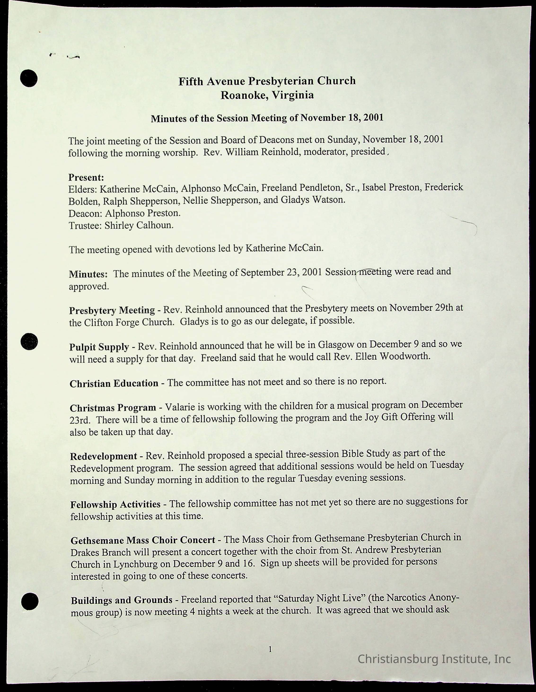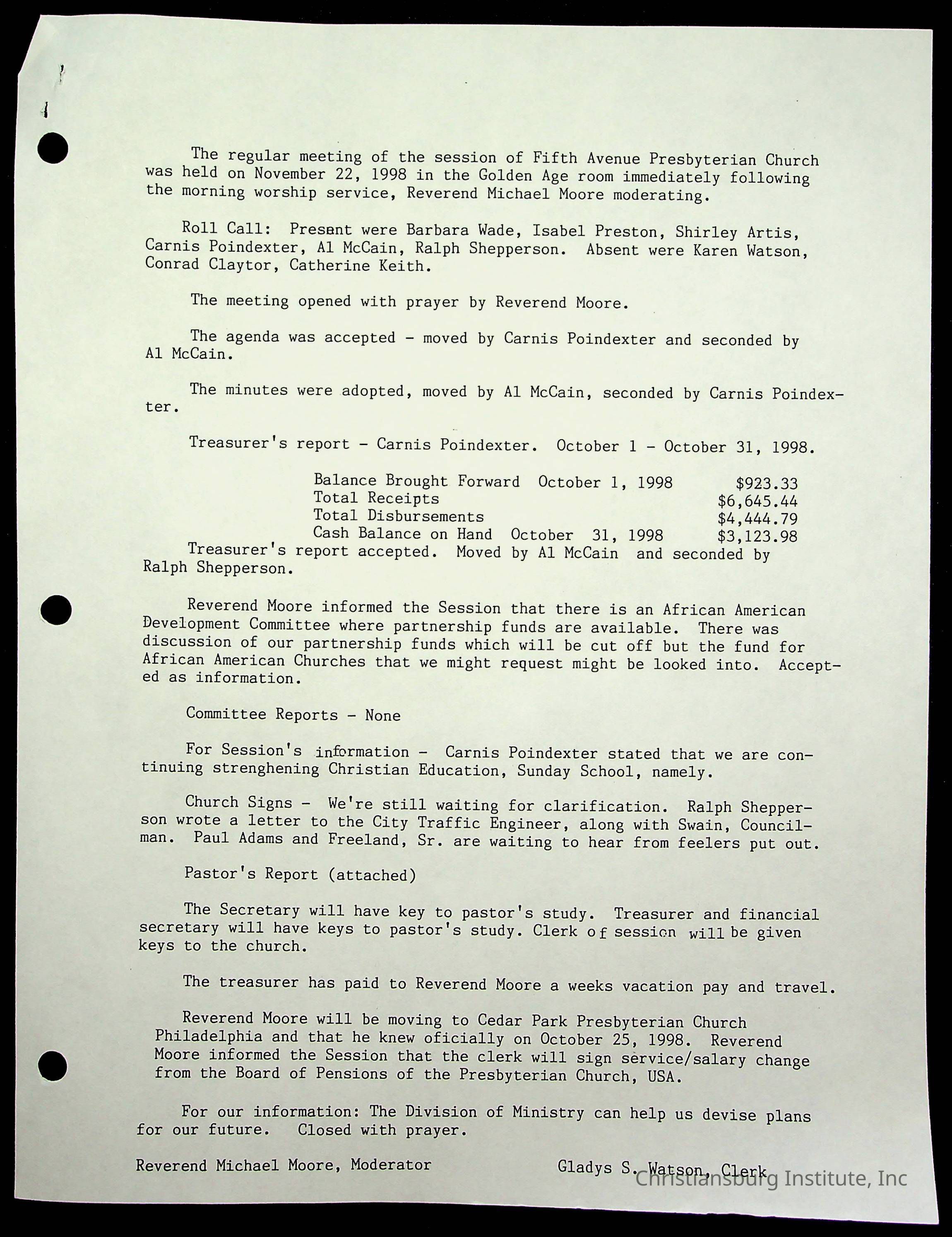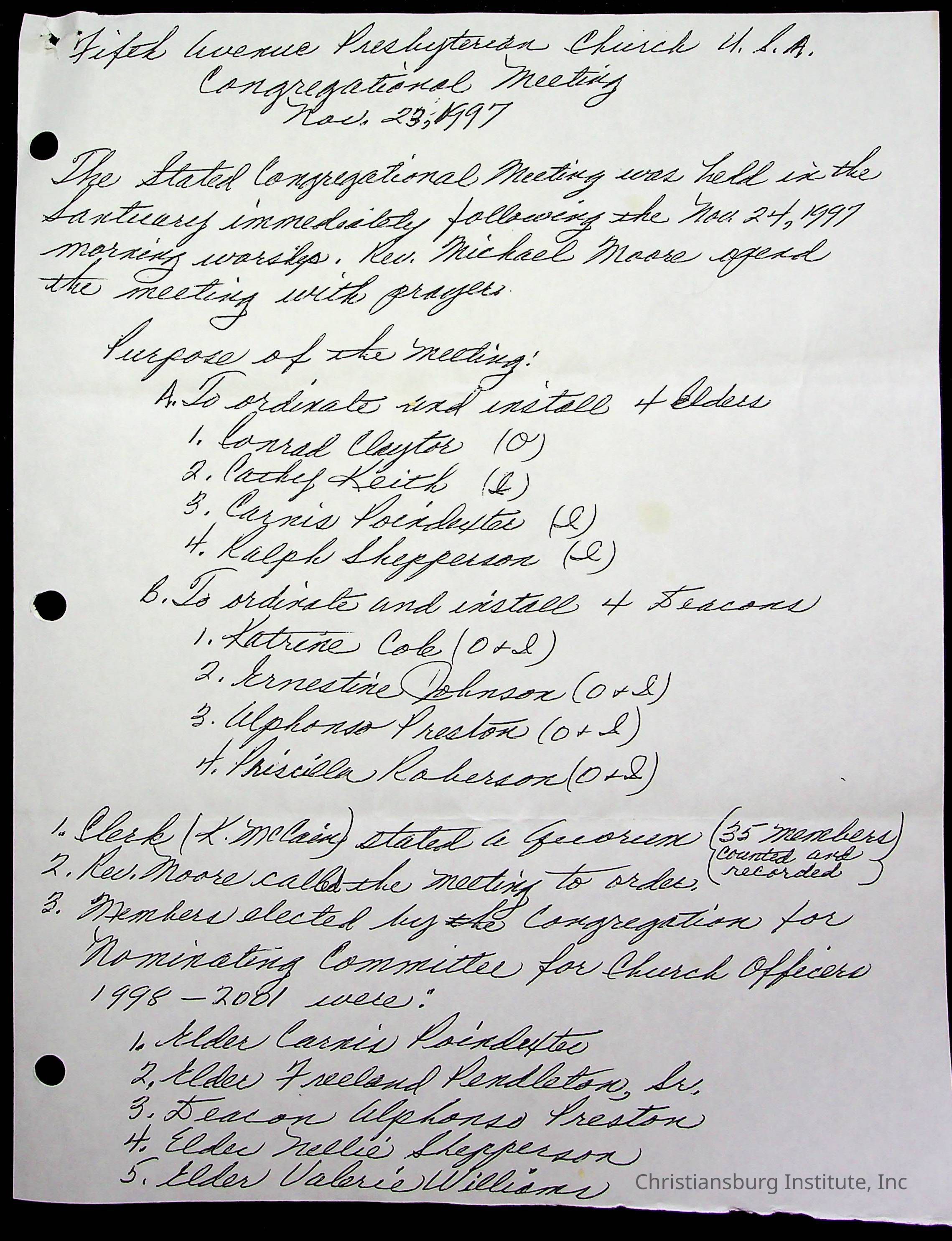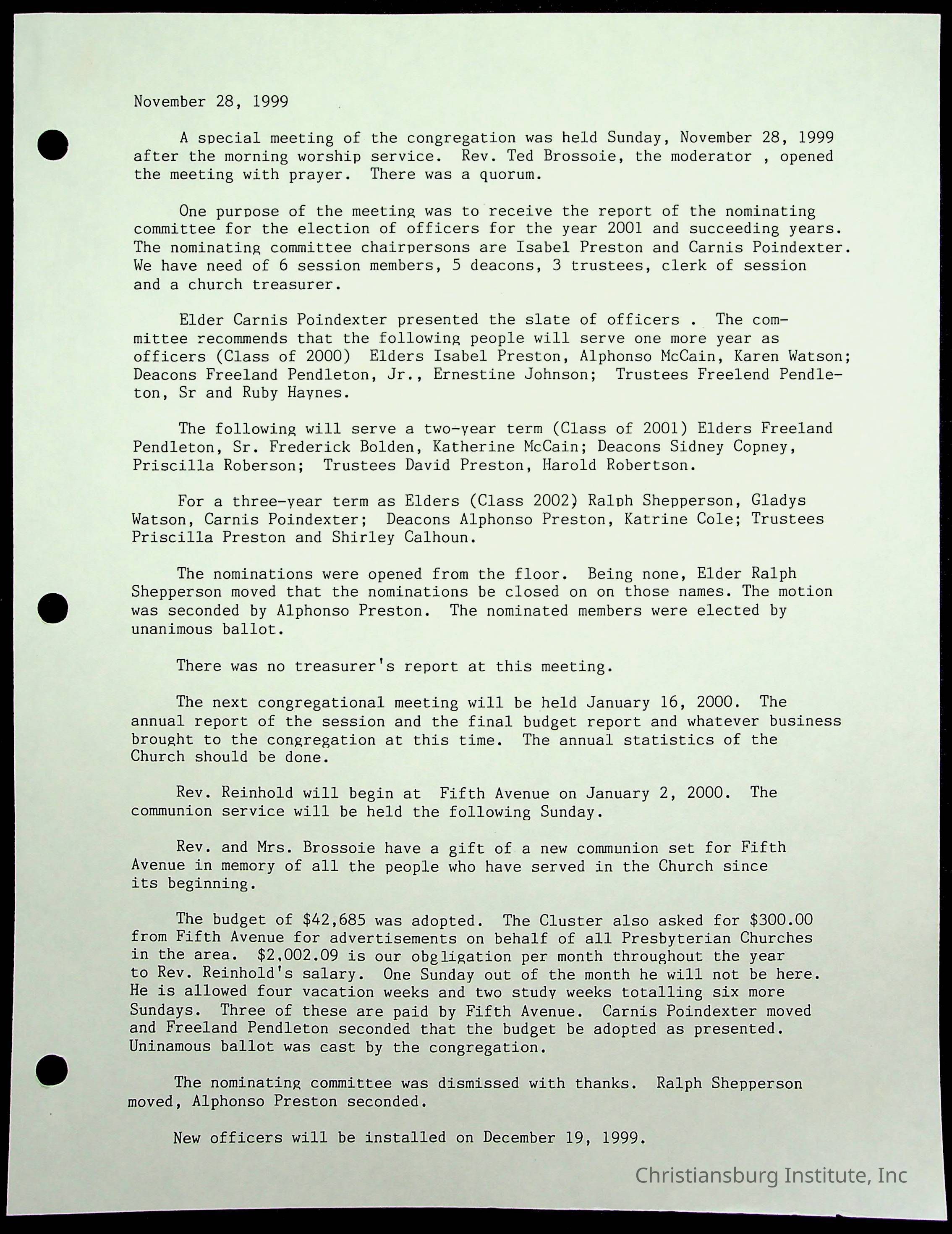 Copyright has been assigned to Christiansburg Institute Museum & Archives by Fifth Avenue Presbyterian Church. For permission to publish materials created by the donor, contact CIMA@christiansburginstitute.com. Materials not created by Fifth Avenue Presbyterian Church may still be under copyright.