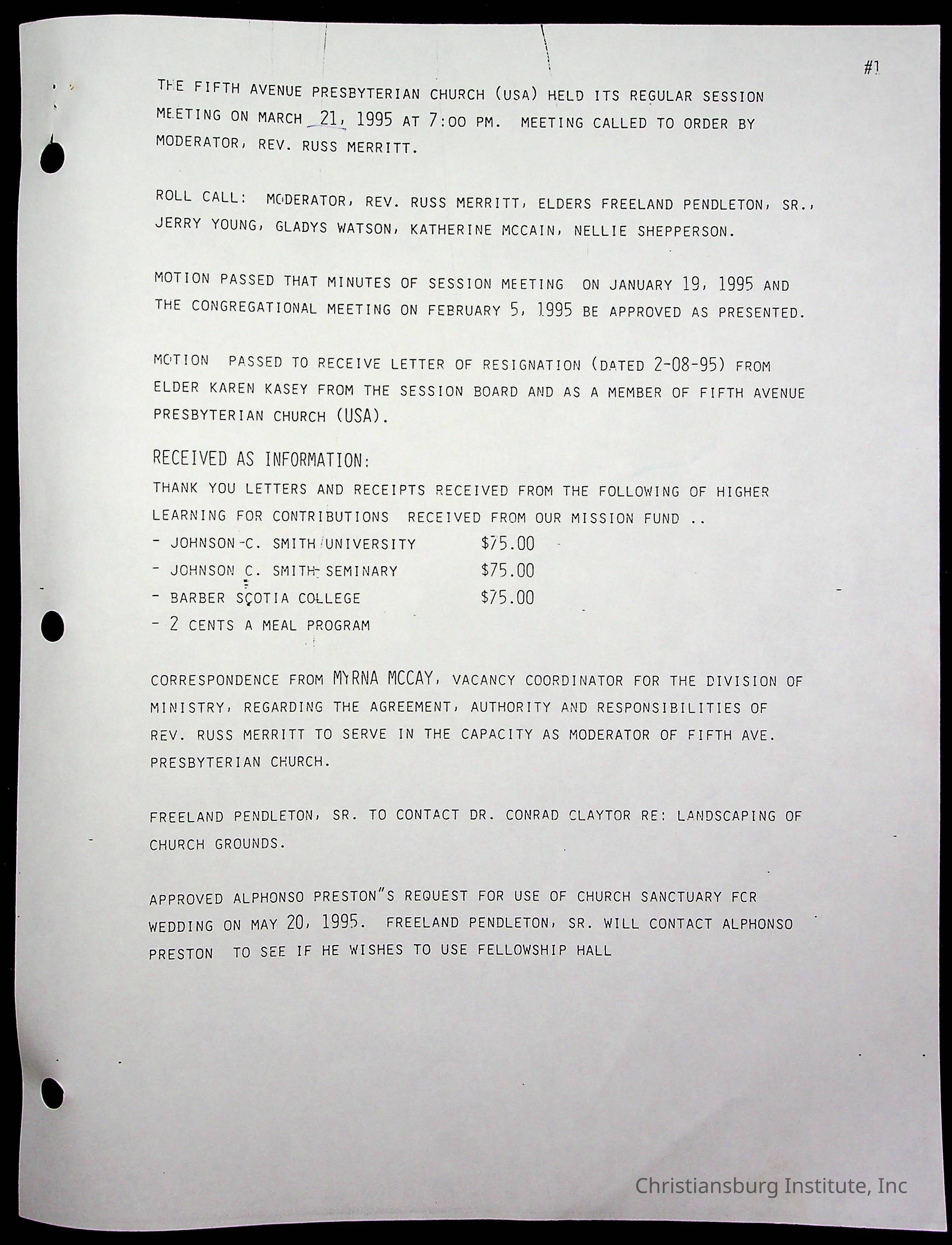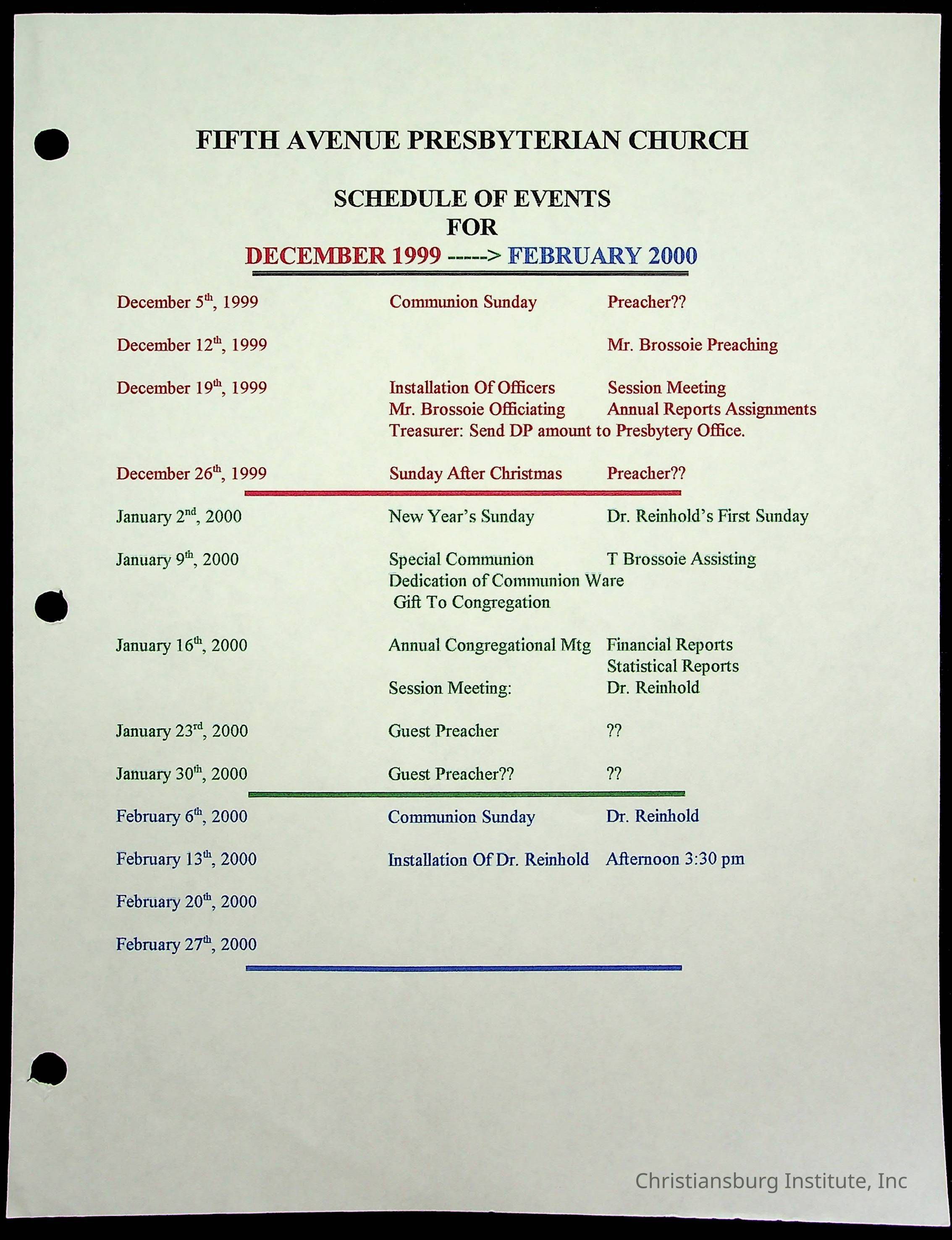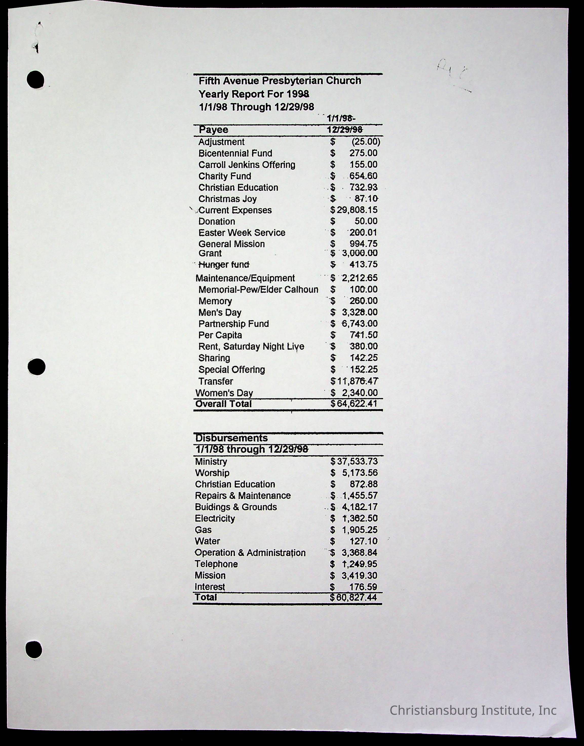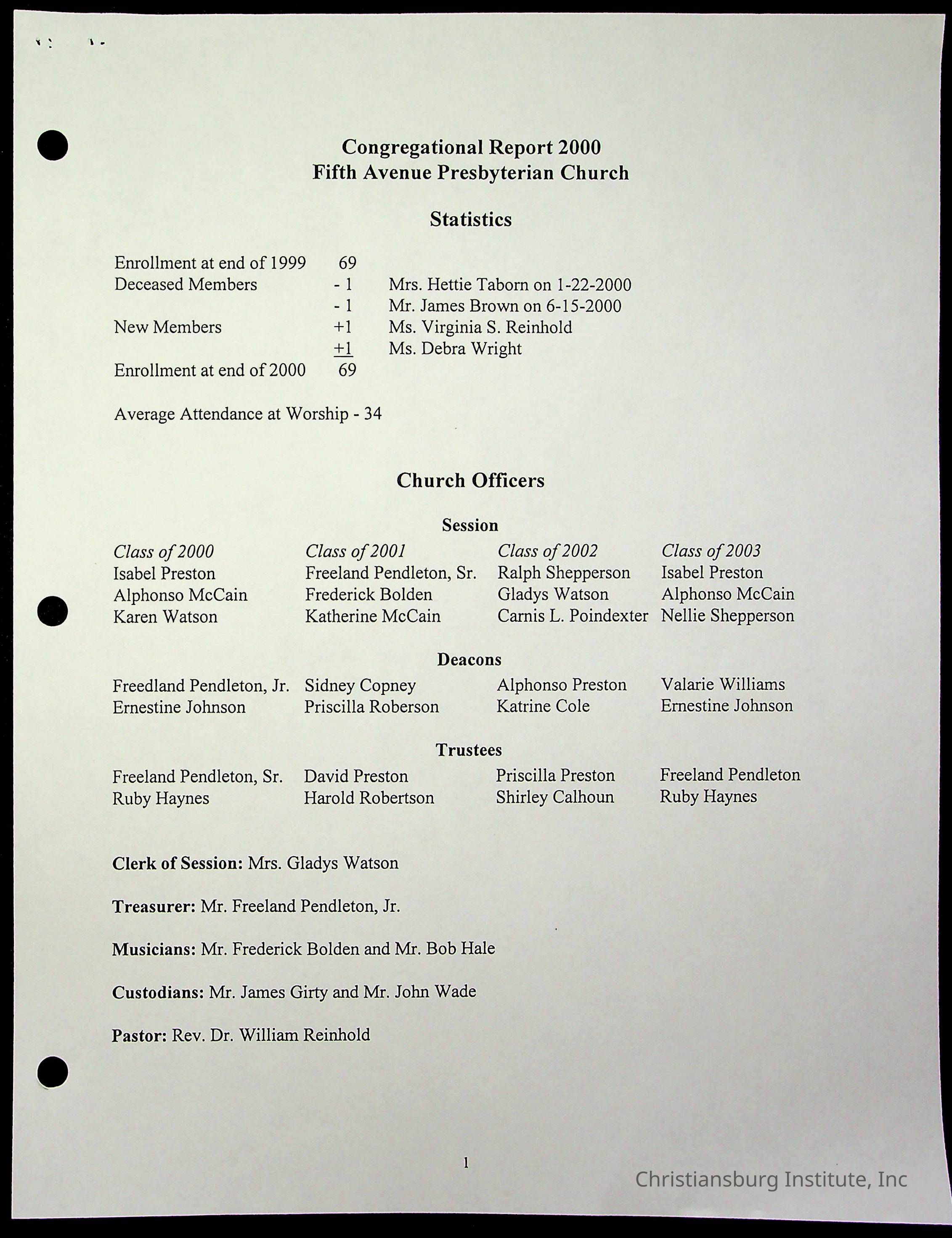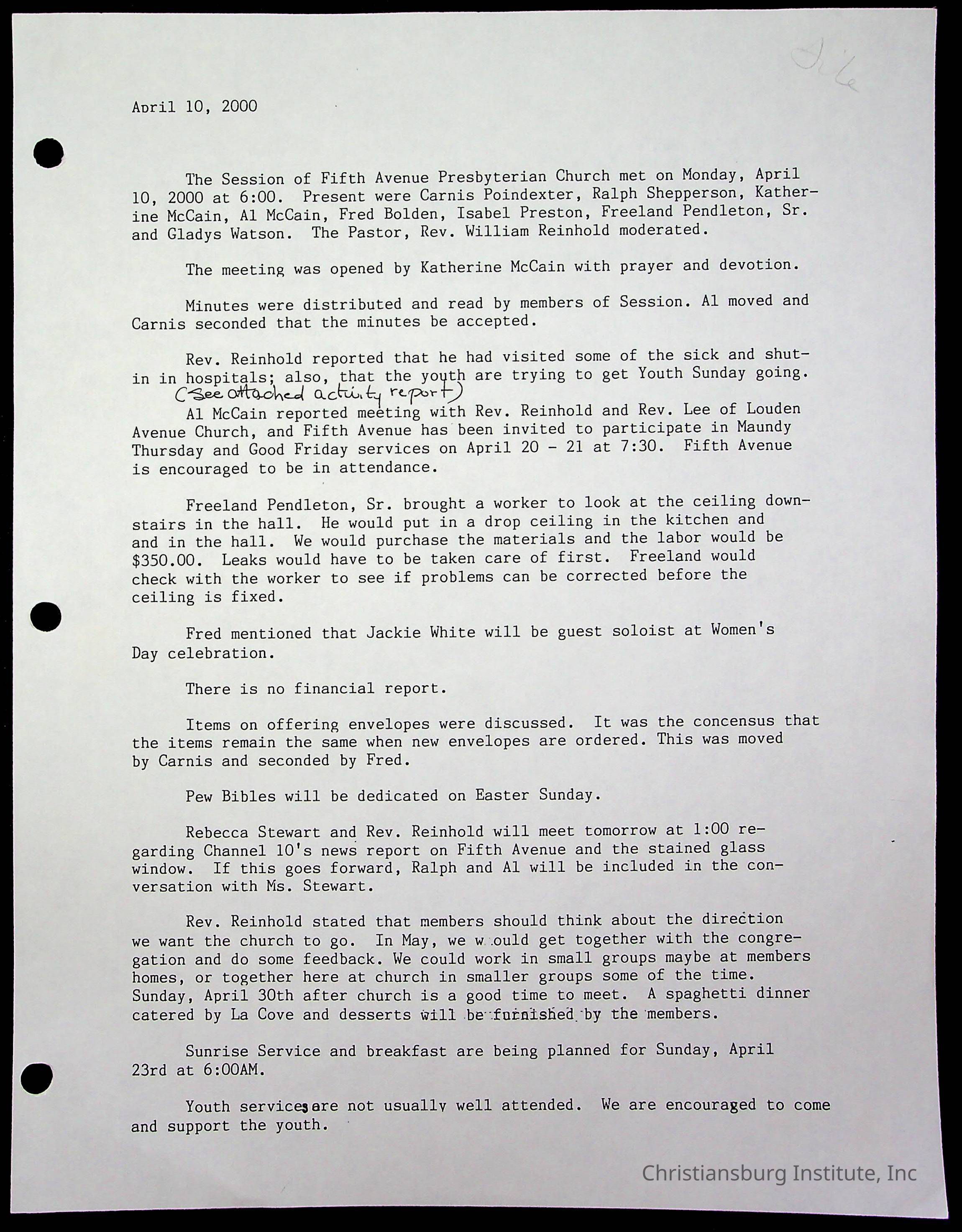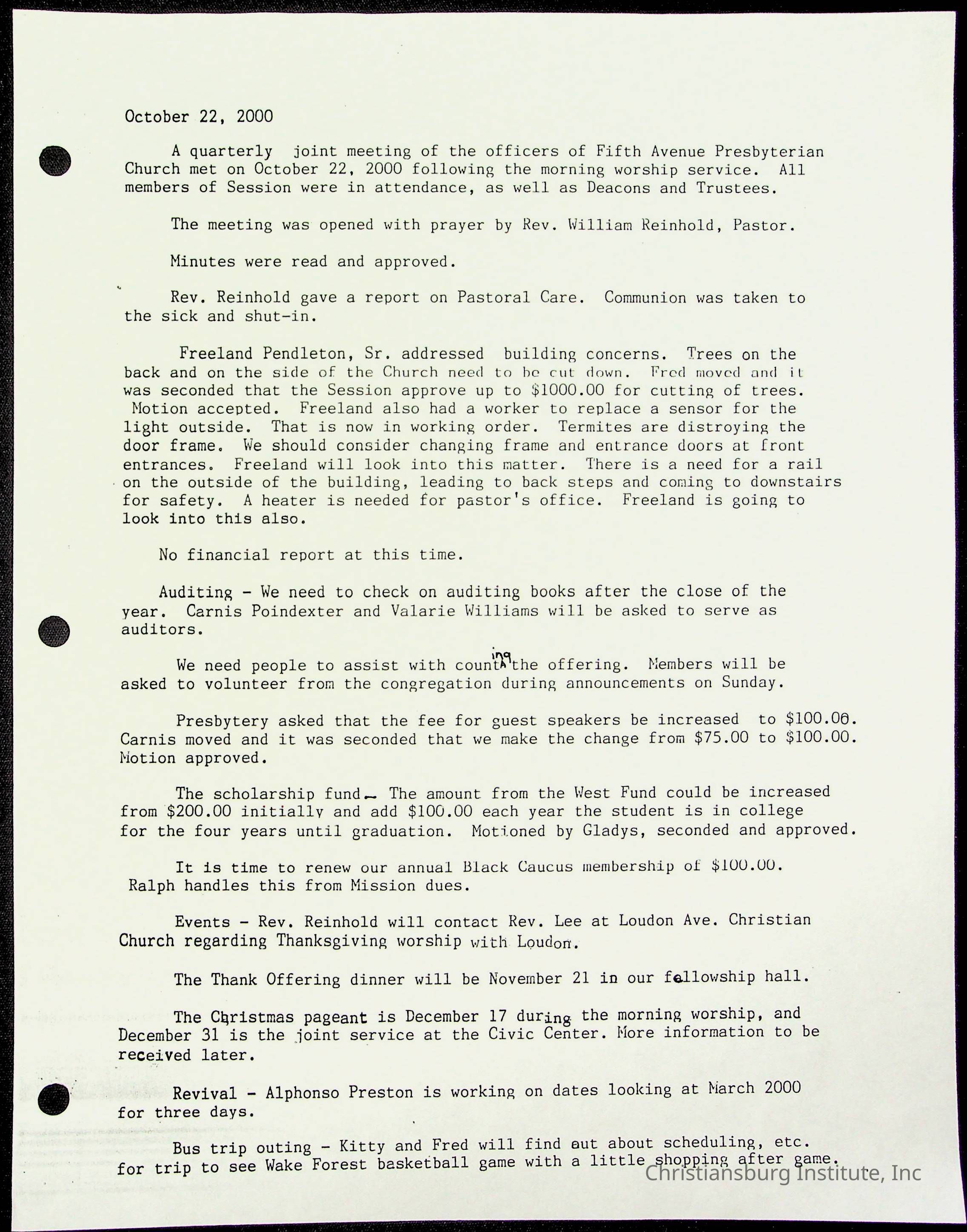 Copyright has been assigned to Christiansburg Institute Museum & Archives by Fifth Avenue Presbyterian Church. For permission to publish materials created by the donor, contact CIMA@christiansburginstitute.com. Materials not created by Fifth Avenue Presbyterian Church may still be under copyright.