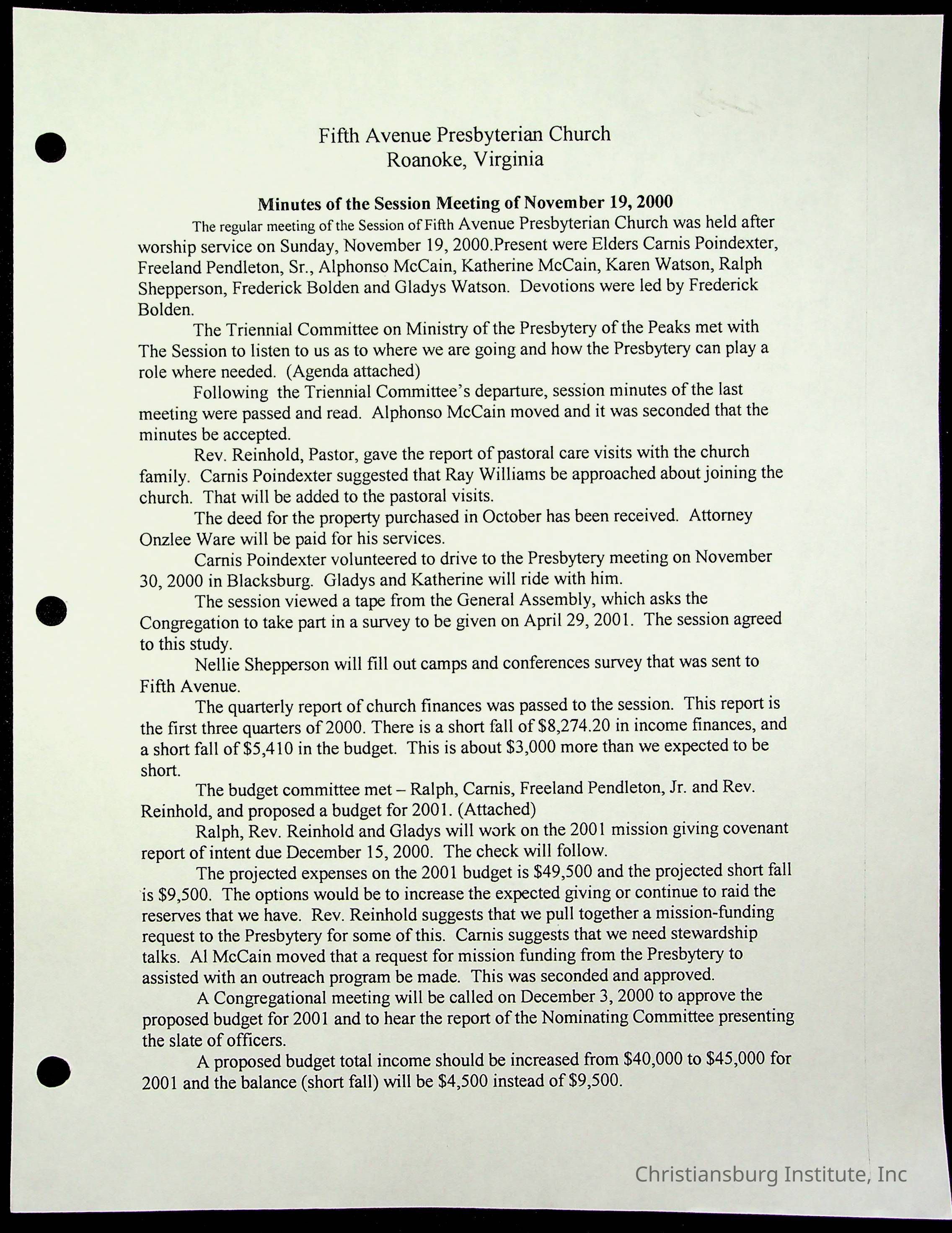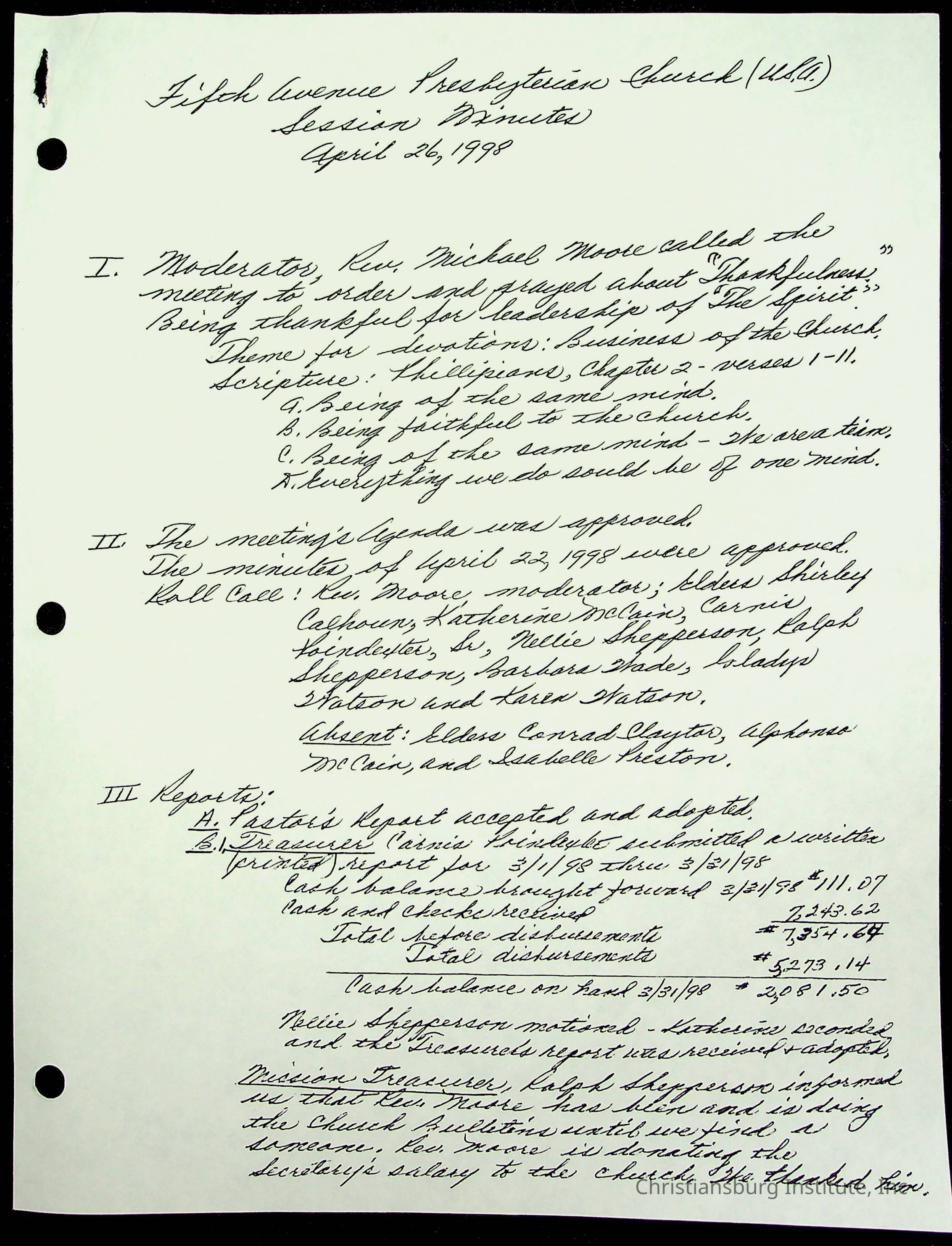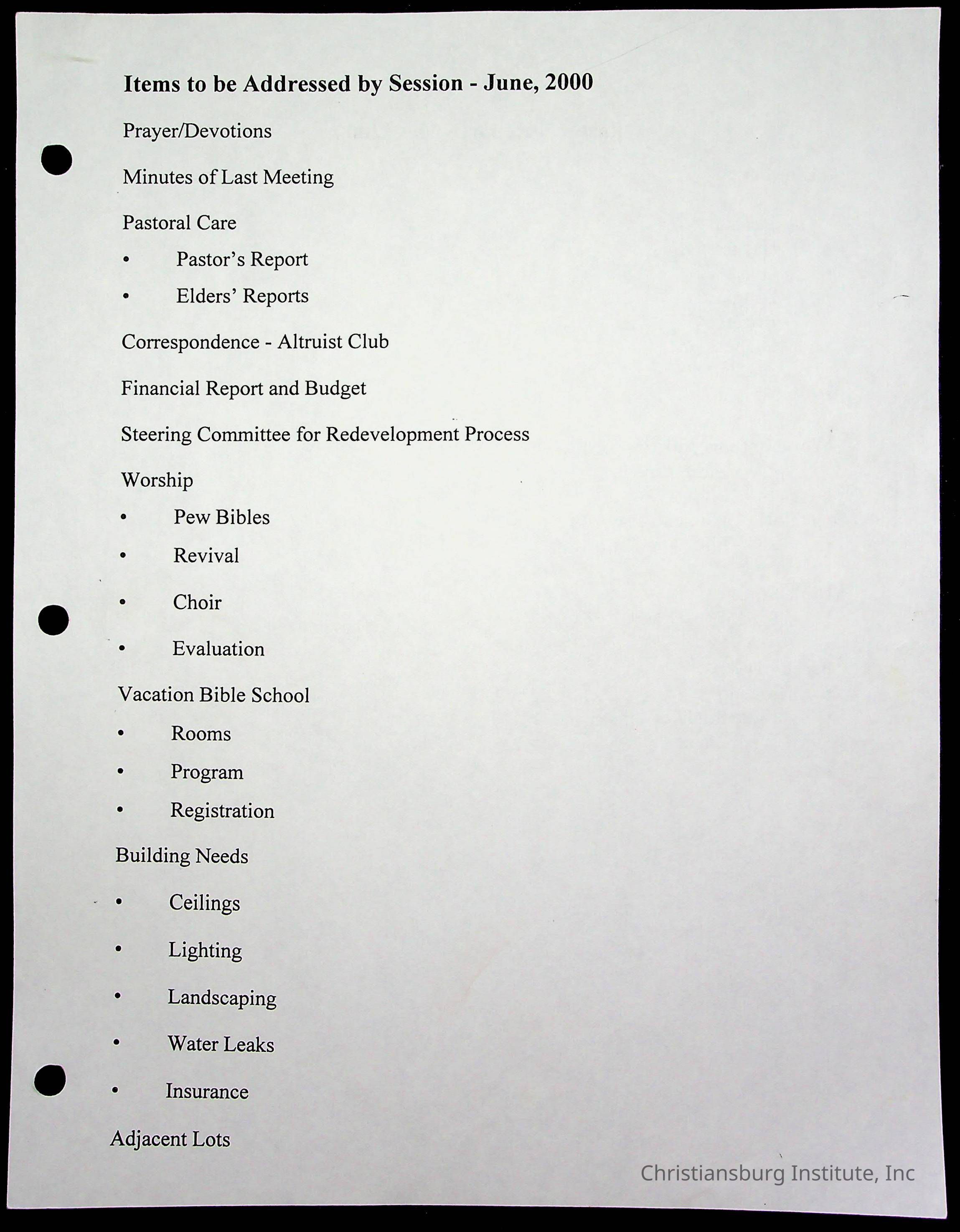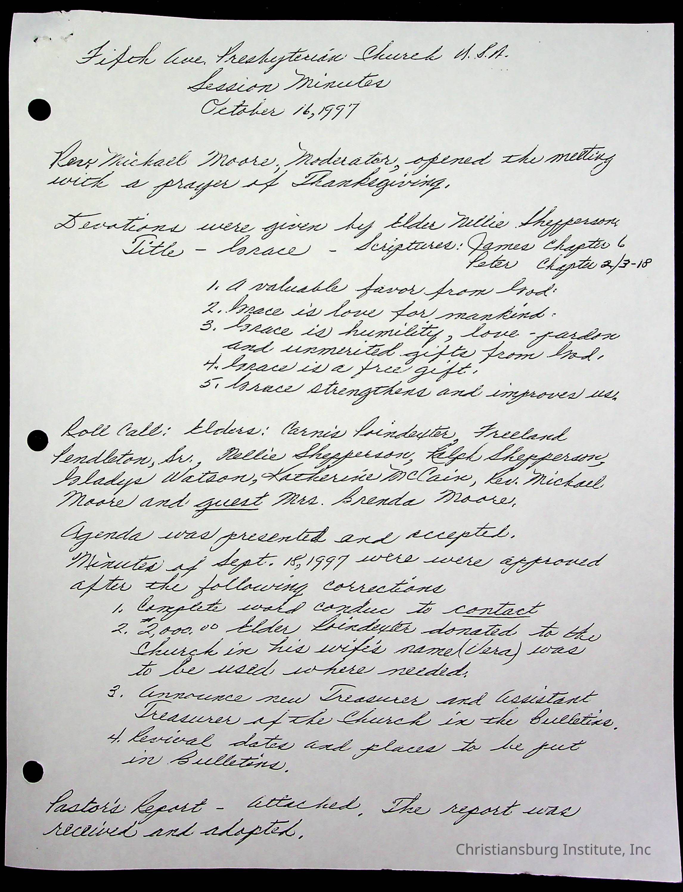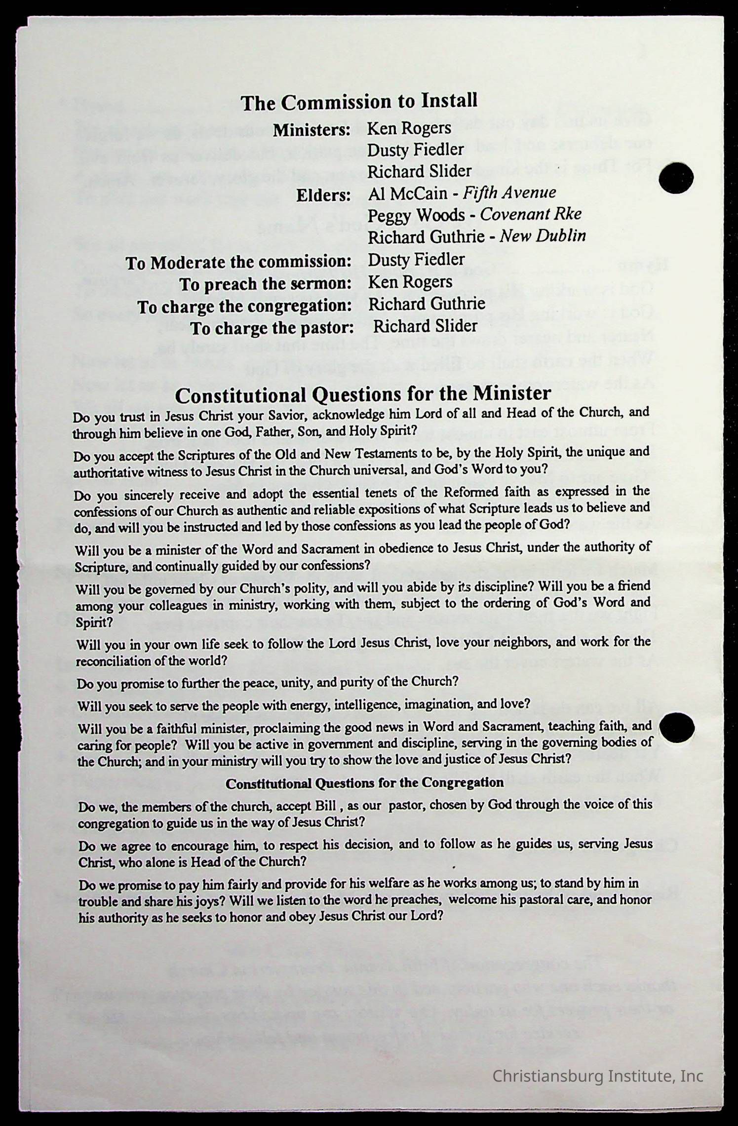 Copyright has been assigned to Christiansburg Institute Museum & Archives by Fifth Avenue Presbyterian Church. For permission to publish materials created by the donor, contact CIMA@christiansburginstitute.com. Materials not created by Fifth Avenue Presbyterian Church may still be under copyright.