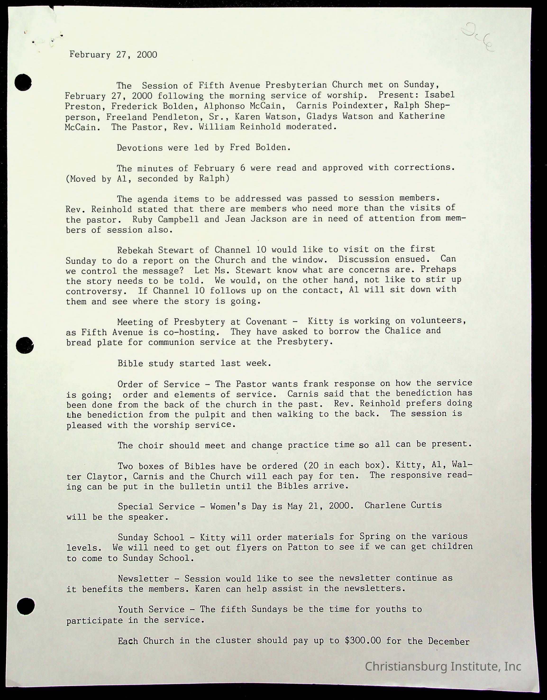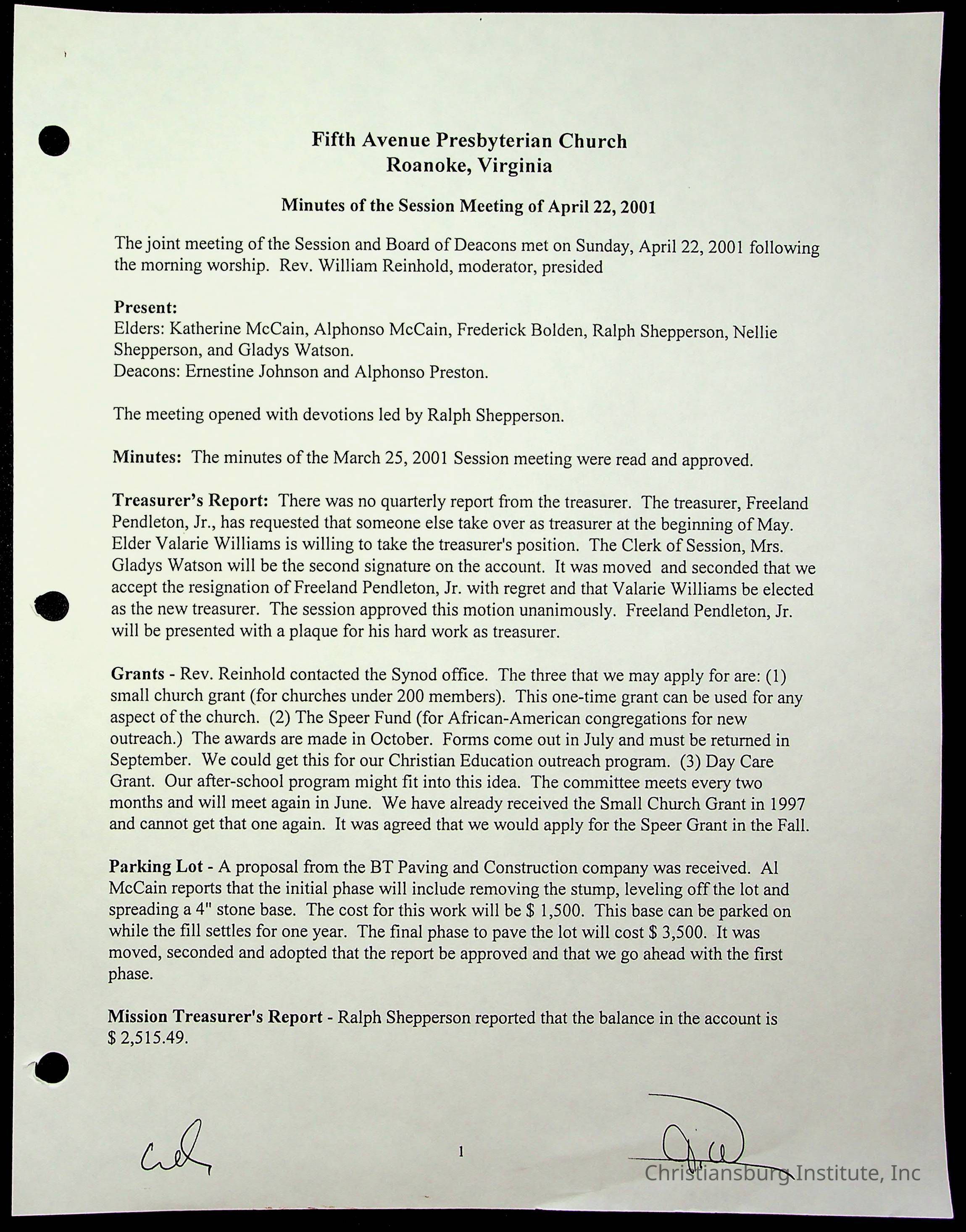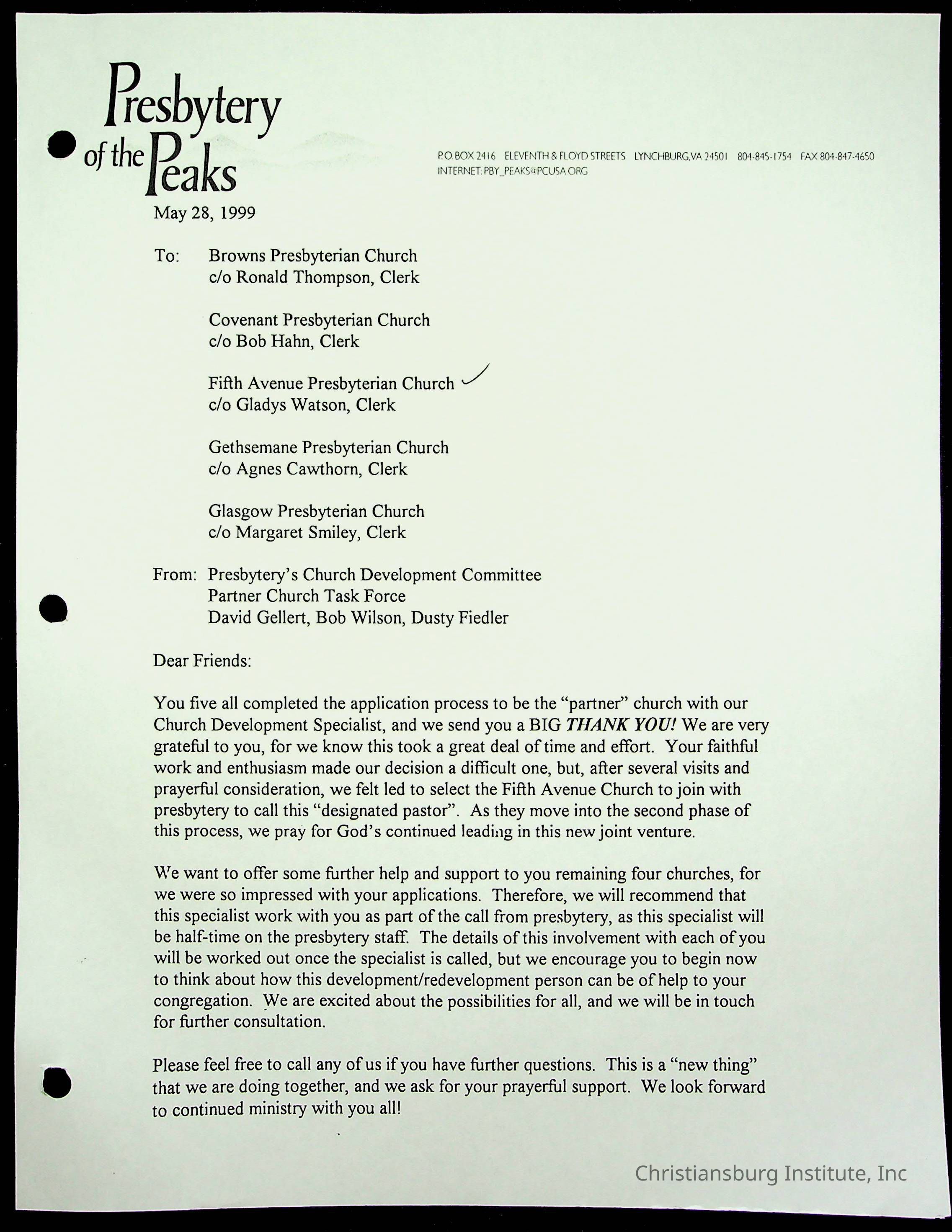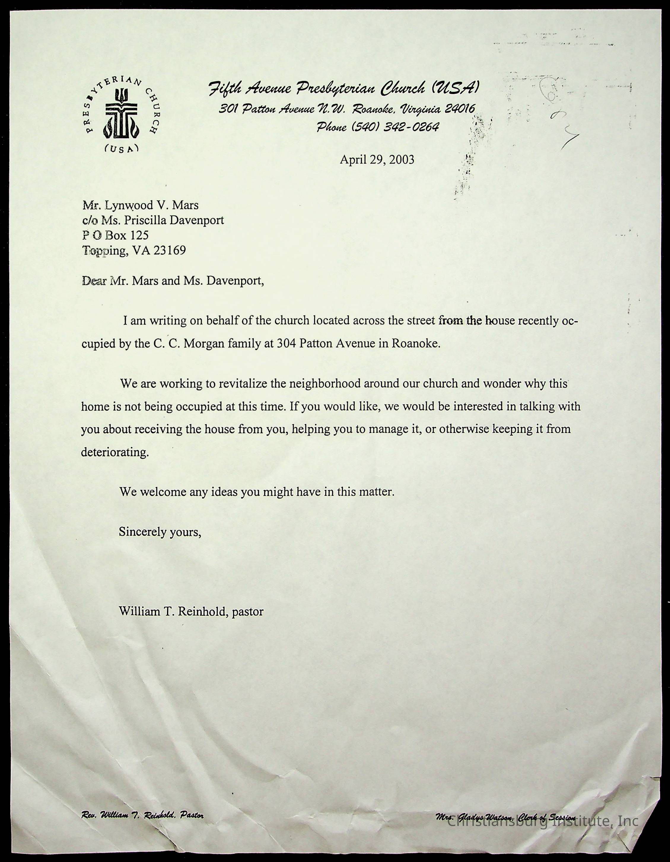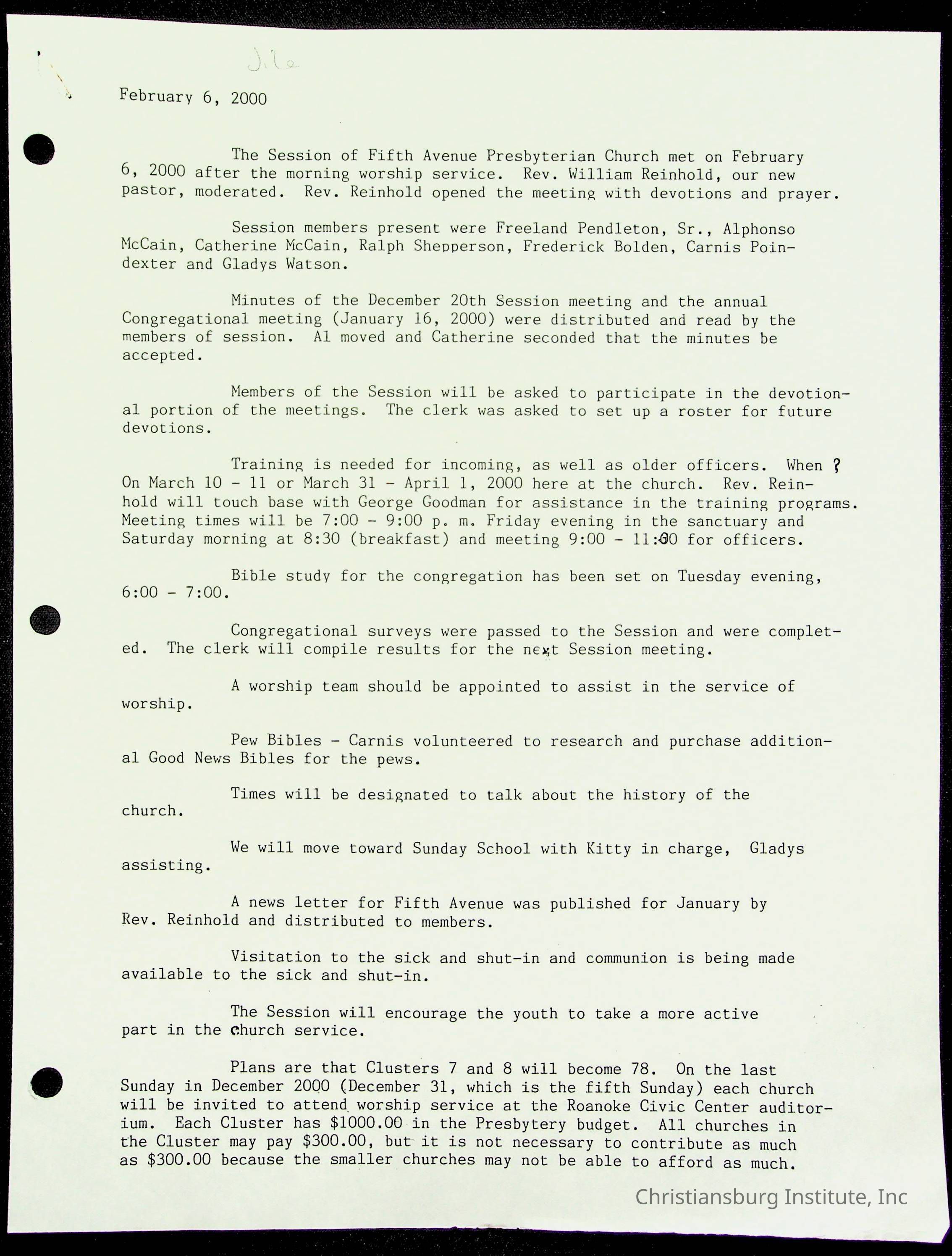 Copyright has been assigned to Christiansburg Institute Museum & Archives by Fifth Avenue Presbyterian Church. For permission to publish materials created by the donor, contact CIMA@christiansburginstitute.com. Materials not created by Fifth Avenue Presbyterian Church may still be under copyright.