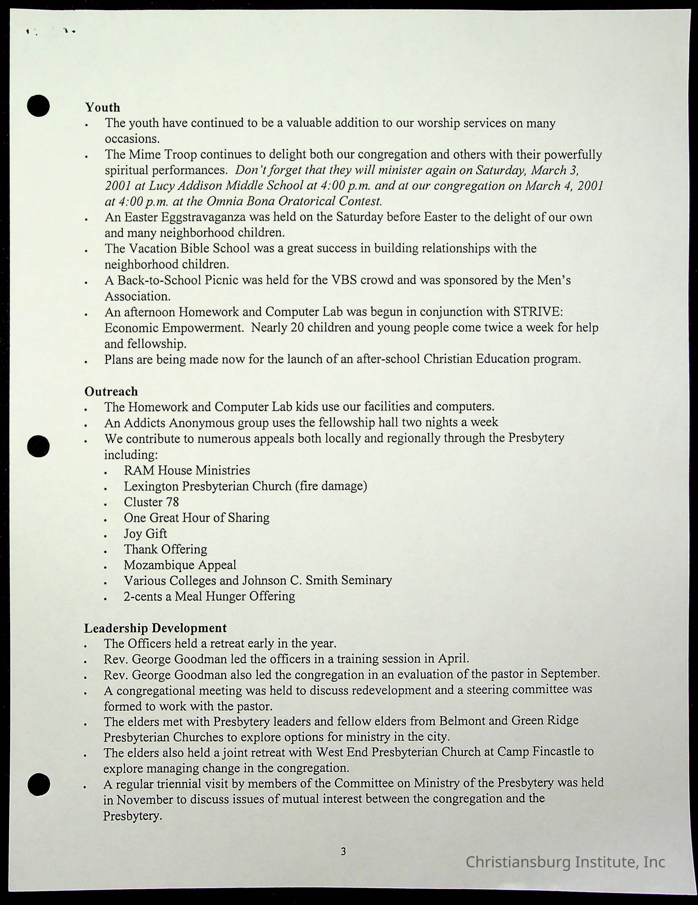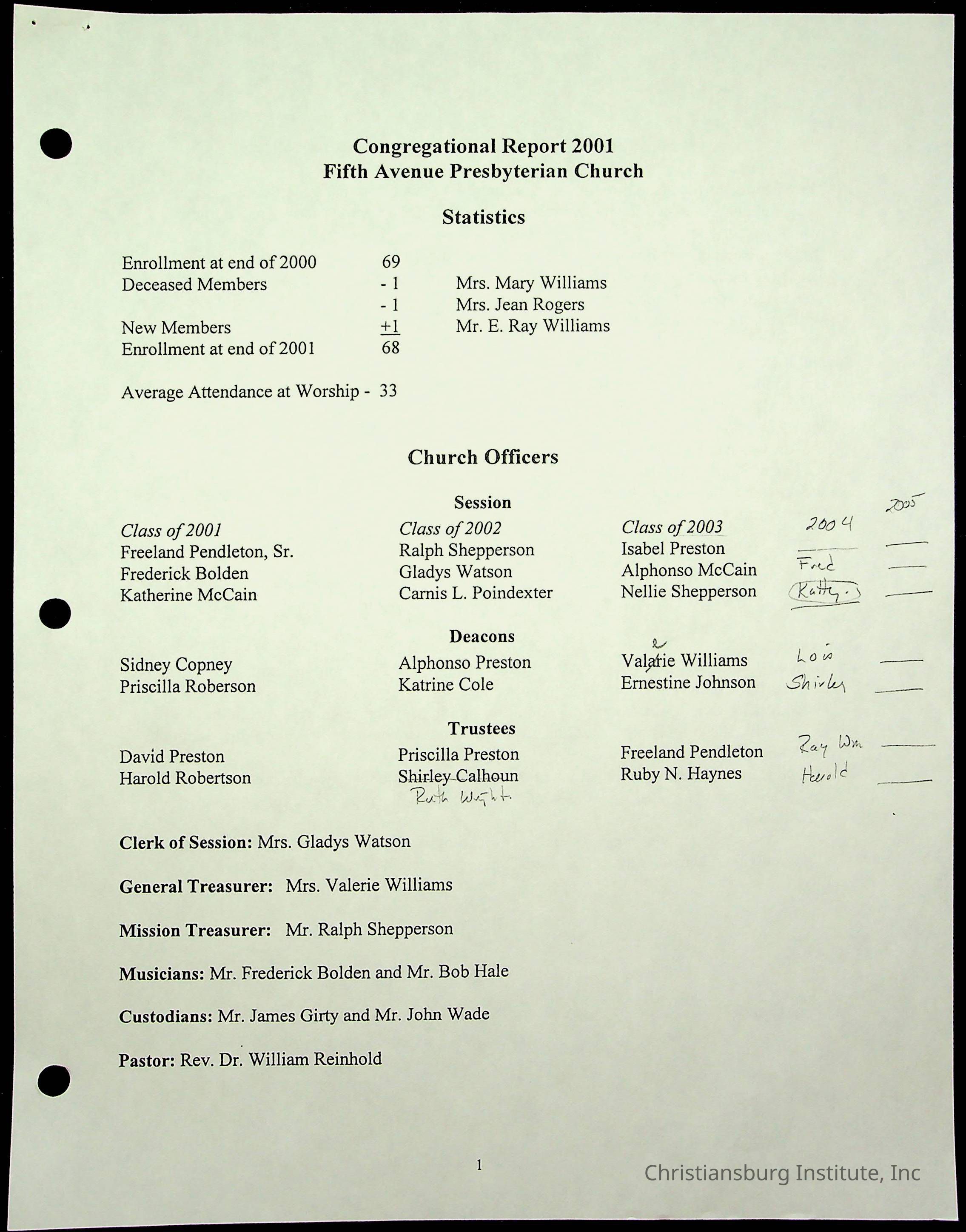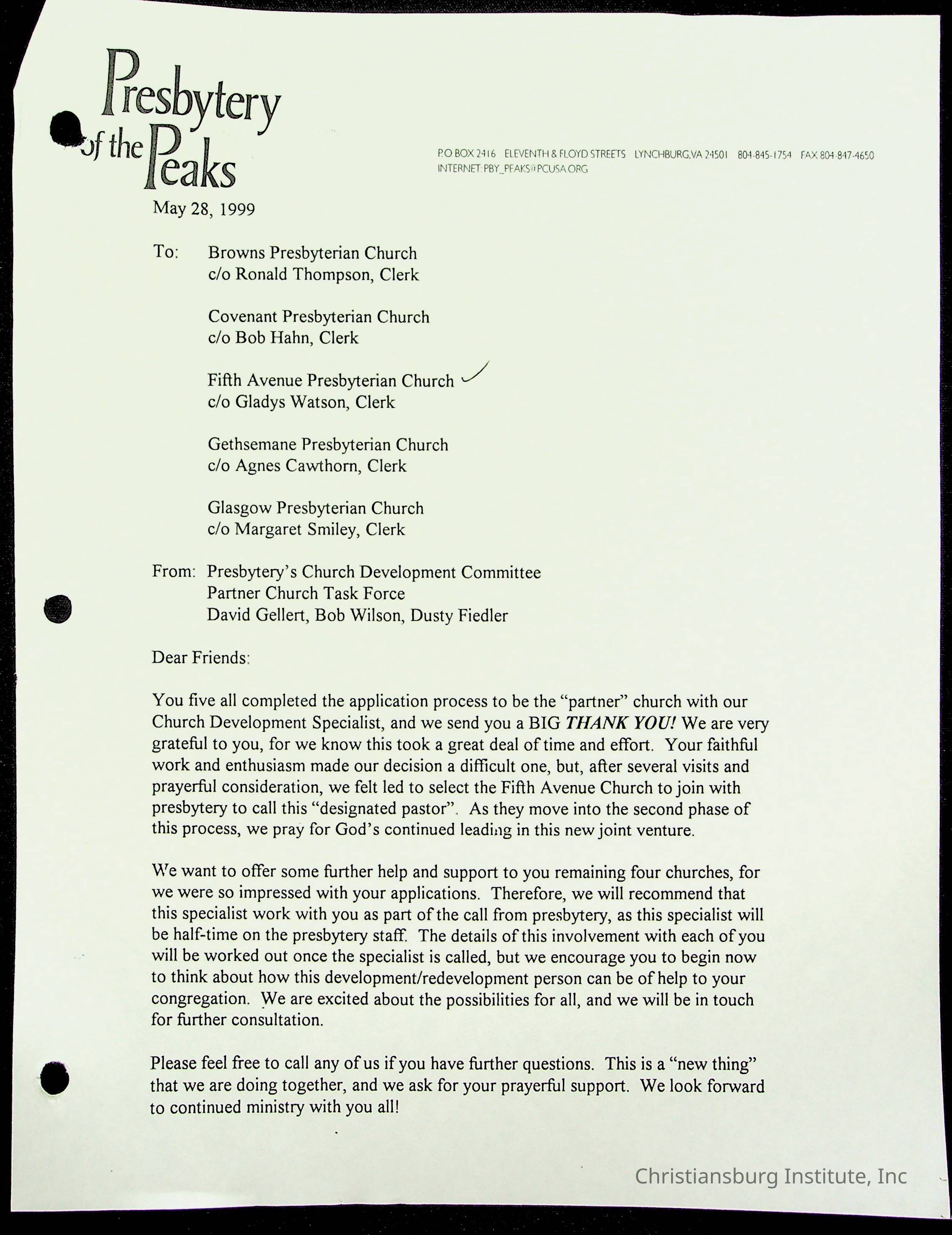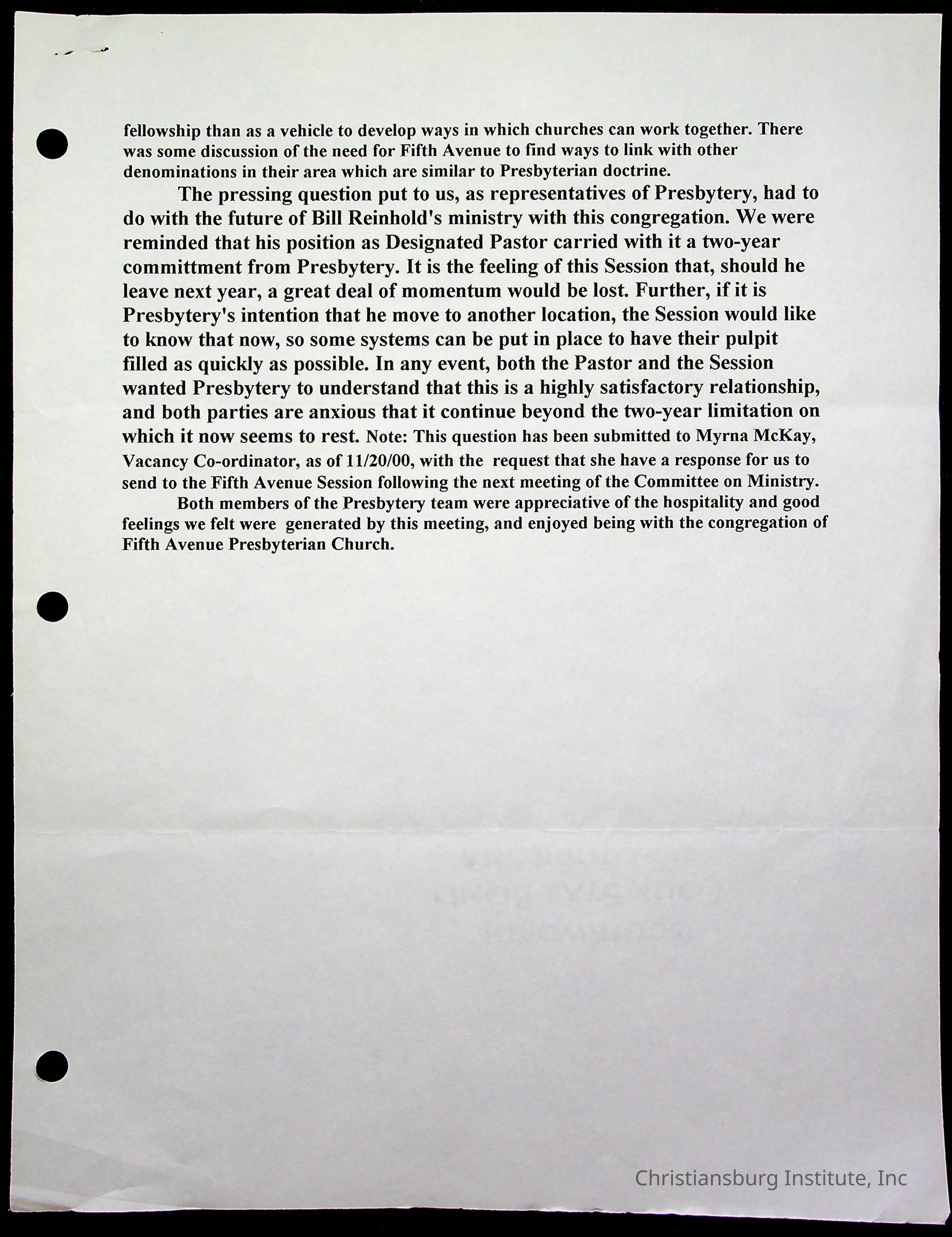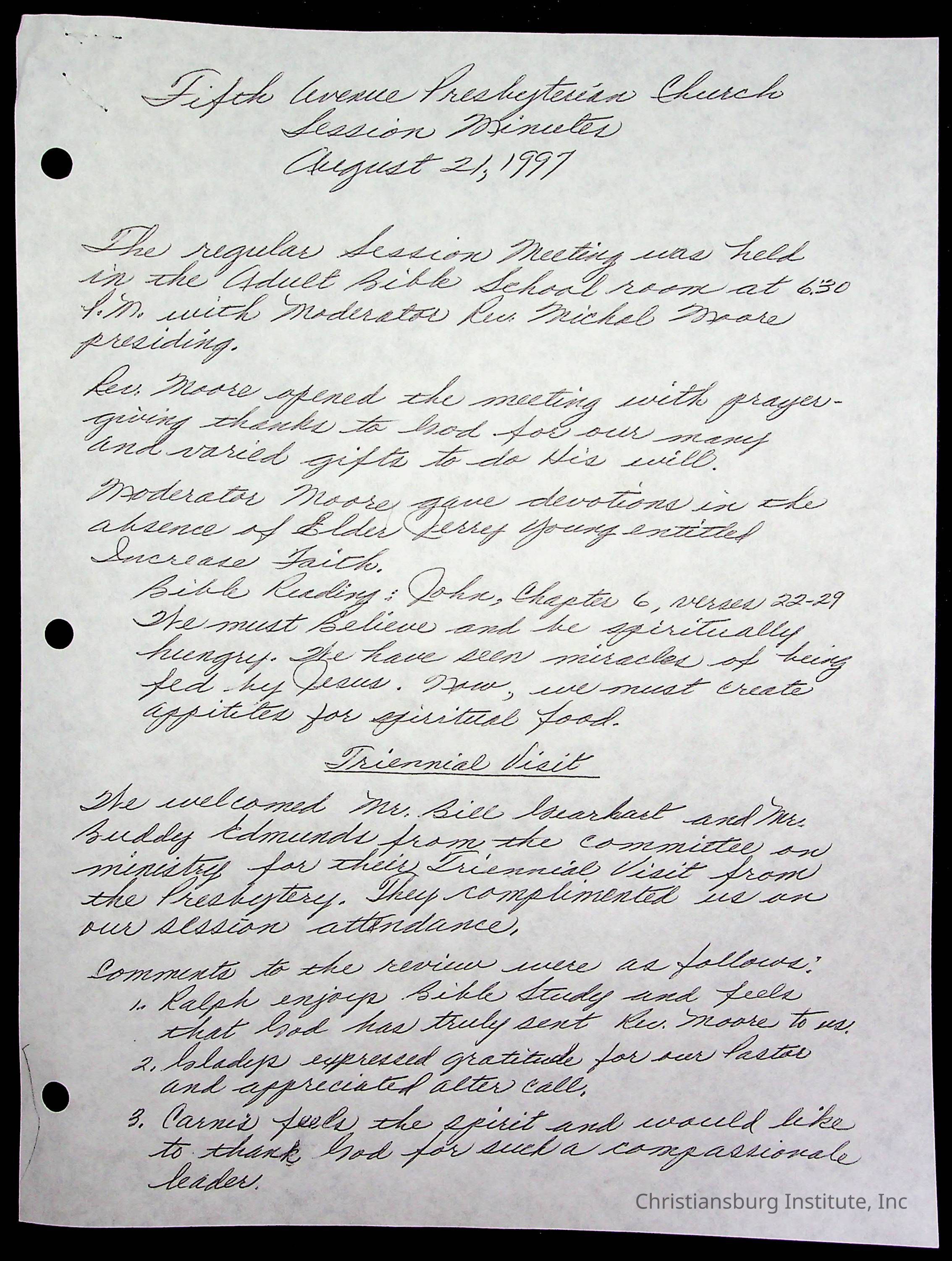Copyright has been assigned to Christiansburg Institute Museum & Archives by Fifth Avenue Presbyterian Church. For permission to publish materials created by the donor, contact CIMA@christiansburginstitute.com. Materials not created by Fifth Avenue Presbyterian Church may still be under copyright.