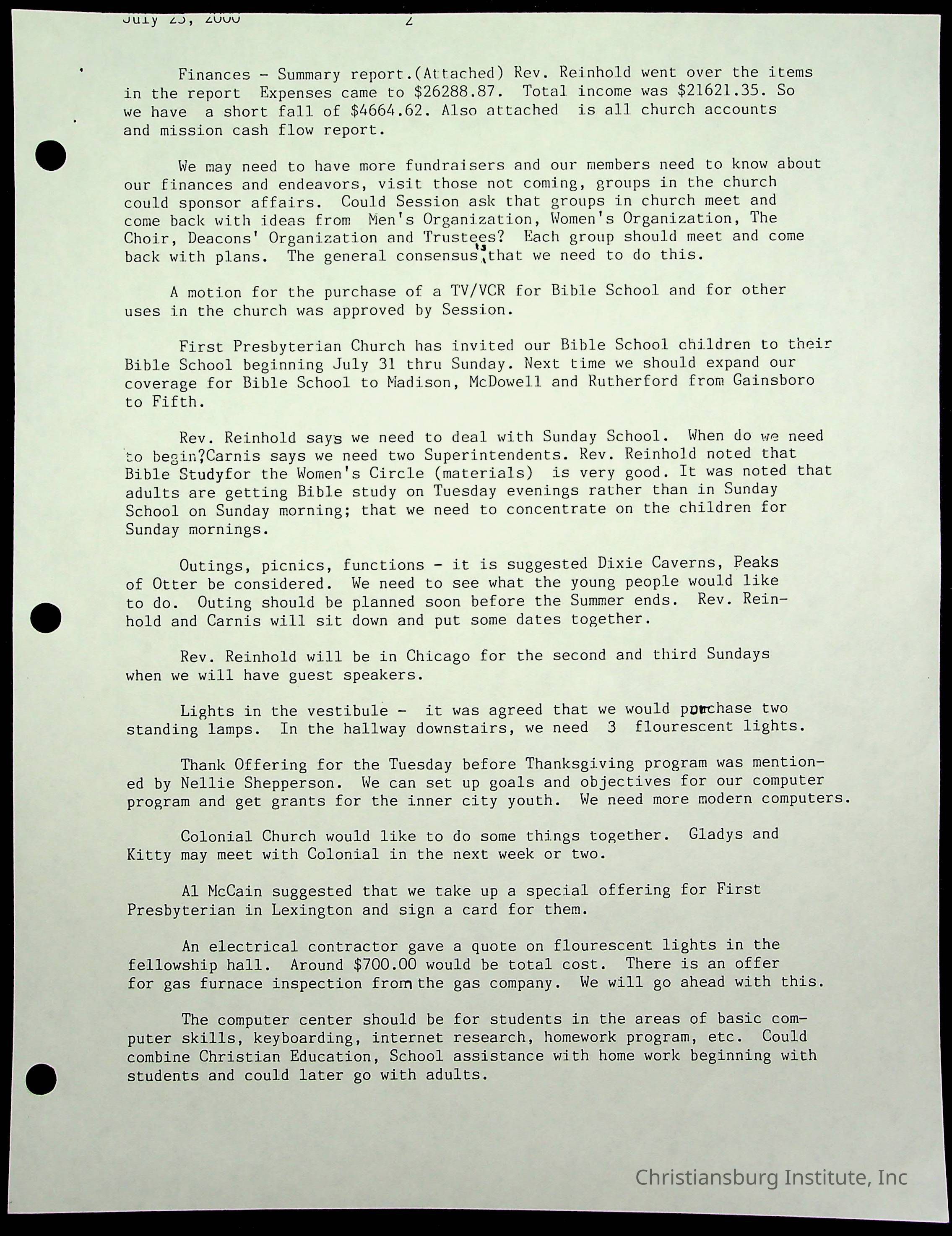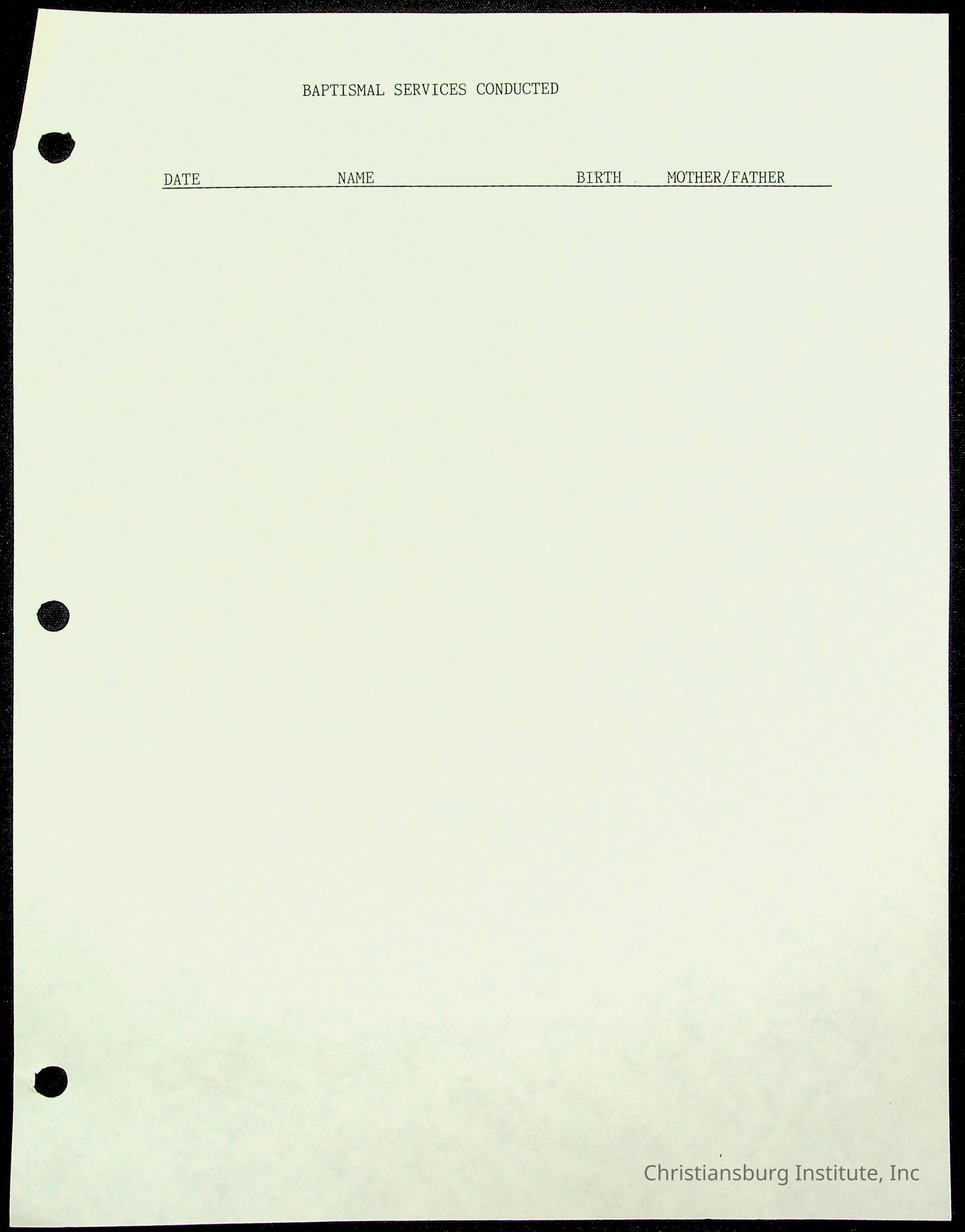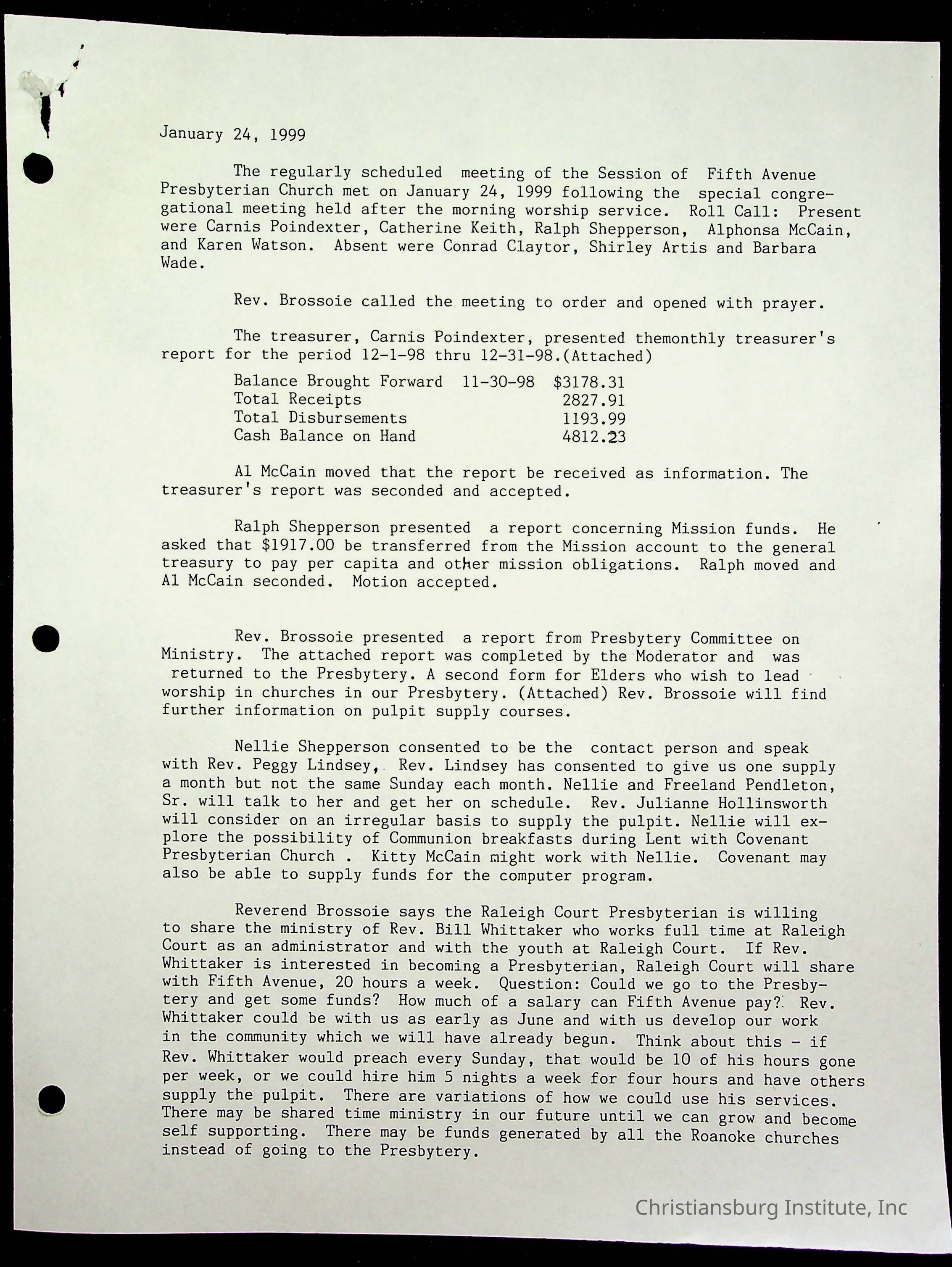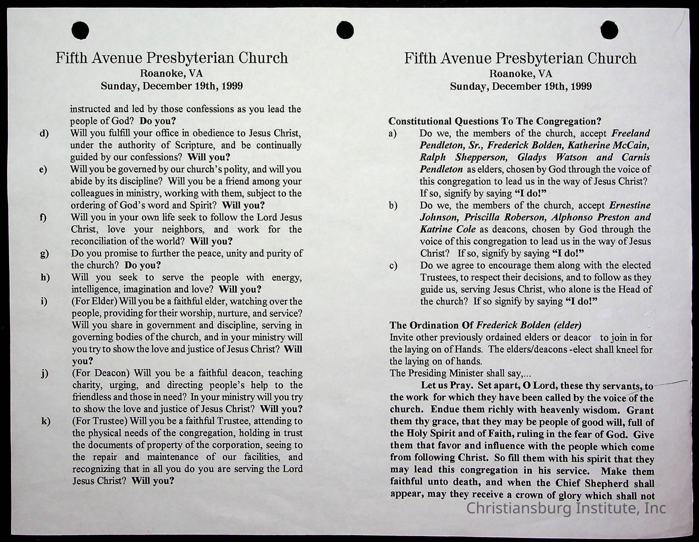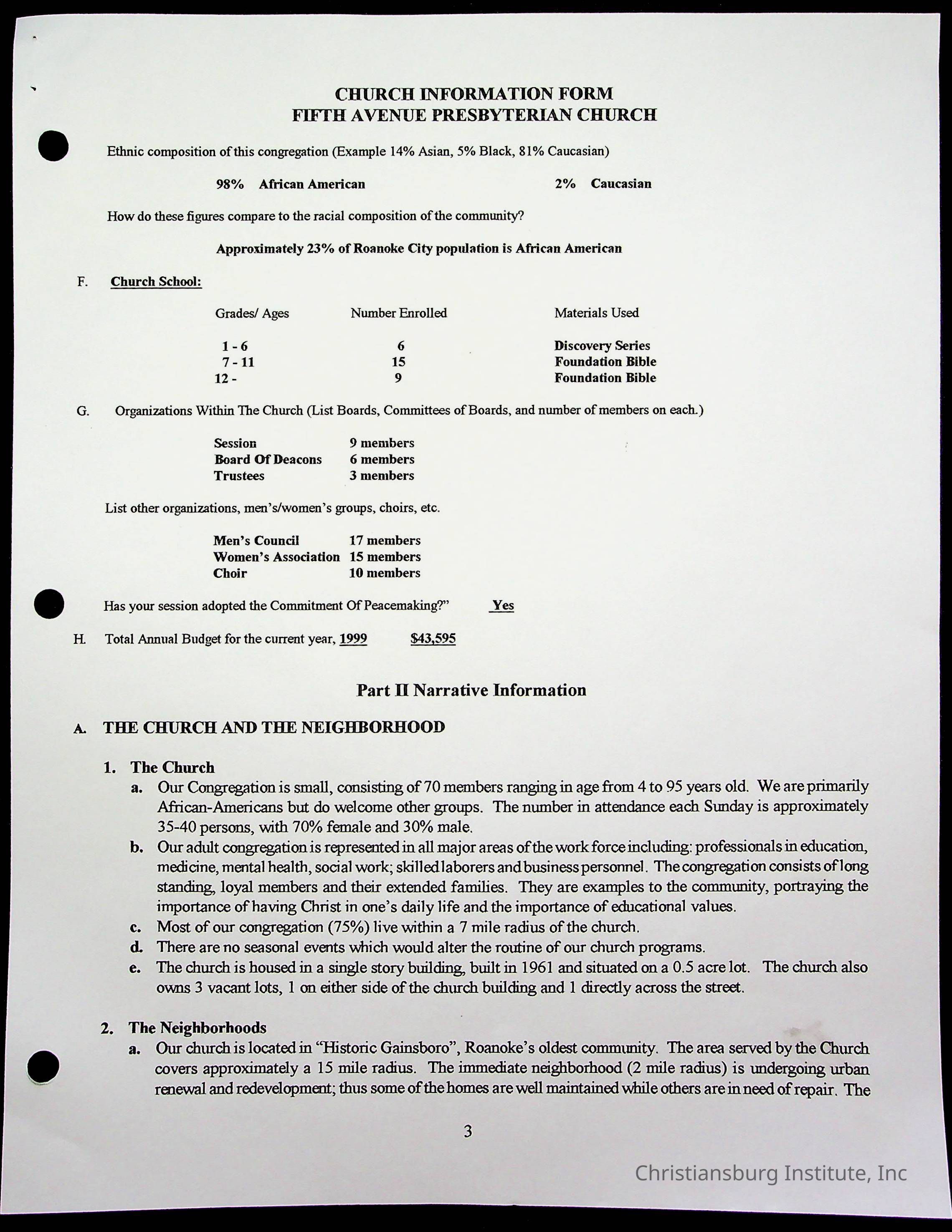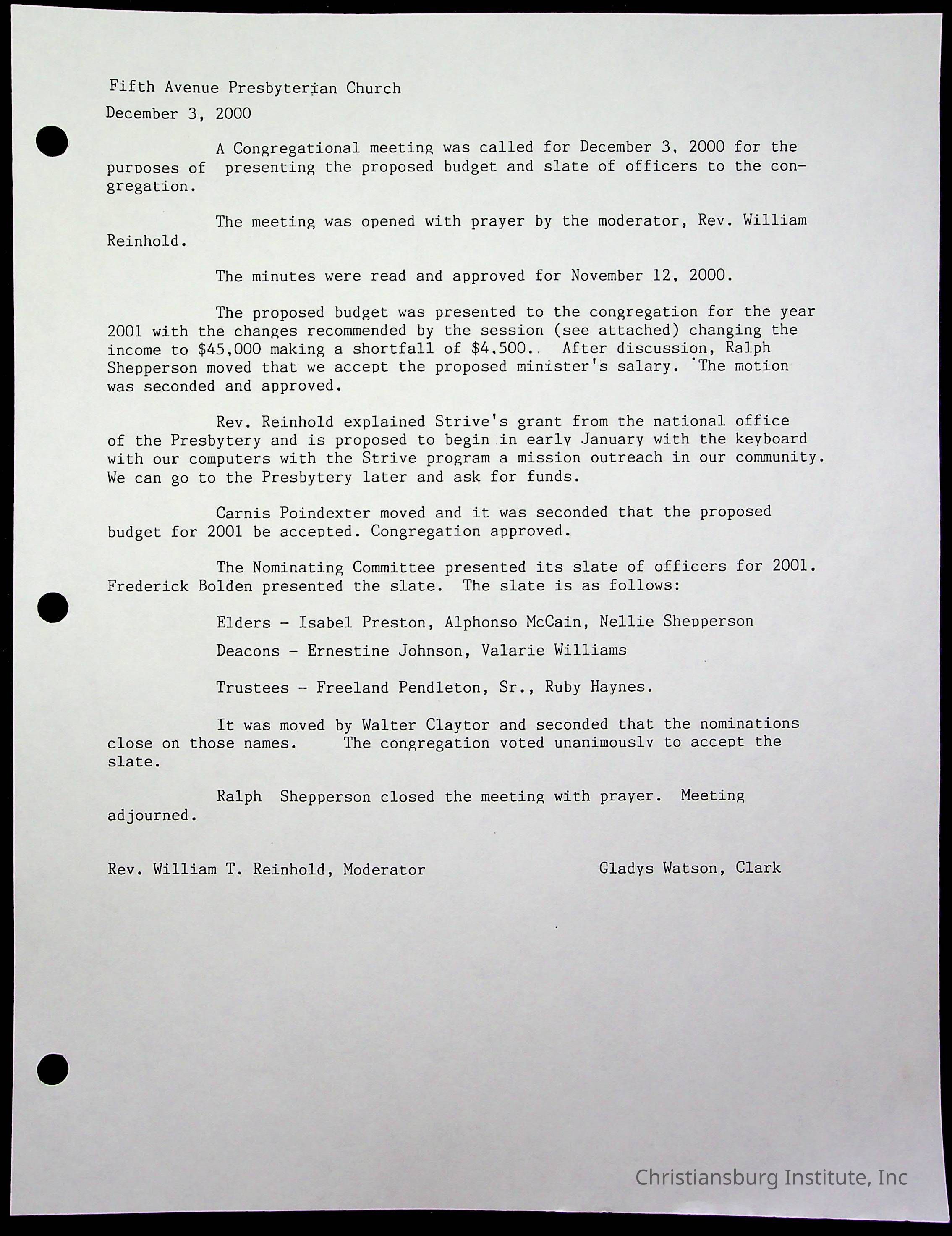 Copyright has been assigned to Christiansburg Institute Museum & Archives by Fifth Avenue Presbyterian Church. For permission to publish materials created by the donor, contact CIMA@christiansburginstitute.com. Materials not created by Fifth Avenue Presbyterian Church may still be under copyright.