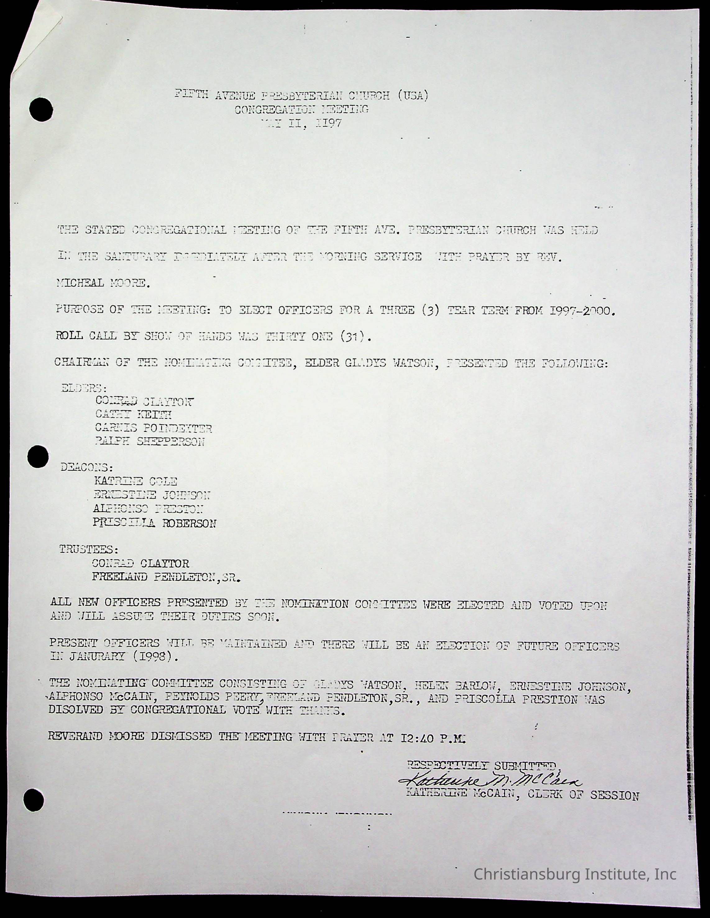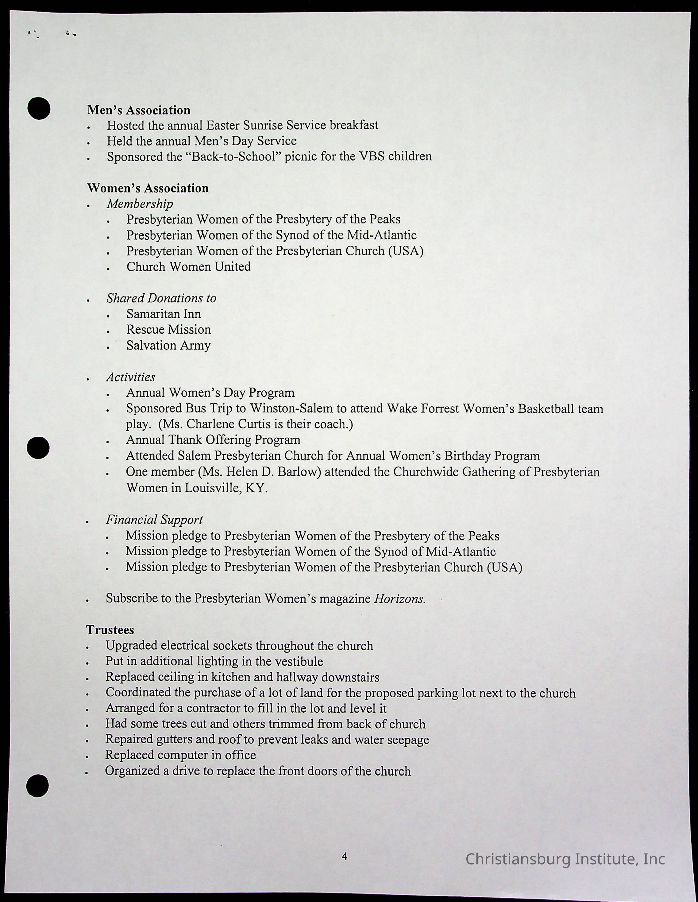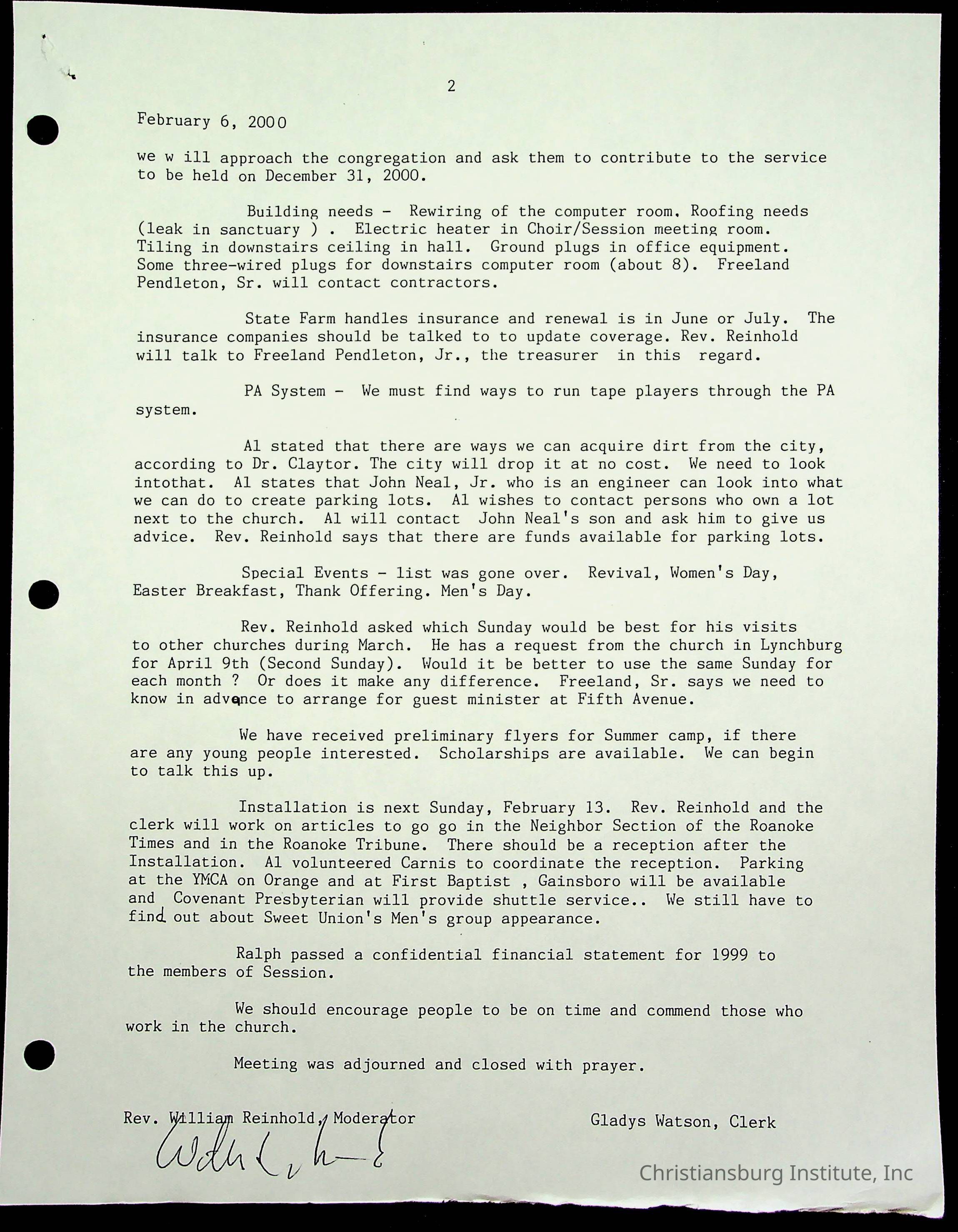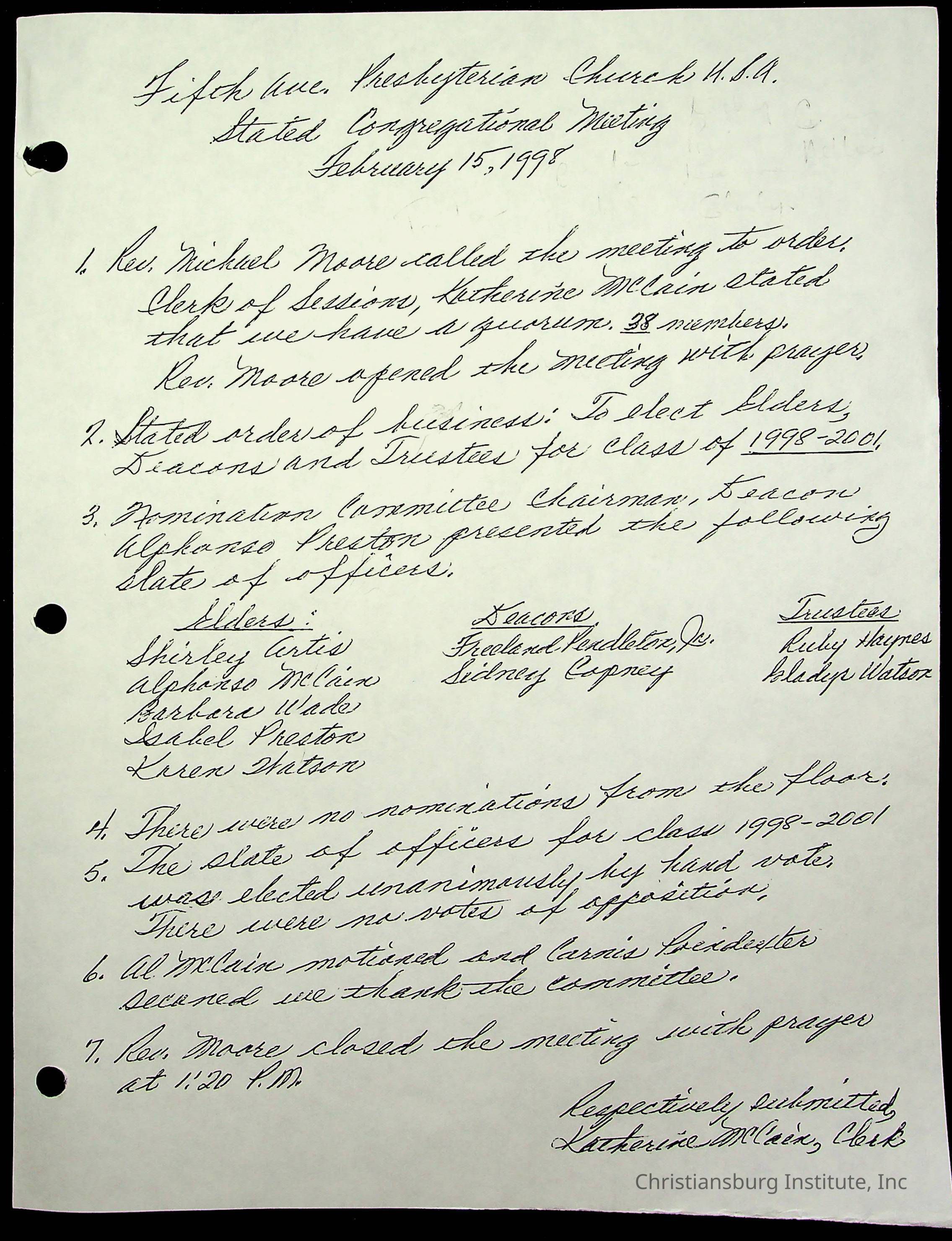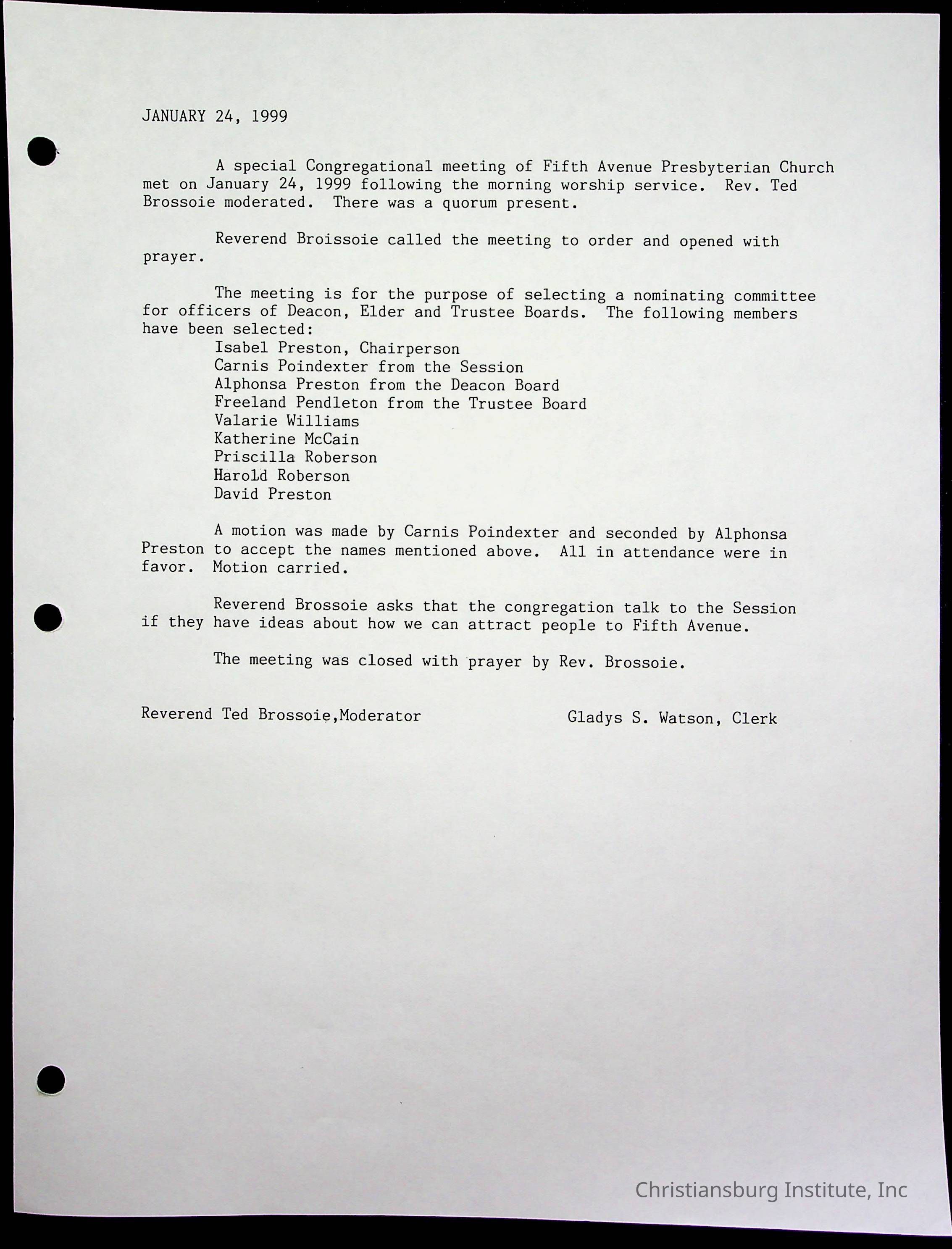 Copyright has been assigned to Christiansburg Institute Museum & Archives by Fifth Avenue Presbyterian Church. For permission to publish materials created by the donor, contact CIMA@christiansburginstitute.com. Materials not created by Fifth Avenue Presbyterian Church may still be under copyright.