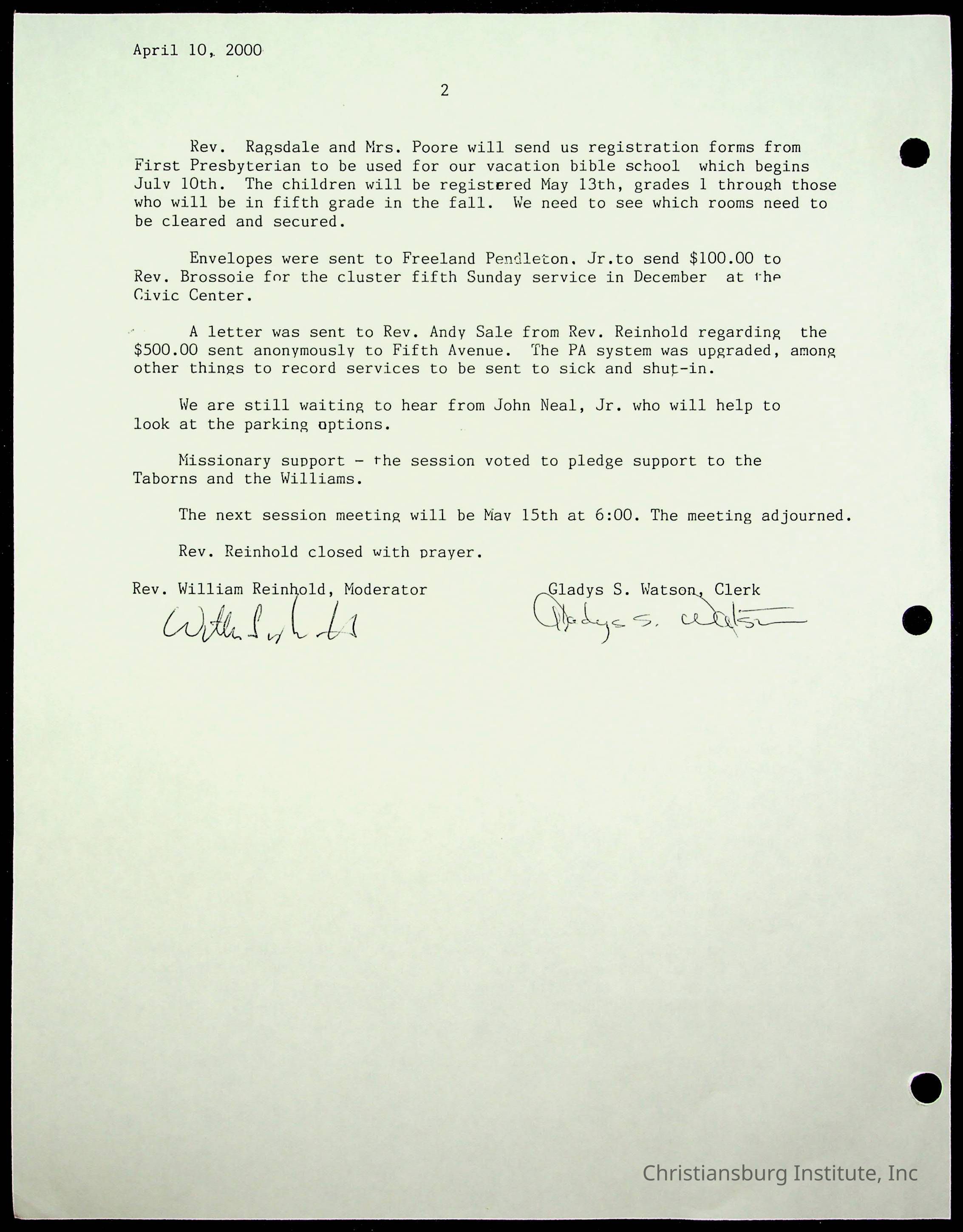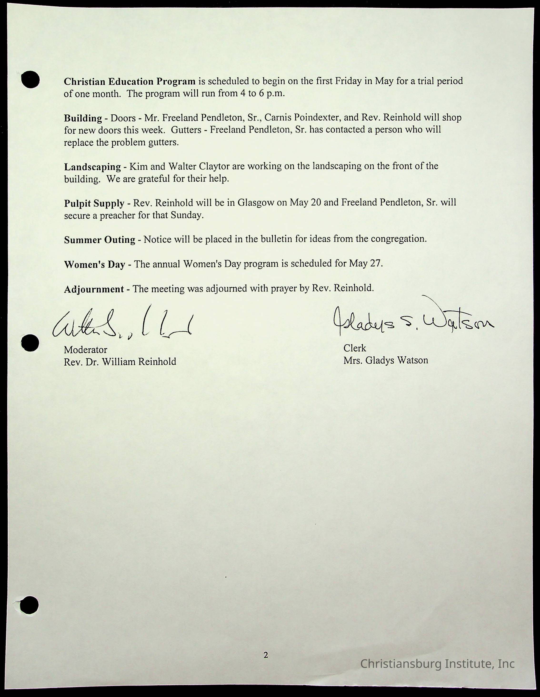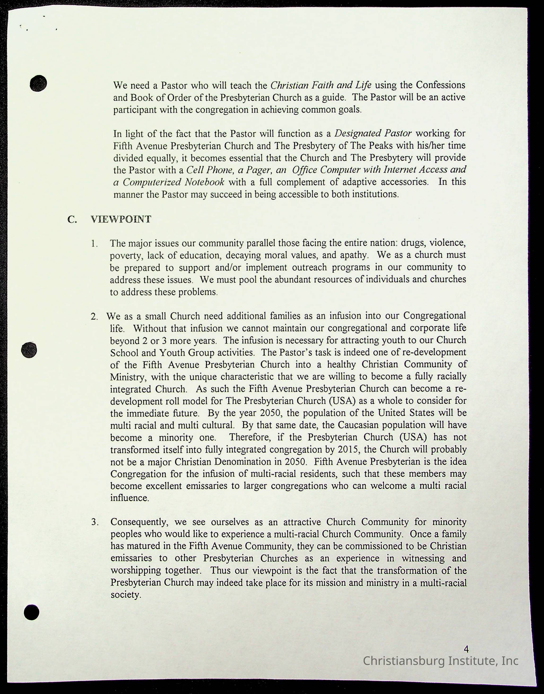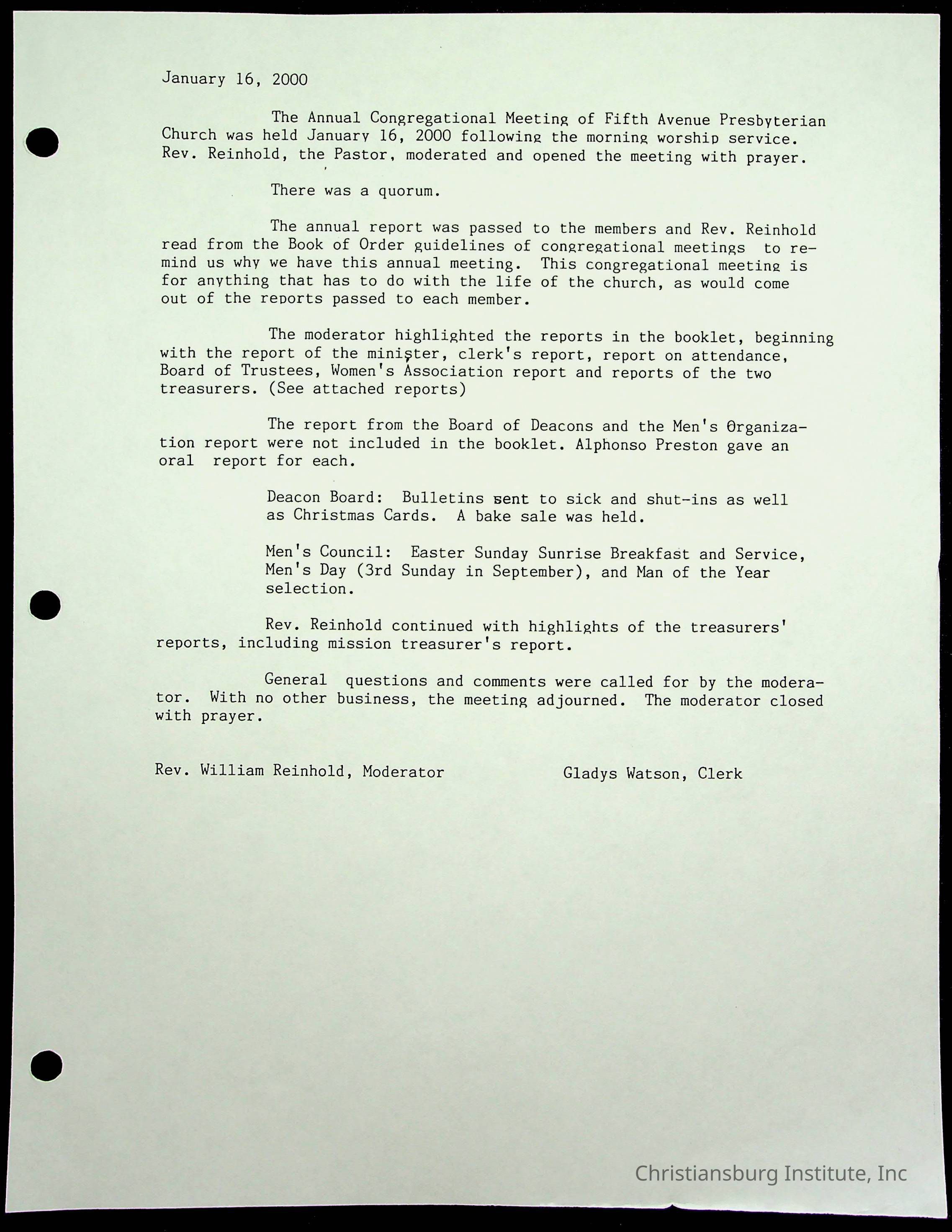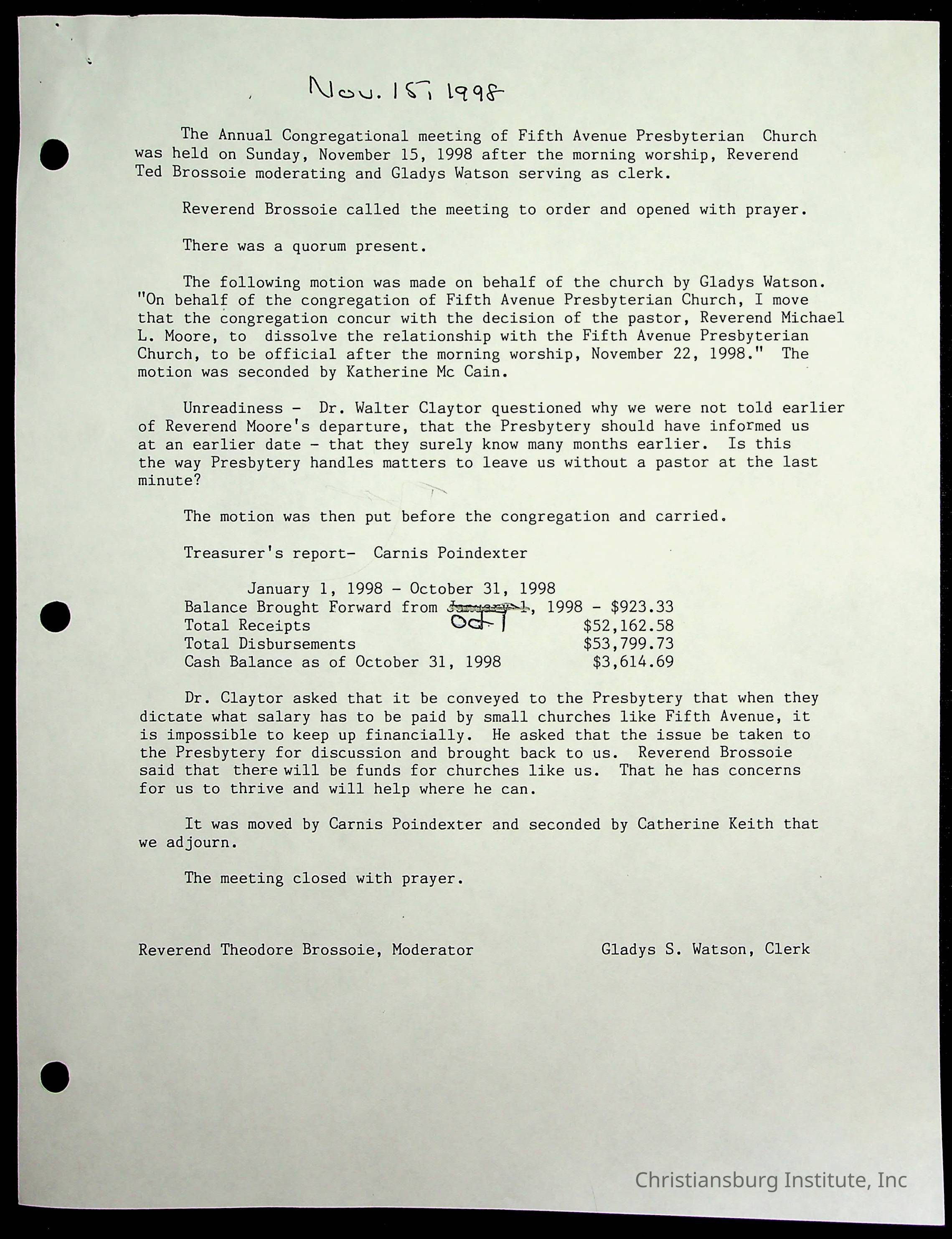 Copyright has been assigned to Christiansburg Institute Museum & Archives by Fifth Avenue Presbyterian Church. For permission to publish materials created by the donor, contact CIMA@christiansburginstitute.com. Materials not created by Fifth Avenue Presbyterian Church may still be under copyright.