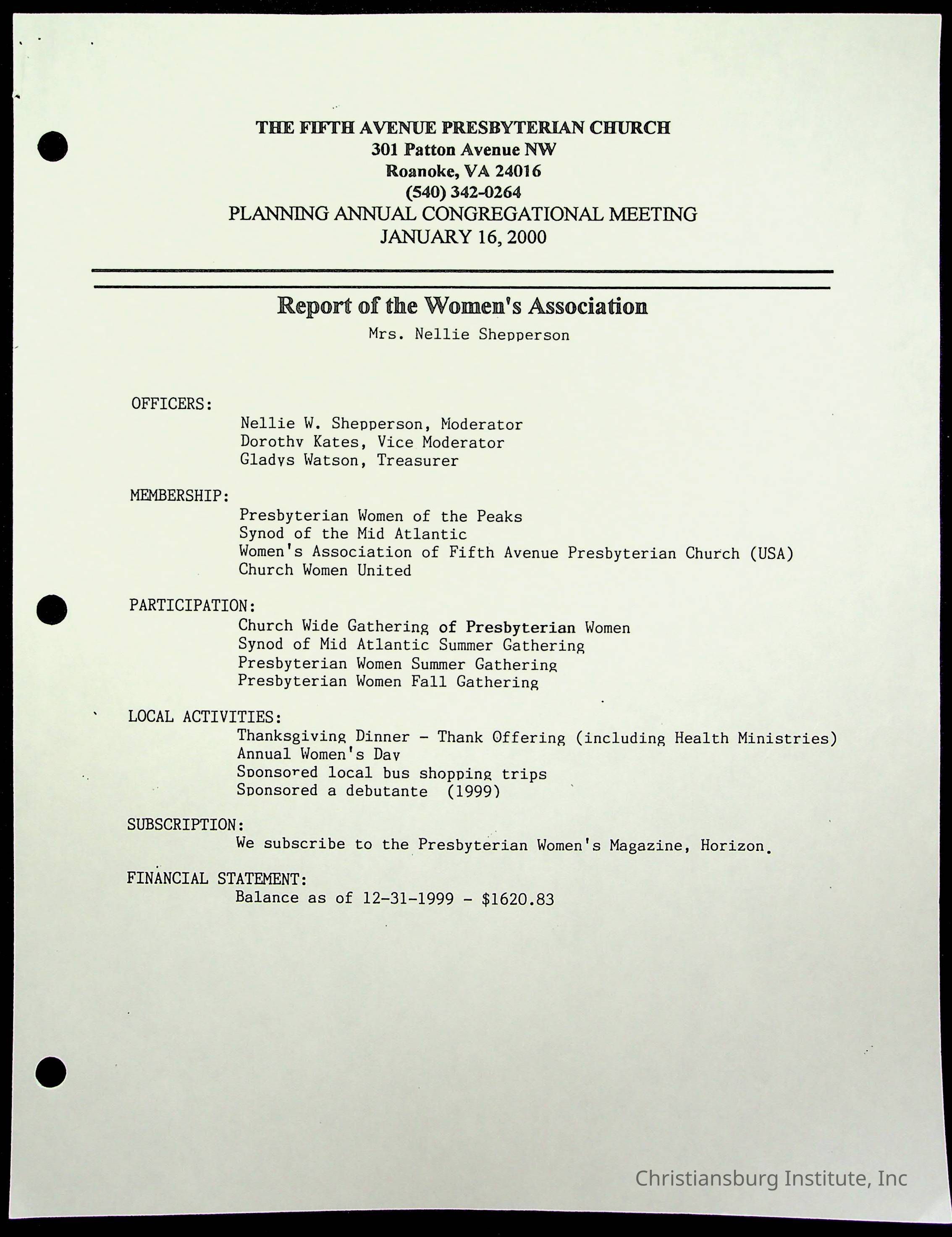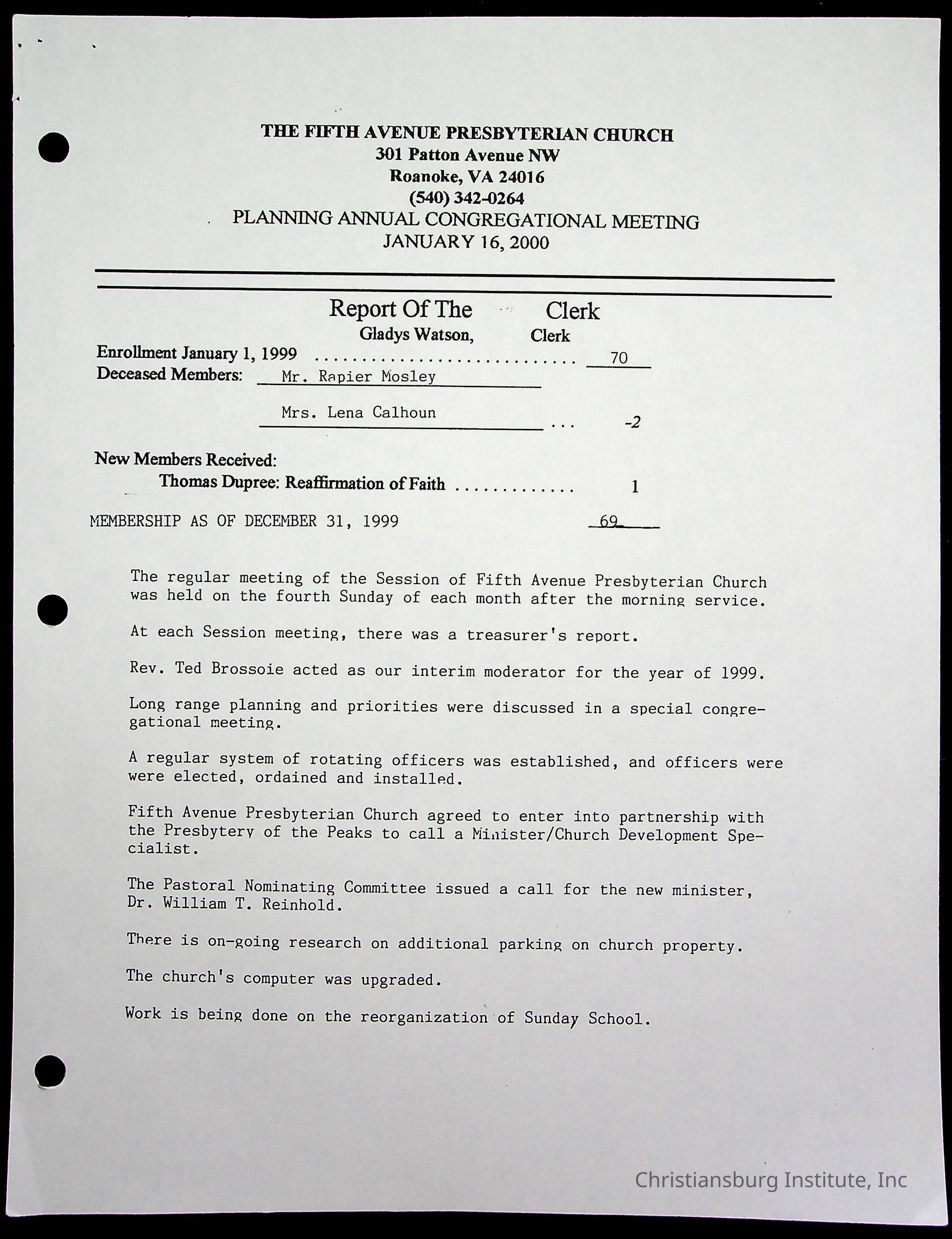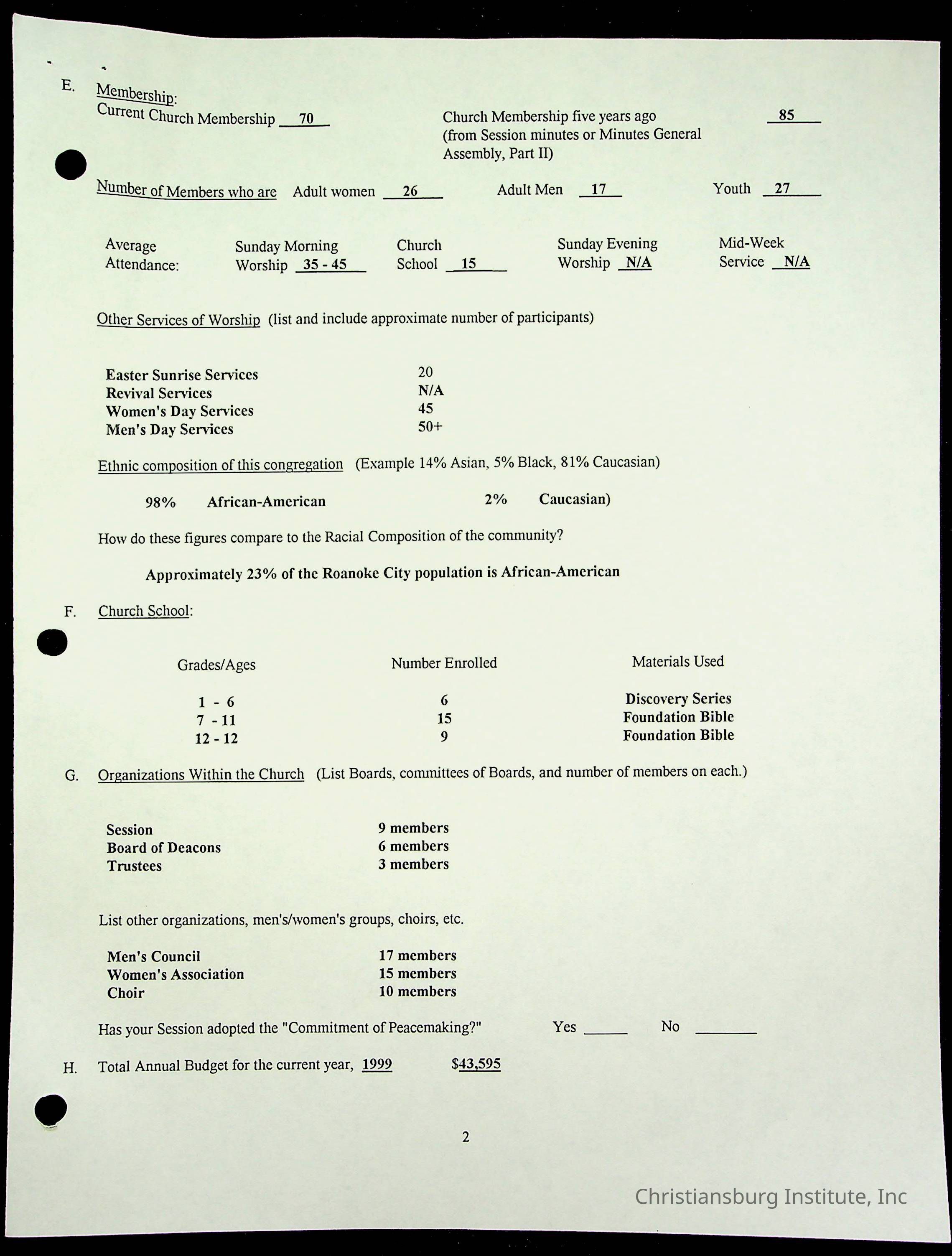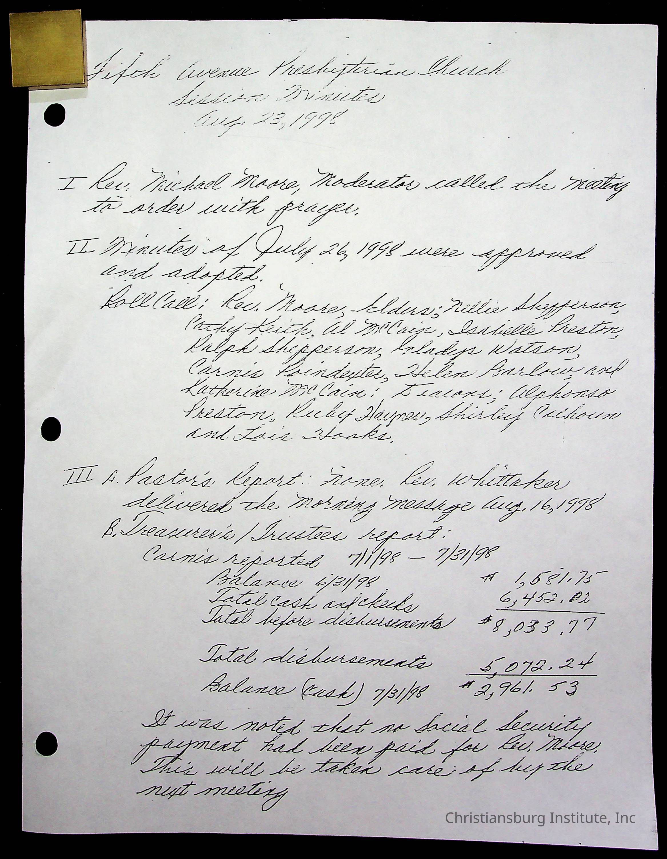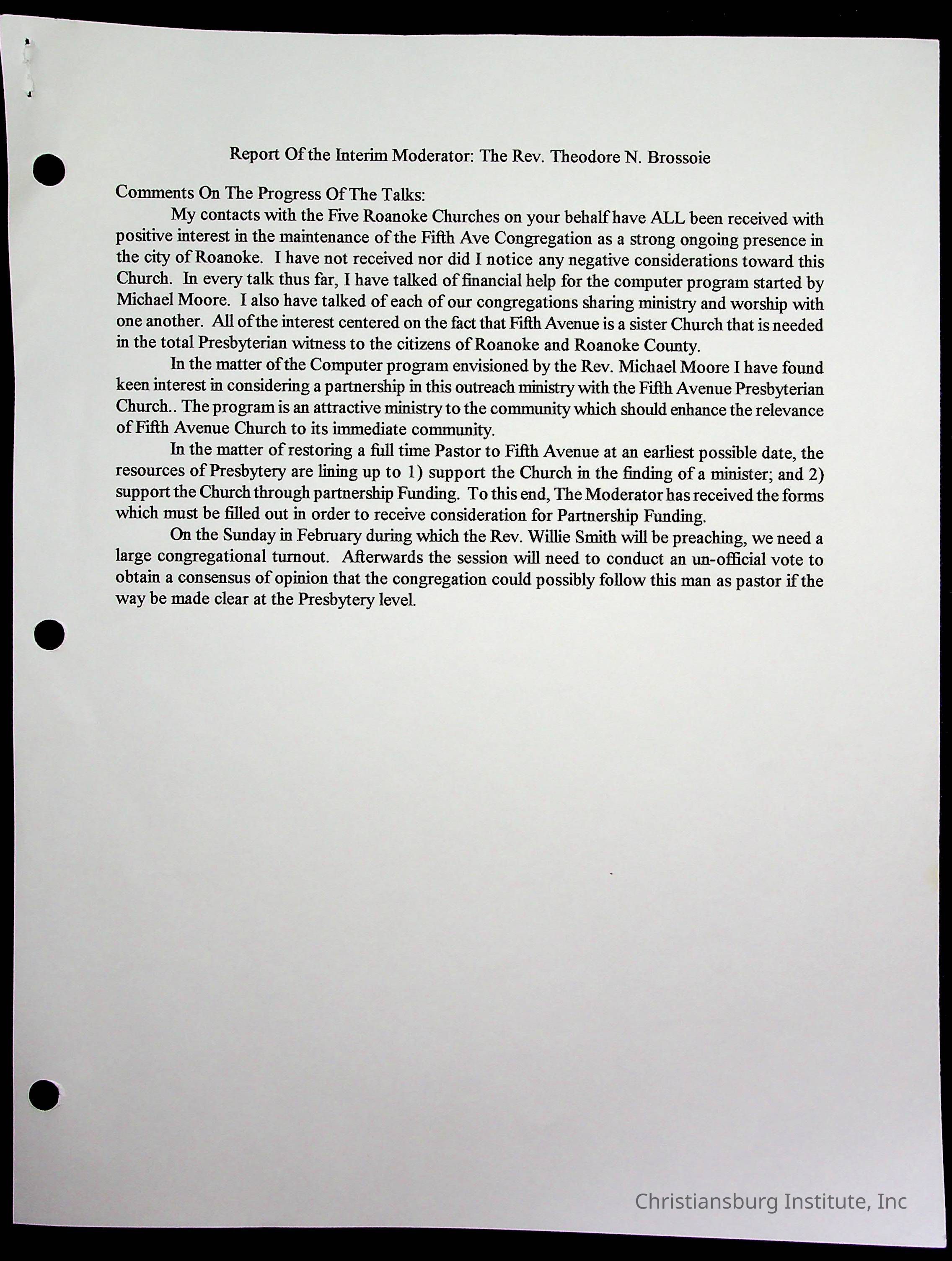 Copyright has been assigned to Christiansburg Institute Museum & Archives by Fifth Avenue Presbyterian Church. For permission to publish materials created by the donor, contact CIMA@christiansburginstitute.com. Materials not created by Fifth Avenue Presbyterian Church may still be under copyright.