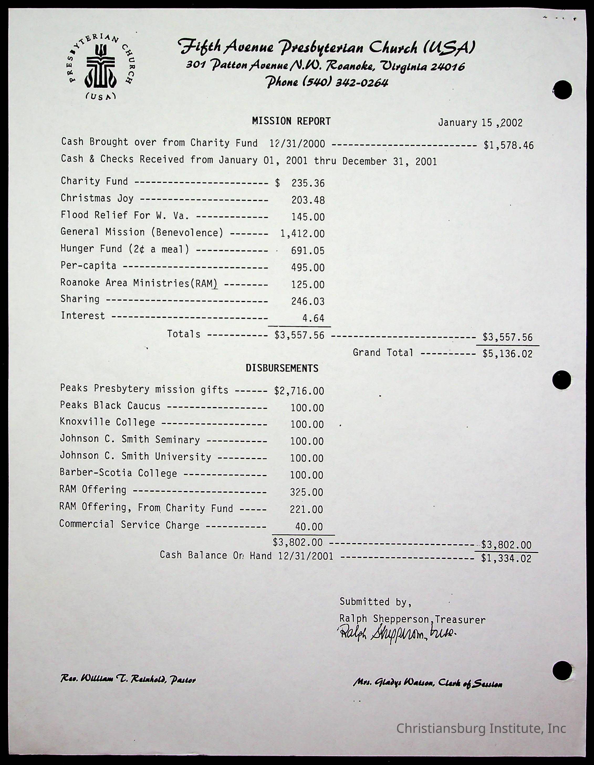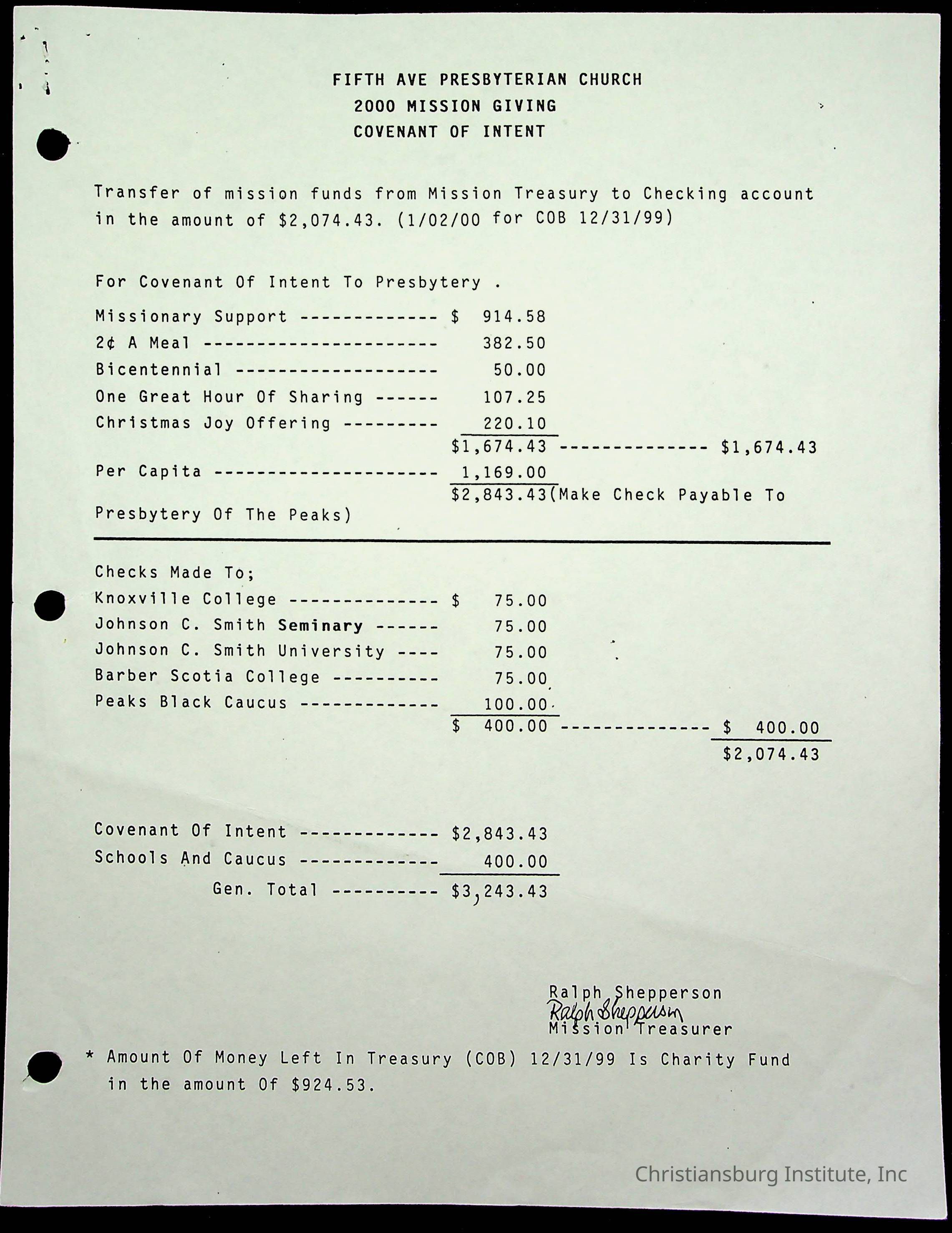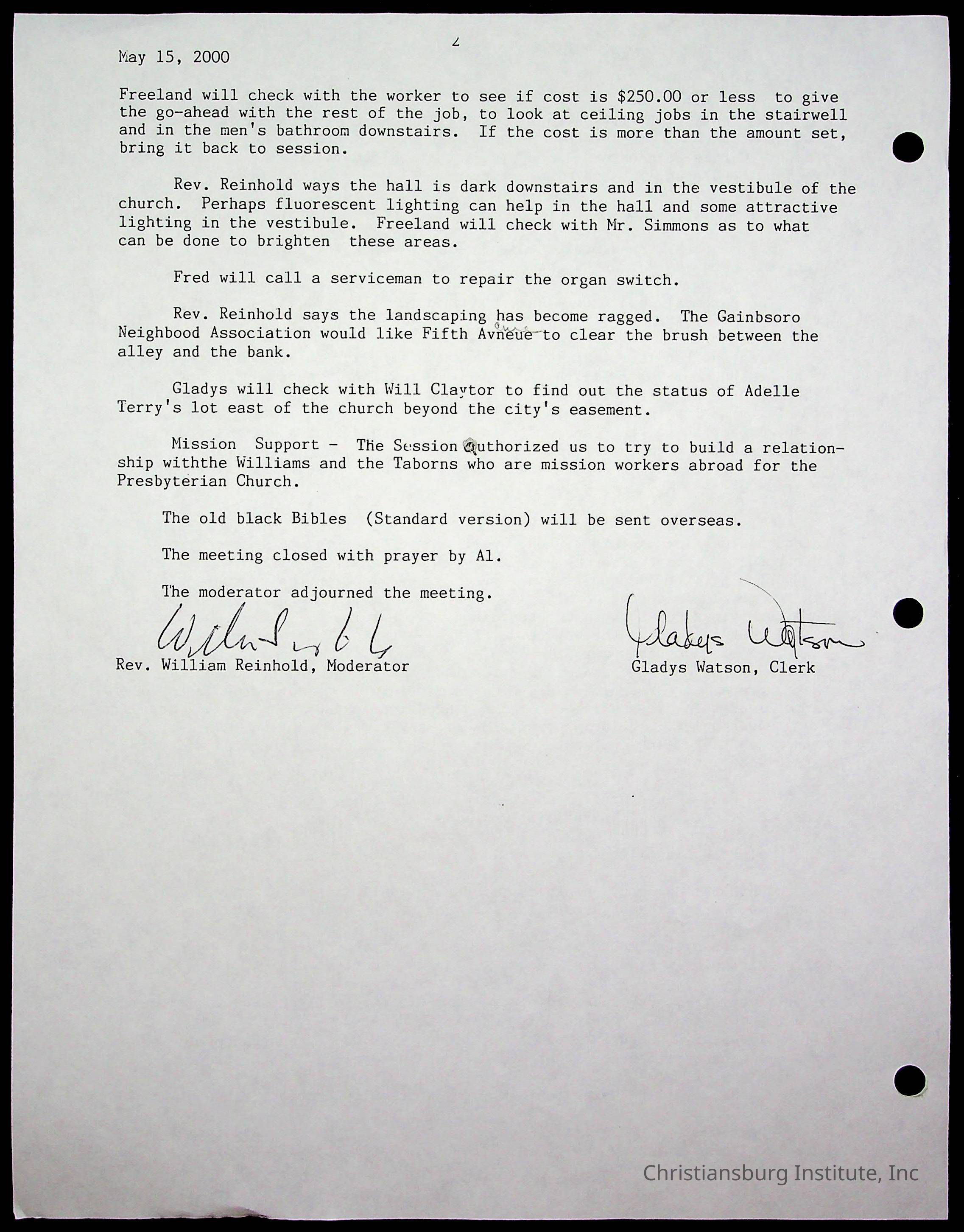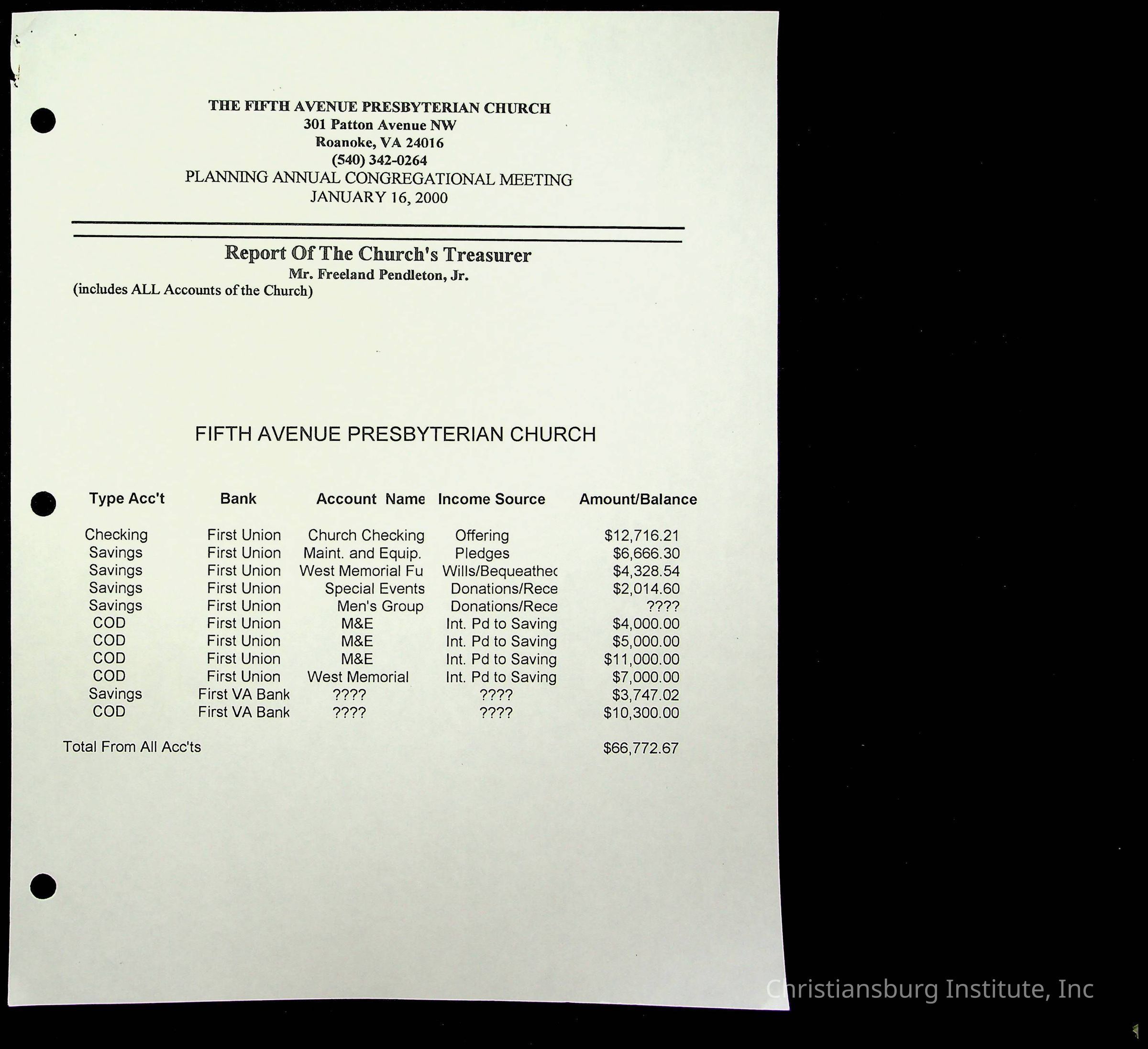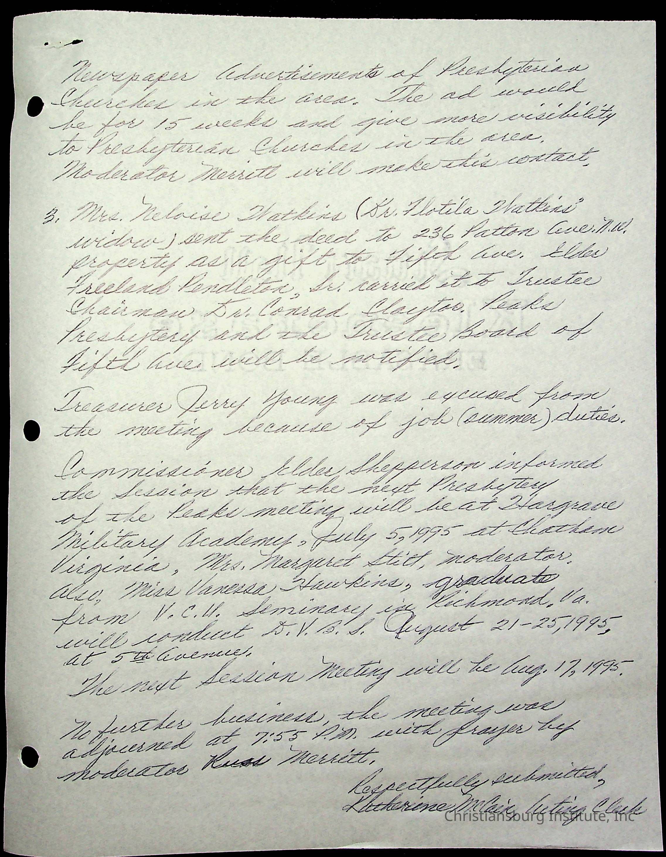 Copyright has been assigned to Christiansburg Institute Museum & Archives by Fifth Avenue Presbyterian Church. For permission to publish materials created by the donor, contact CIMA@christiansburginstitute.com. Materials not created by Fifth Avenue Presbyterian Church may still be under copyright.