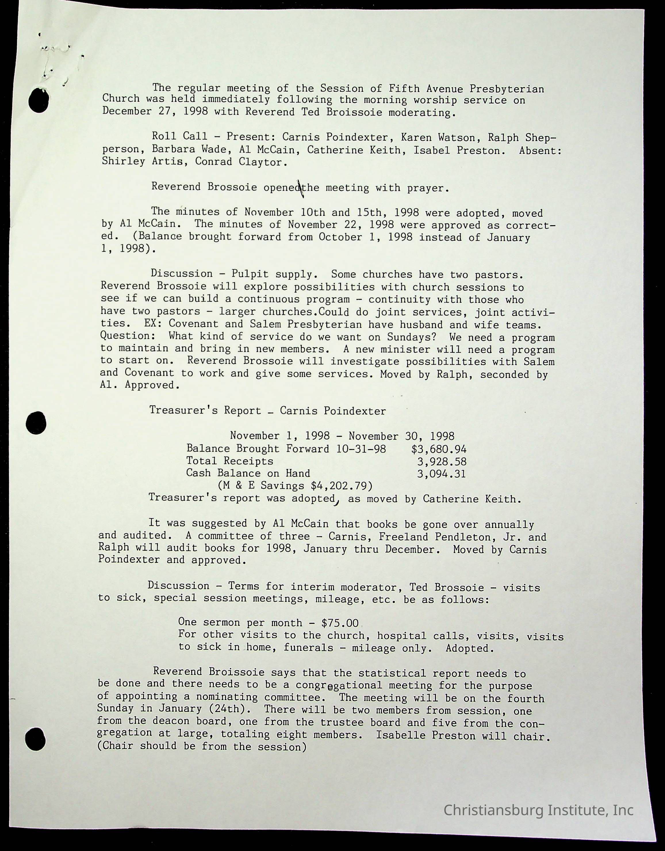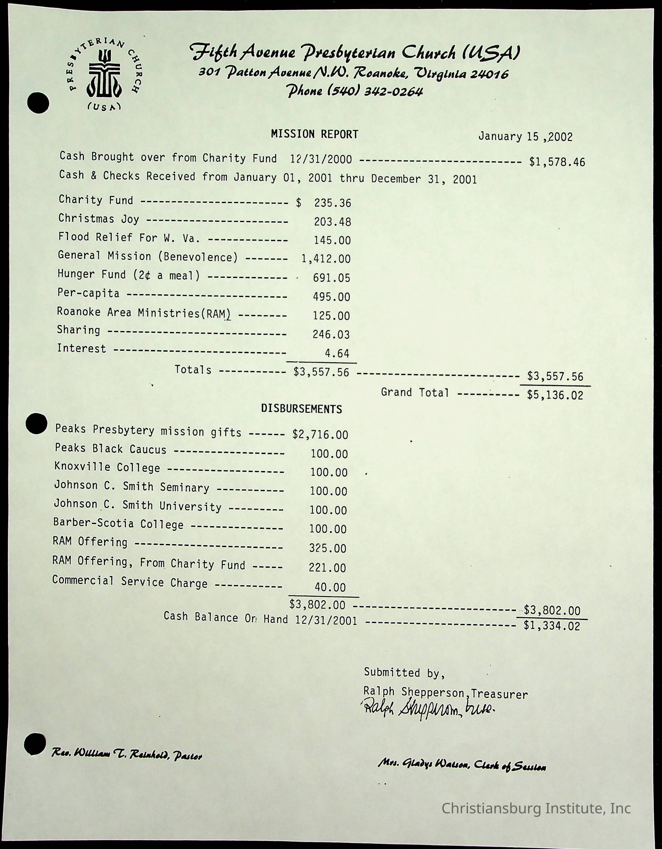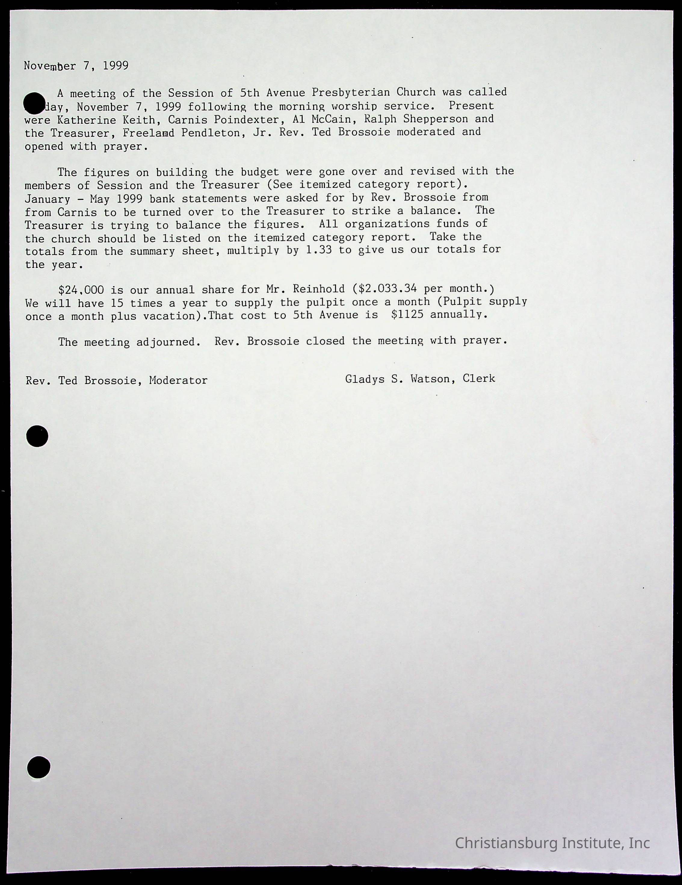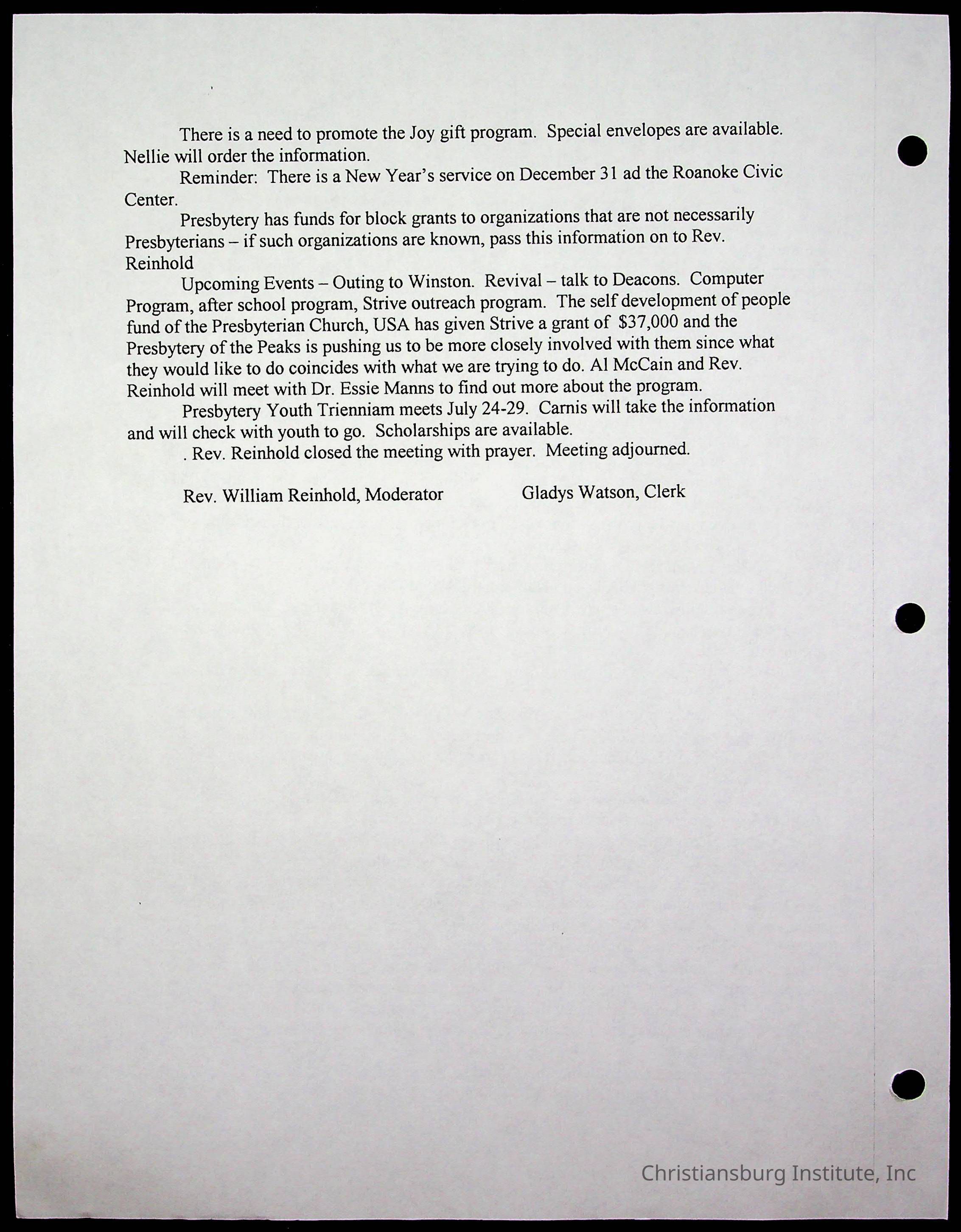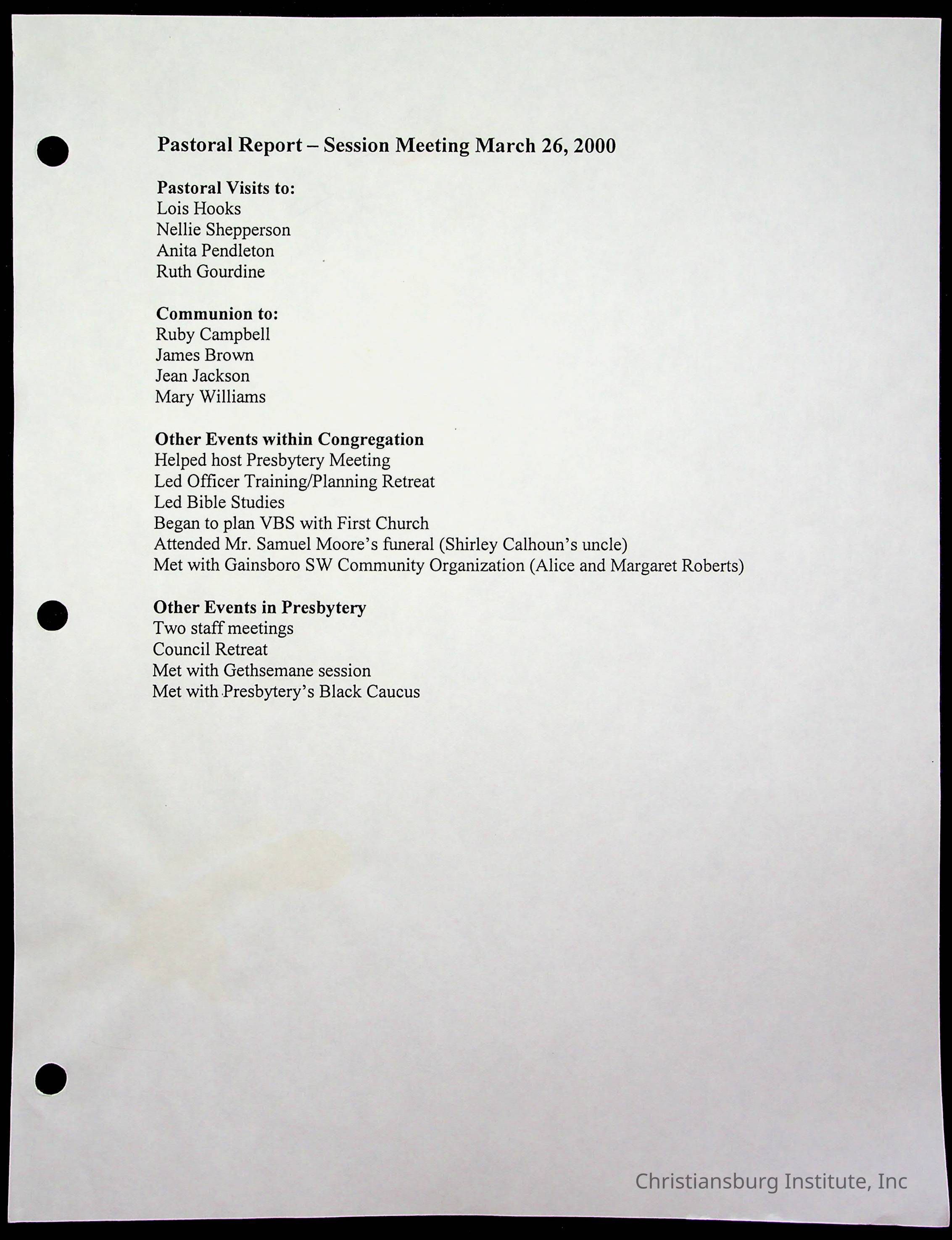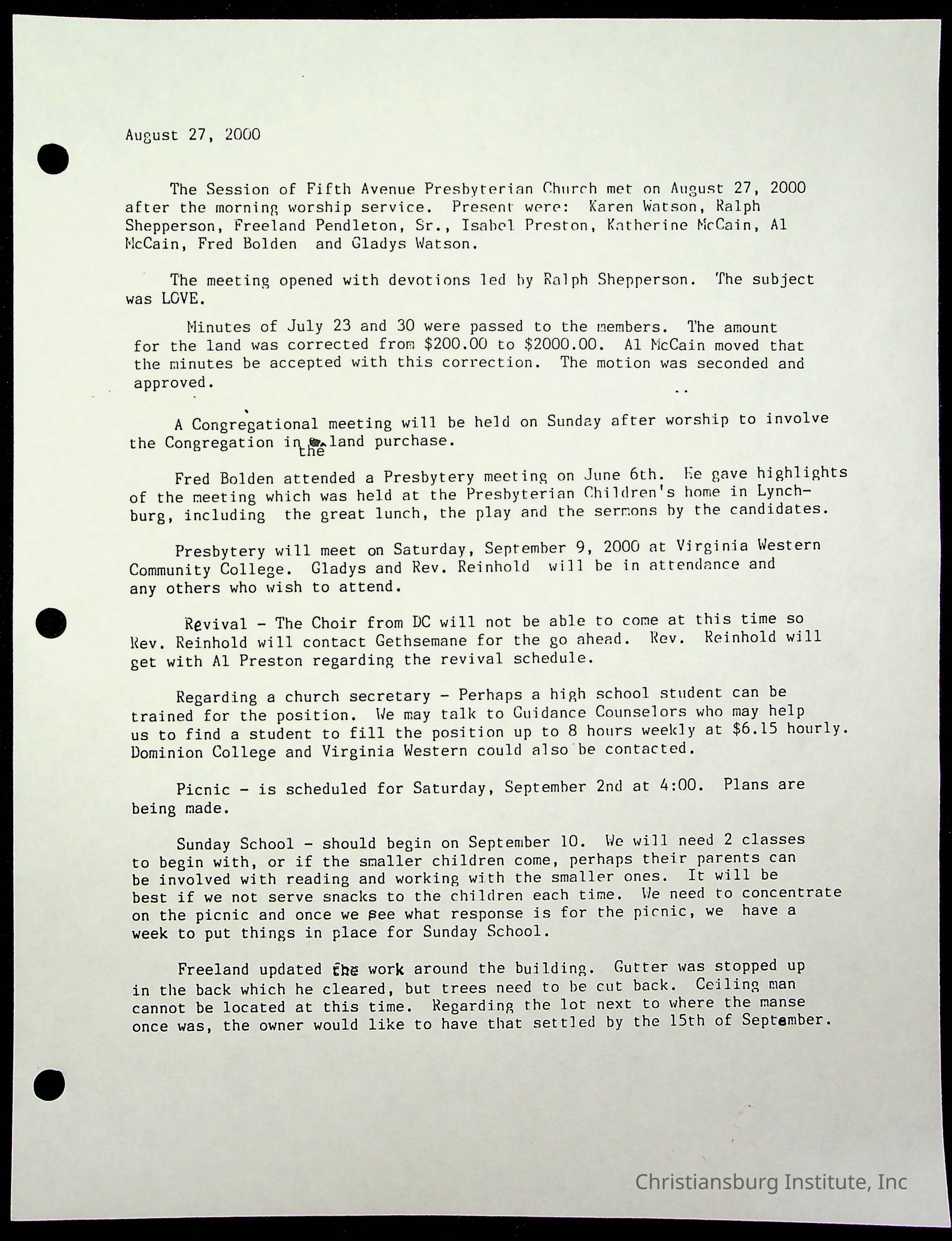 Copyright has been assigned to Christiansburg Institute Museum & Archives by Fifth Avenue Presbyterian Church. For permission to publish materials created by the donor, contact CIMA@christiansburginstitute.com. Materials not created by Fifth Avenue Presbyterian Church may still be under copyright.