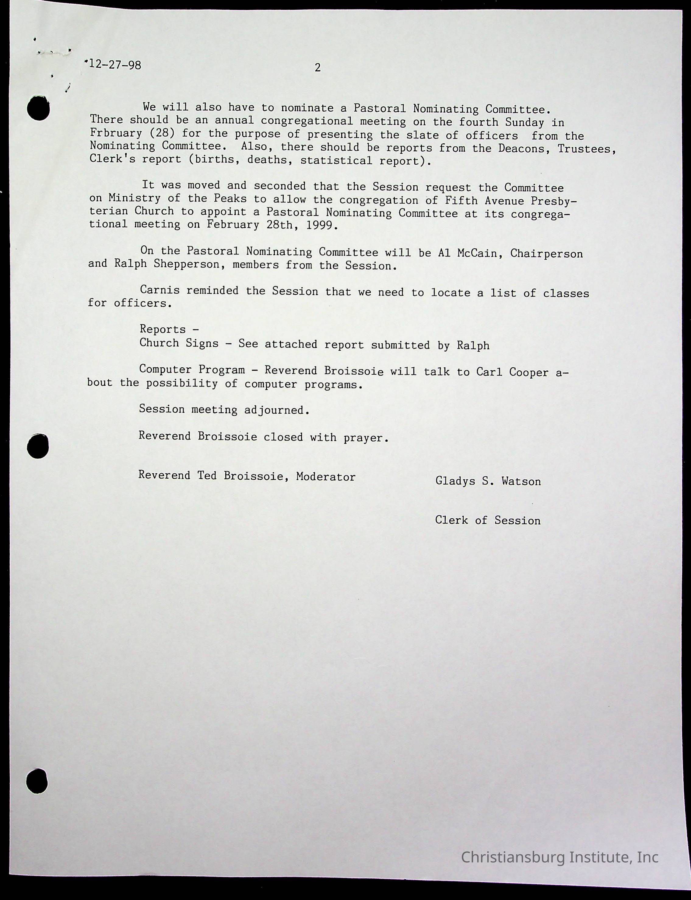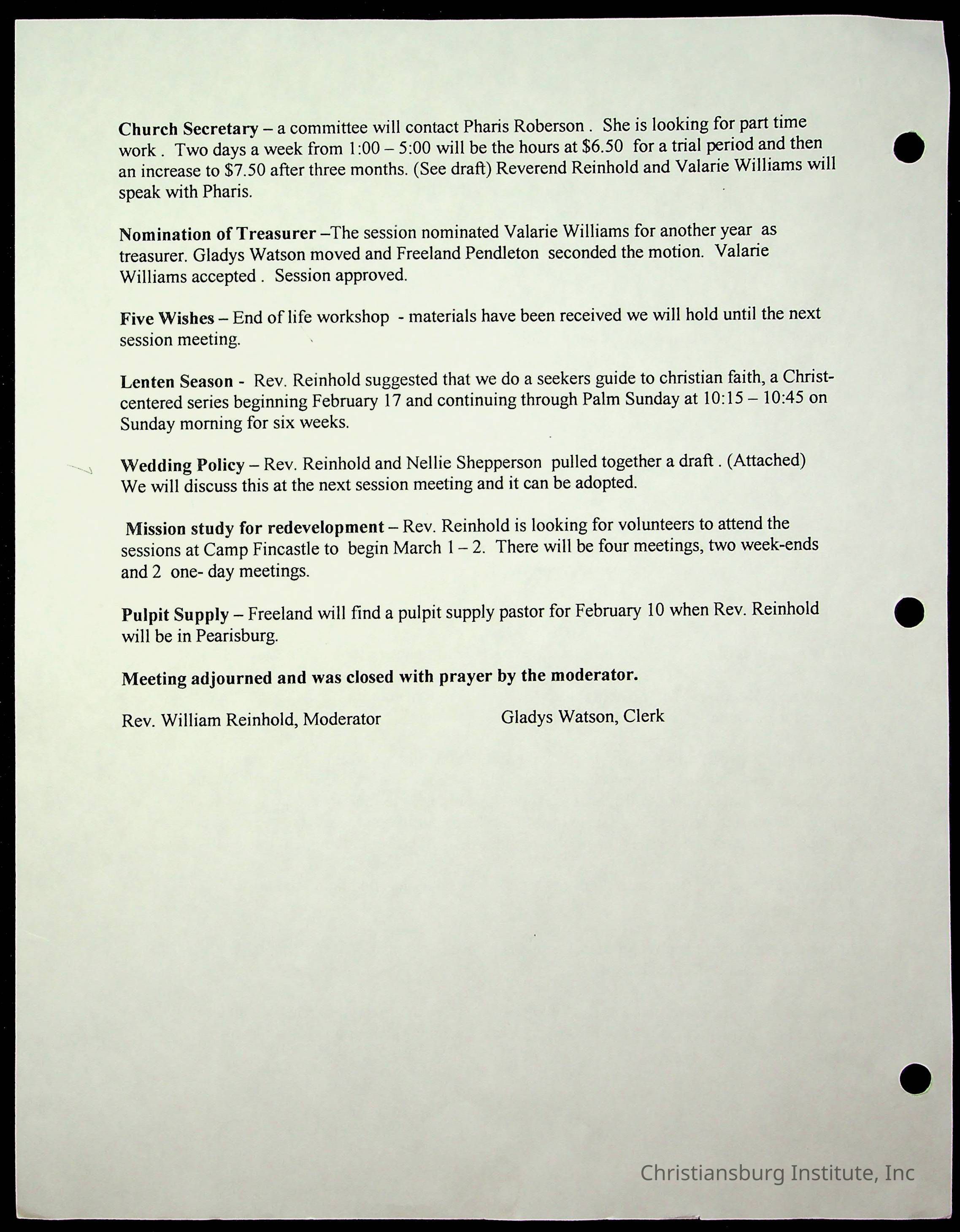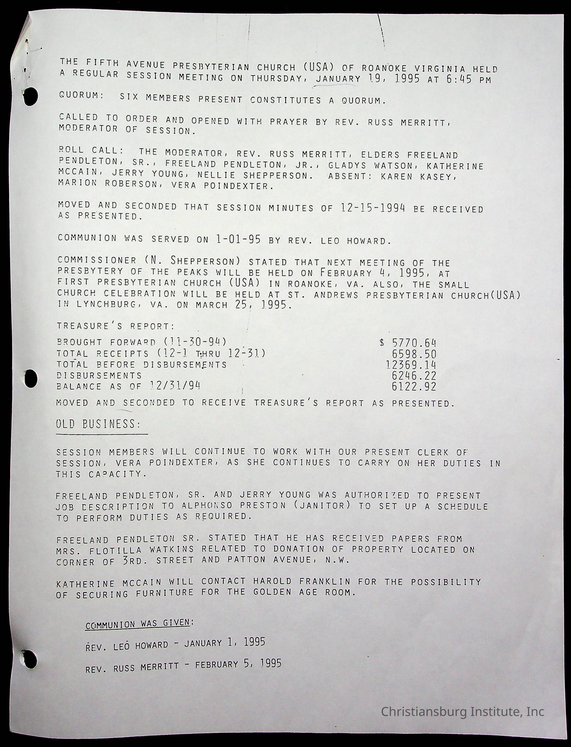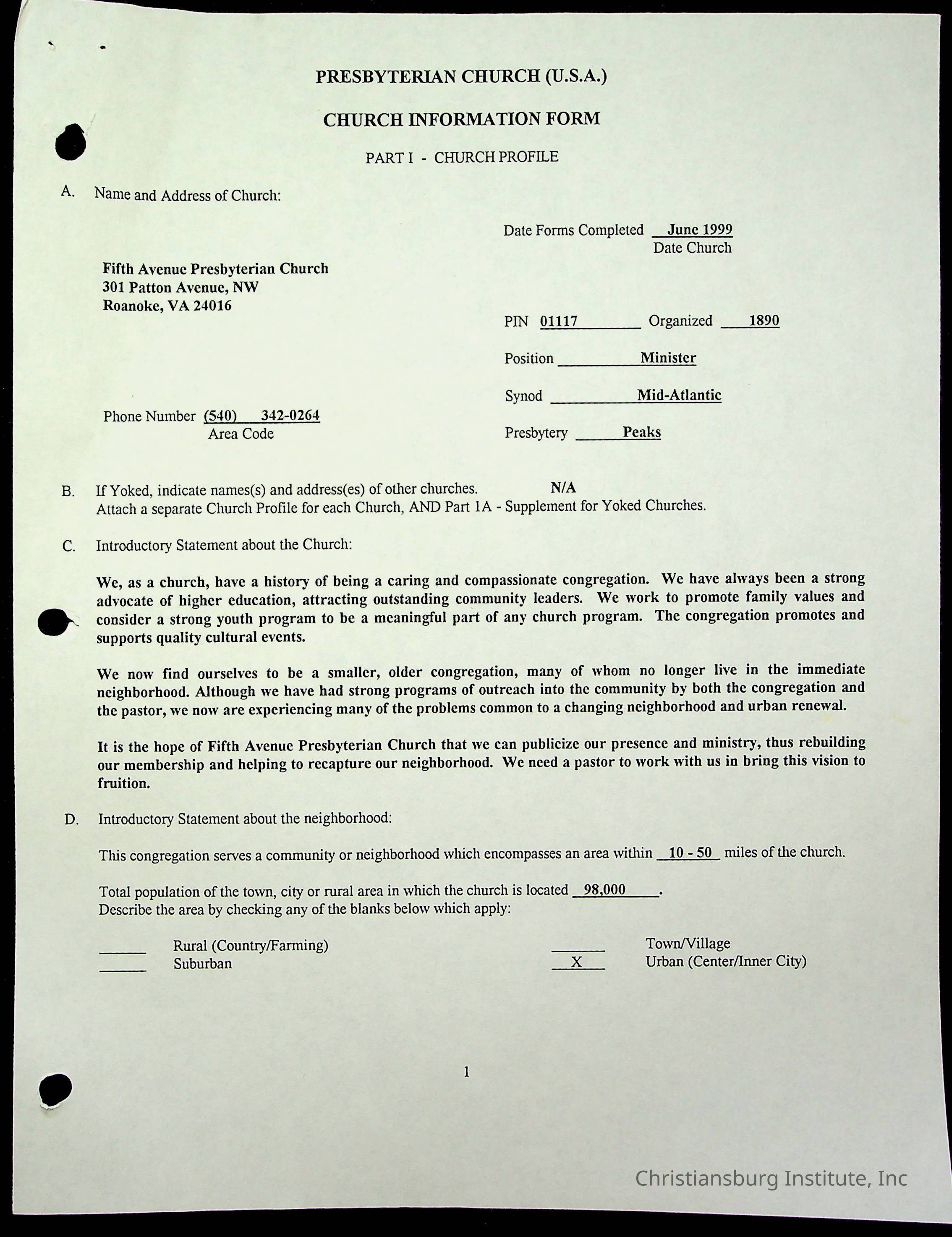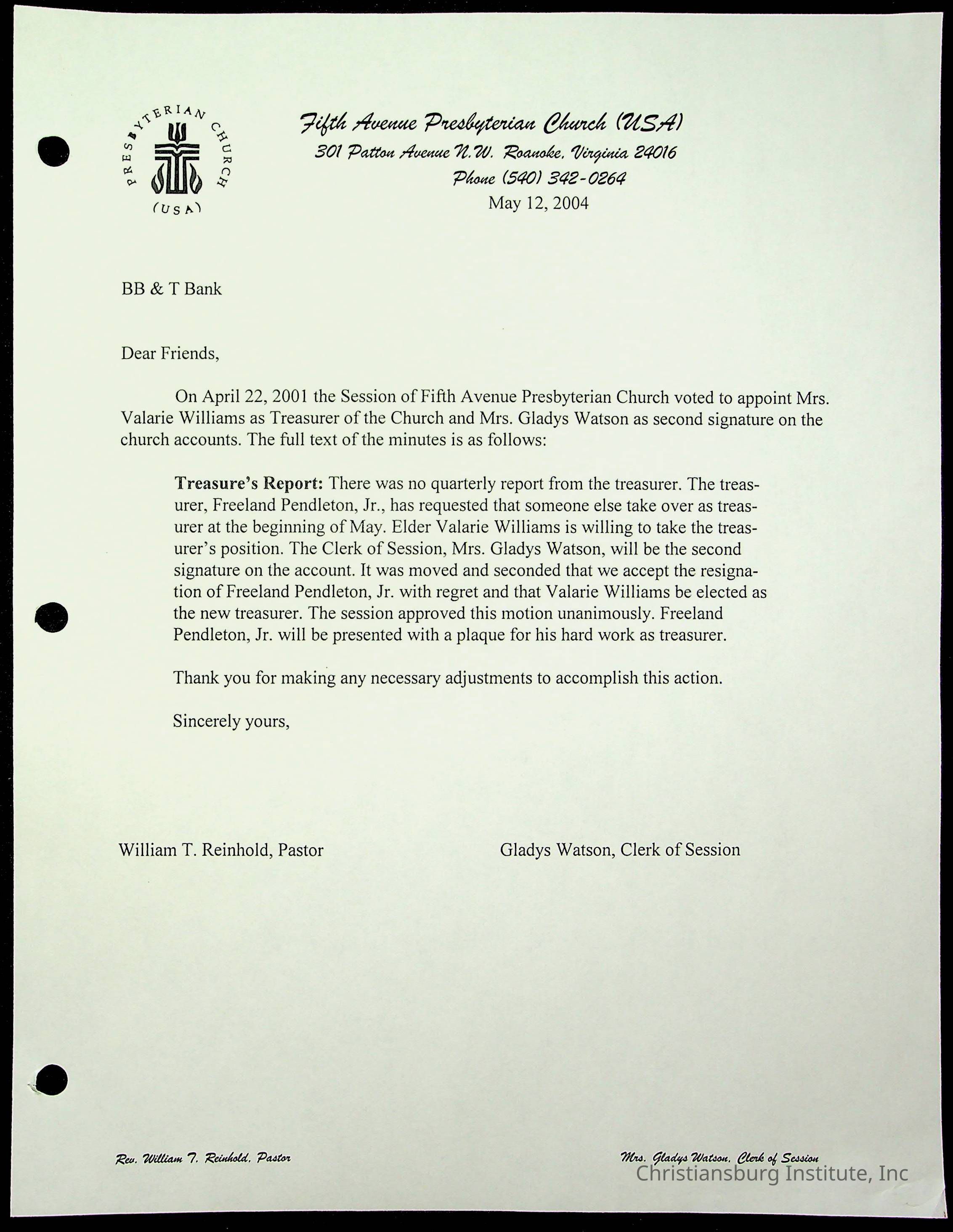 Copyright has been assigned to Christiansburg Institute Museum & Archives by Fifth Avenue Presbyterian Church. For permission to publish materials created by the donor, contact CIMA@christiansburginstitute.com. Materials not created by Fifth Avenue Presbyterian Church may still be under copyright.