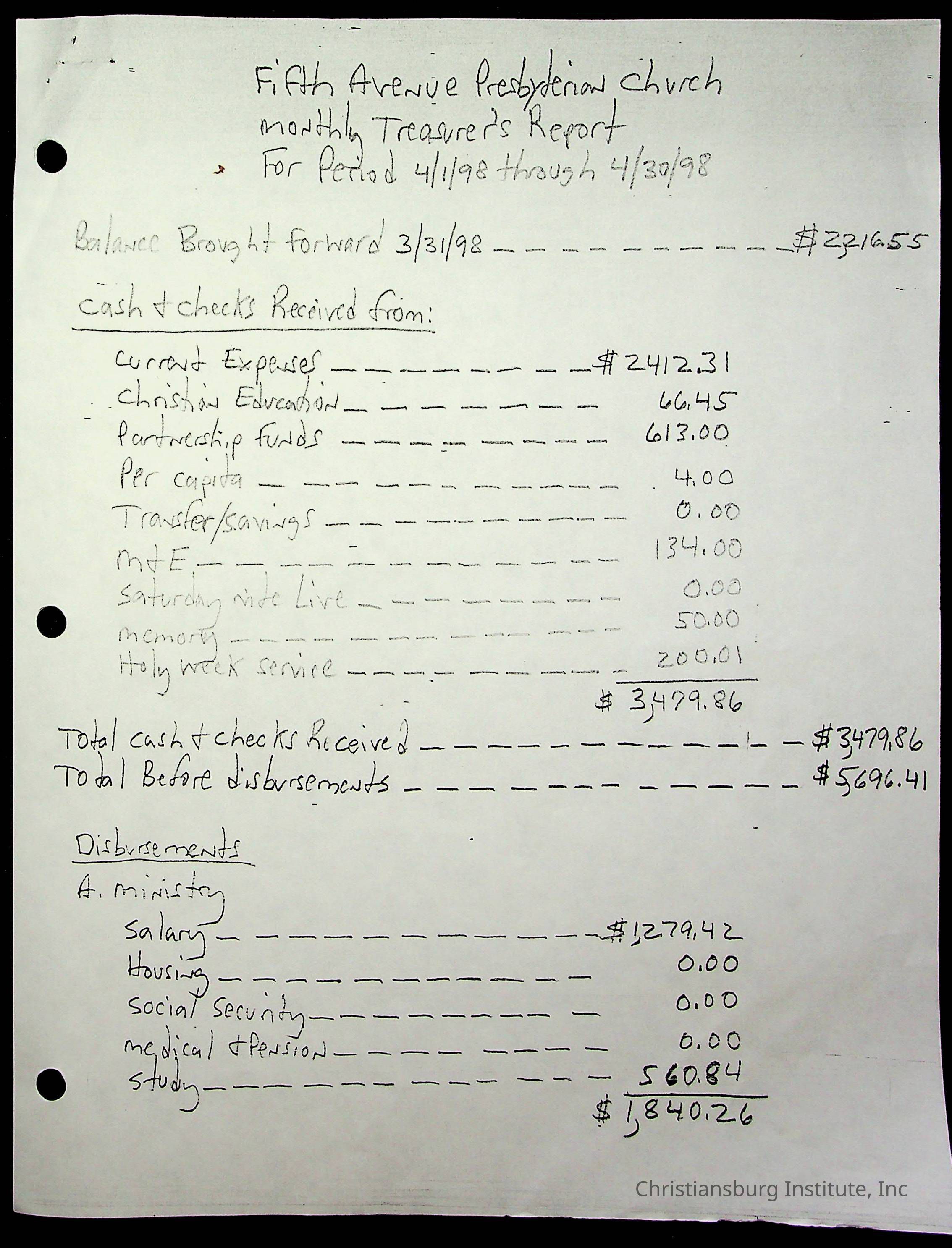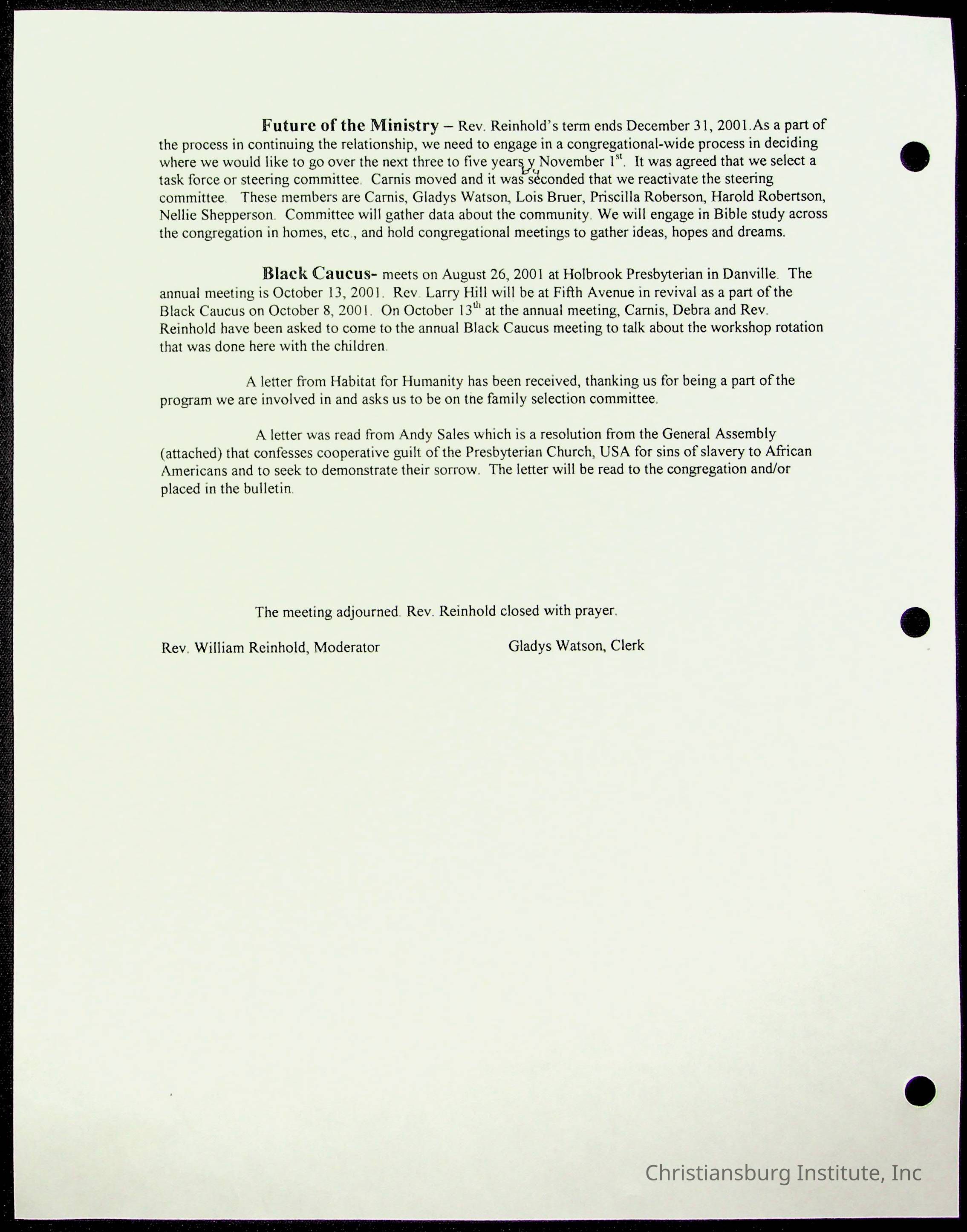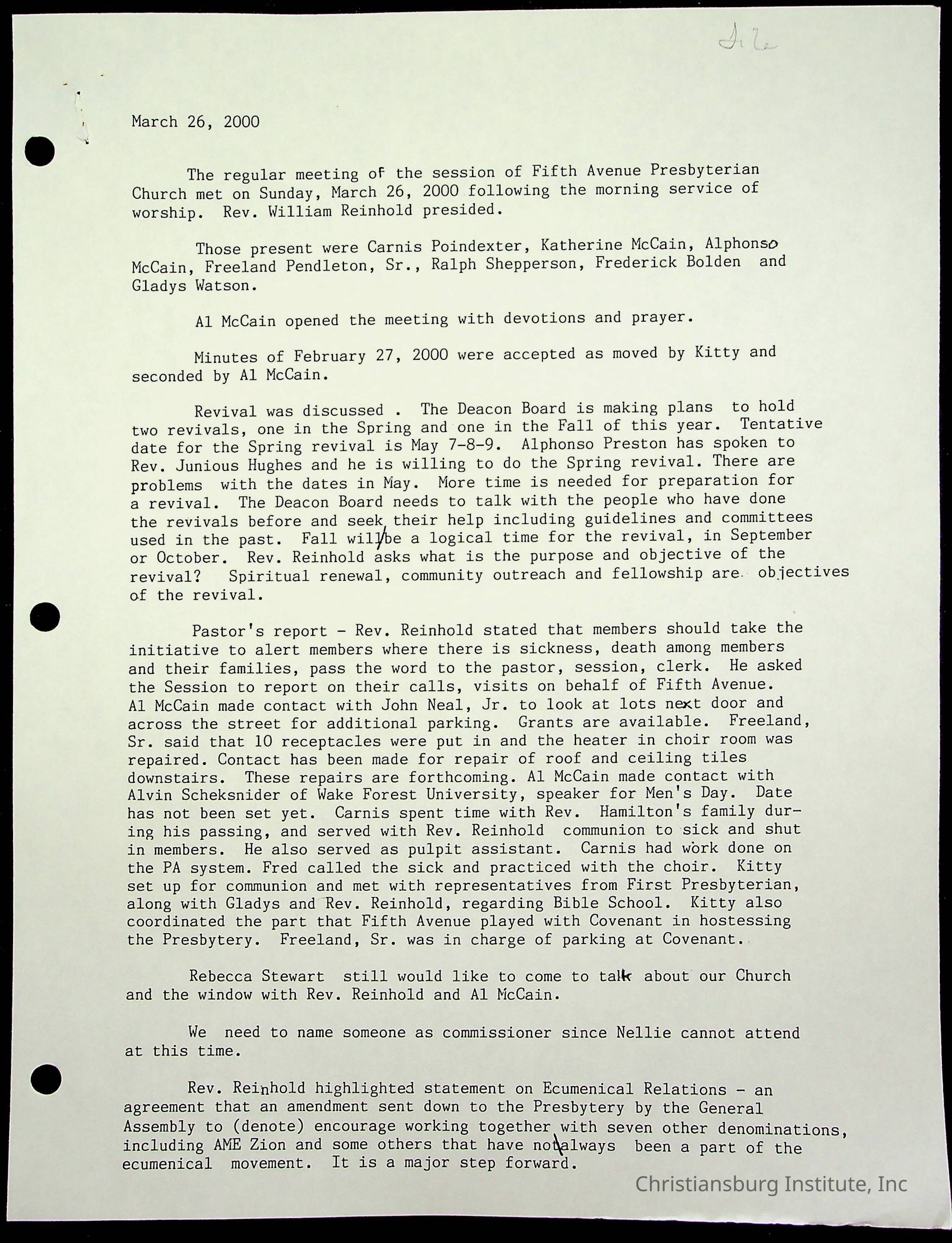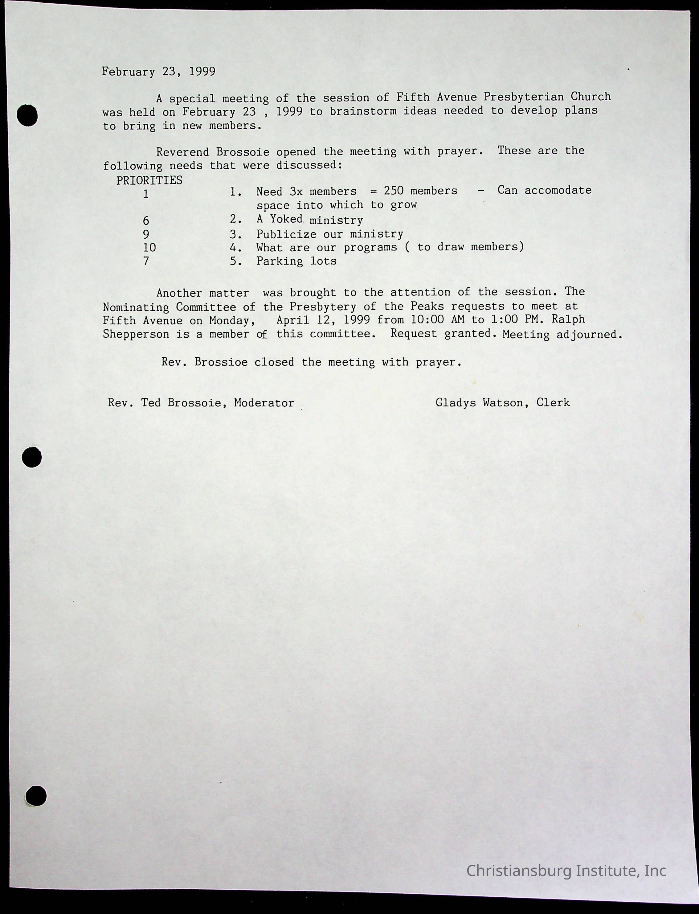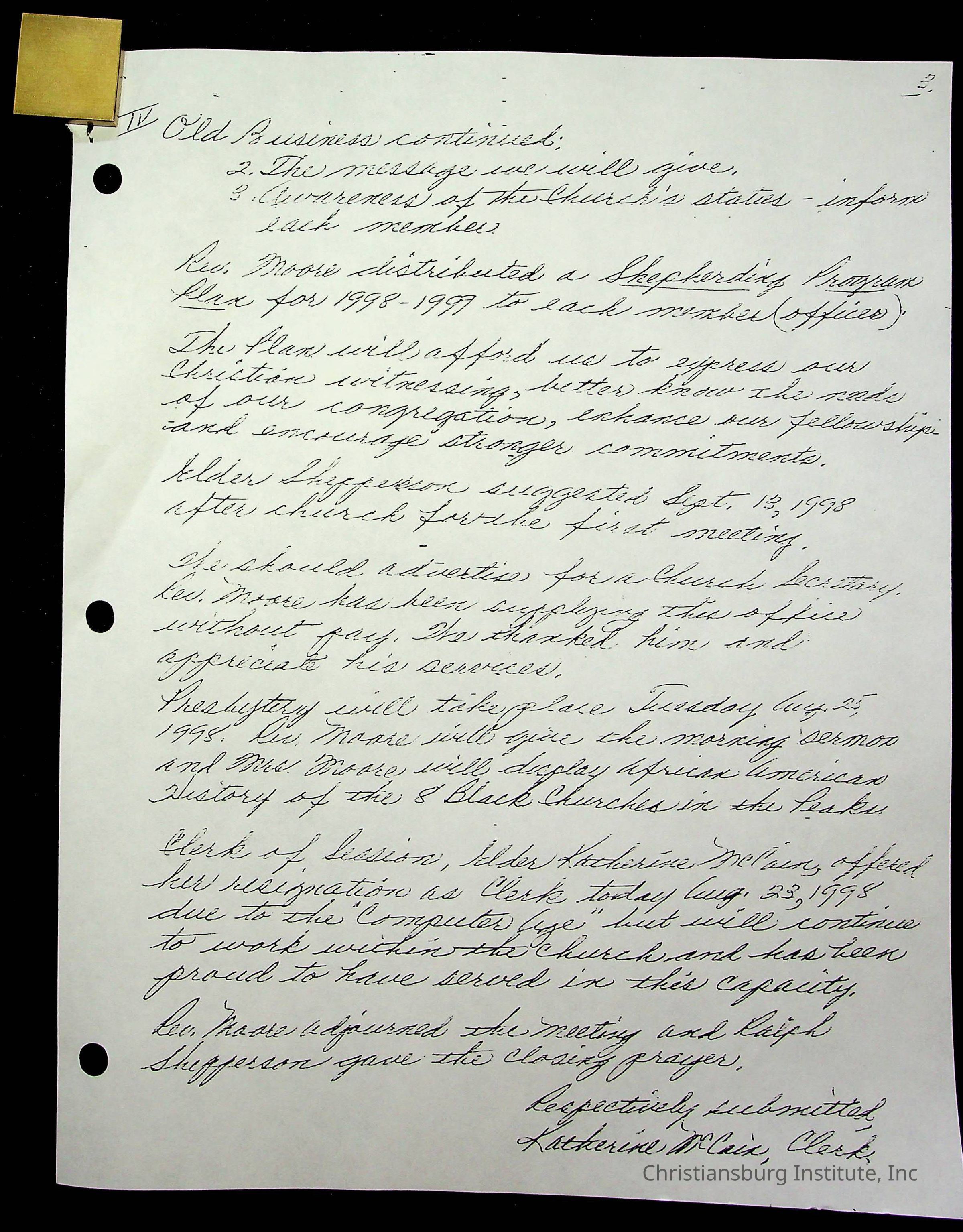 Copyright has been assigned to Christiansburg Institute Museum & Archives by Fifth Avenue Presbyterian Church. For permission to publish materials created by the donor, contact CIMA@christiansburginstitute.com. Materials not created by Fifth Avenue Presbyterian Church may still be under copyright.