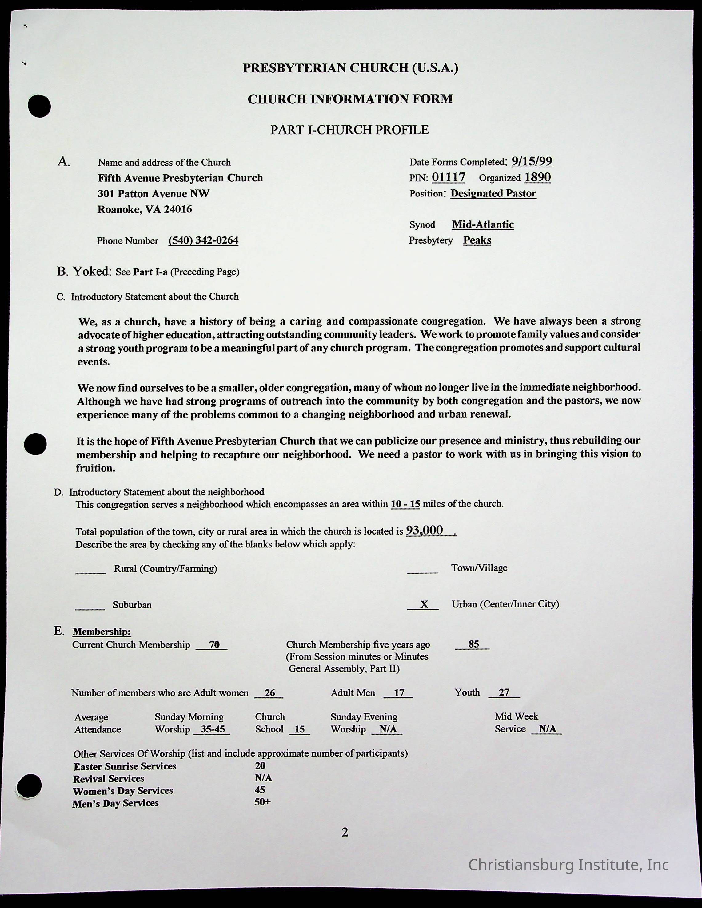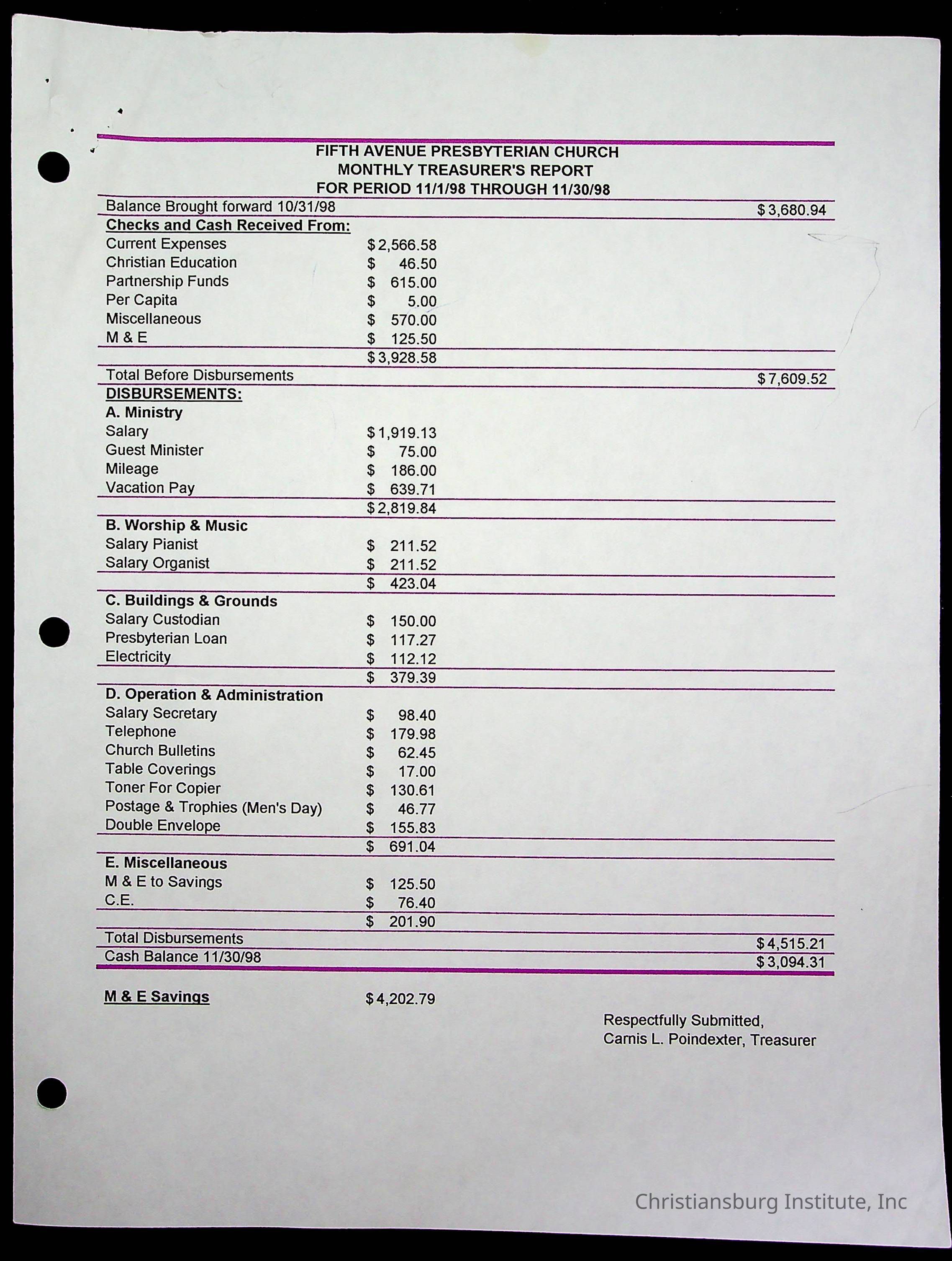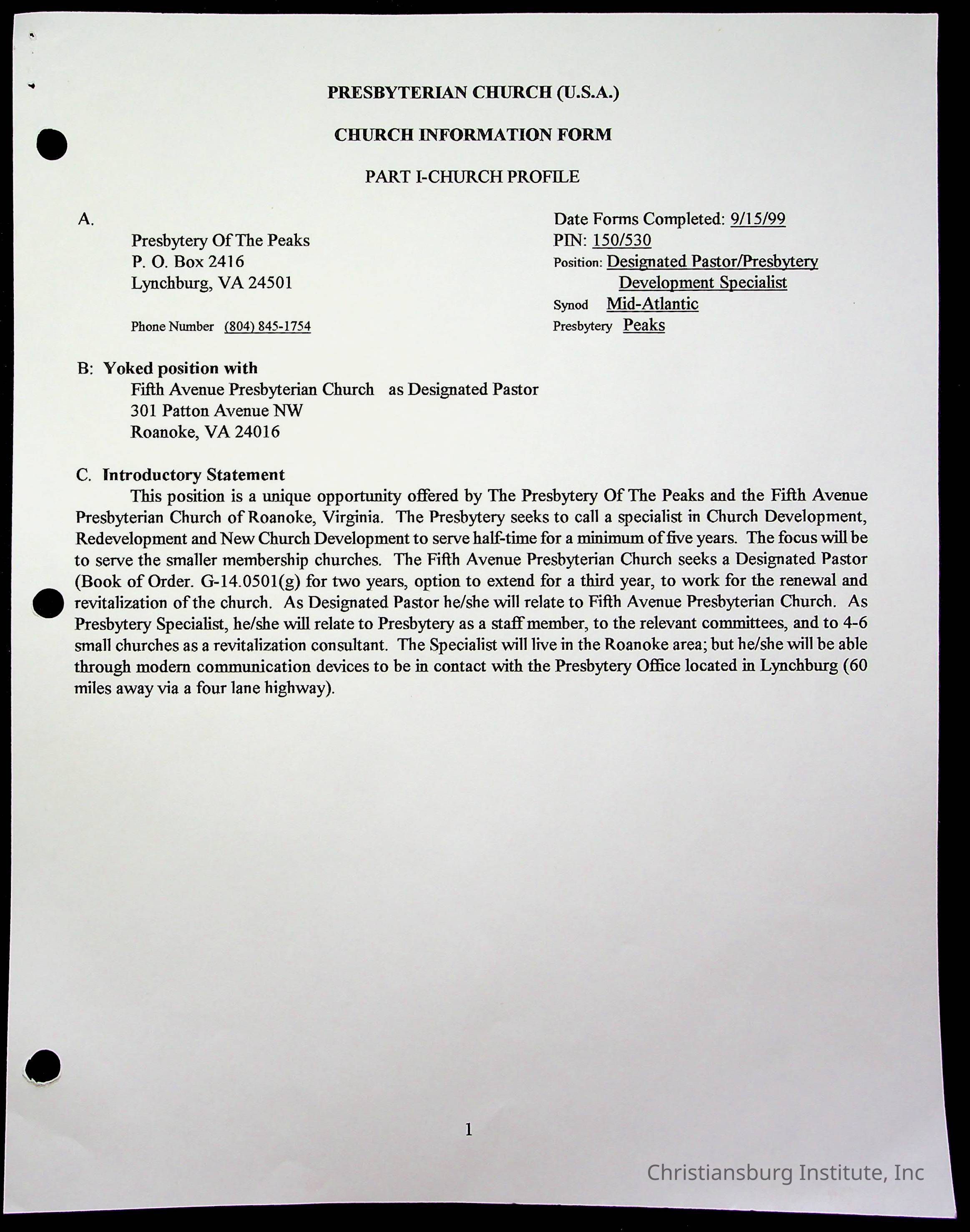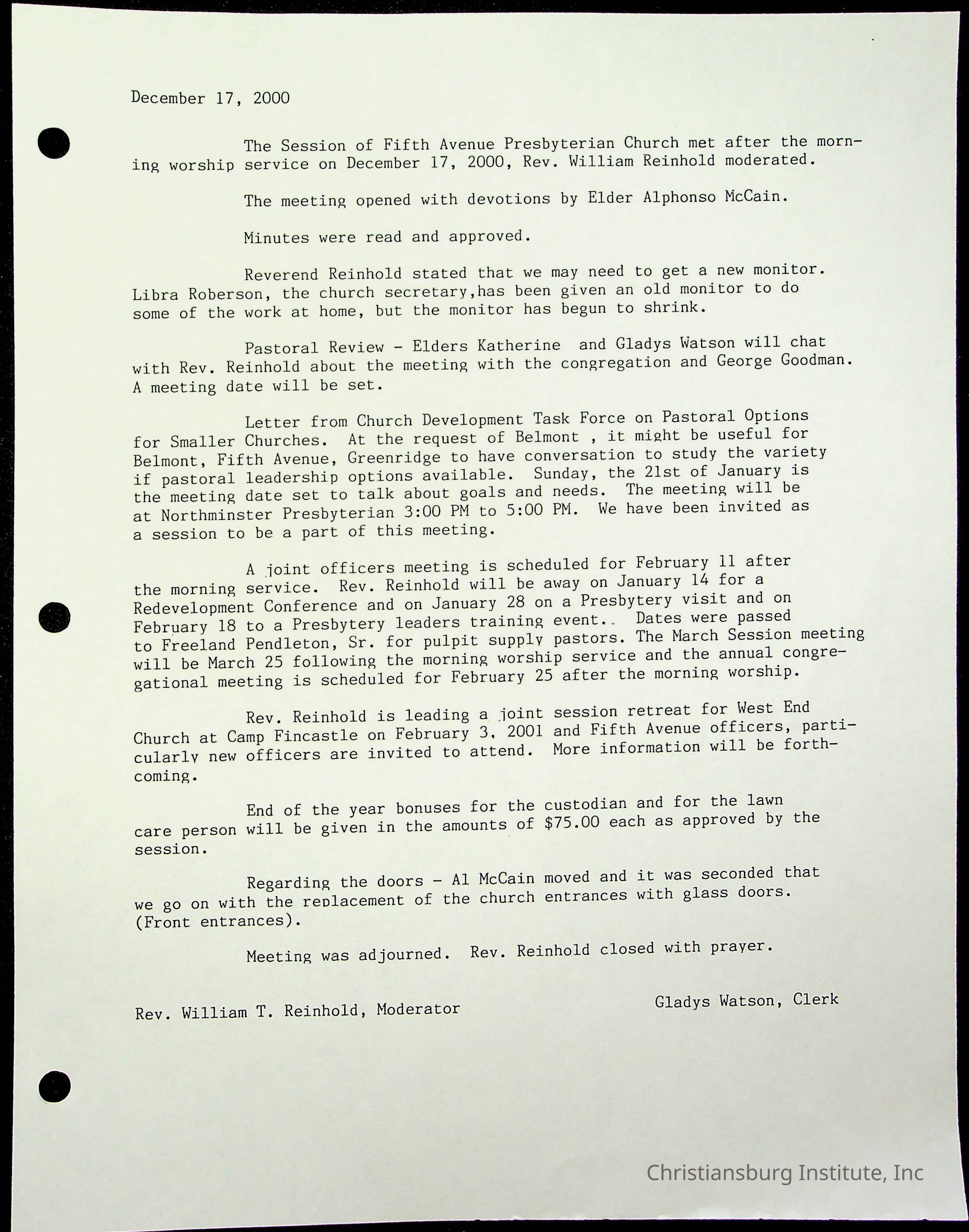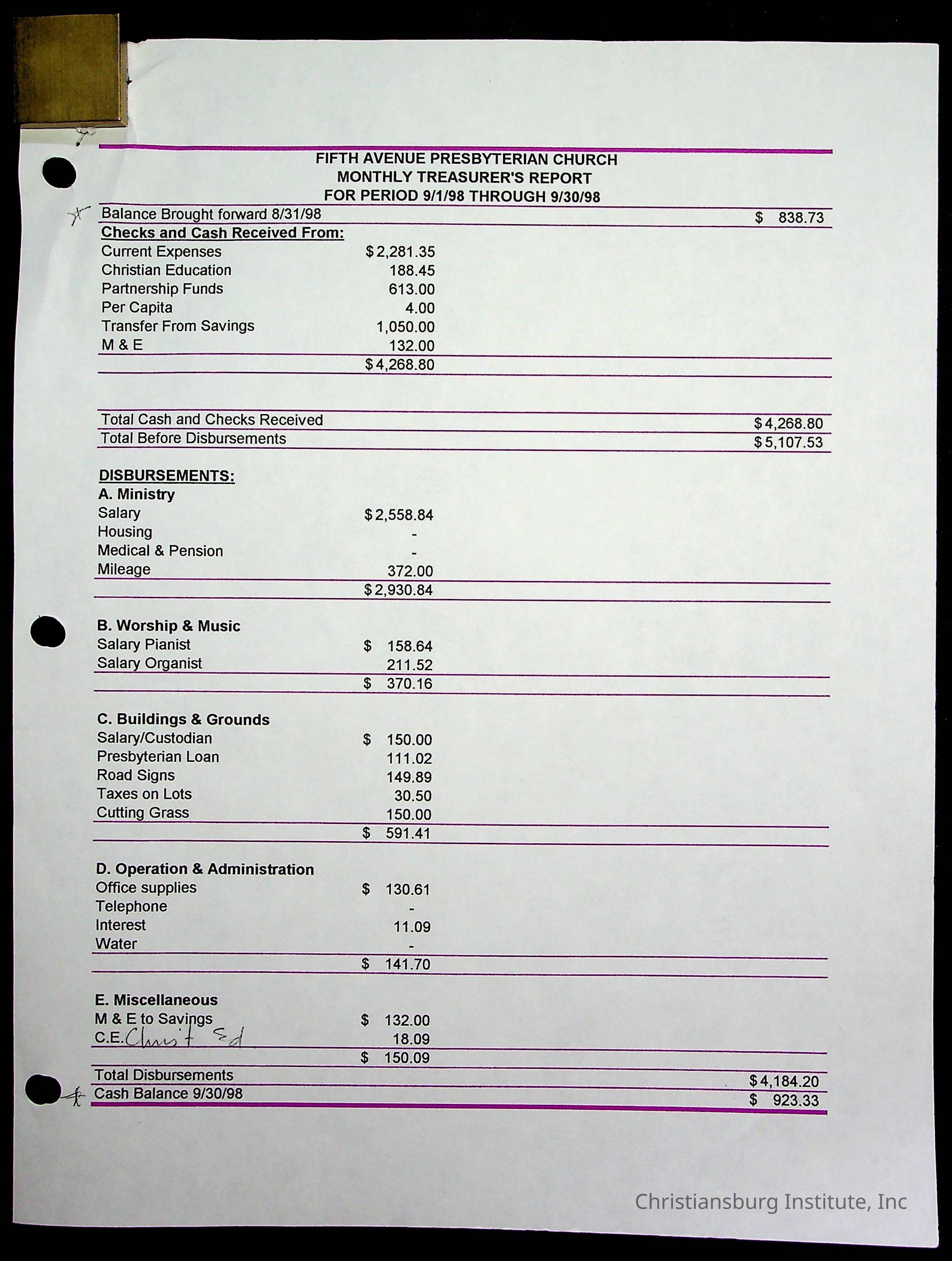 Copyright has been assigned to Christiansburg Institute Museum & Archives by Fifth Avenue Presbyterian Church. For permission to publish materials created by the donor, contact CIMA@christiansburginstitute.com. Materials not created by Fifth Avenue Presbyterian Church may still be under copyright.